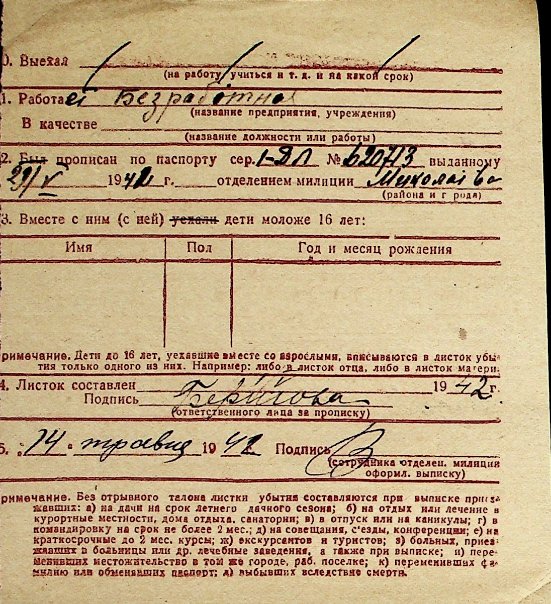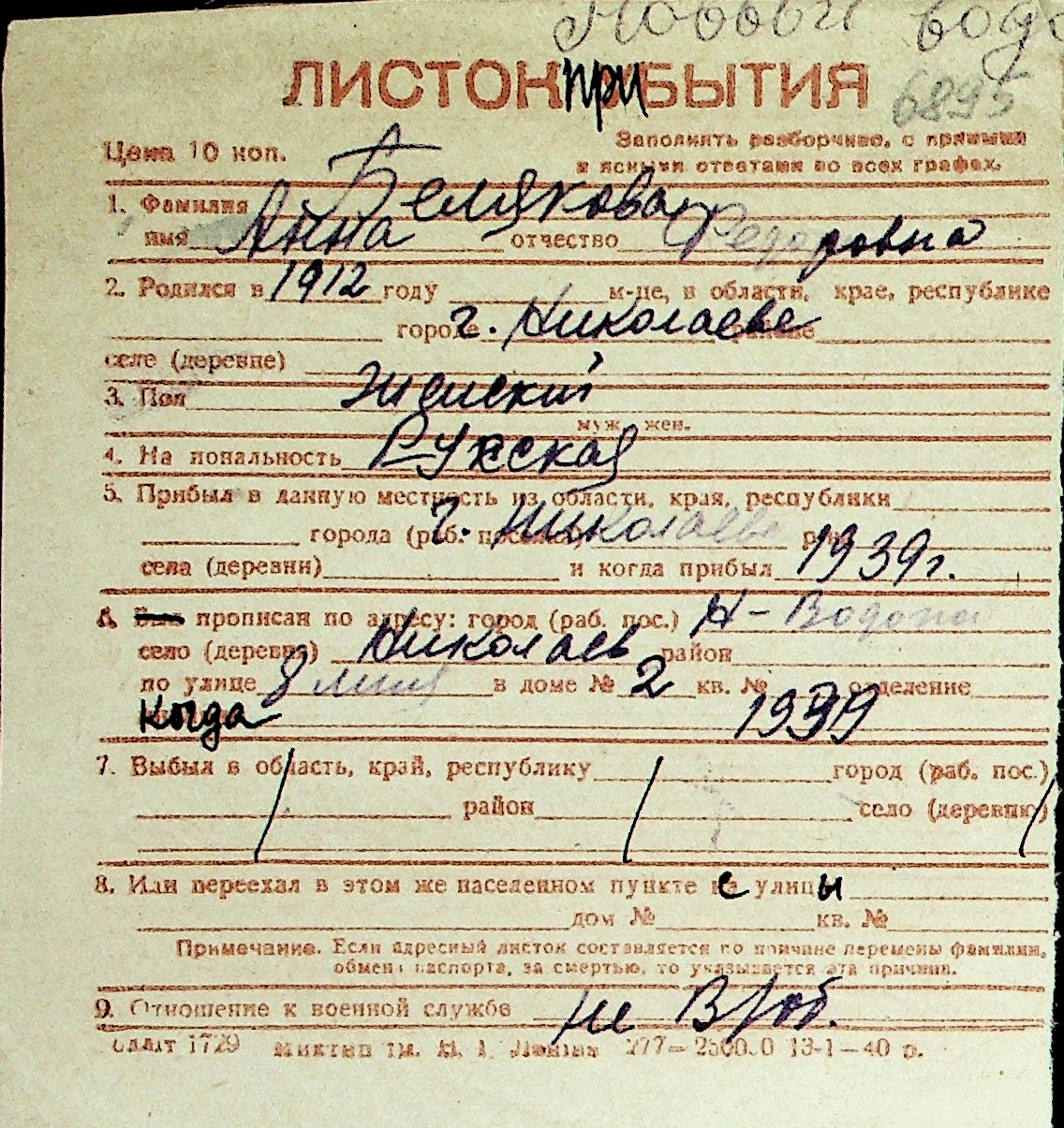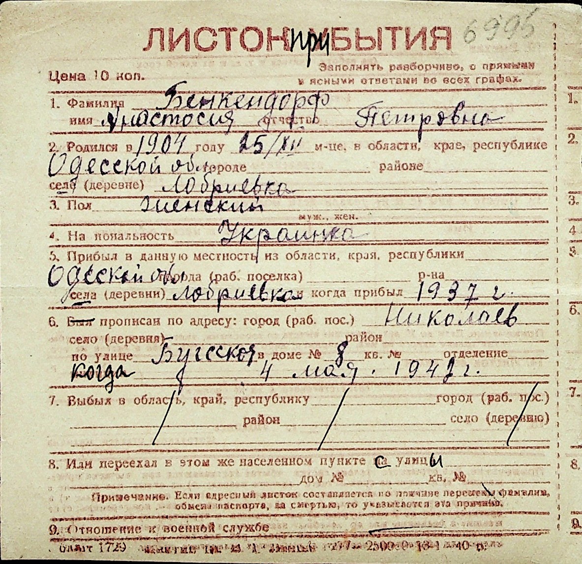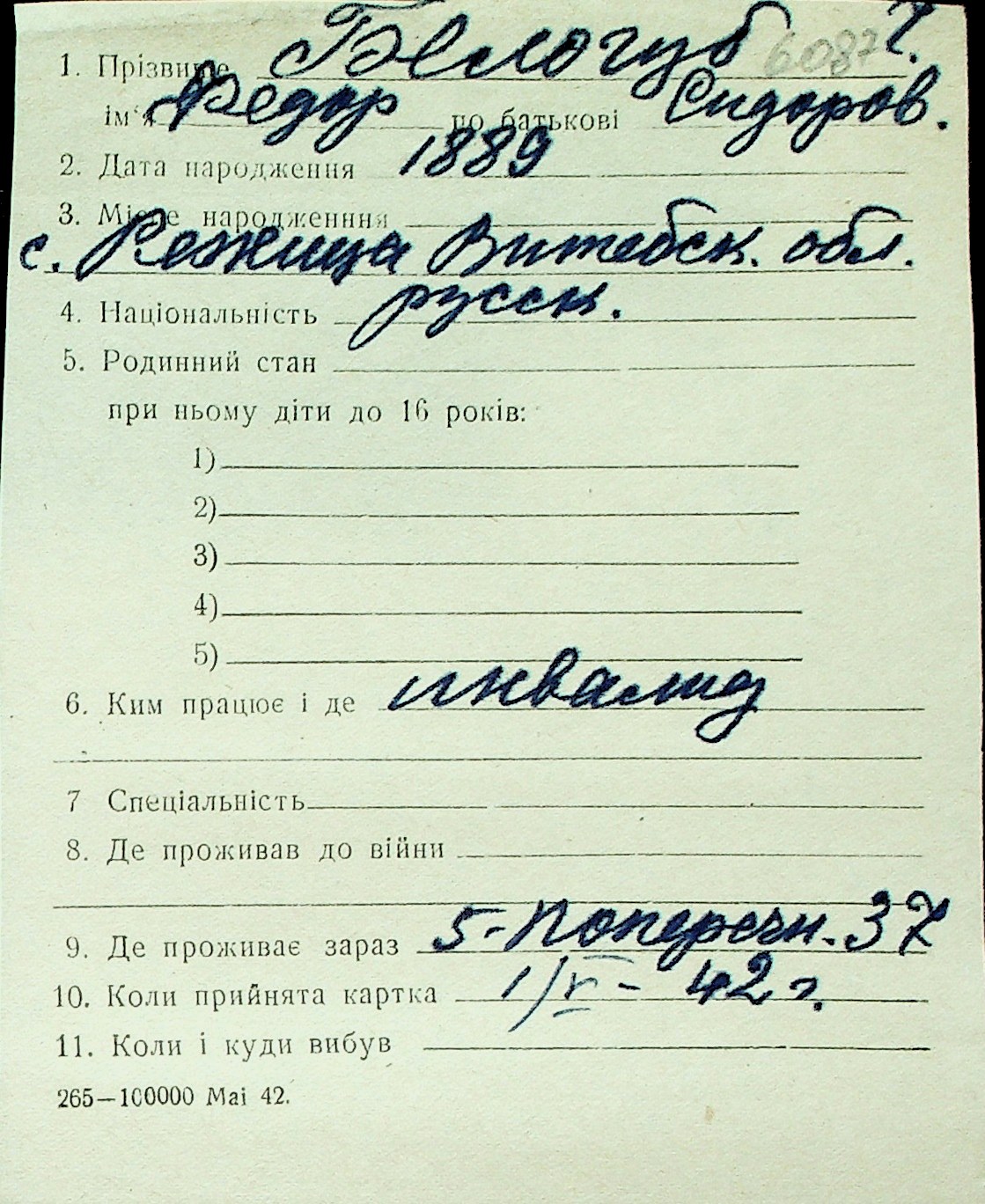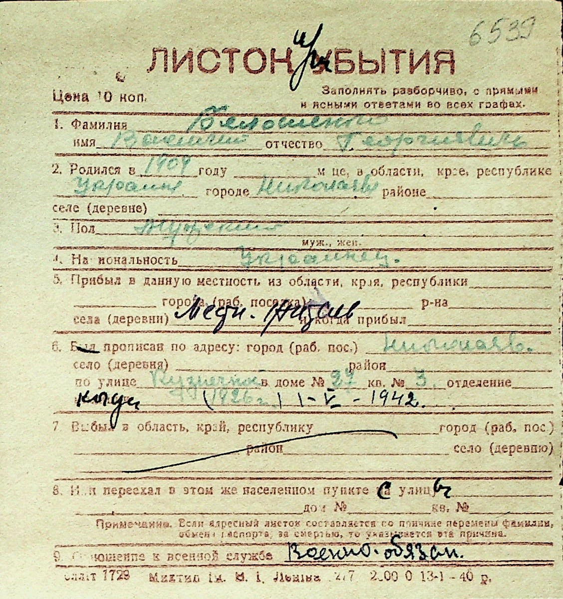 ◦ ◦ Перелік карток на осіб, які мешкали у м. Миколаїв у період окупації 1941–1944 років