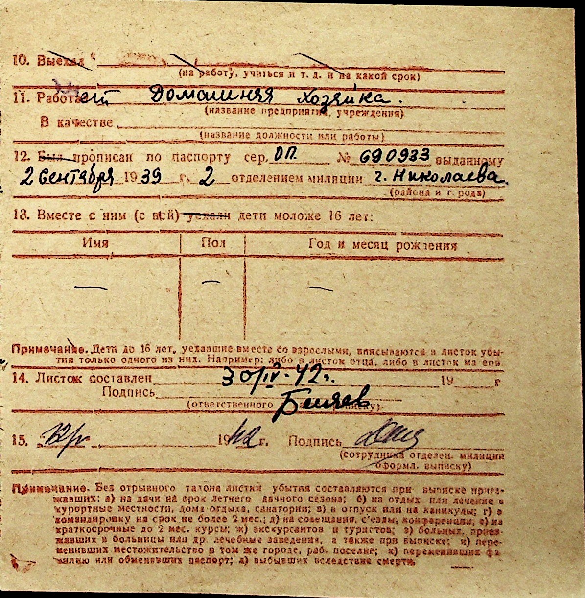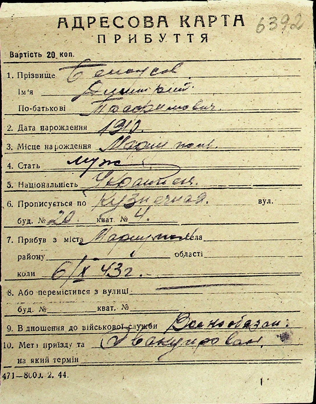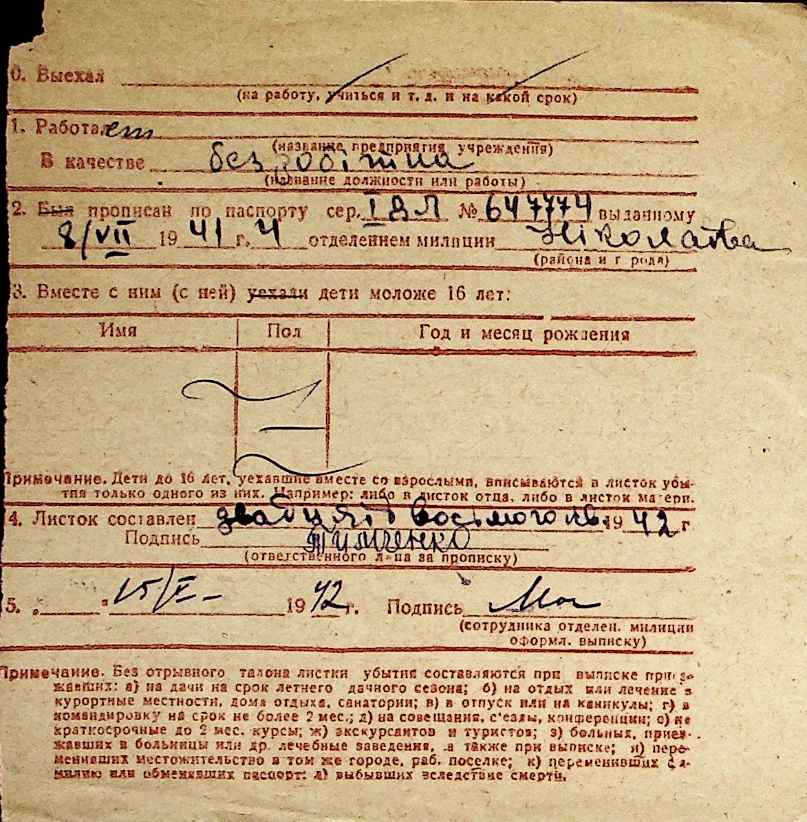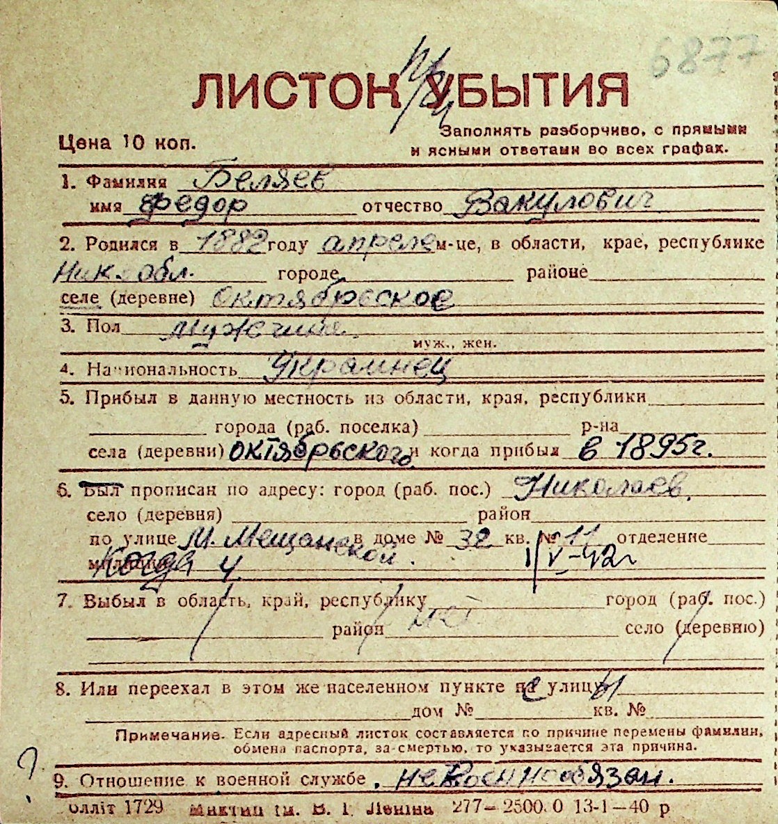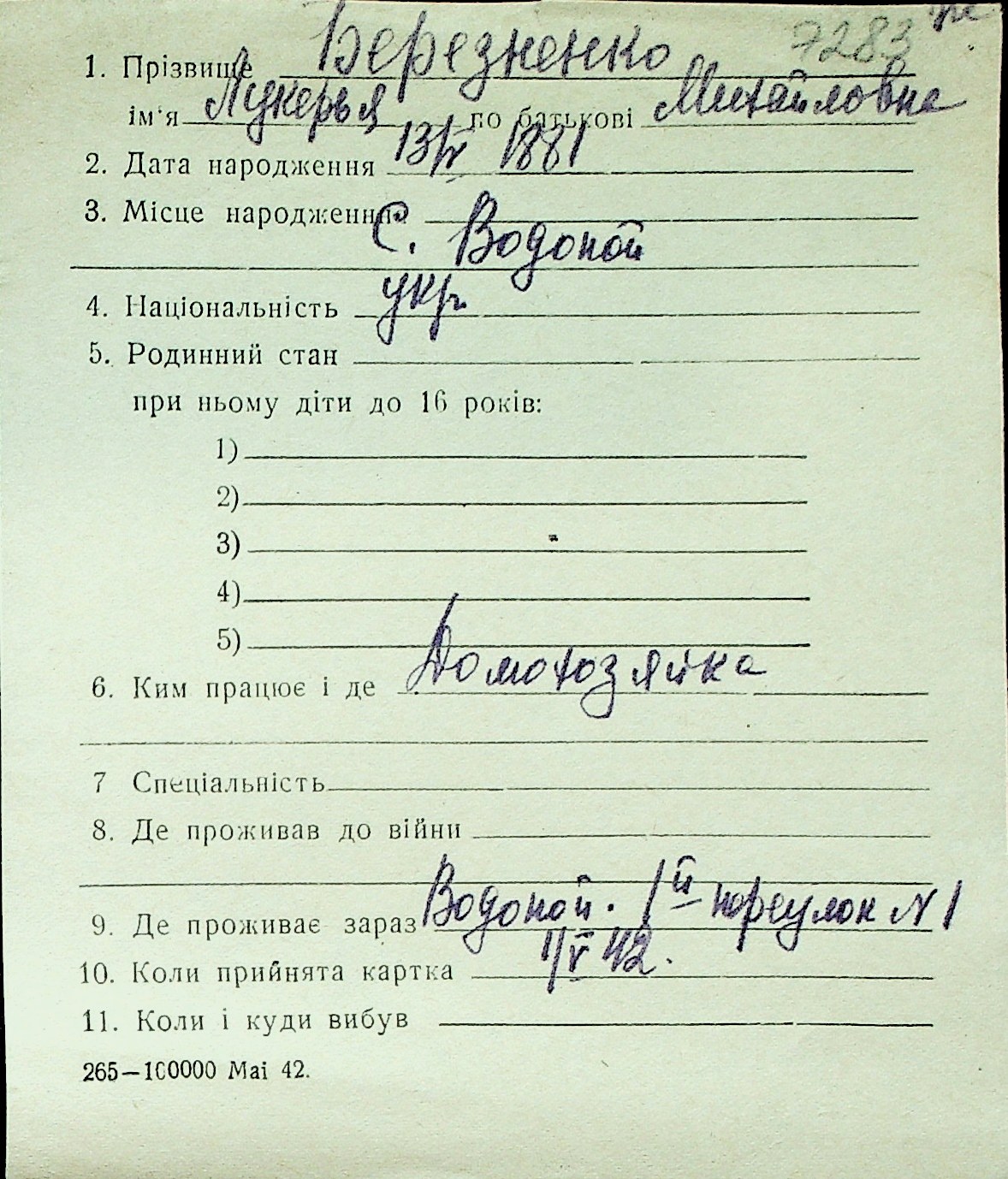◦ ◦ Перелік карток на осіб, які мешкали у м. Миколаїв у період окупації 1941–1944 років