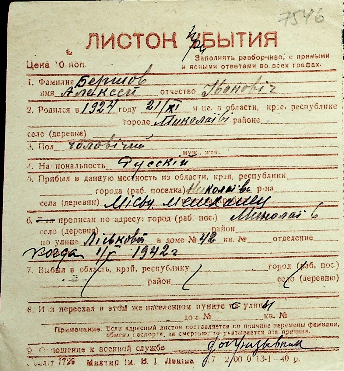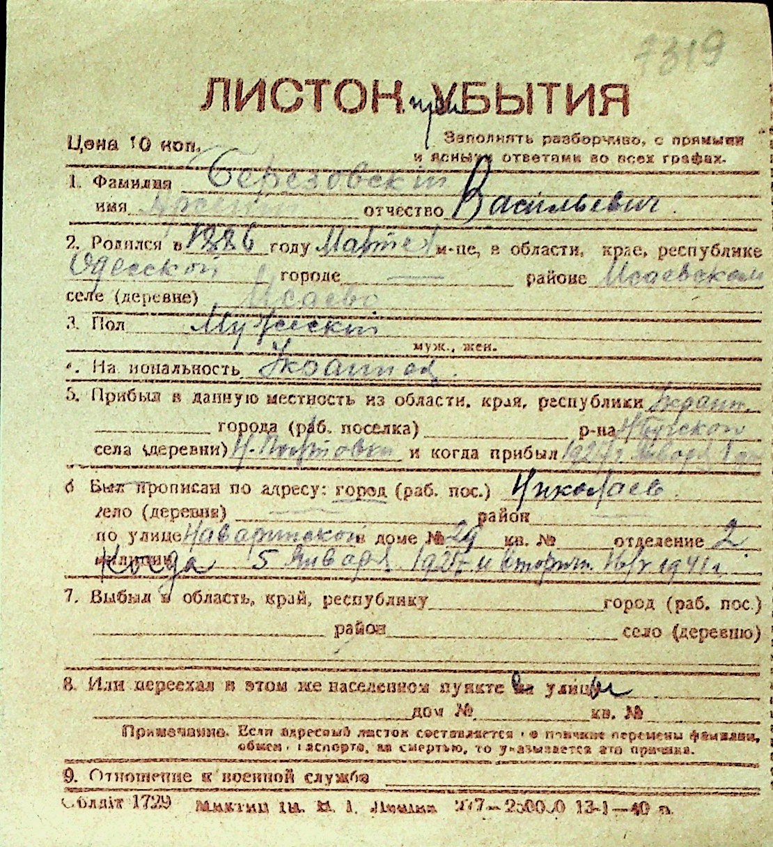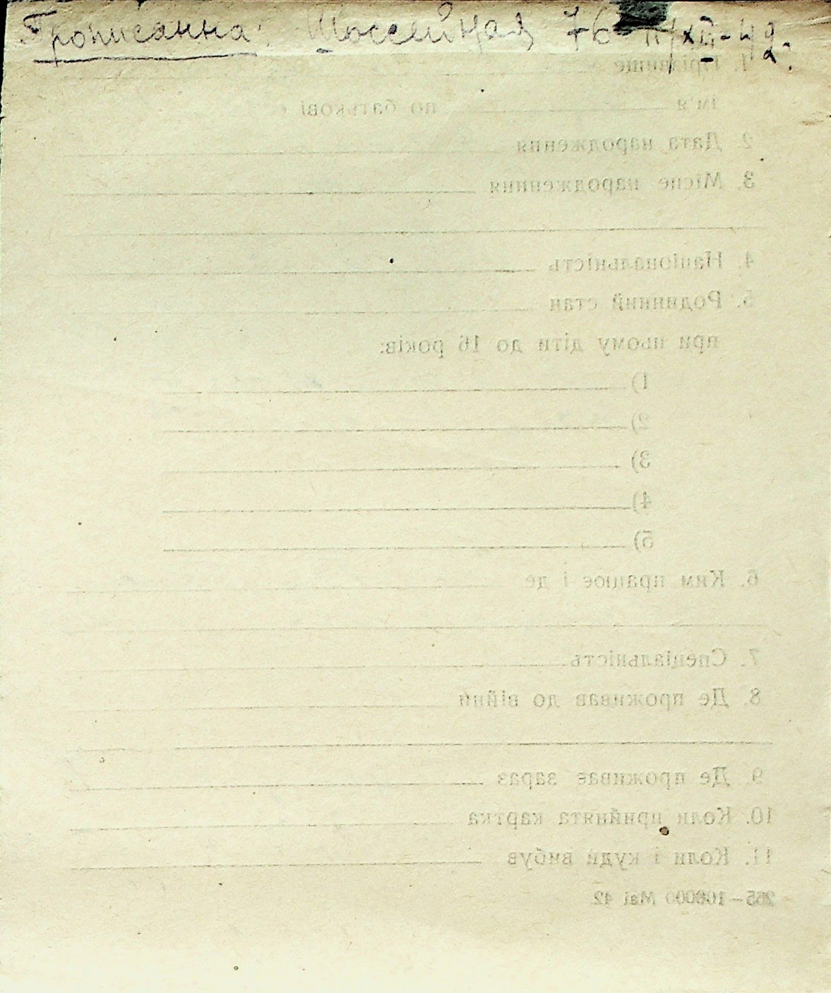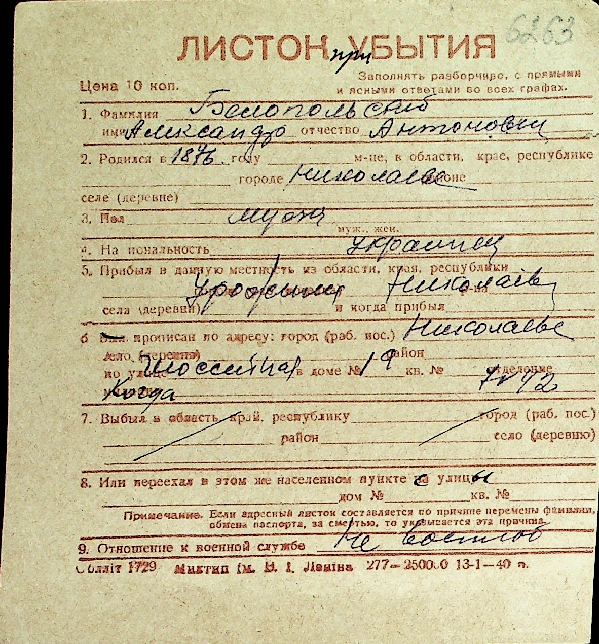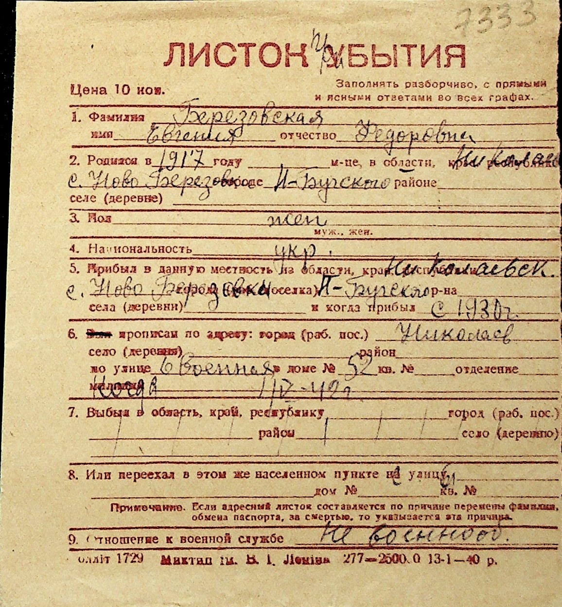 ◦ ◦ Перелік карток на осіб, які мешкали у м. Миколаїв у період окупації 1941–1944 років