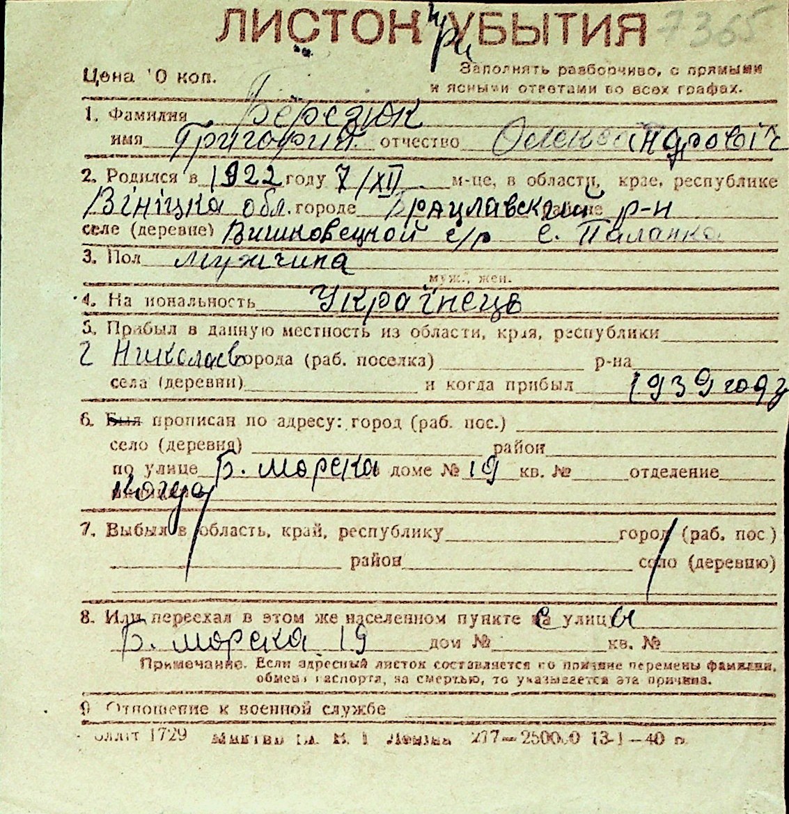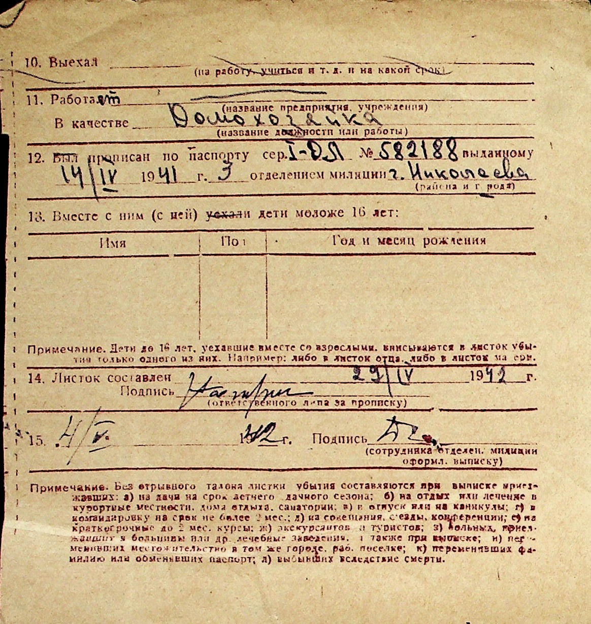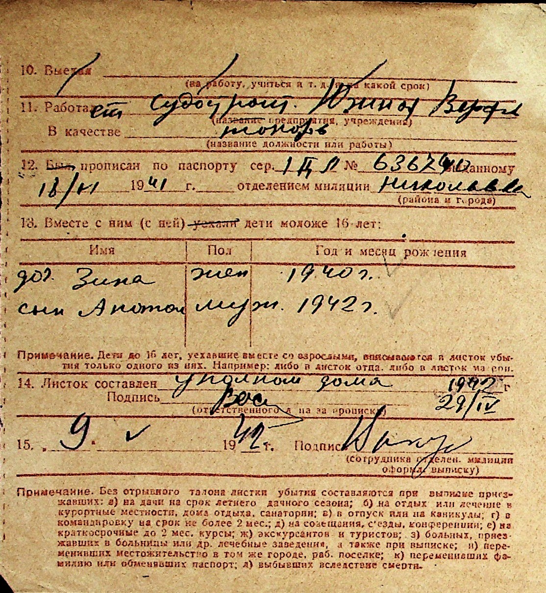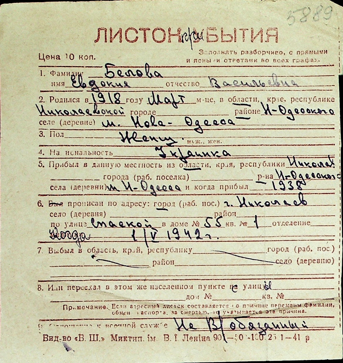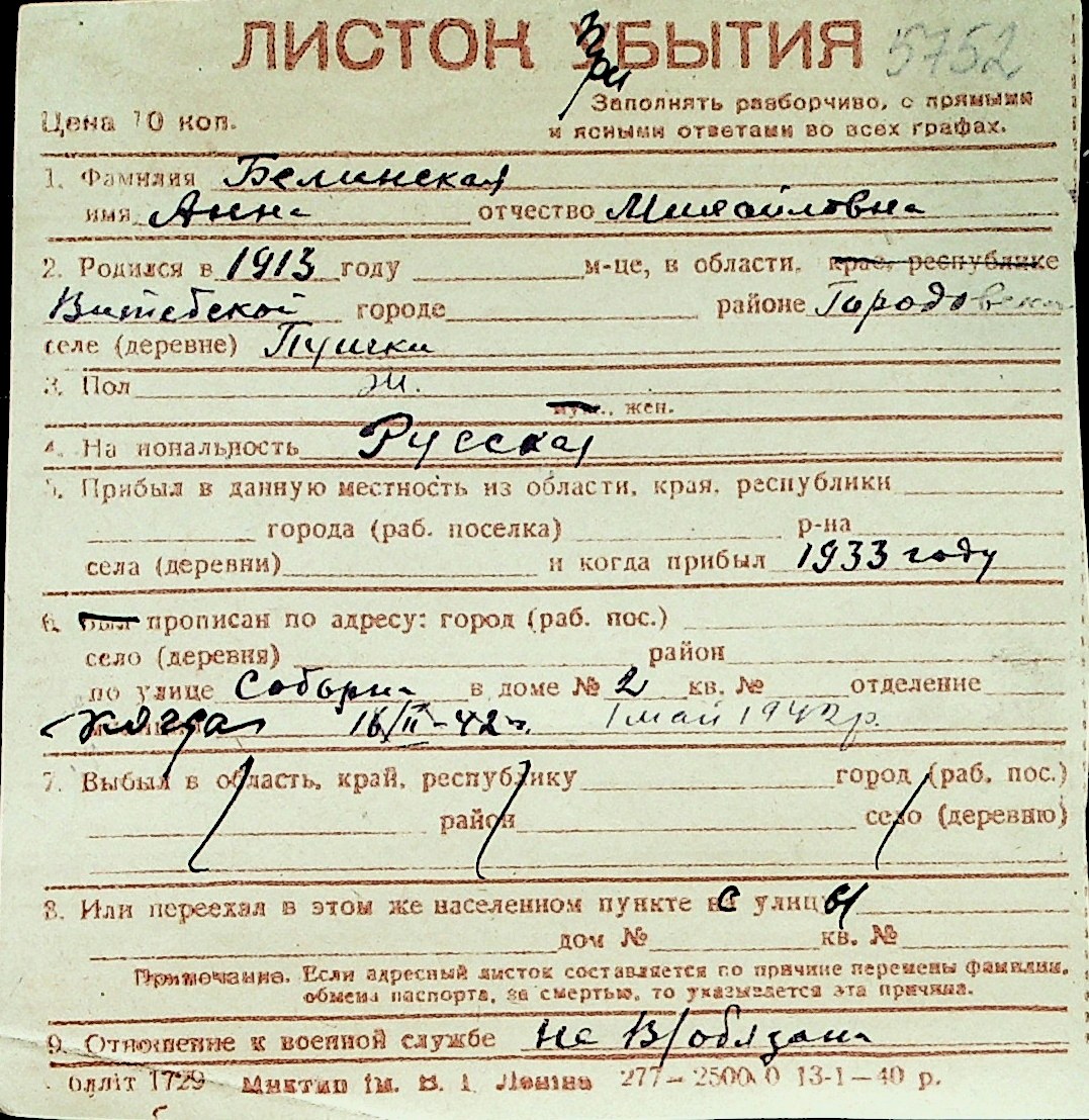 ◦ ◦ Перелік карток на осіб, які мешкали у м. Миколаїв у період окупації 1941–1944 років