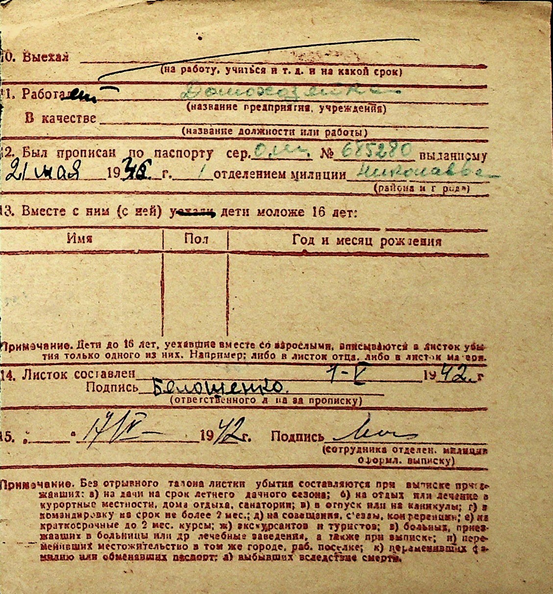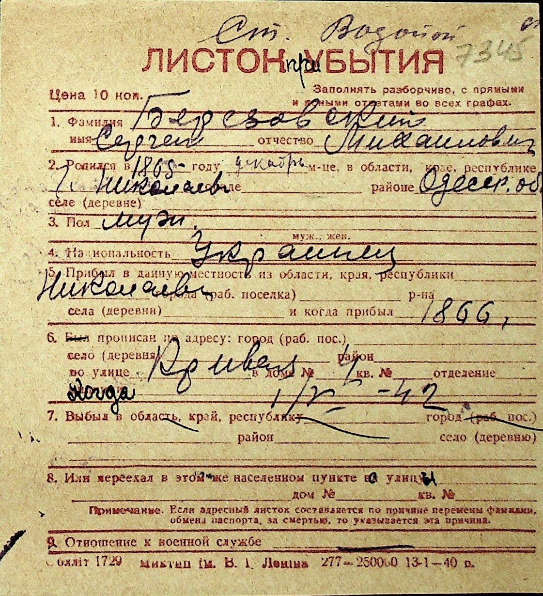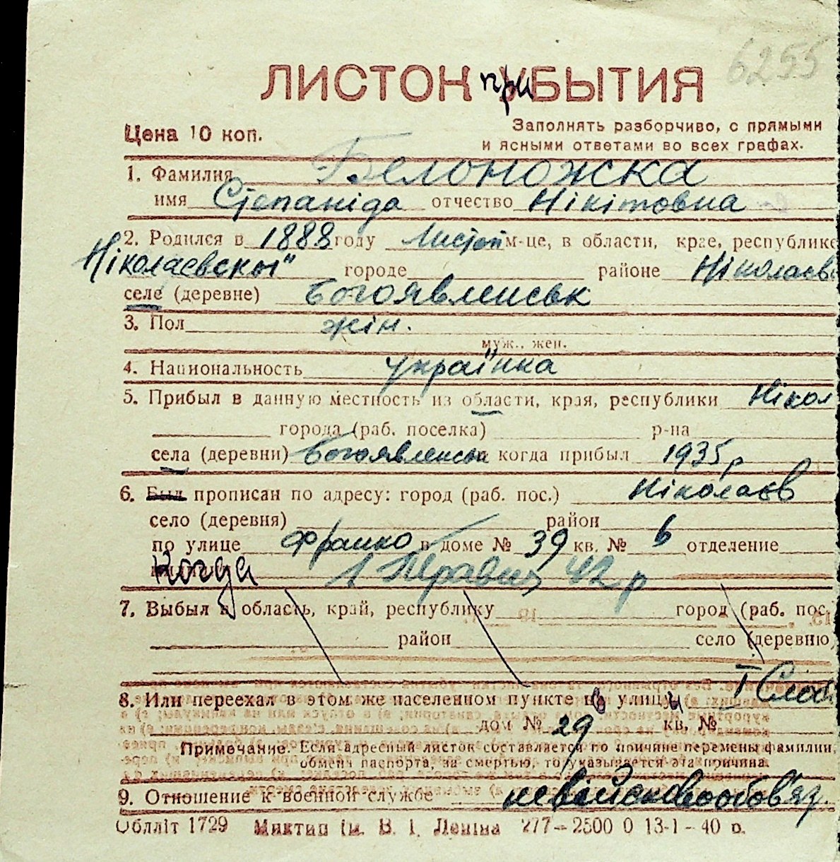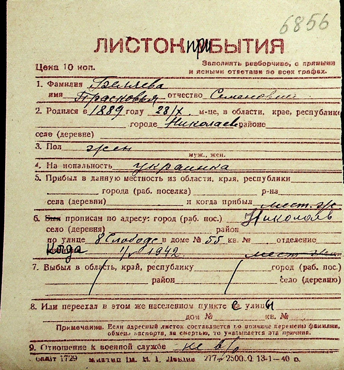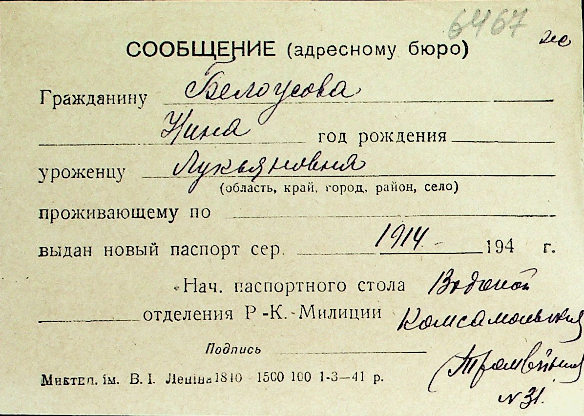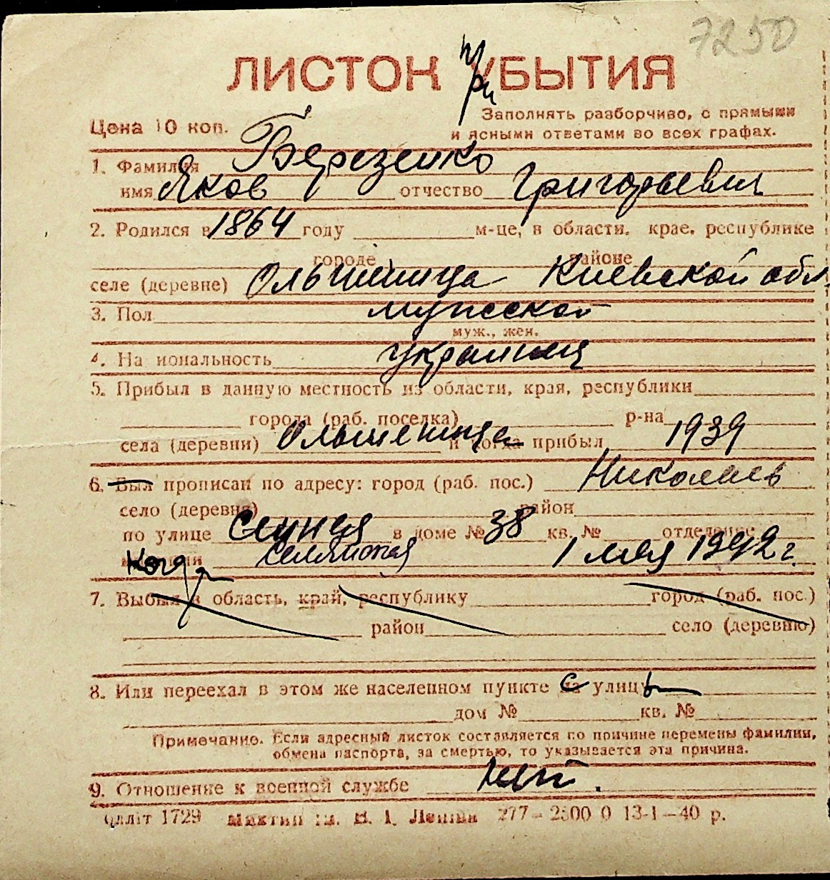 ◦ ◦ Перелік карток на осіб, які мешкали у м. Миколаїв у період окупації 1941–1944 років