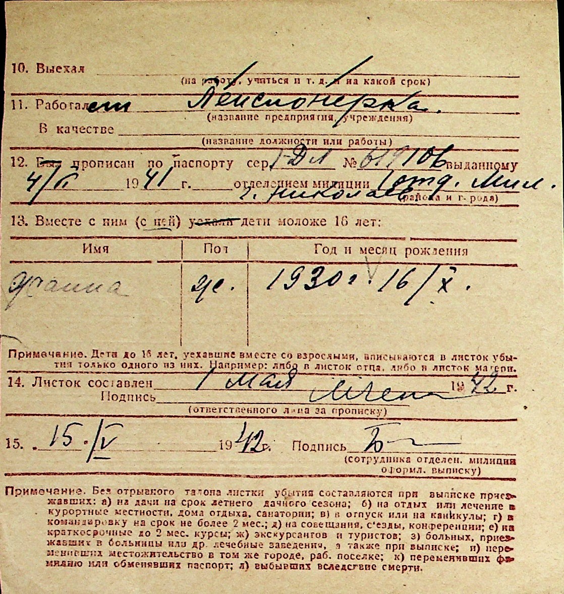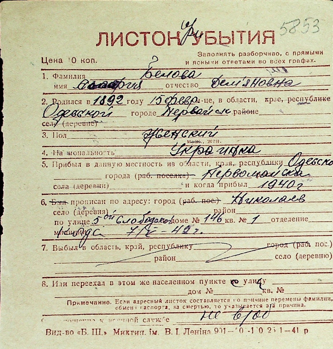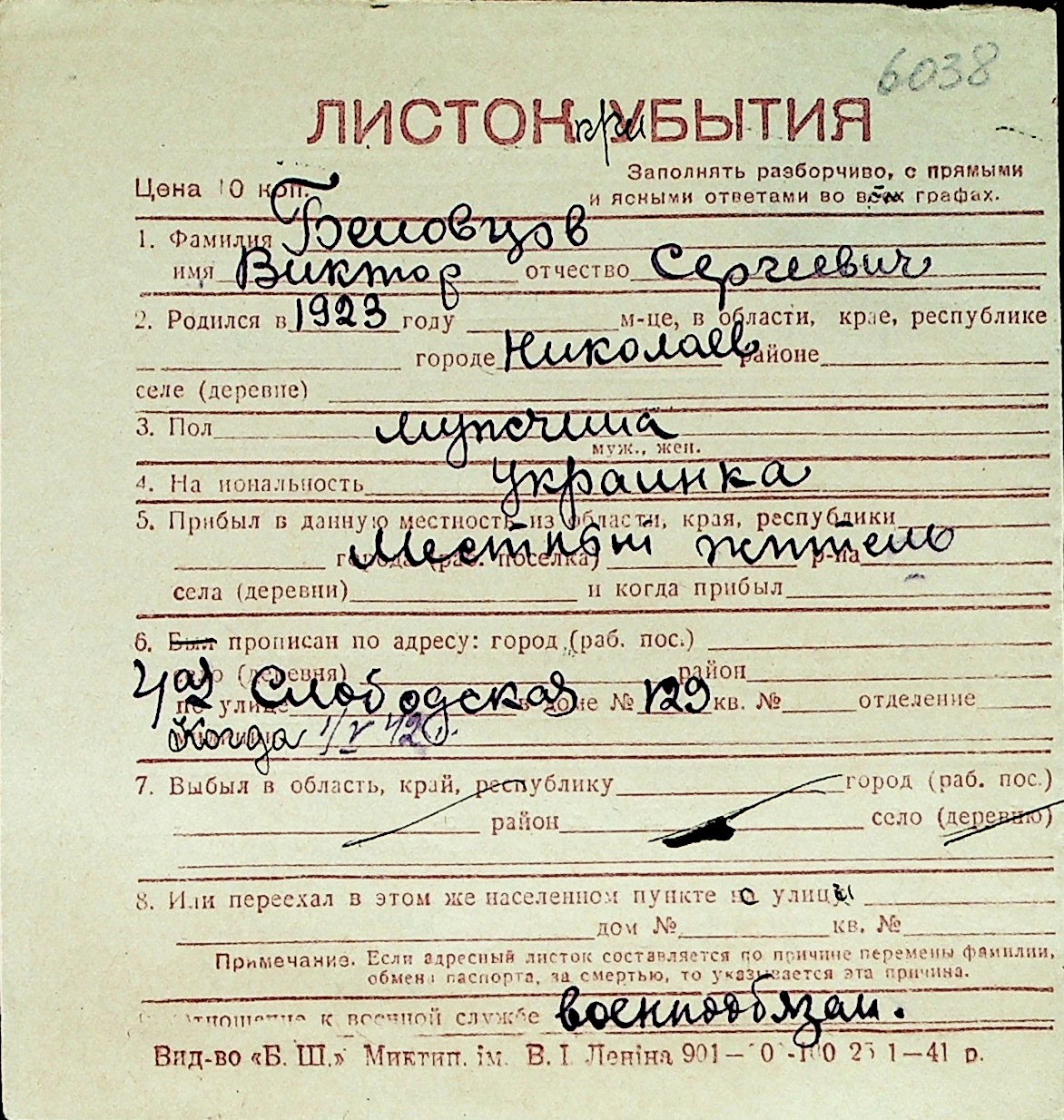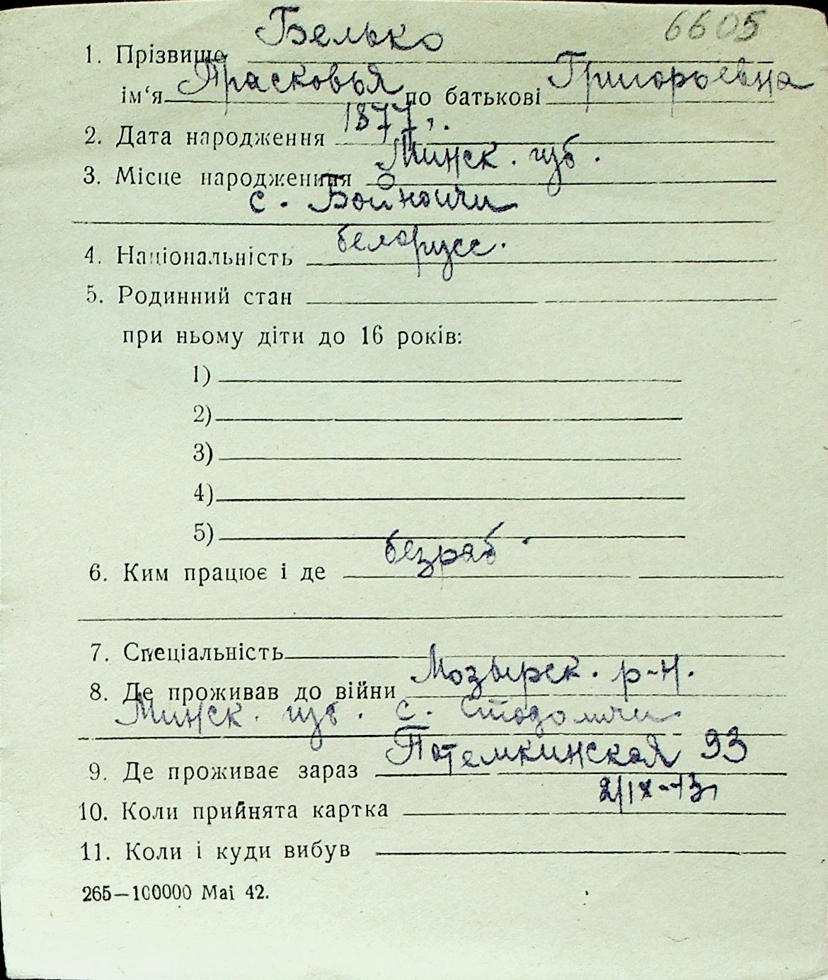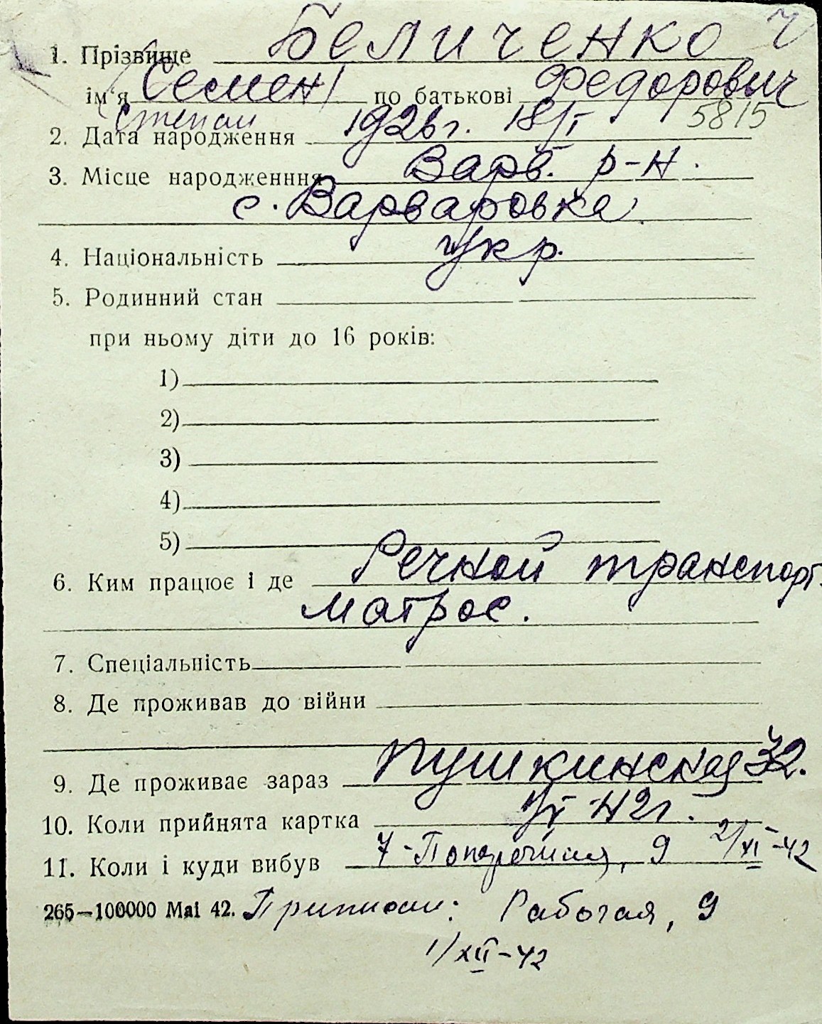 ◦ ◦ Перелік карток на осіб, які мешкали у м. Миколаїв у період окупації 1941–1944 років