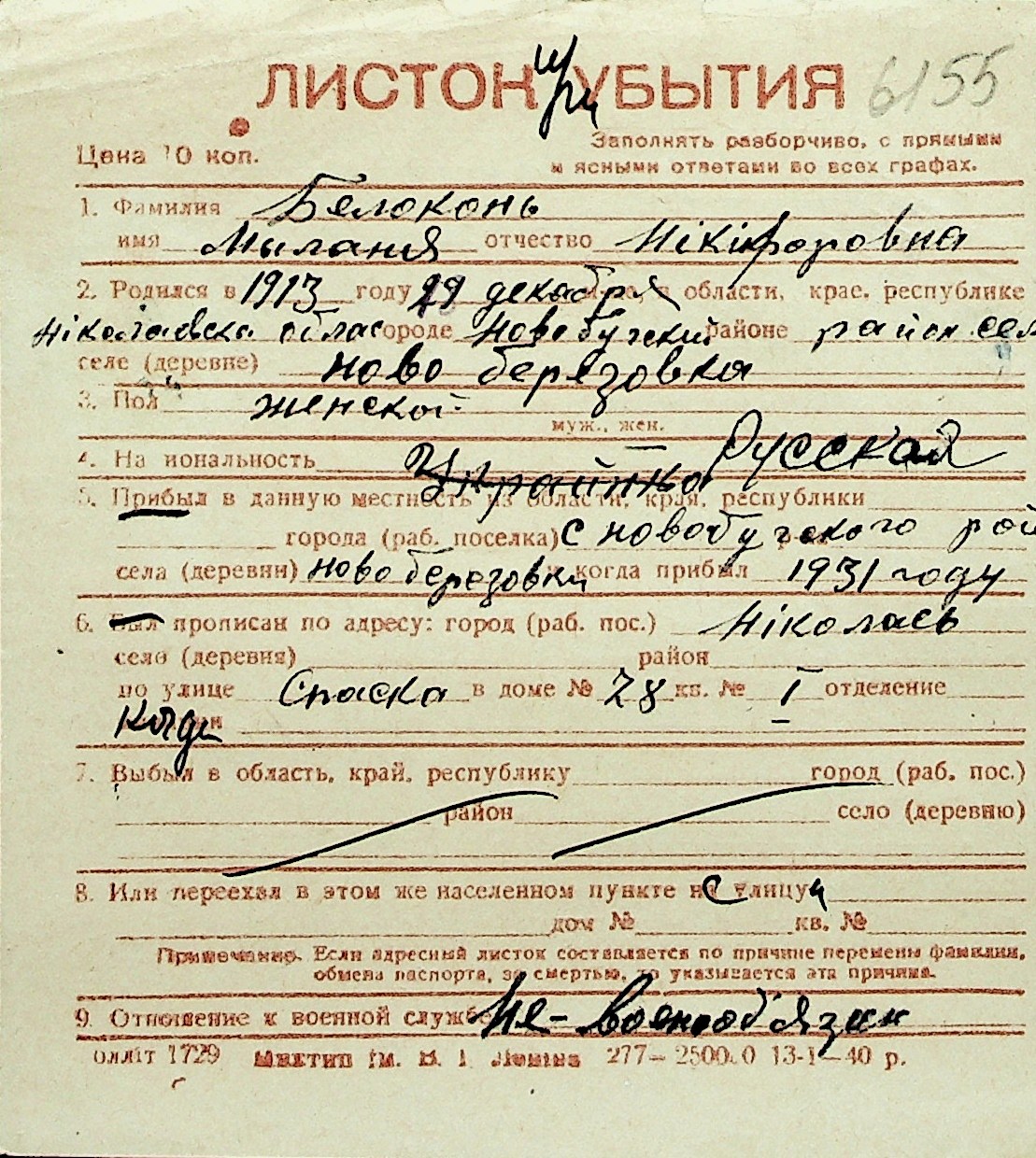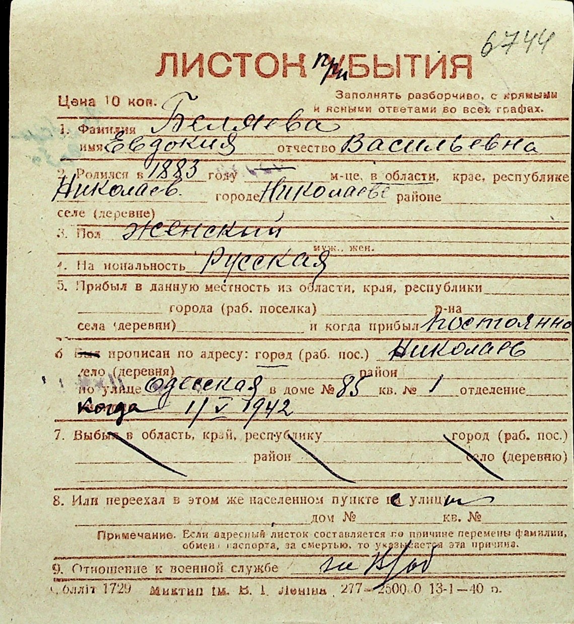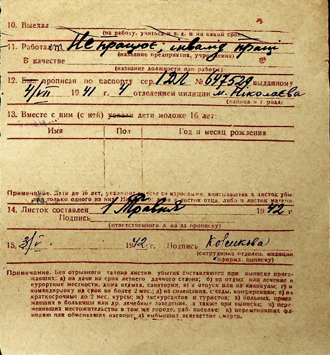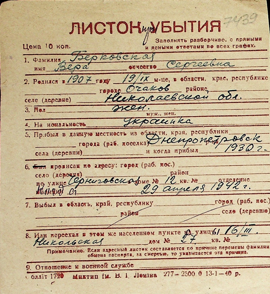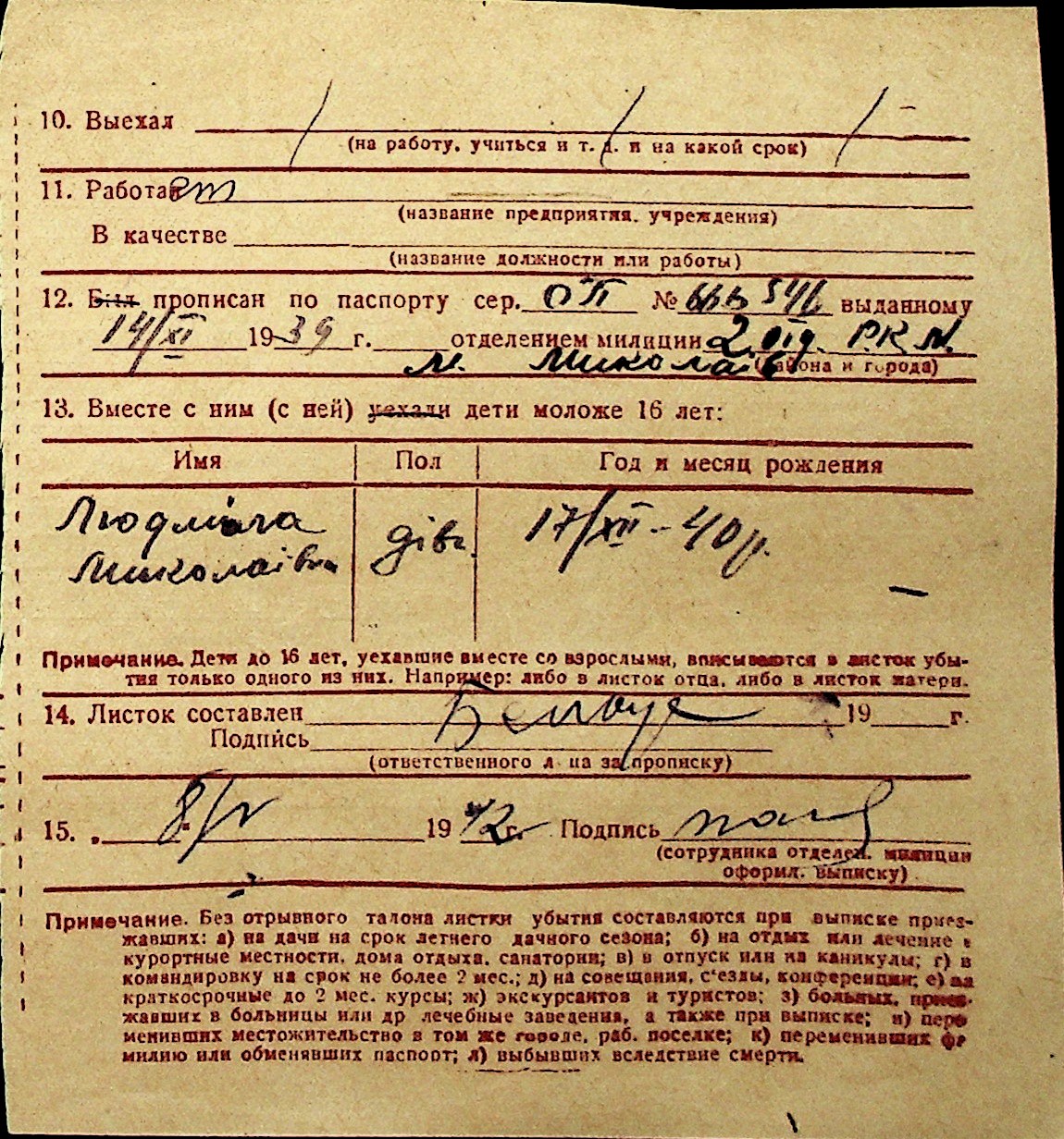 ◦ ◦ Перелік карток на осіб, які мешкали у м. Миколаїв у період окупації 1941–1944 років