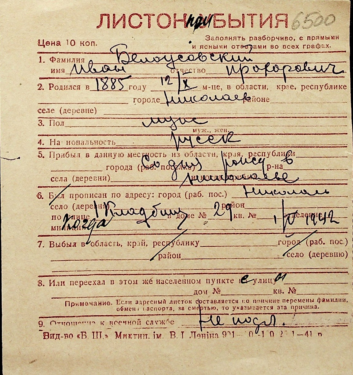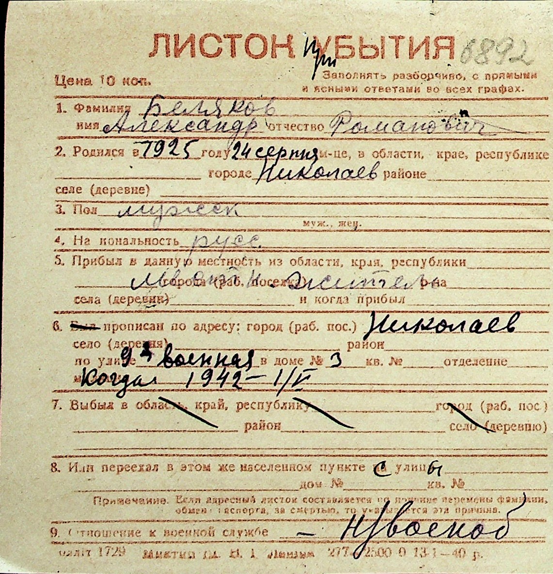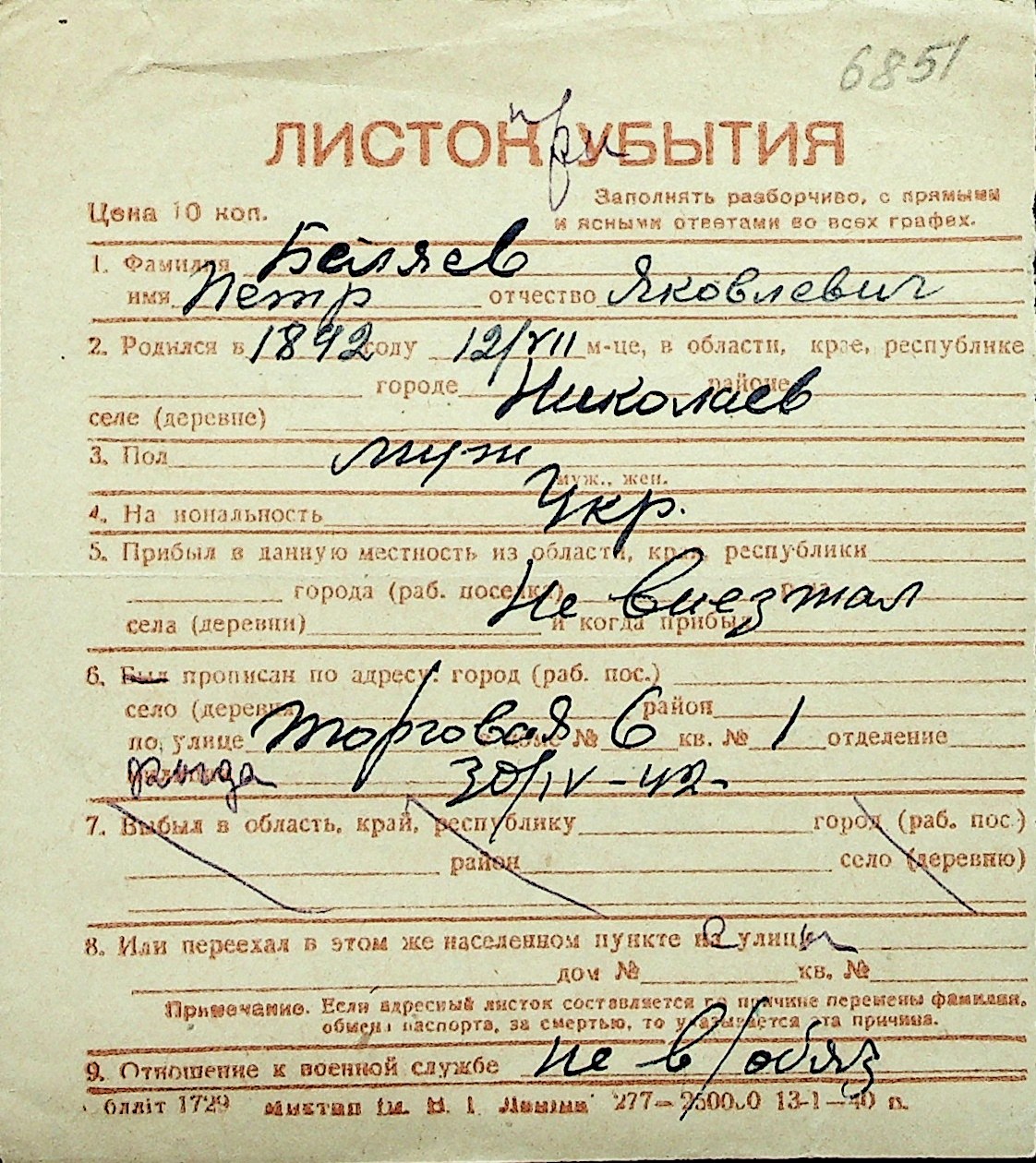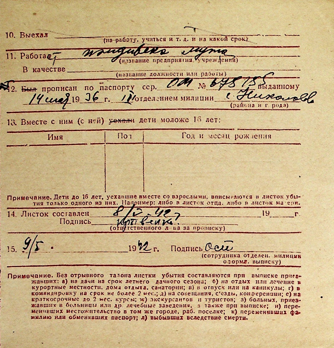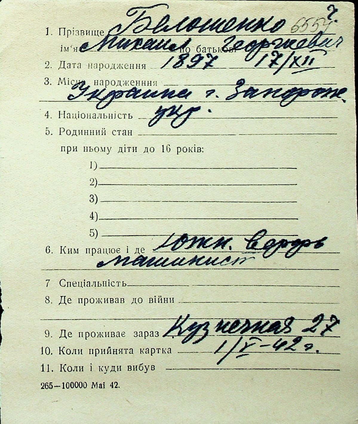 ◦ ◦ Перелік карток на осіб, які мешкали у м. Миколаїв у період окупації 1941–1944 років
