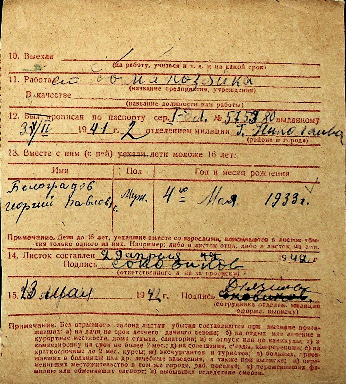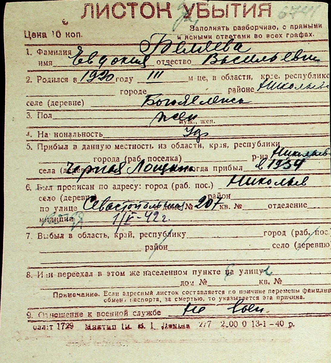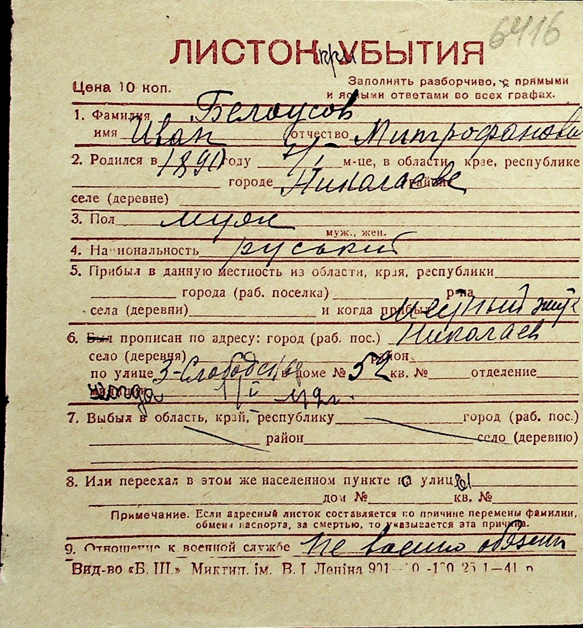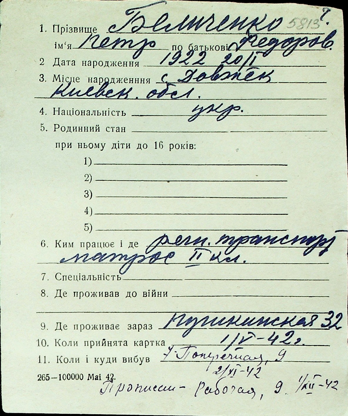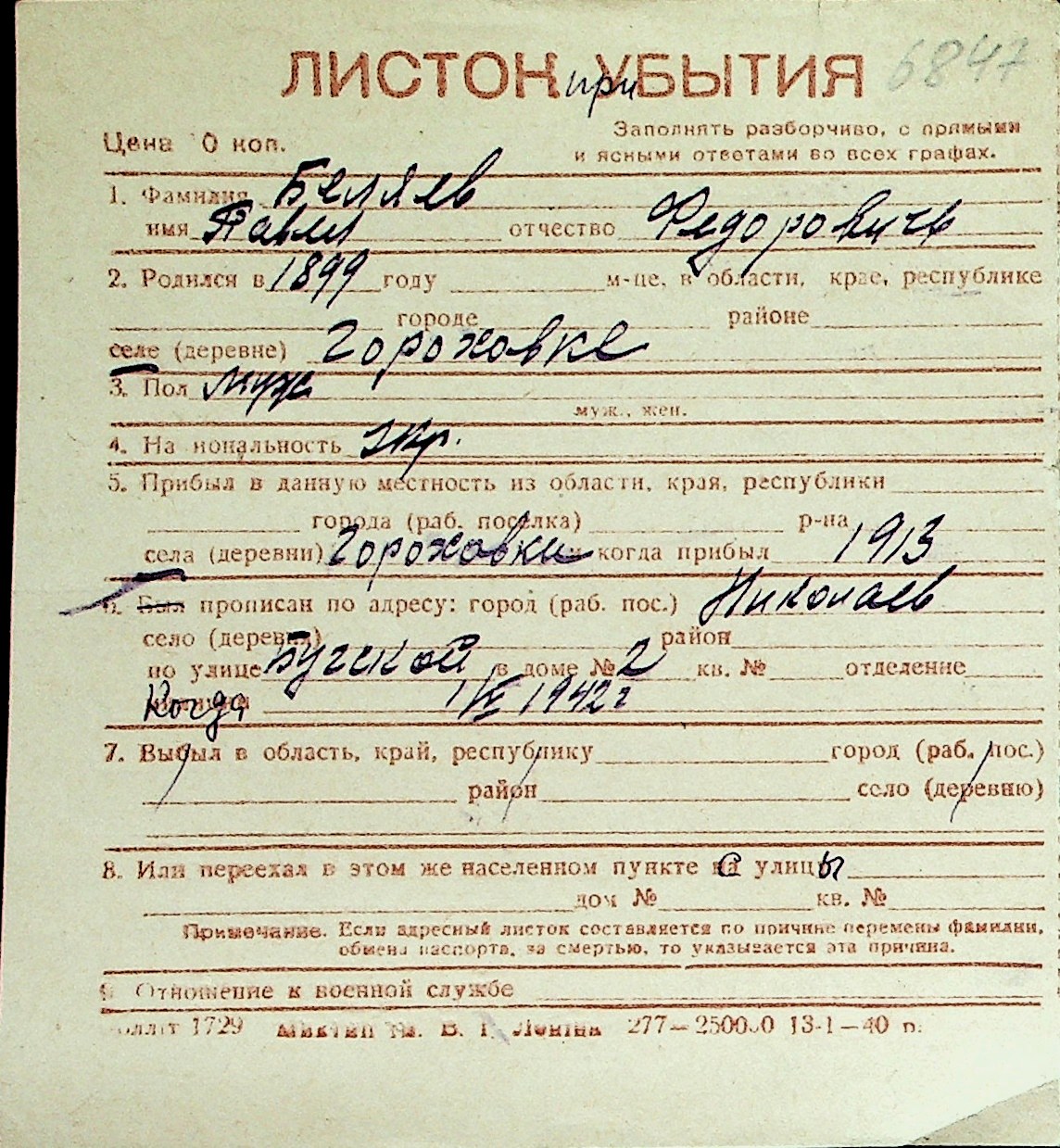 ◦ ◦ Перелік карток на осіб, які мешкали у м. Миколаїв у період окупації 1941–1944 років