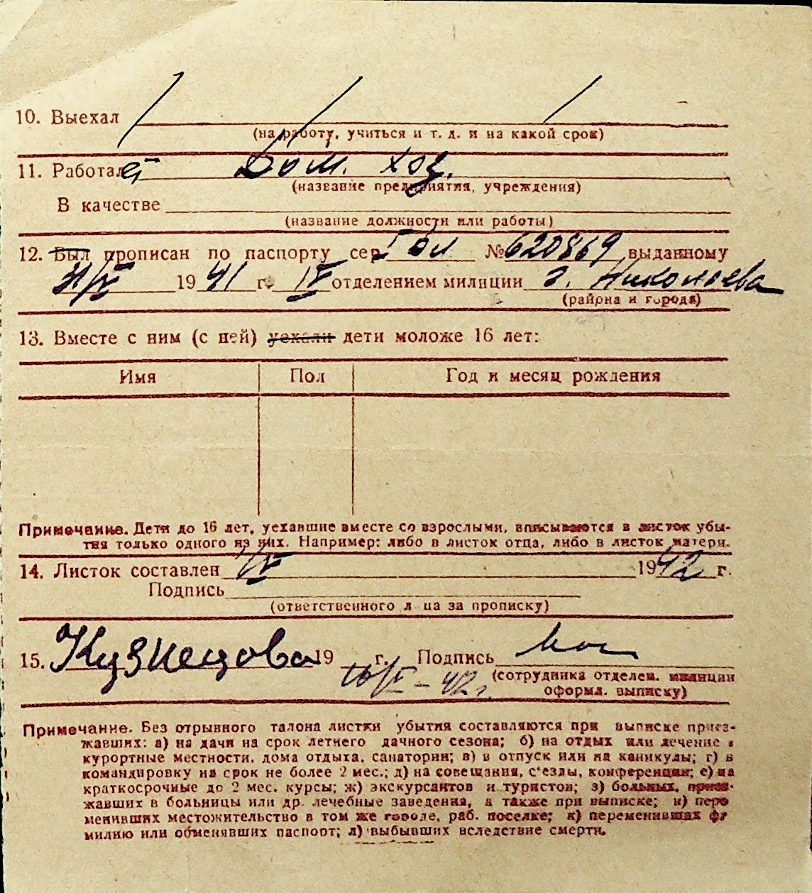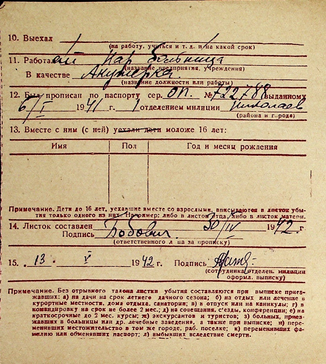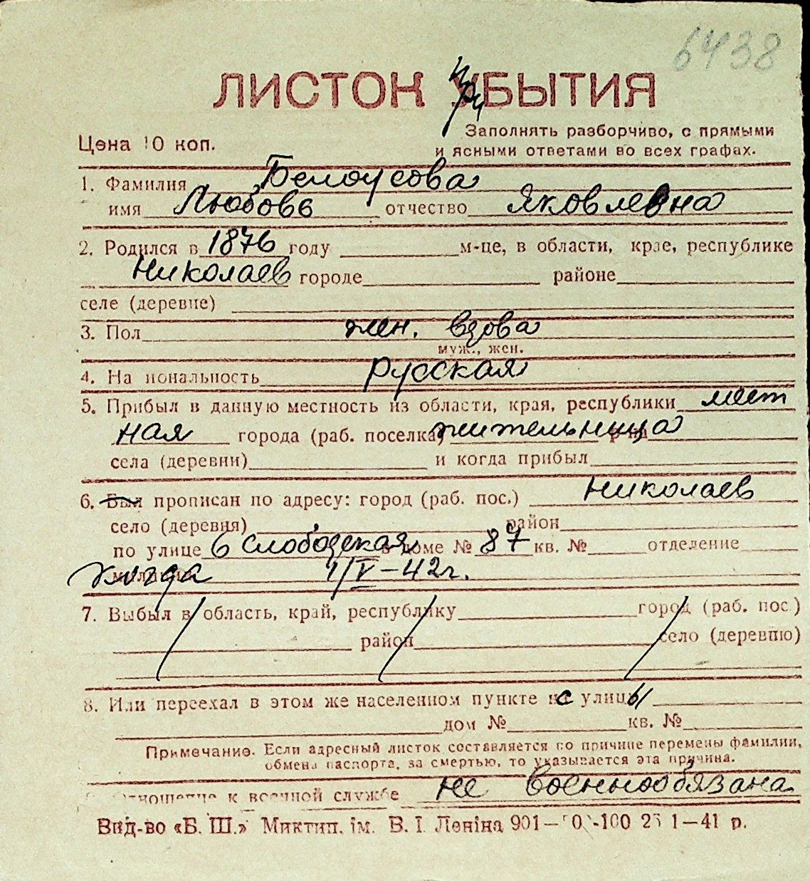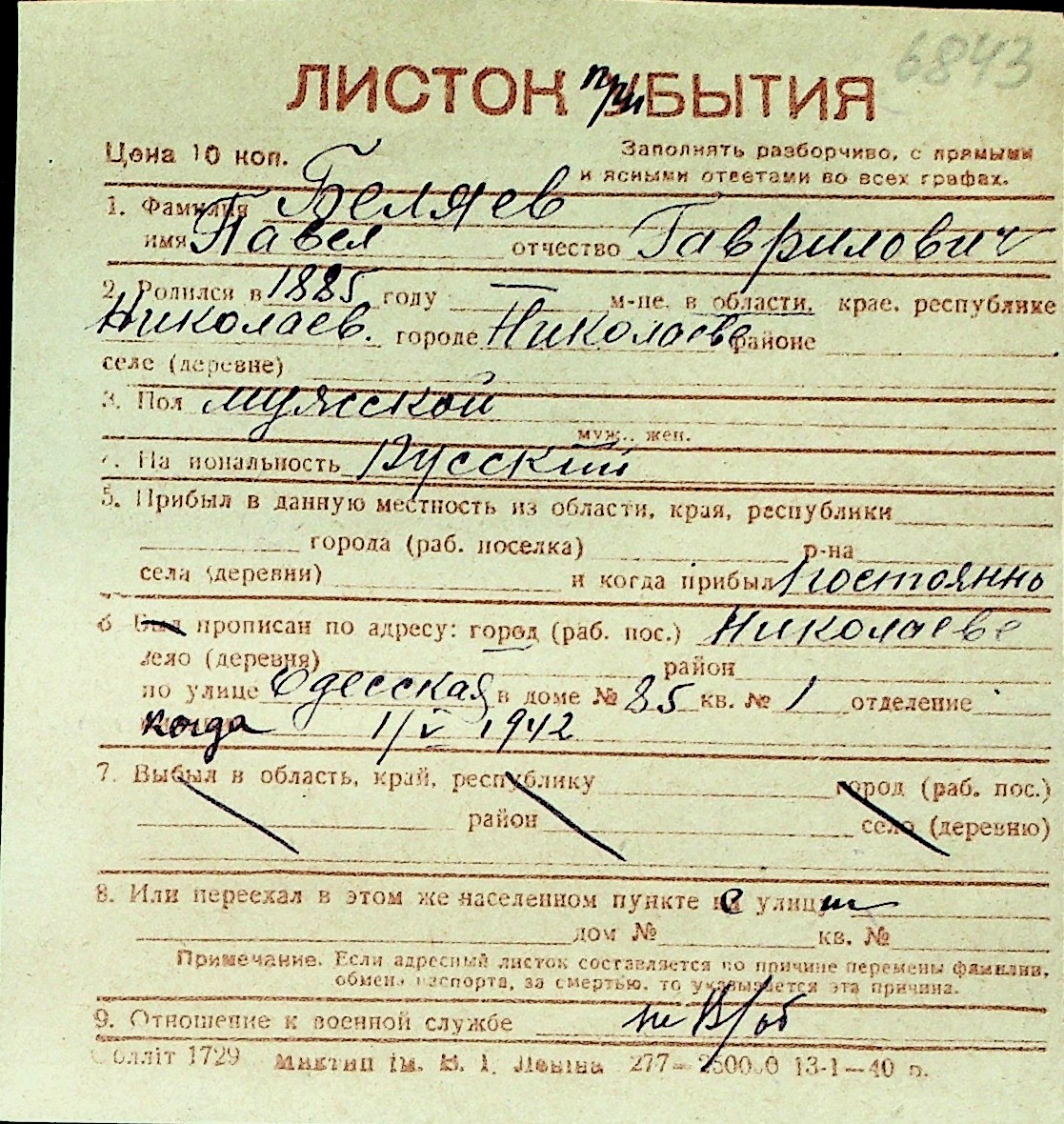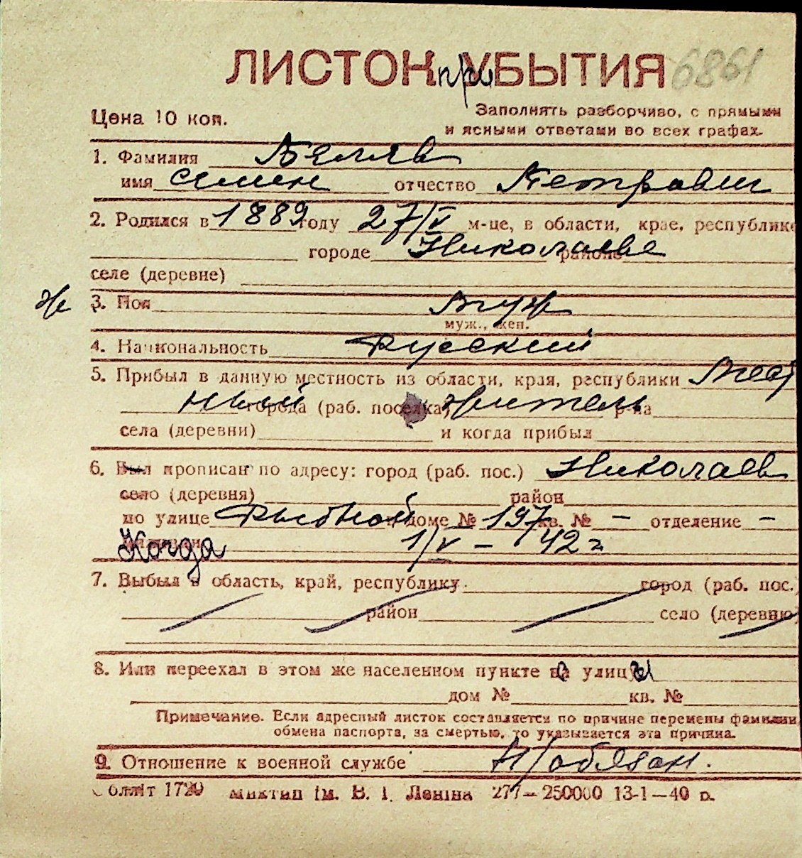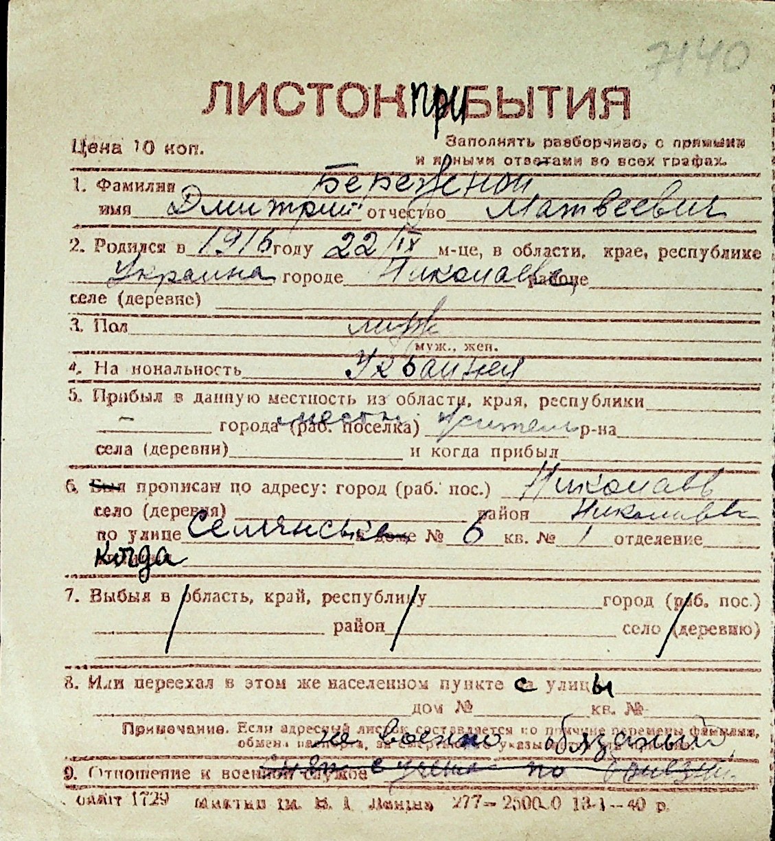 ◦ ◦ Перелік карток на осіб, які мешкали у м. Миколаїв у період окупації 1941–1944 років