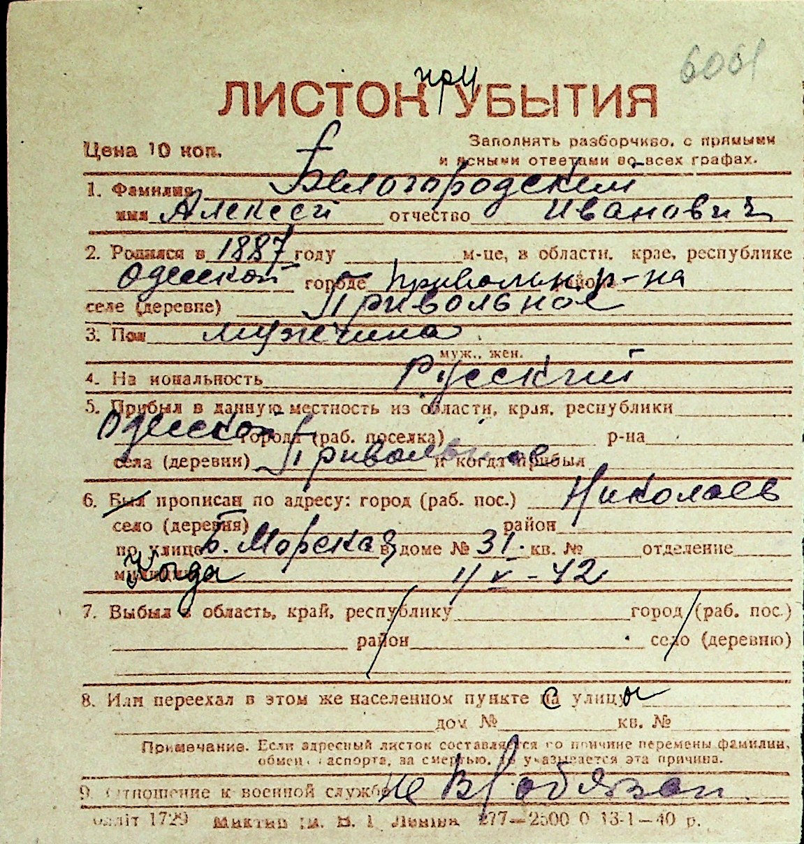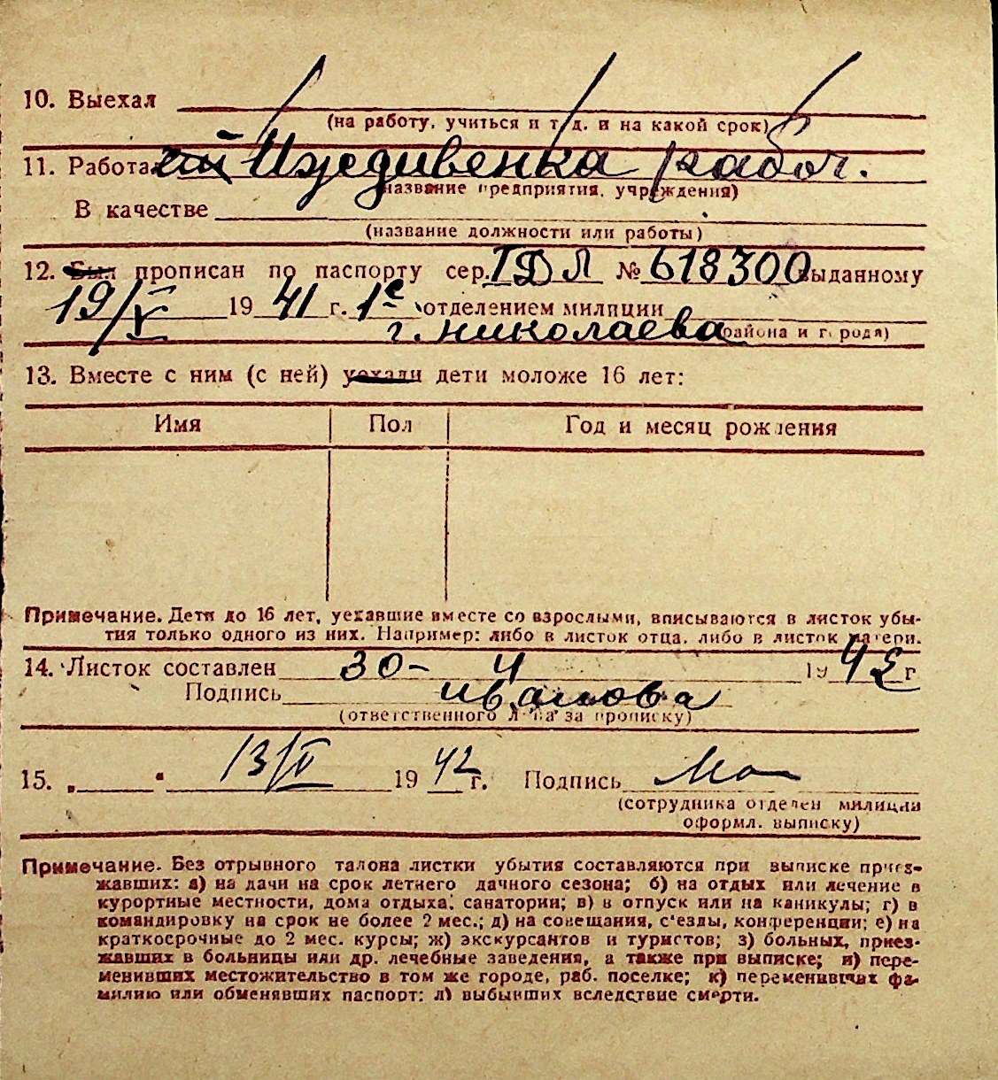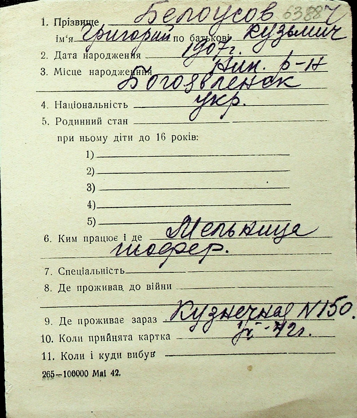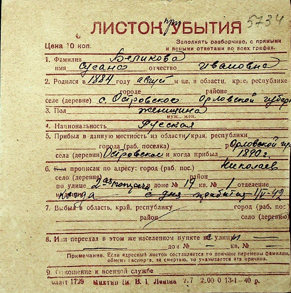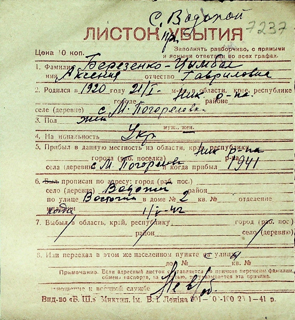 ◦ ◦ Перелік карток на осіб, які мешкали у м. Миколаїв у період окупації 1941–1944 років