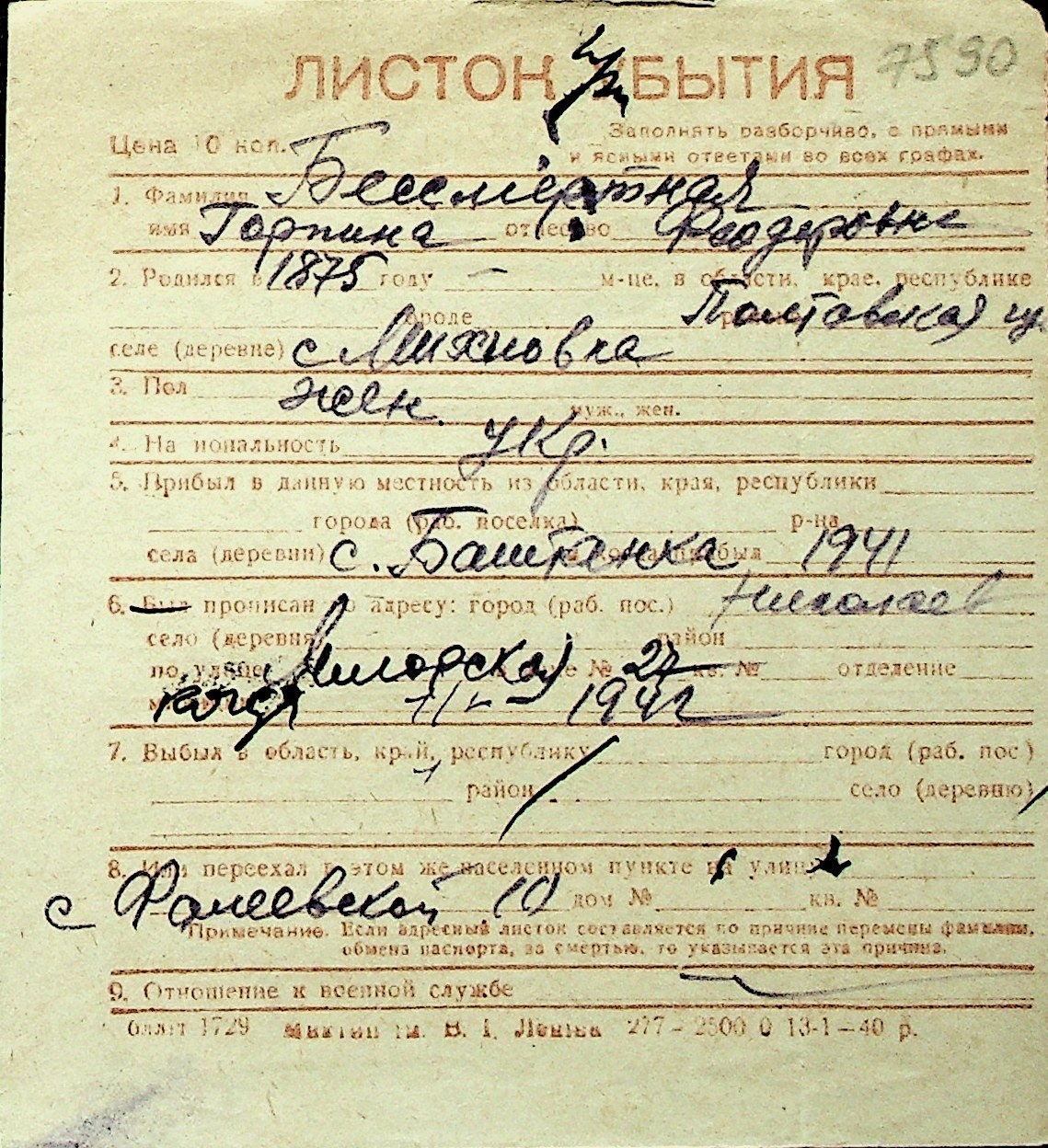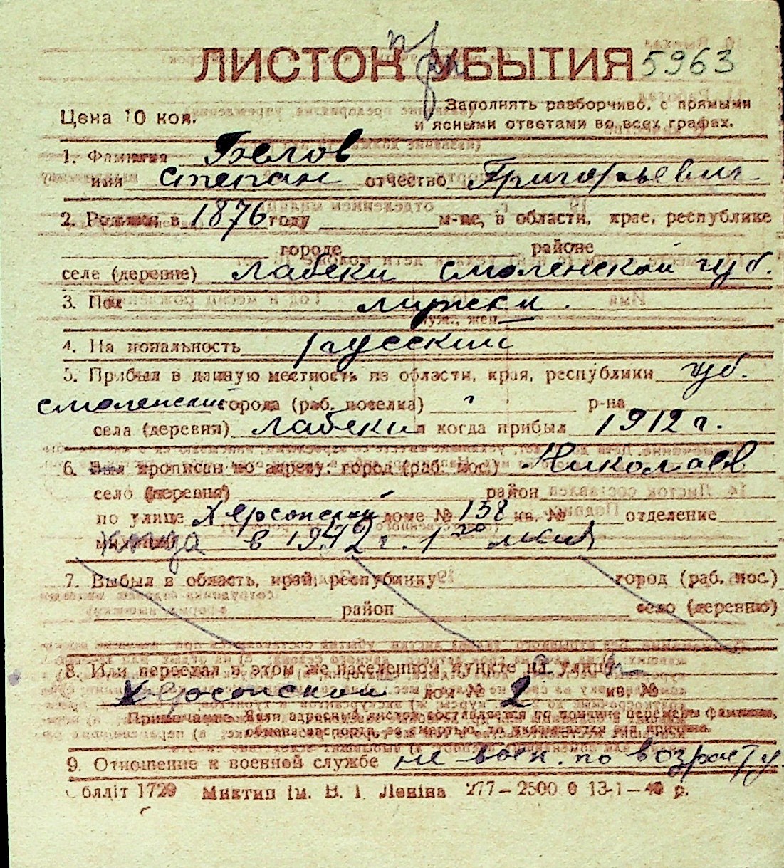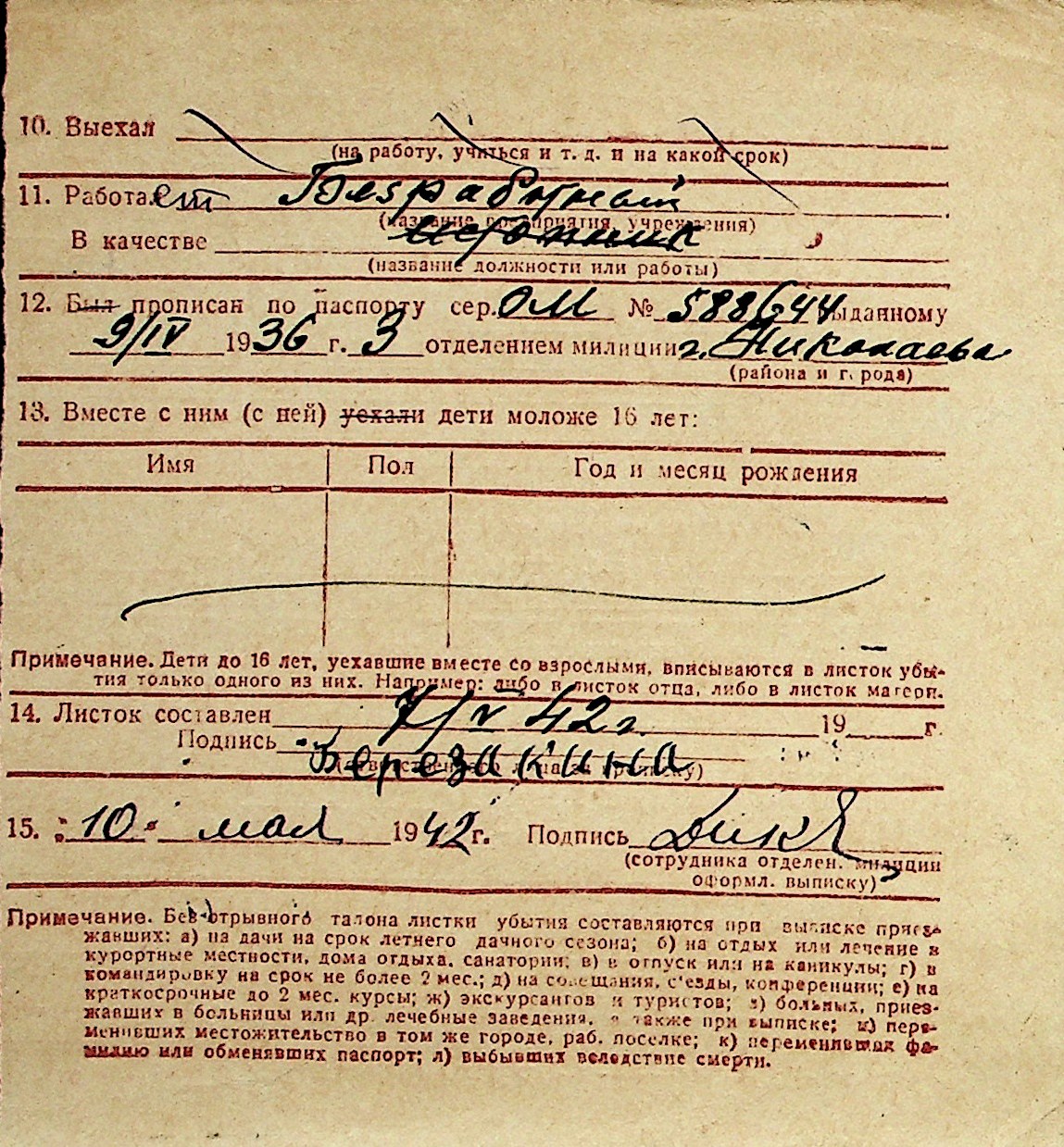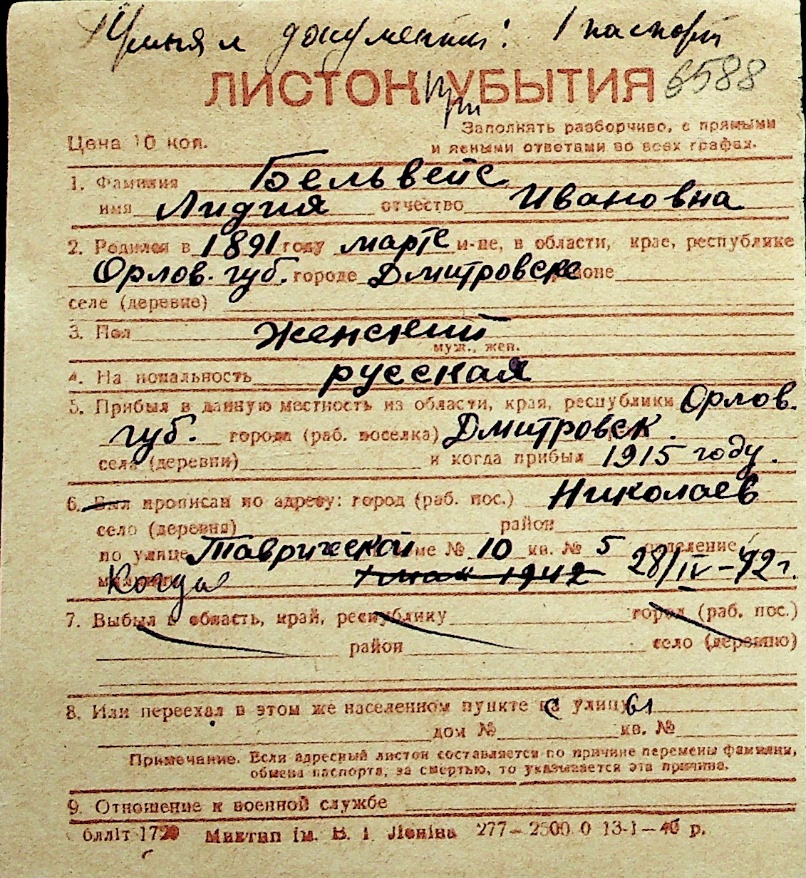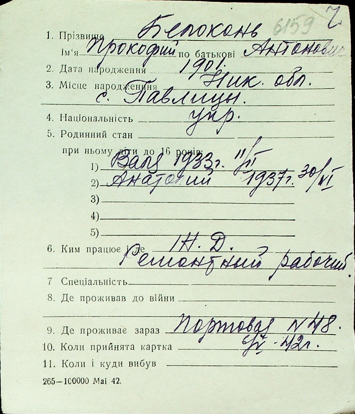 ◦ ◦ Перелік карток на осіб, які мешкали у м. Миколаїв у період окупації 1941–1944 років