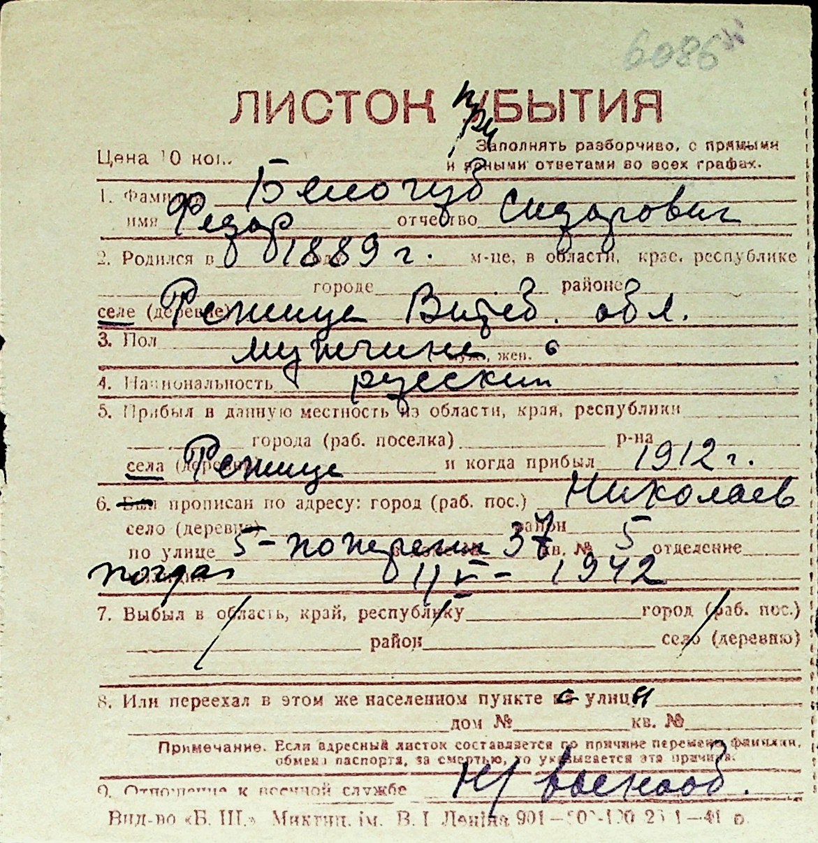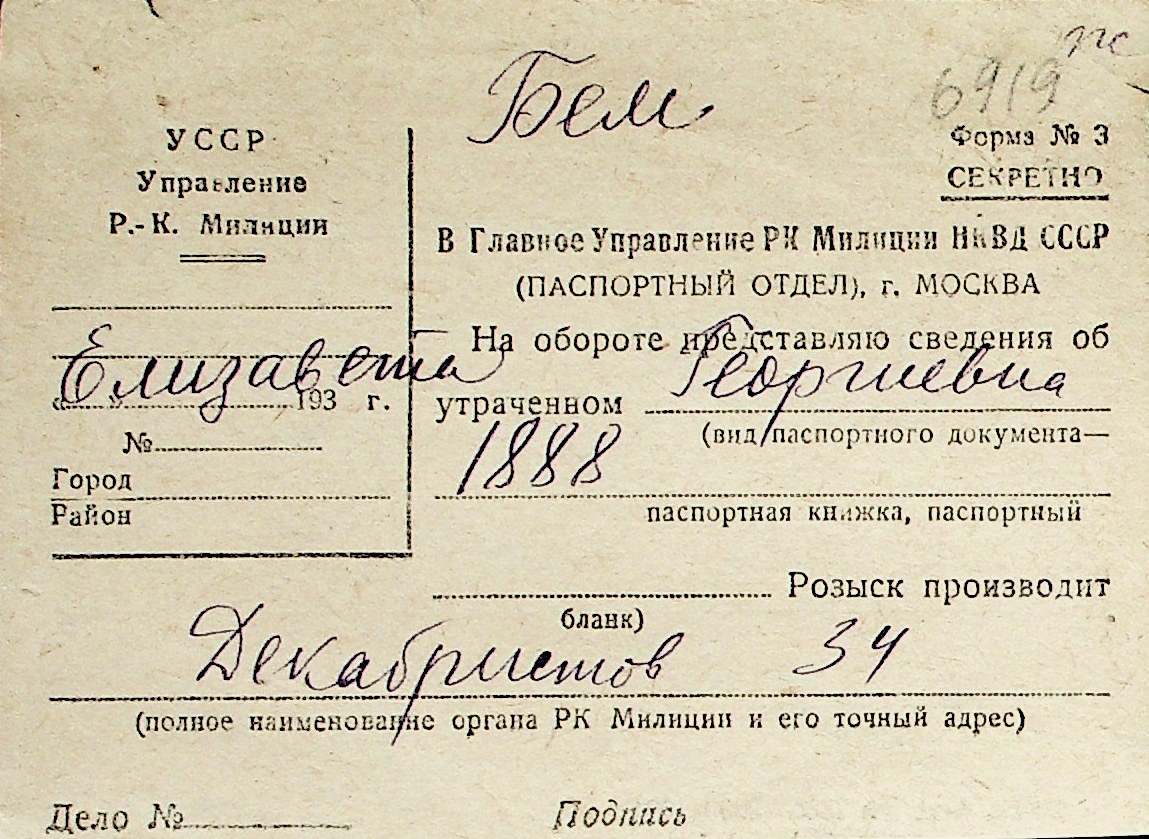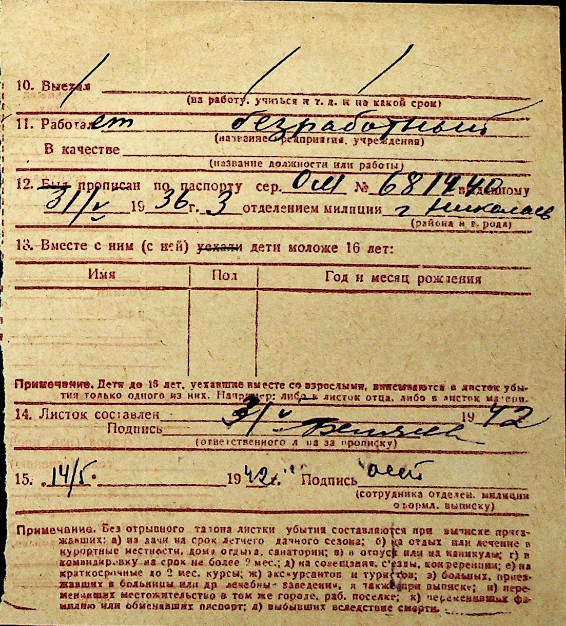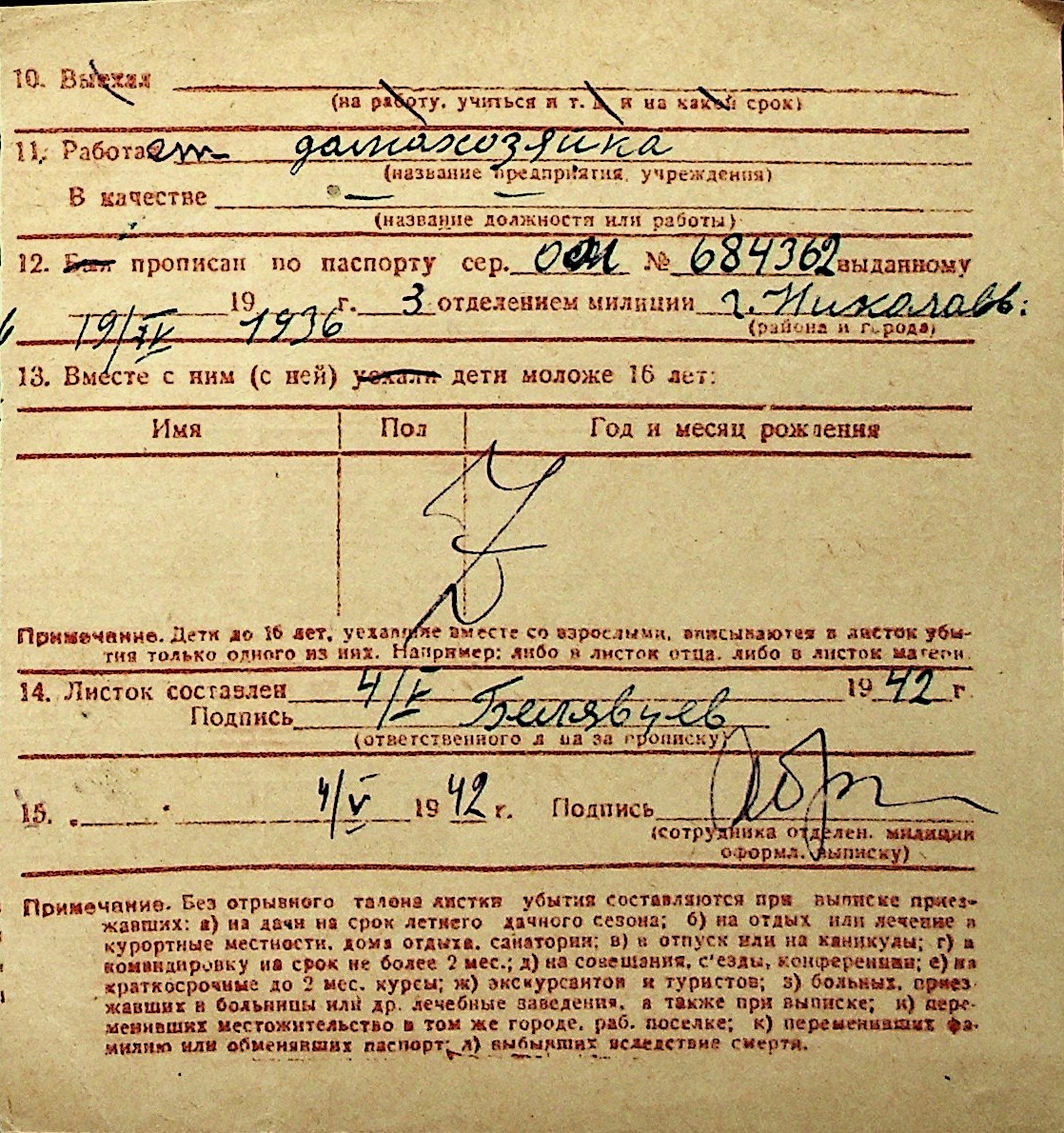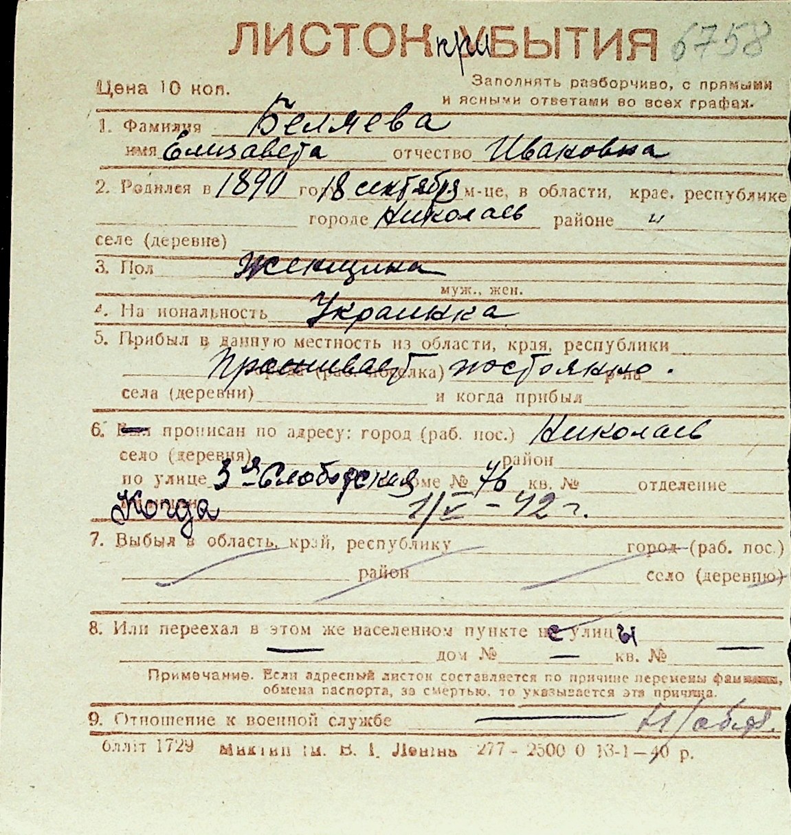 ◦ ◦ Перелік карток на осіб, які мешкали у м. Миколаїв у період окупації 1941–1944 років