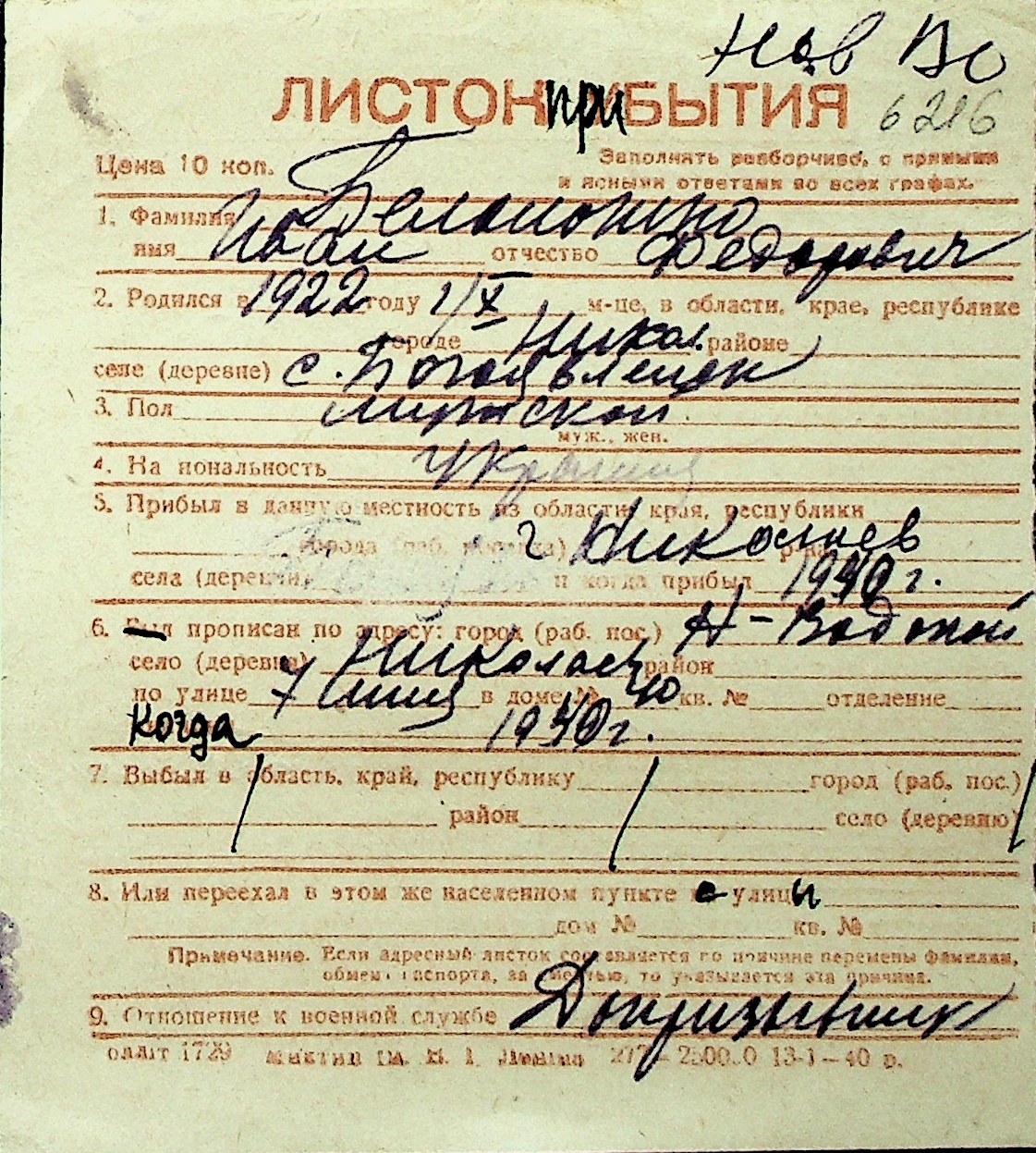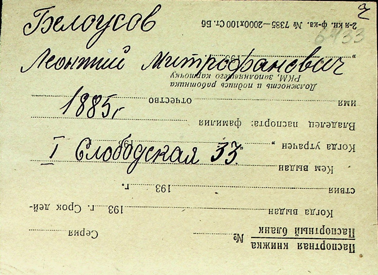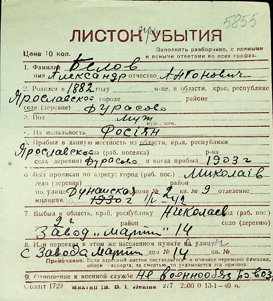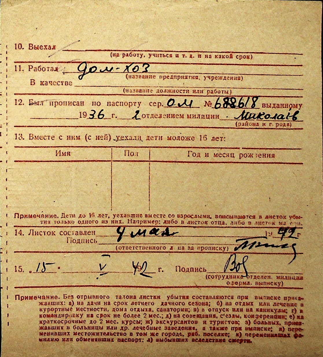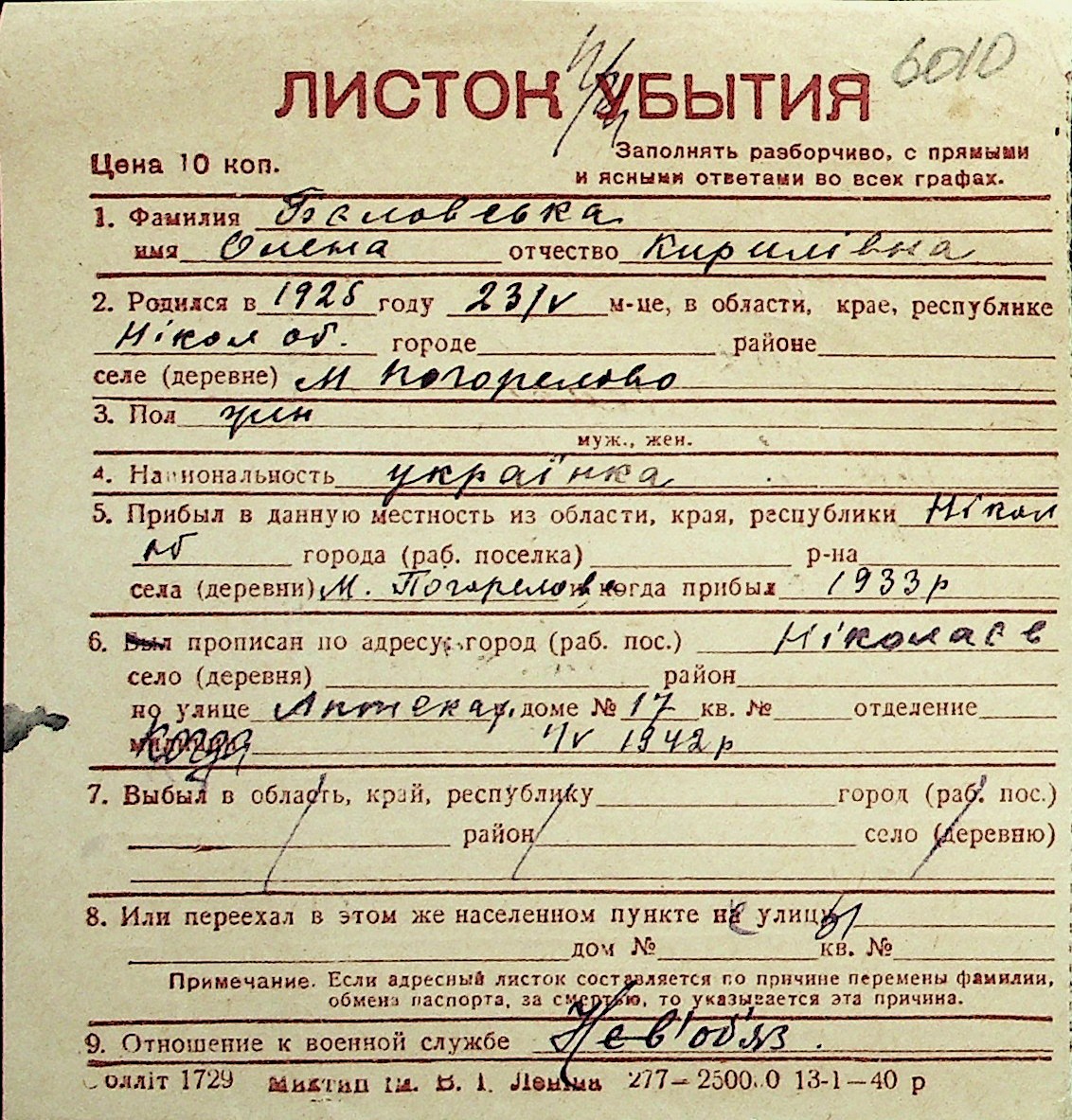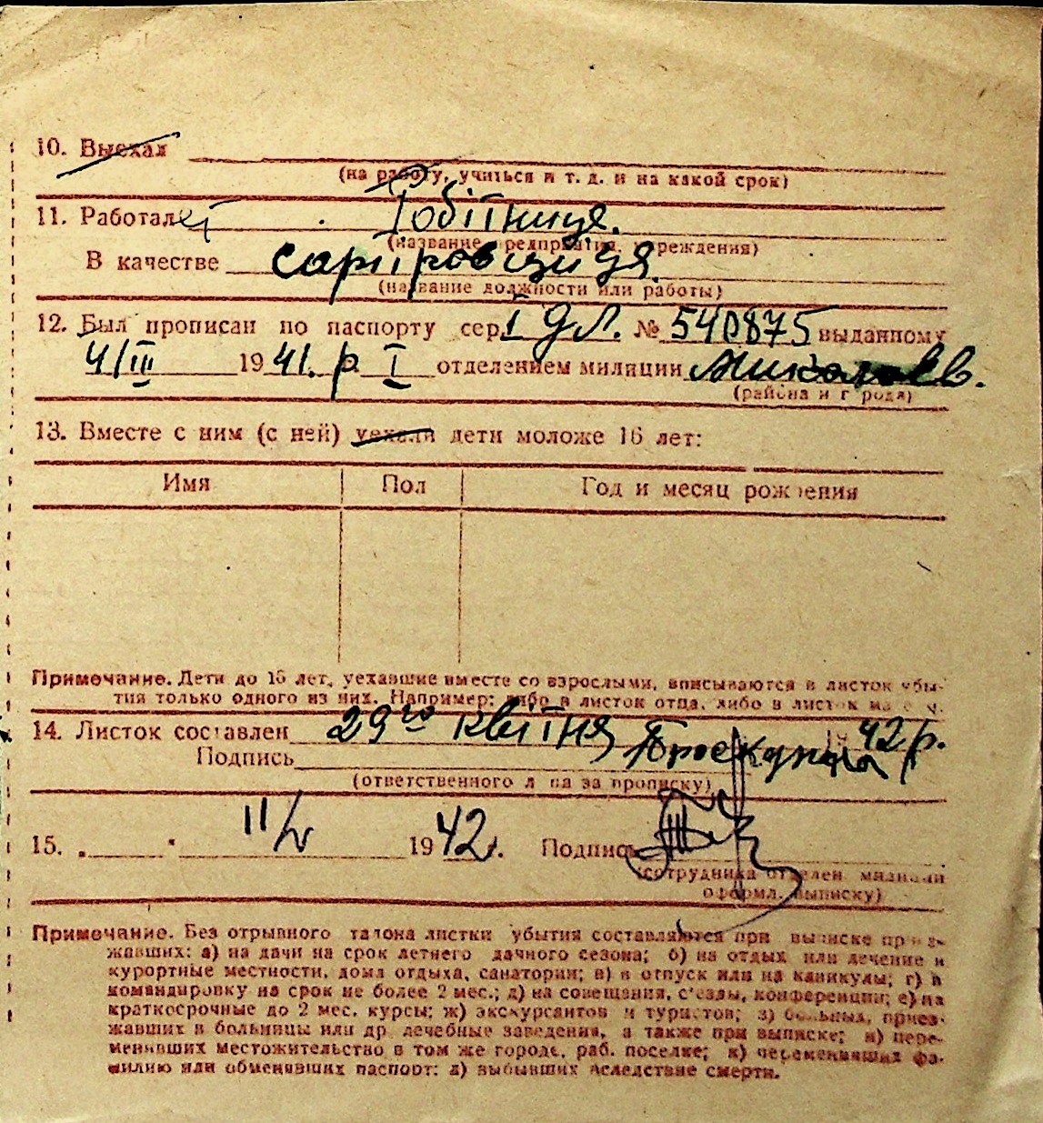 ◦ ◦ Перелік карток на осіб, які мешкали у м. Миколаїв у період окупації 1941–1944 років