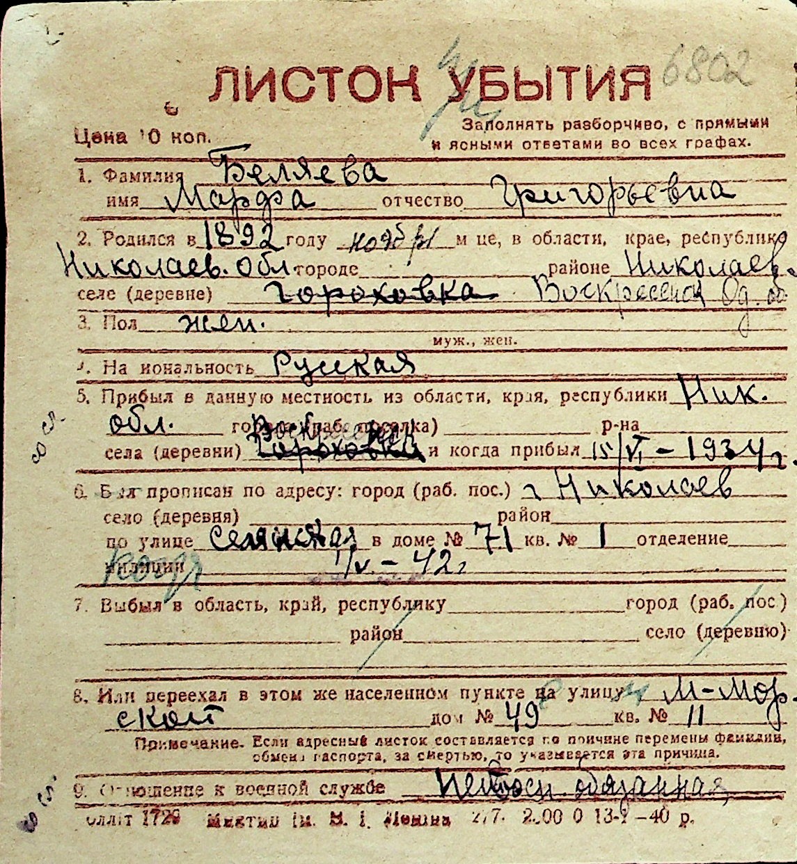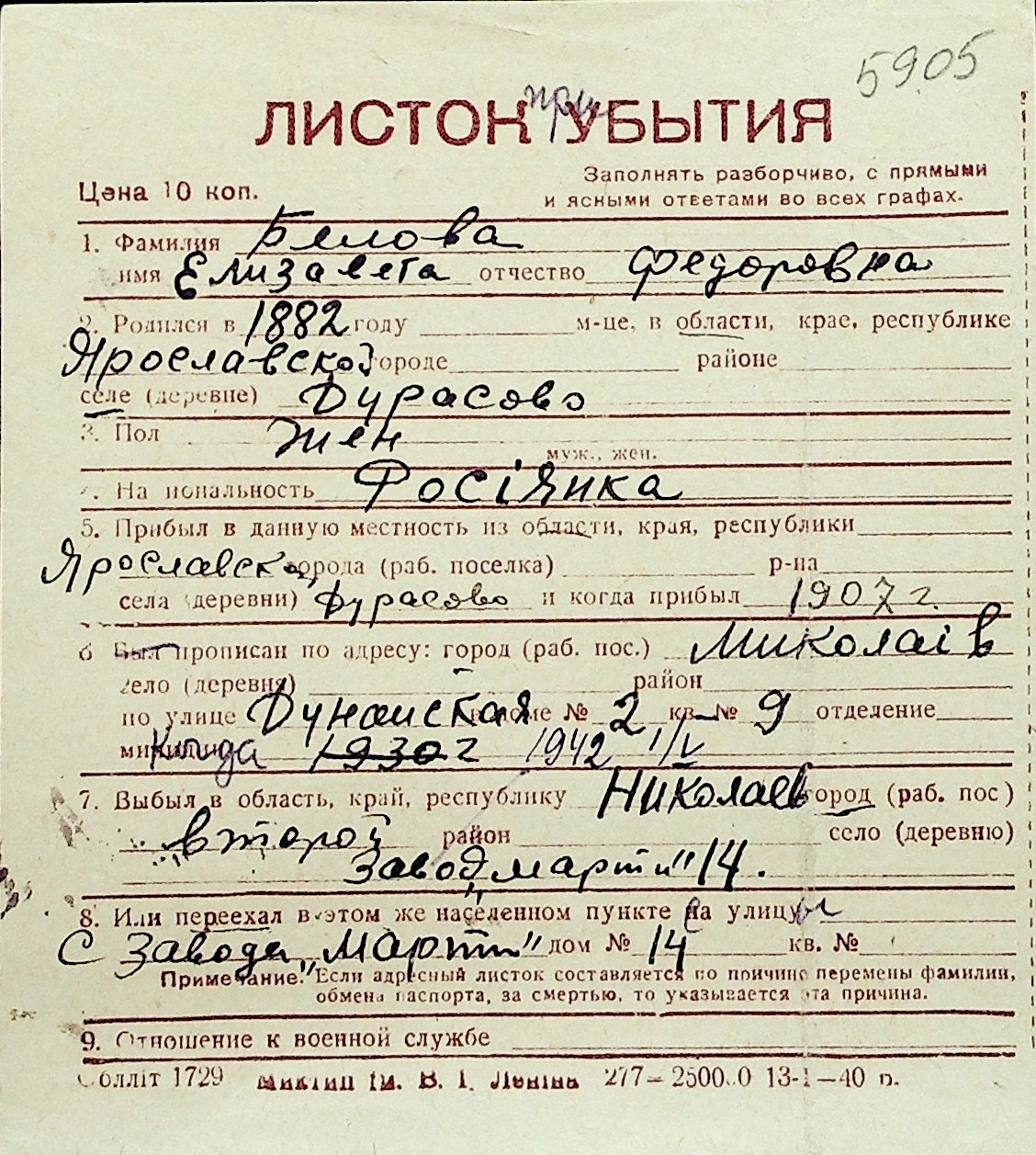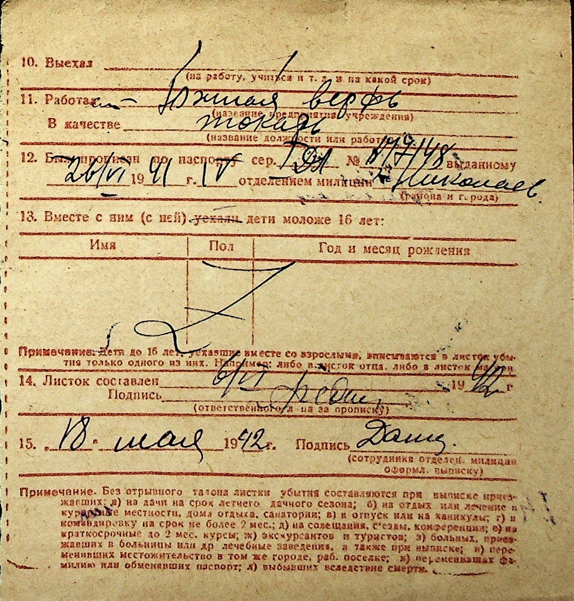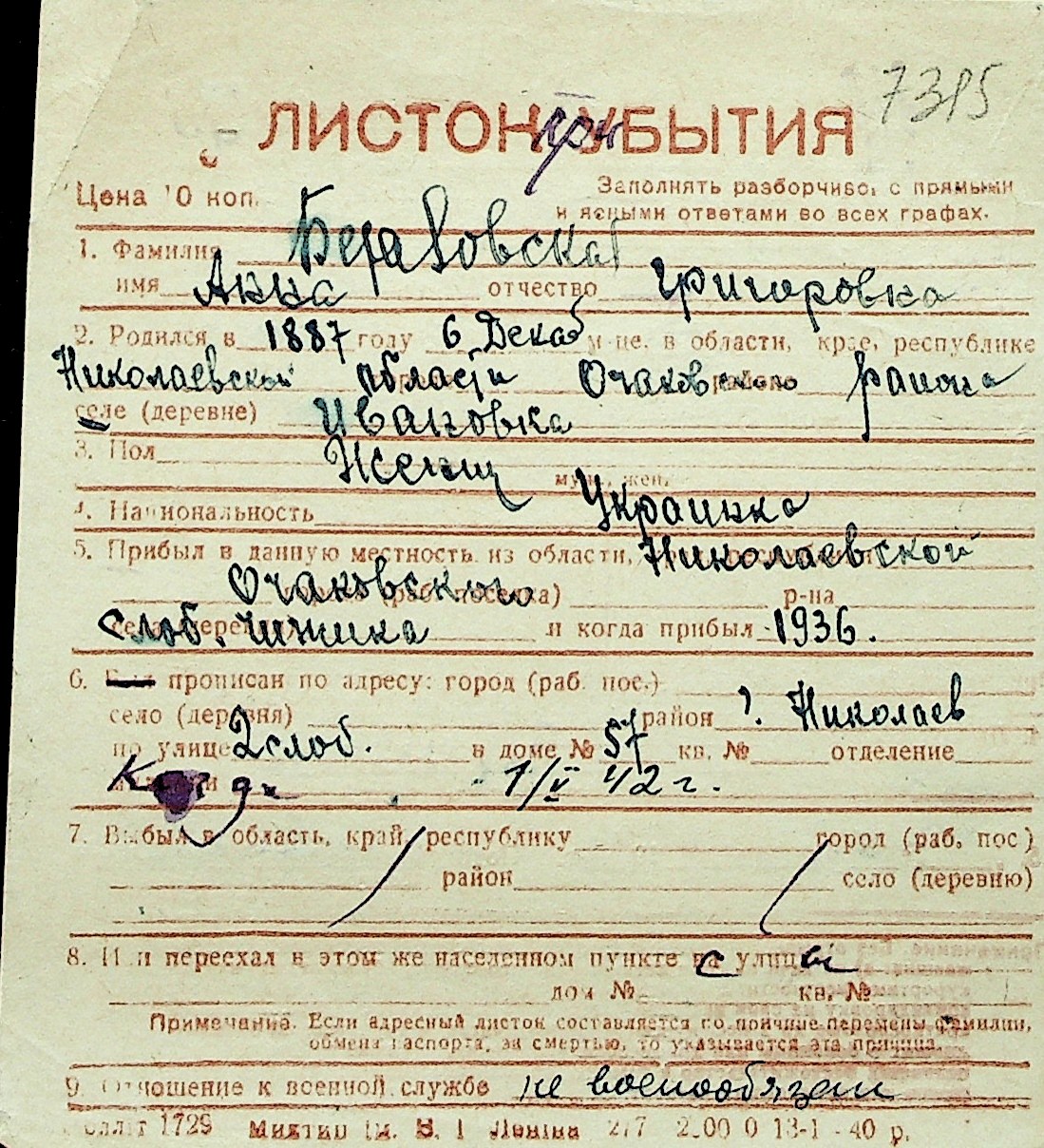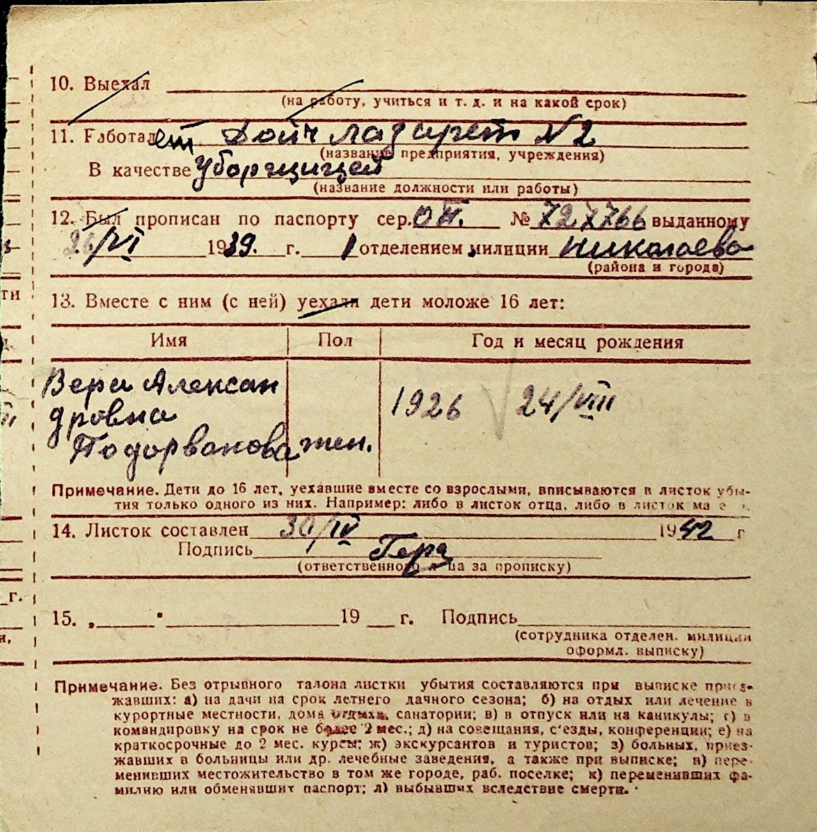 ◦ ◦ Перелік карток на осіб, які мешкали у м. Миколаїв у період окупації 1941–1944 років