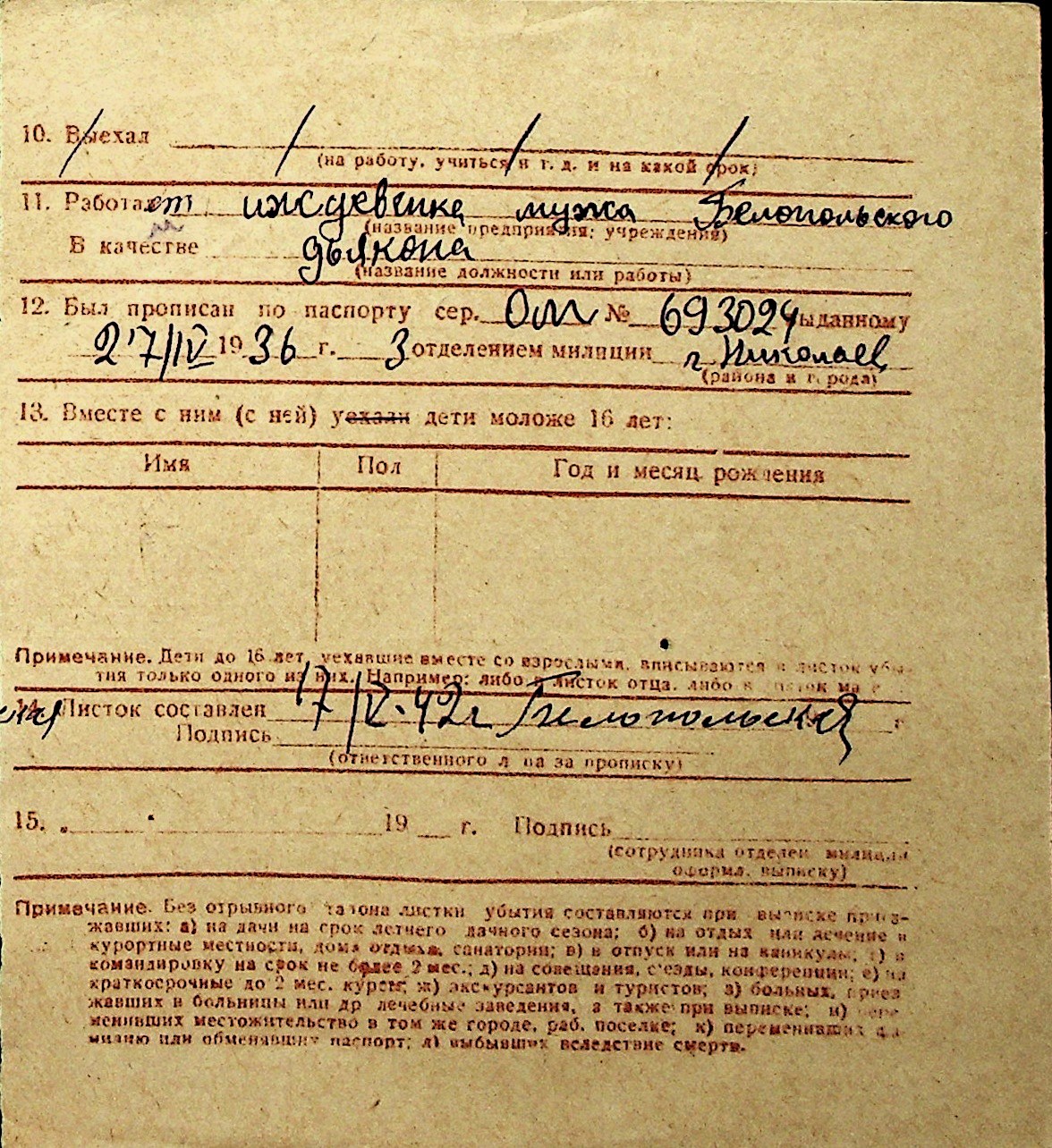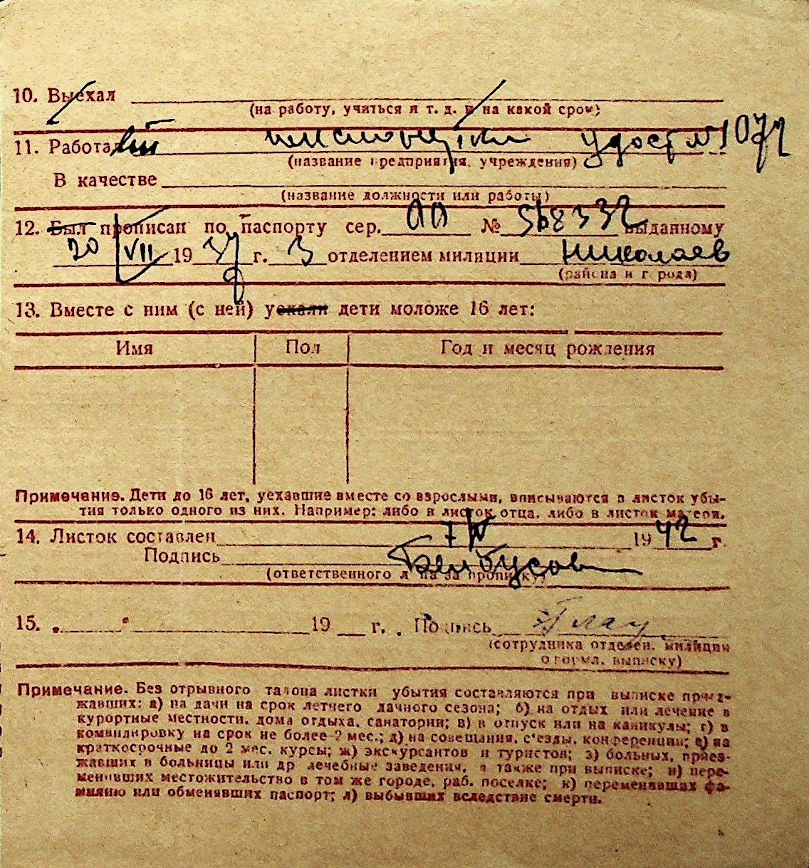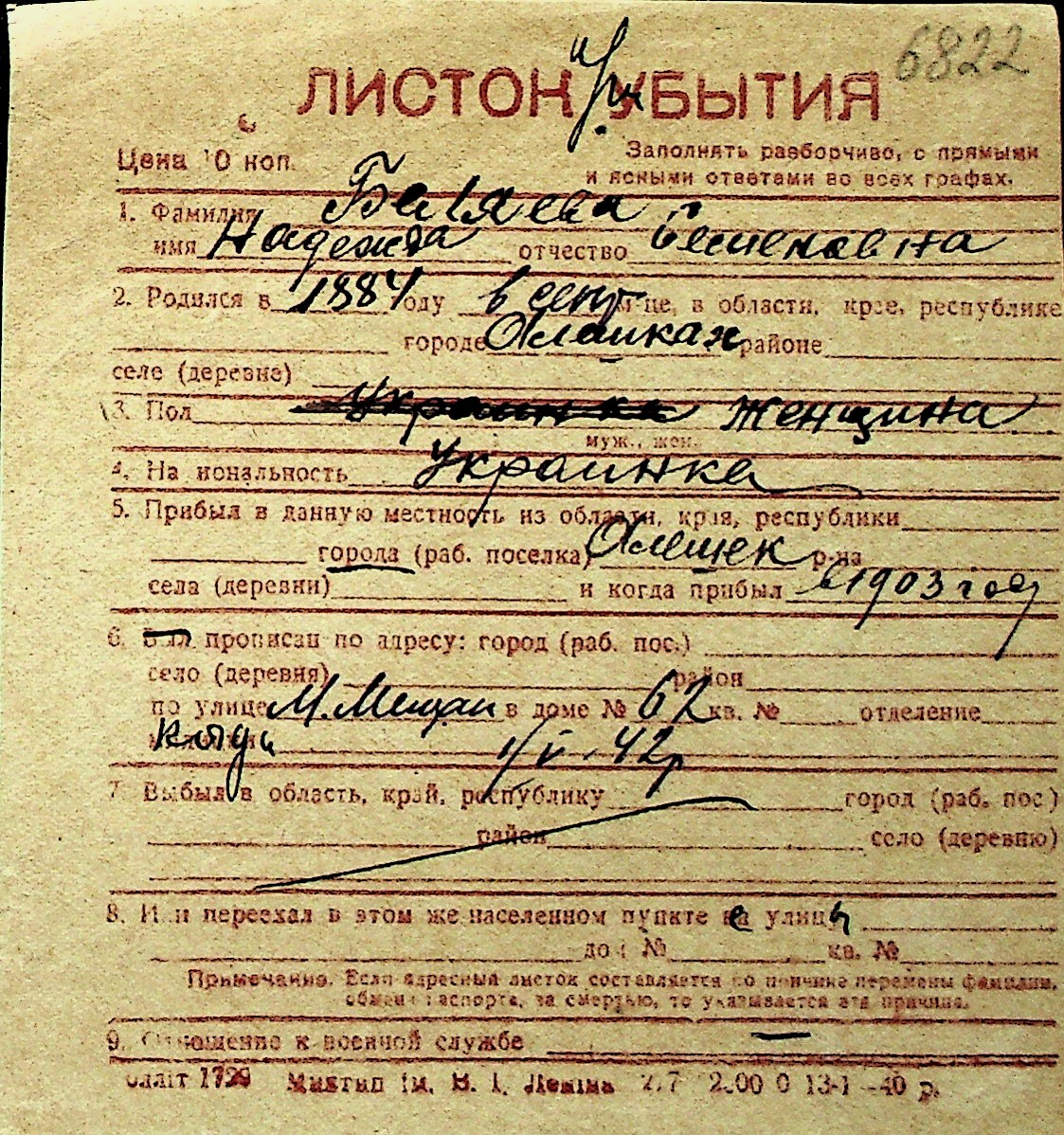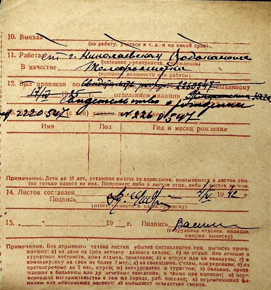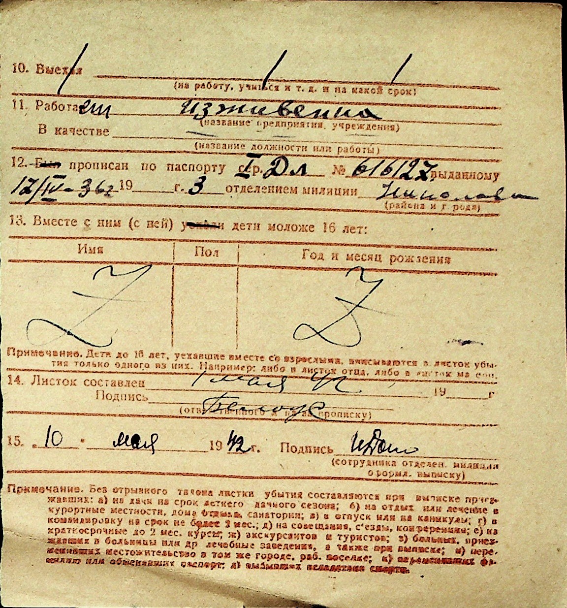 ◦ ◦ Перелік карток на осіб, які мешкали у м. Миколаїв у період окупації 1941–1944 років
