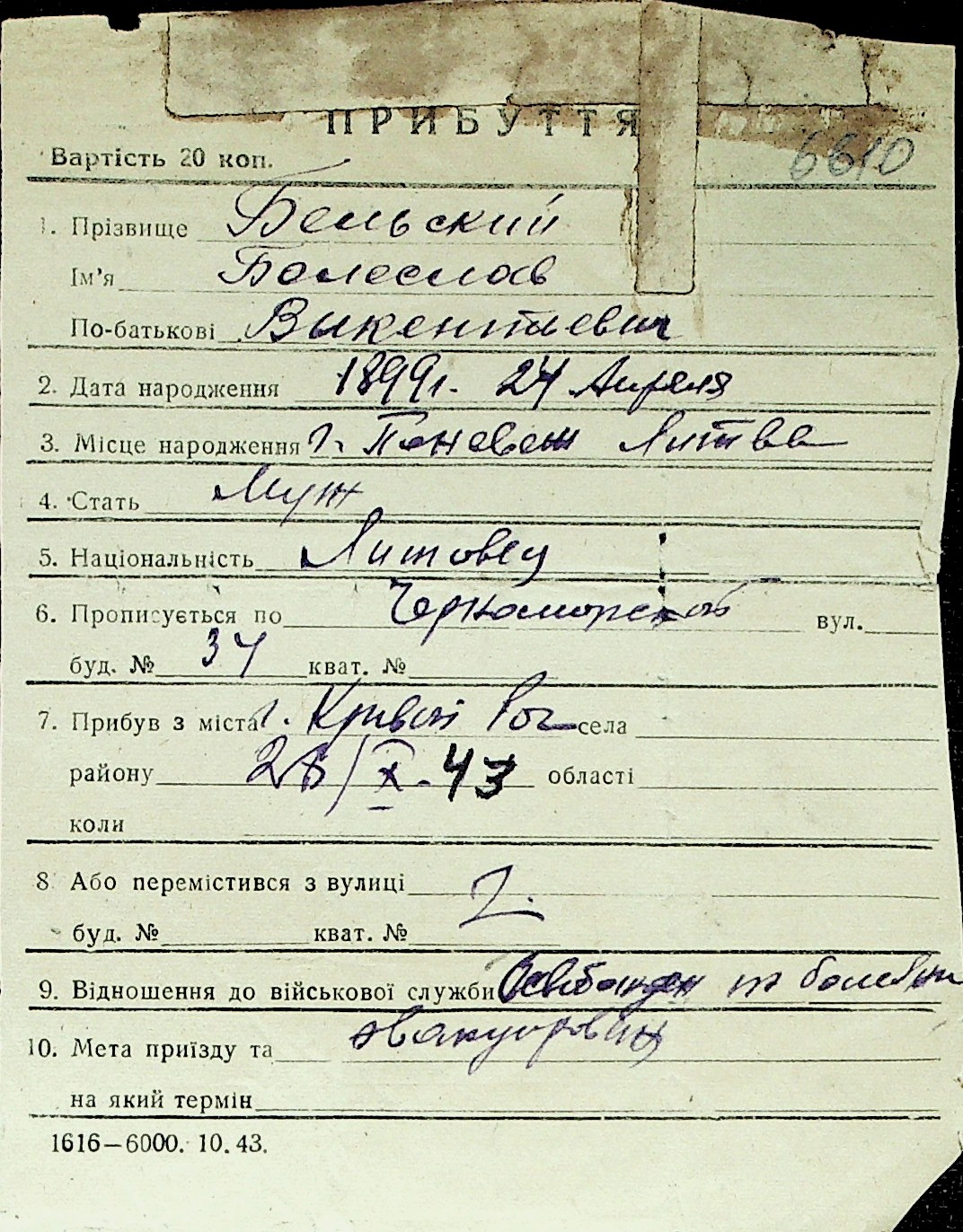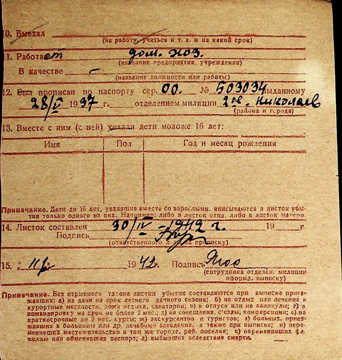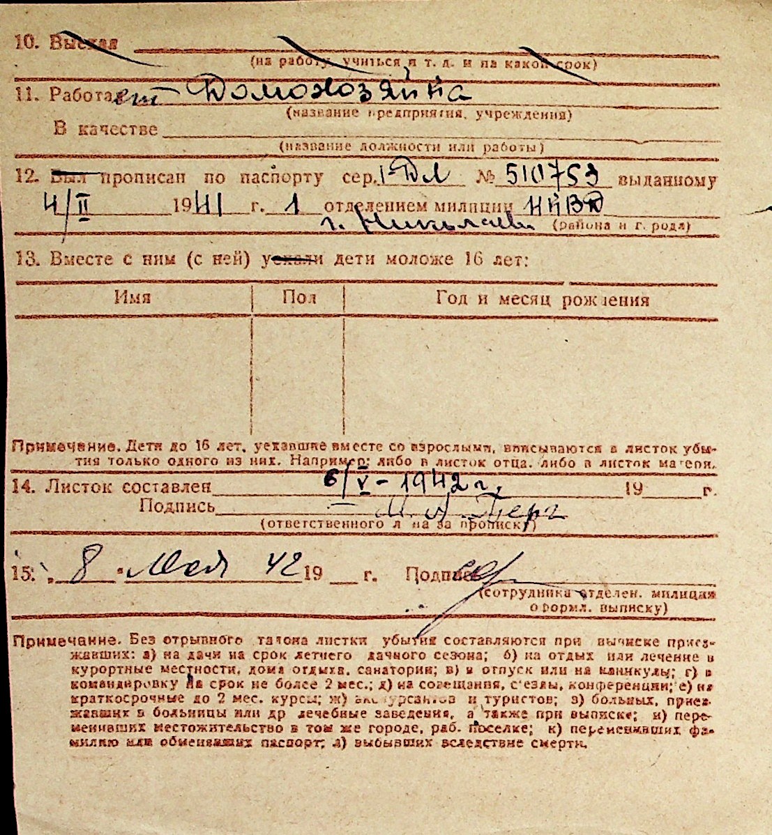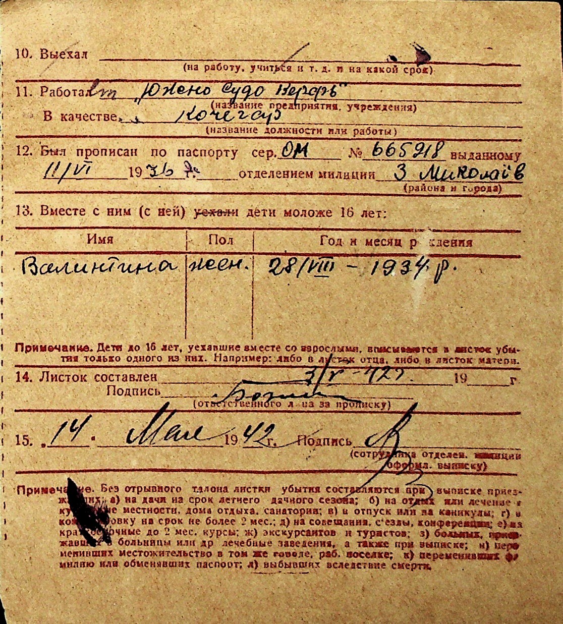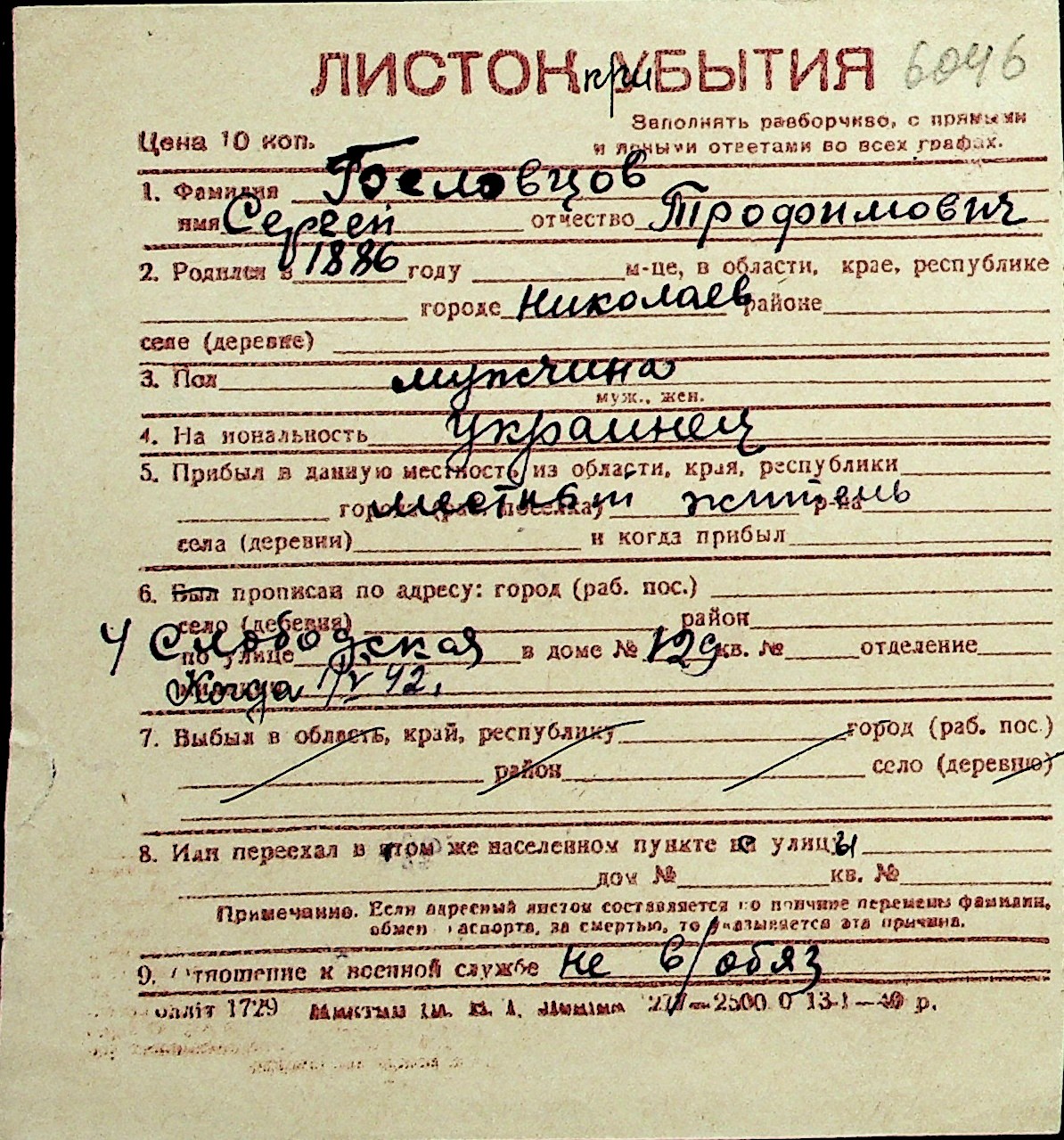 ◦ ◦ Перелік карток на осіб, які мешкали у м. Миколаїв у період окупації 1941–1944 років