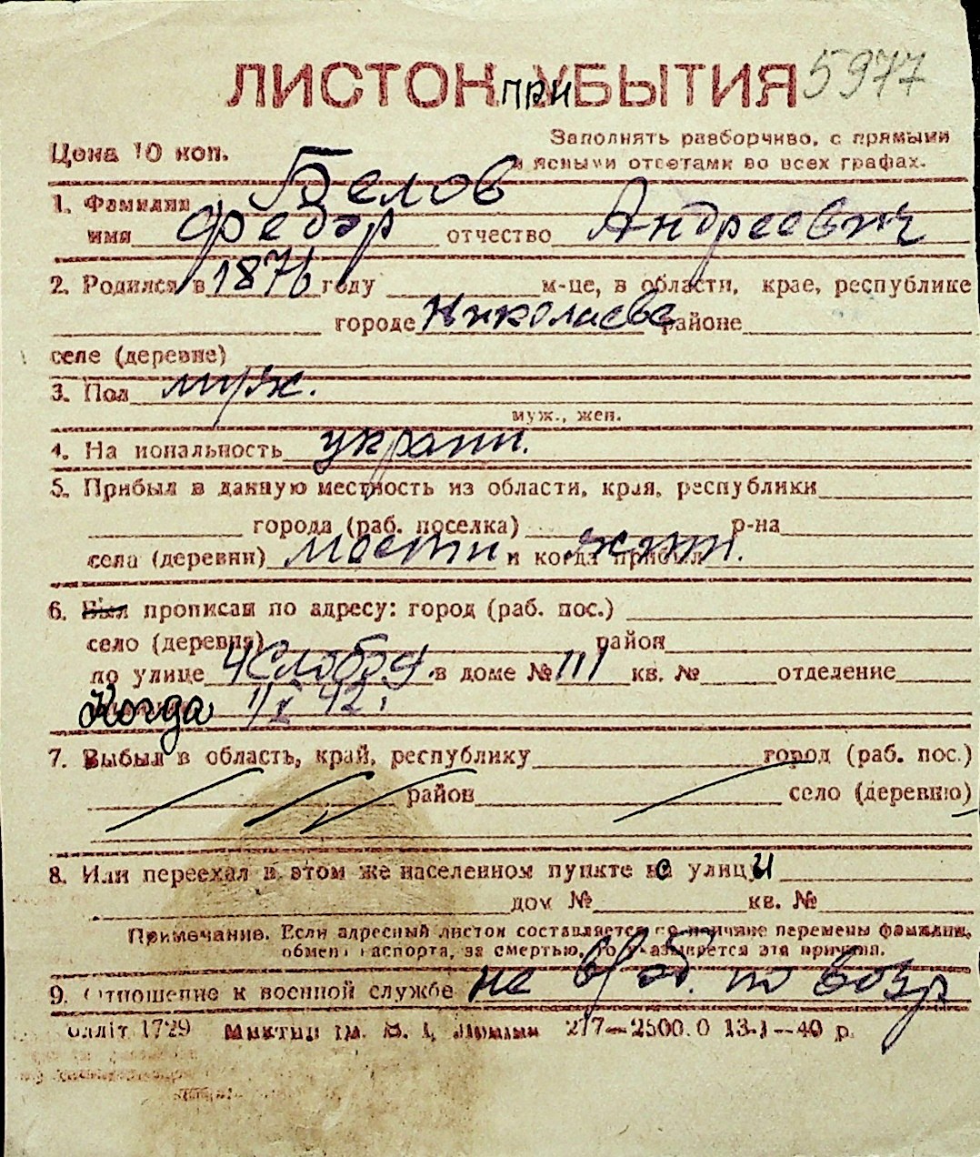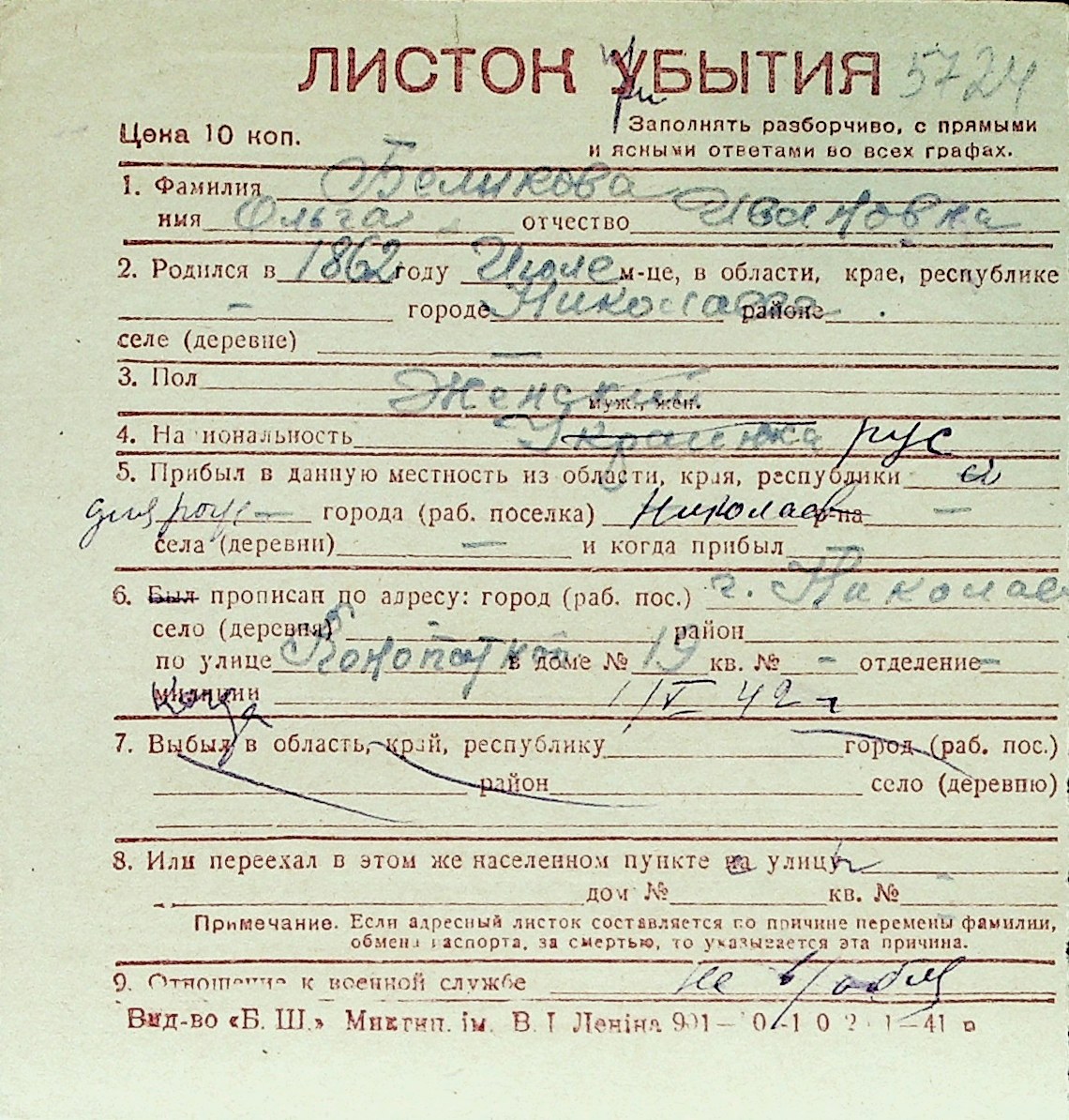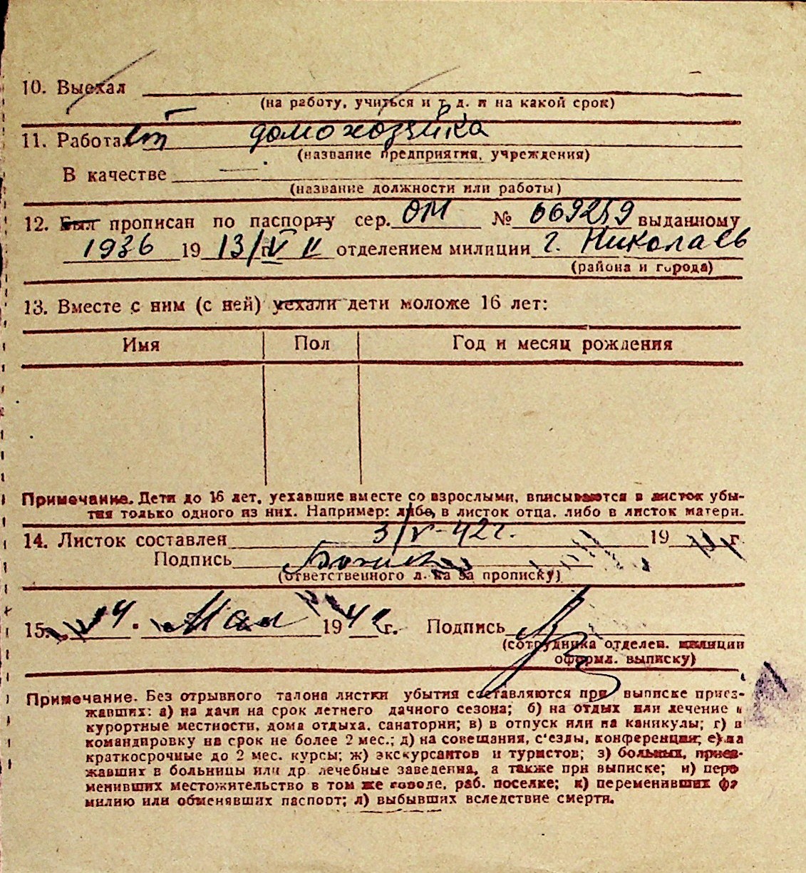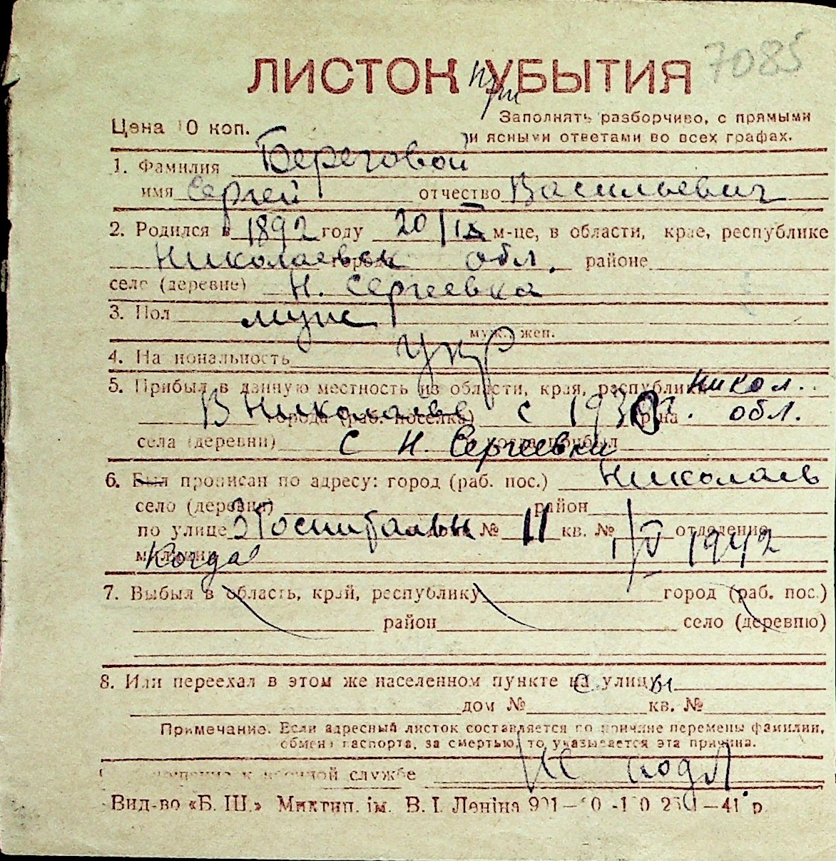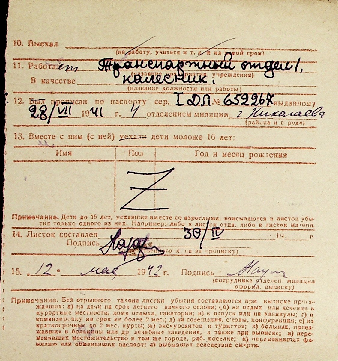 ◦ ◦ Перелік карток на осіб, які мешкали у м. Миколаїв у період окупації 1941–1944 років