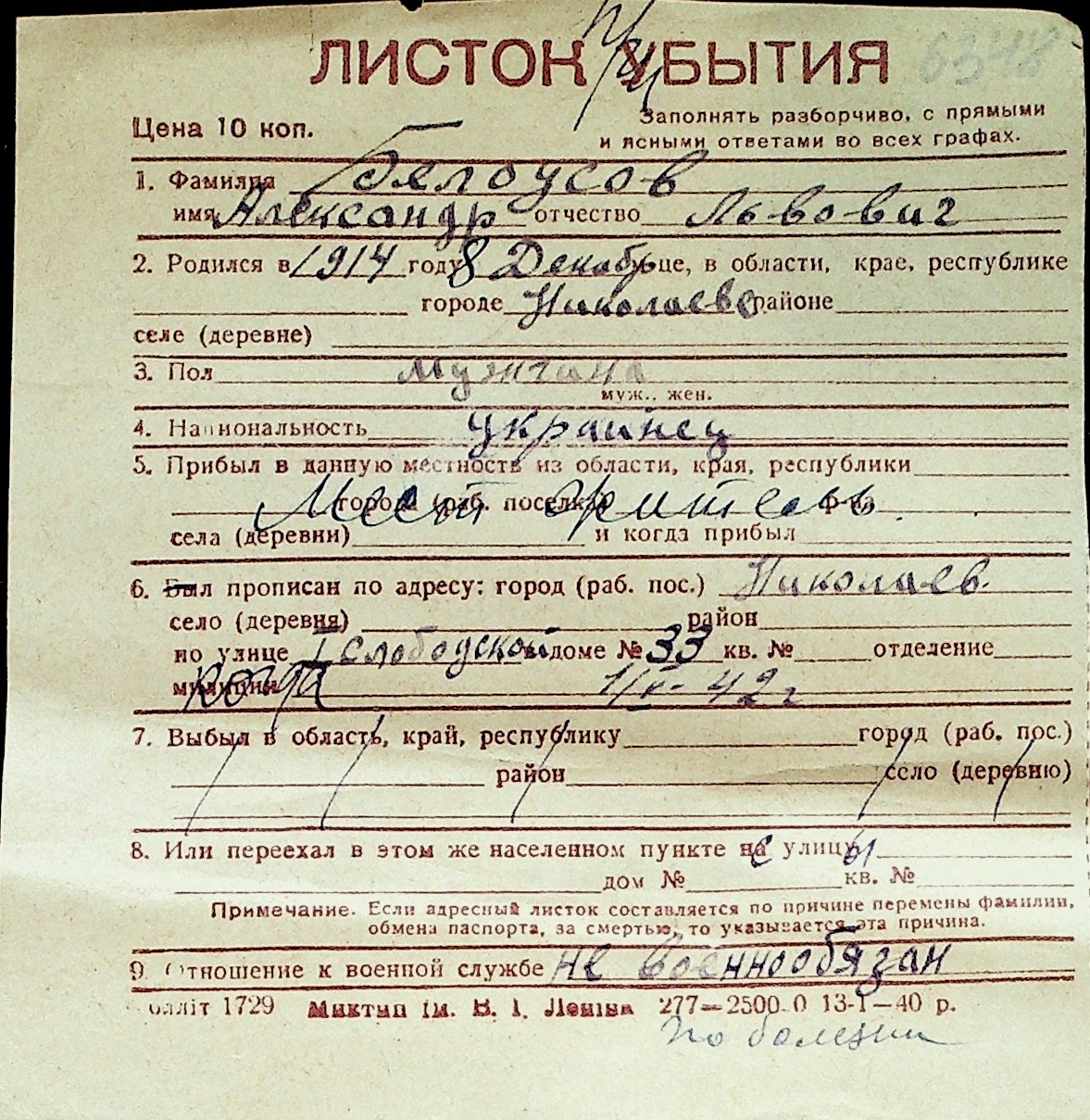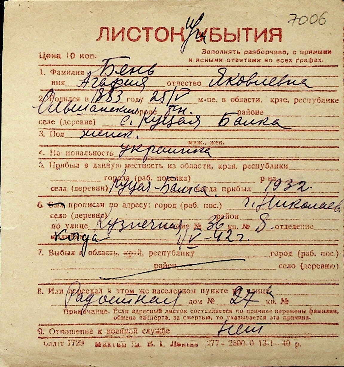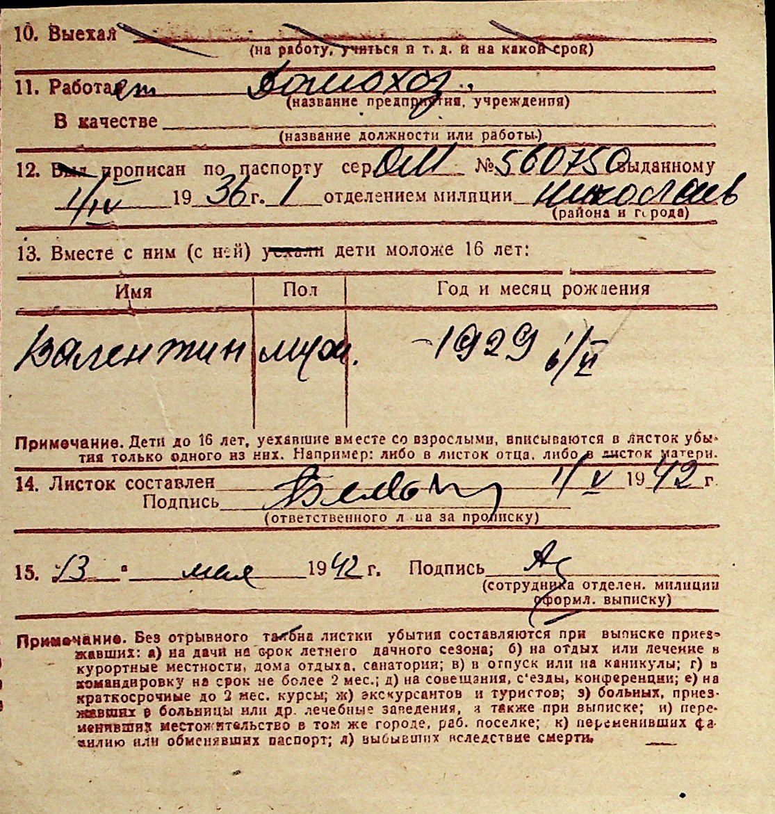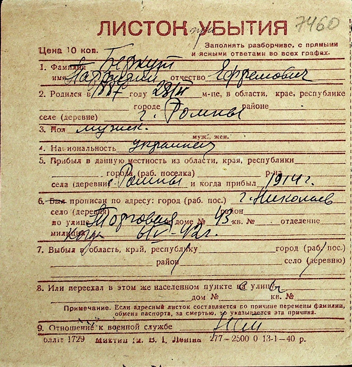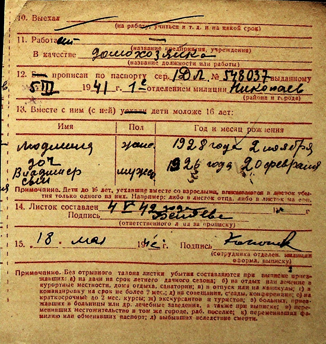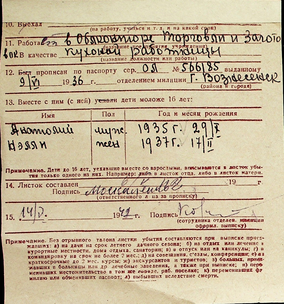 ◦ ◦ Перелік карток на осіб, які мешкали у м. Миколаїв у період окупації 1941–1944 років