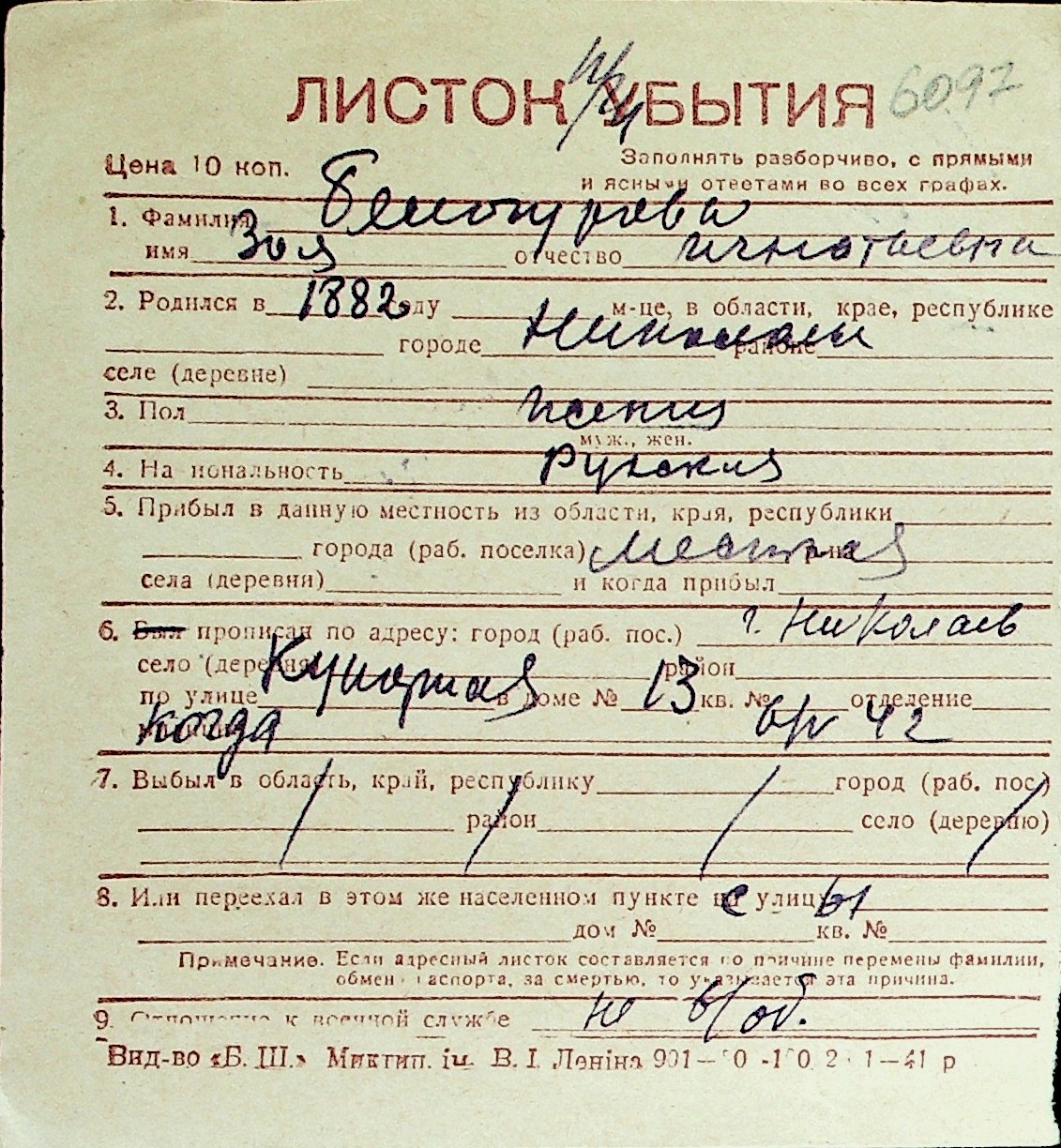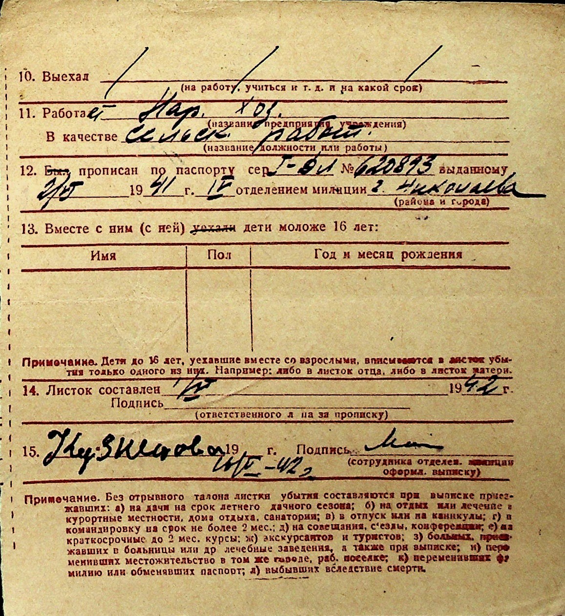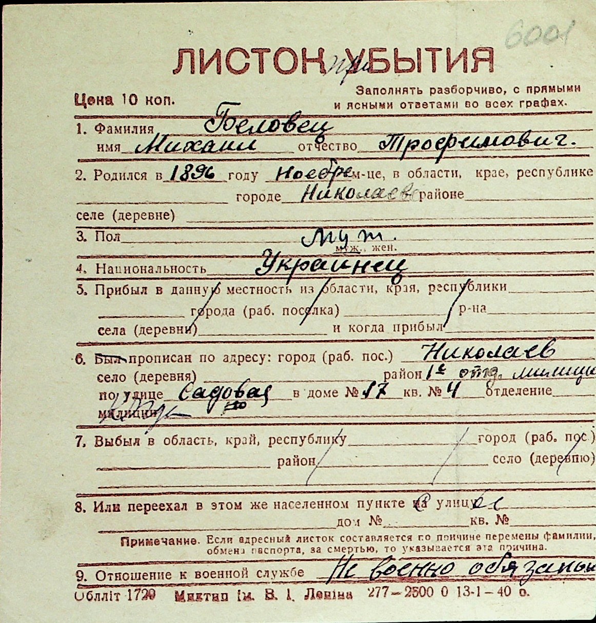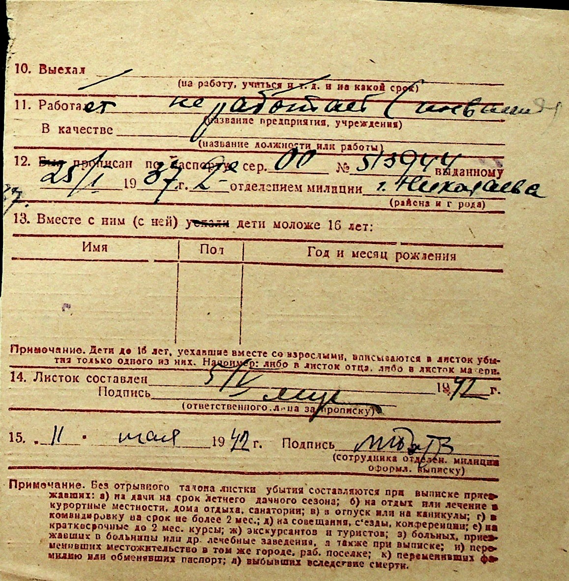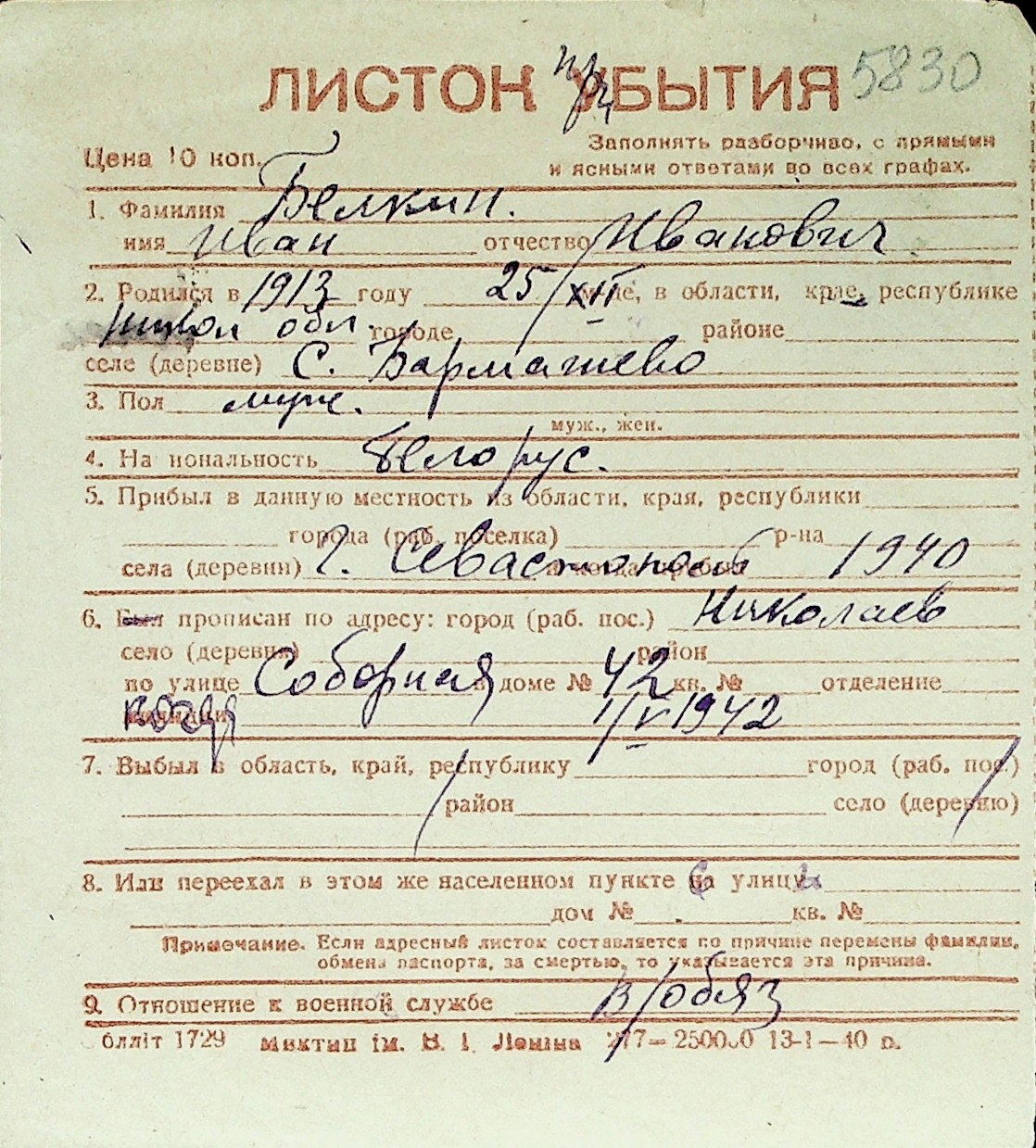 ◦ ◦ Перелік карток на осіб, які мешкали у м. Миколаїв у період окупації 1941–1944 років