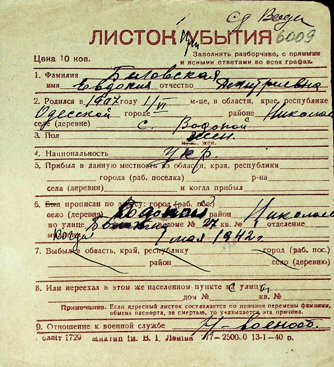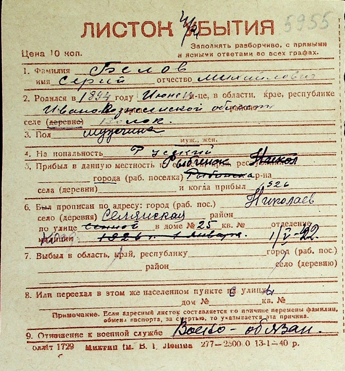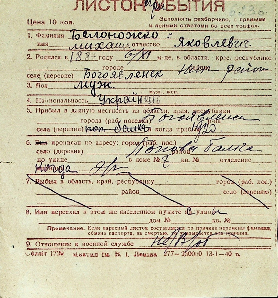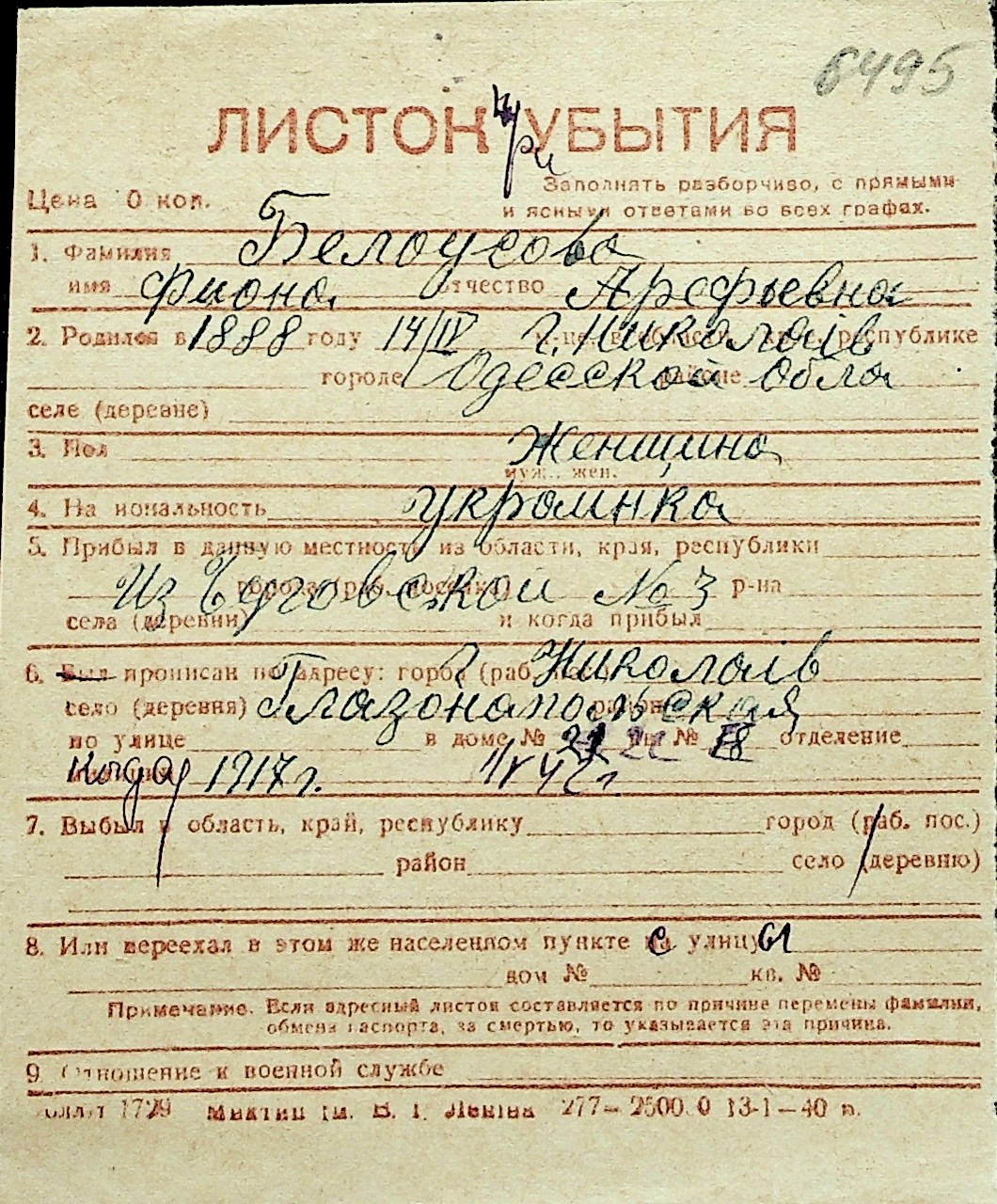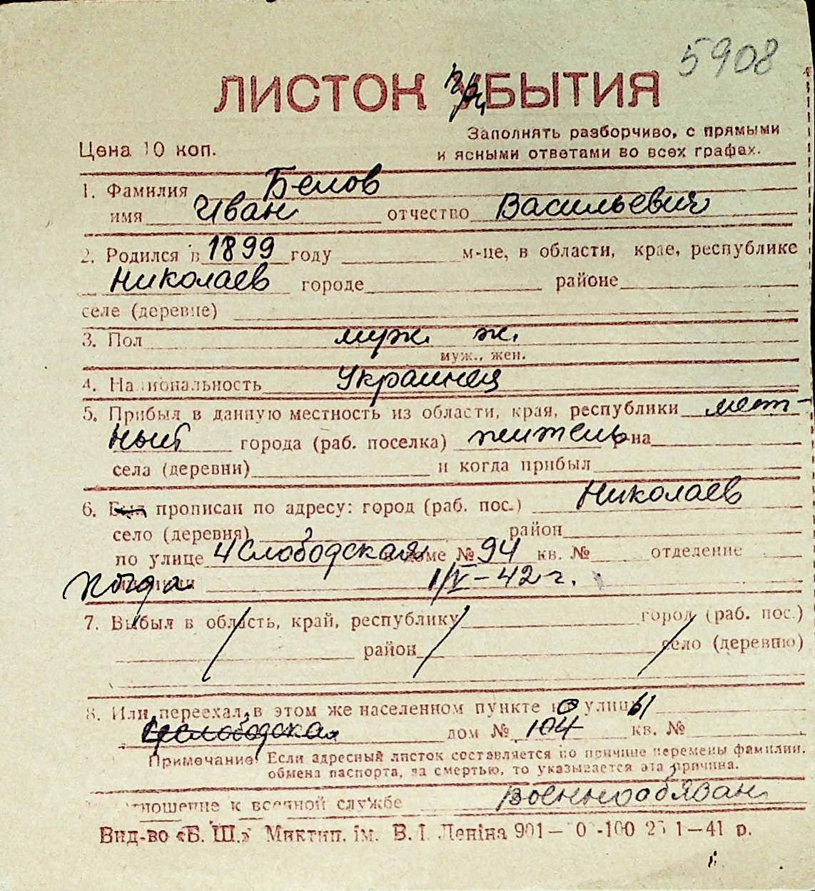 ◦ ◦ Перелік карток на осіб, які мешкали у м. Миколаїв у період окупації 1941–1944 років