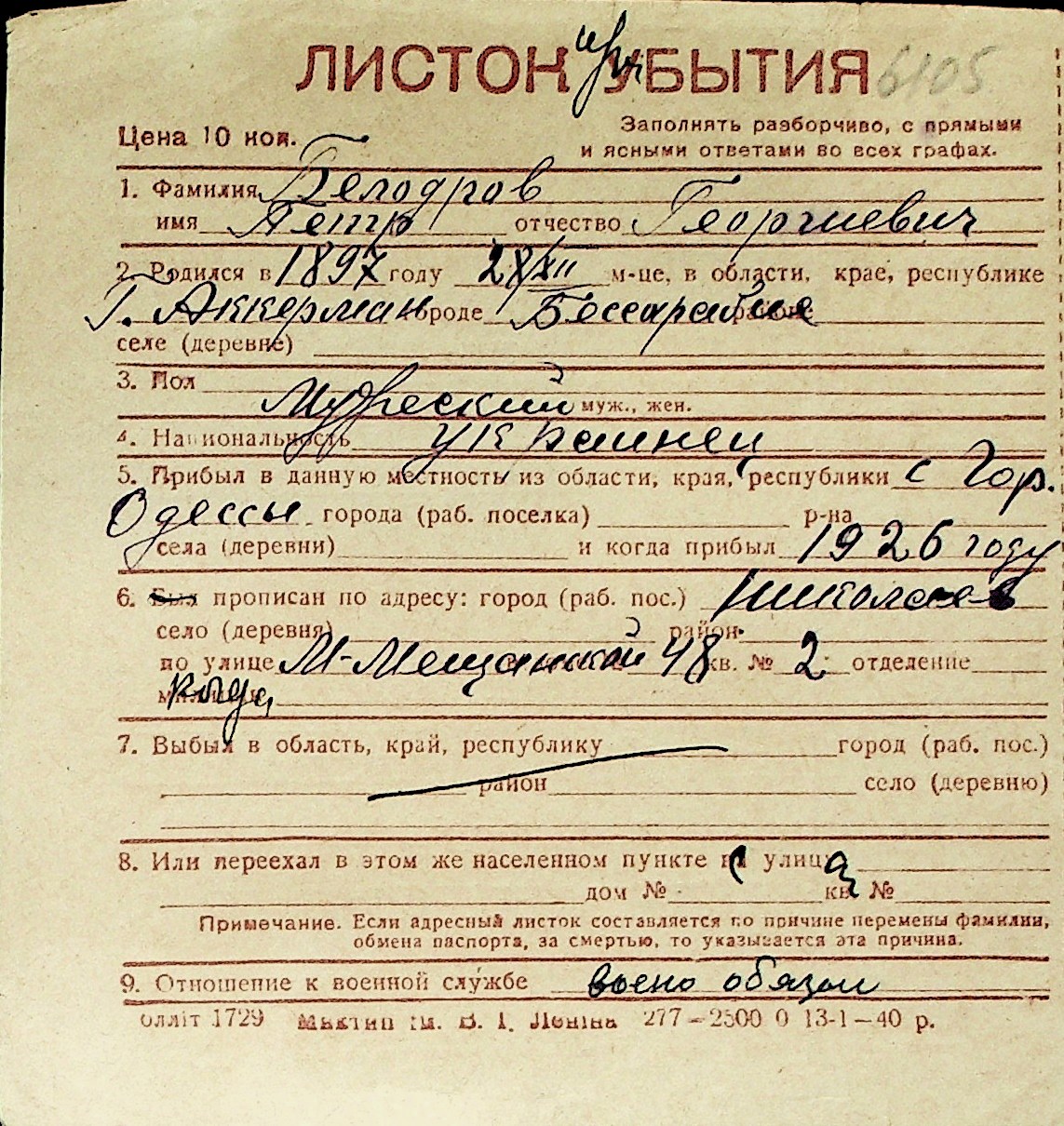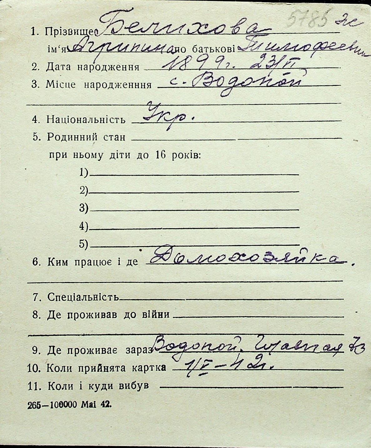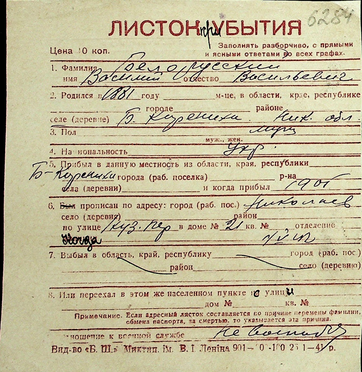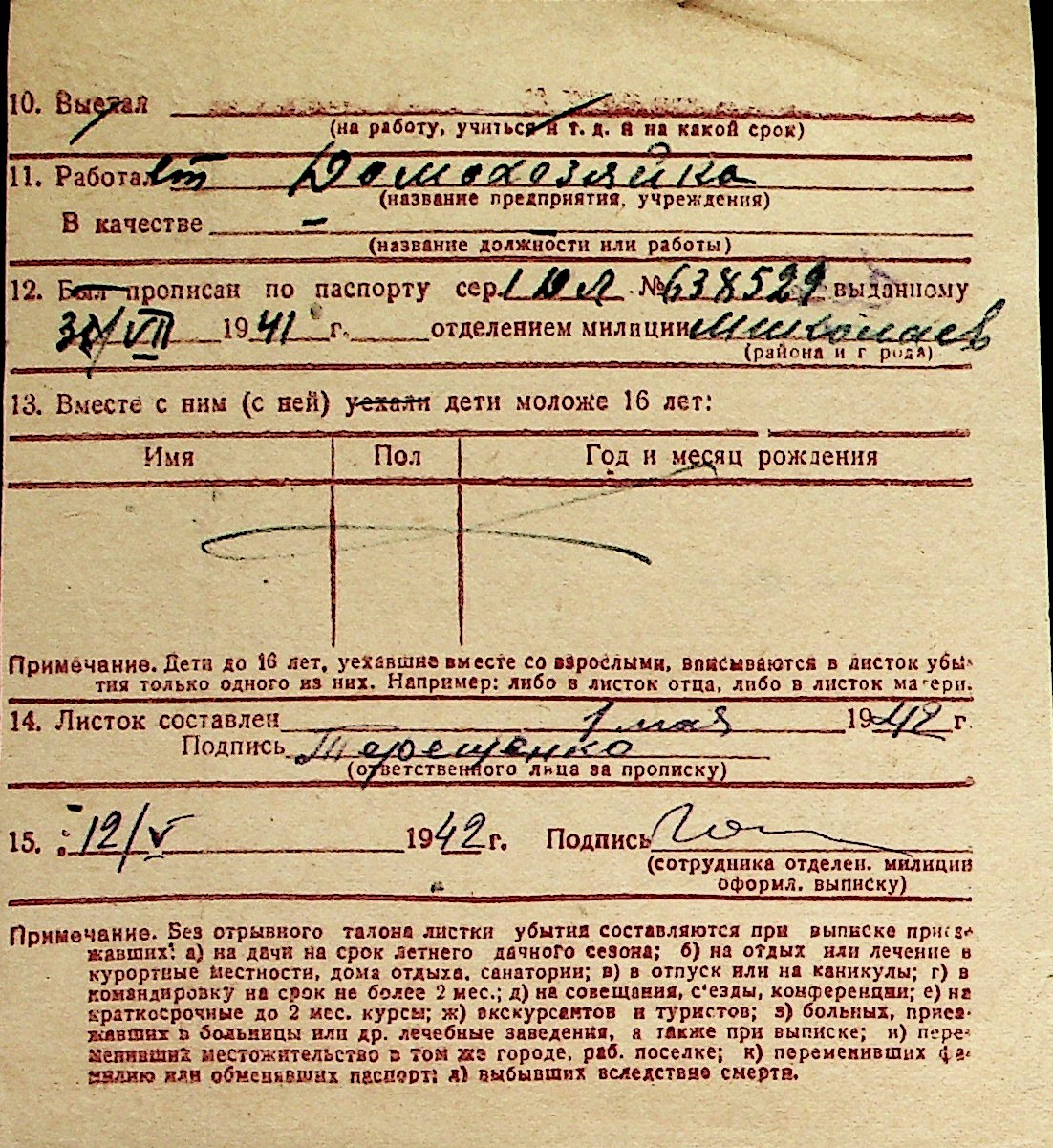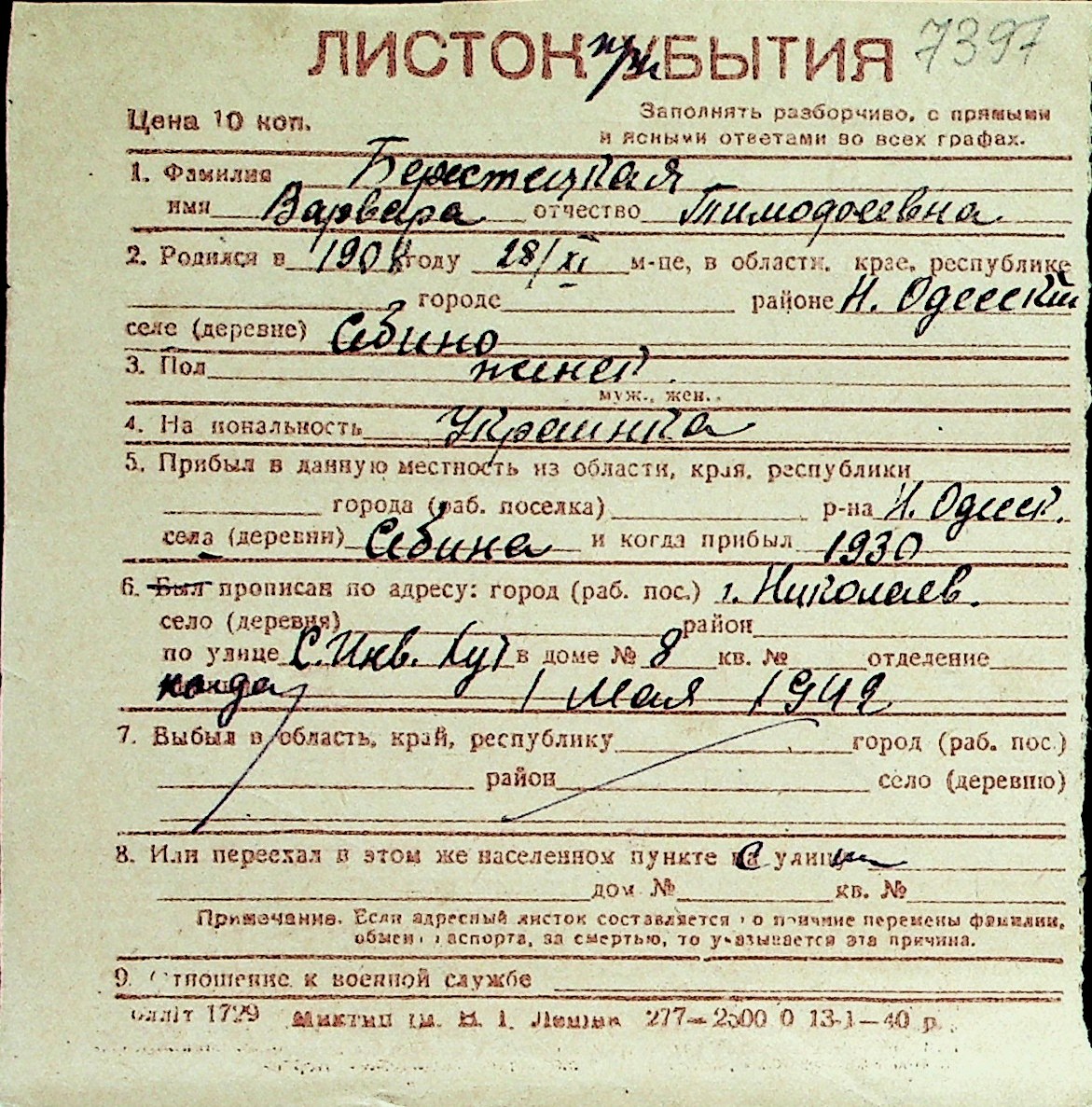 ◦ ◦ Перелік карток на осіб, які мешкали у м. Миколаїв у період окупації 1941–1944 років