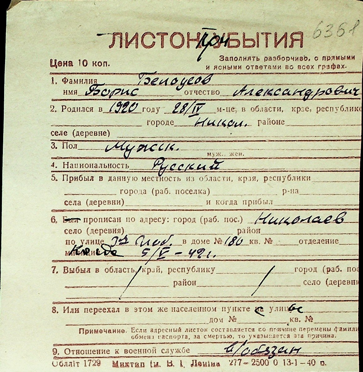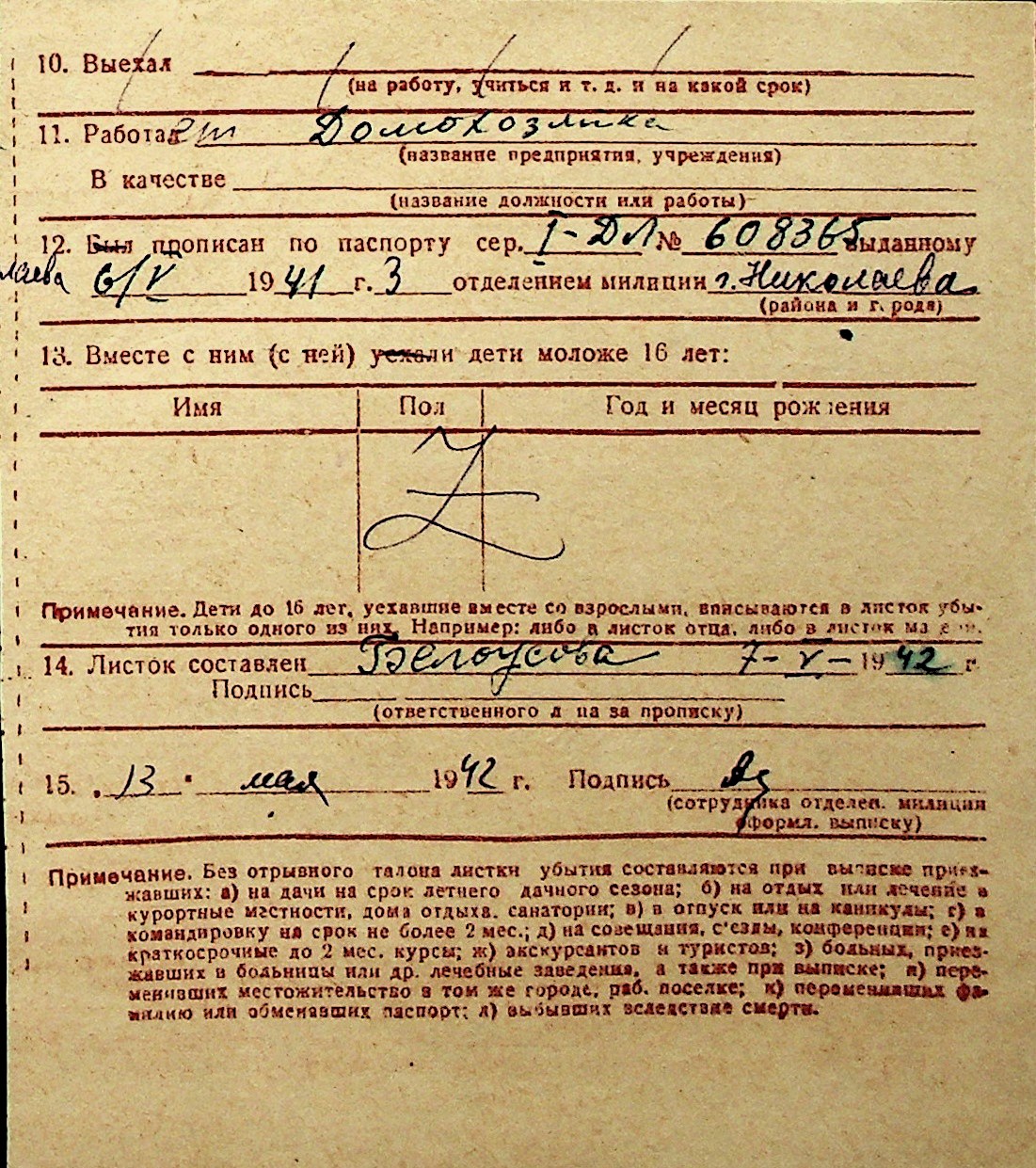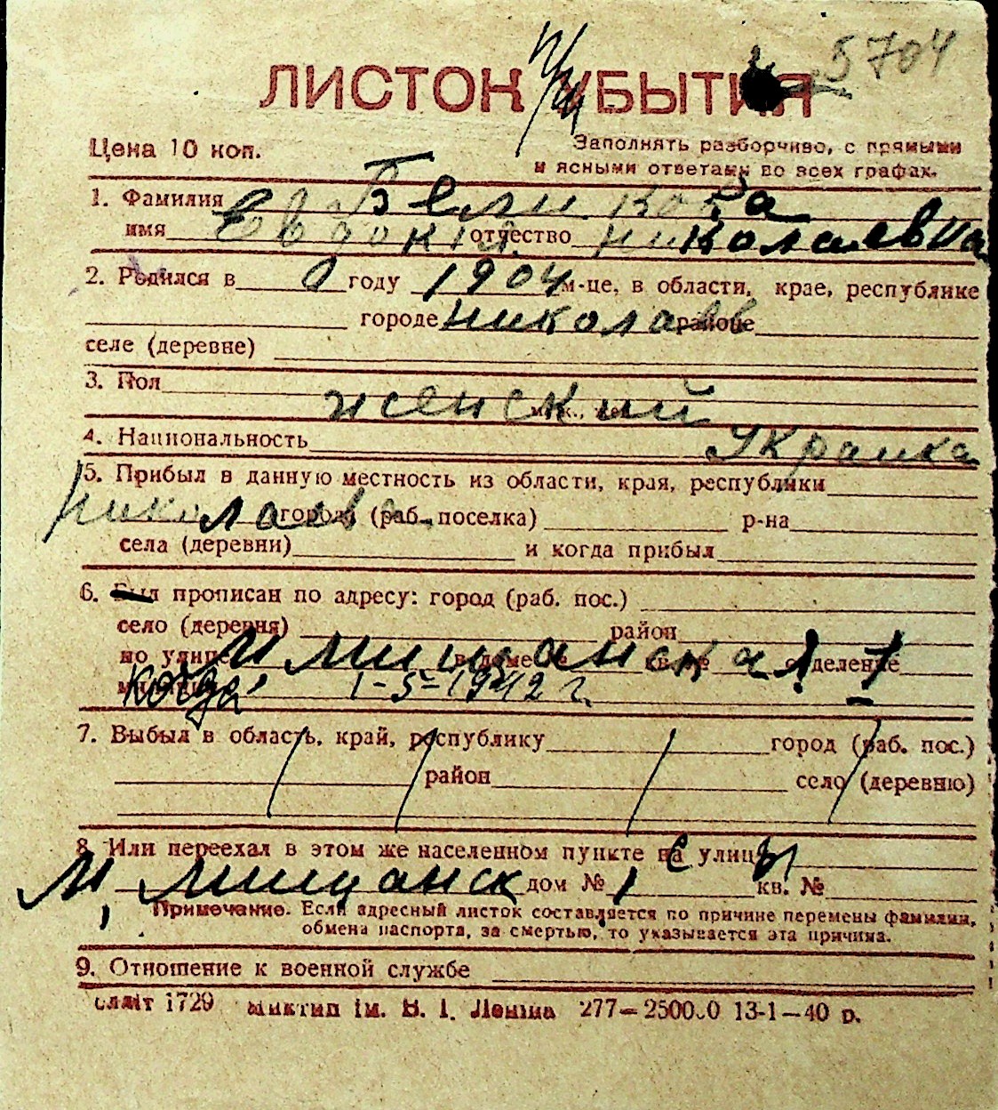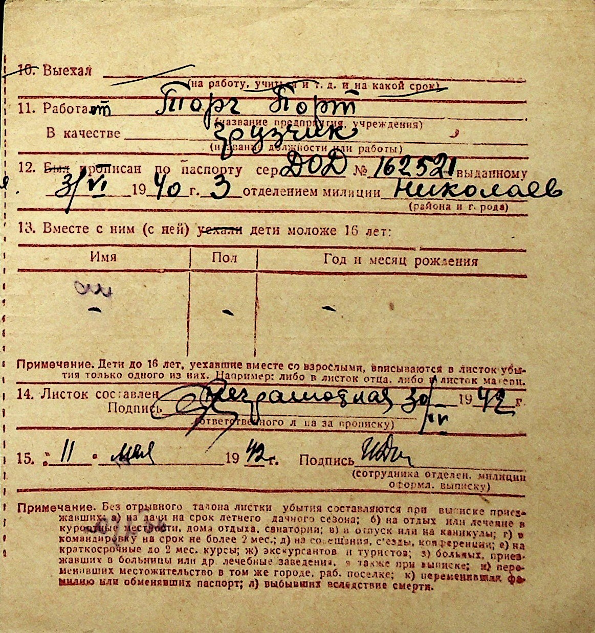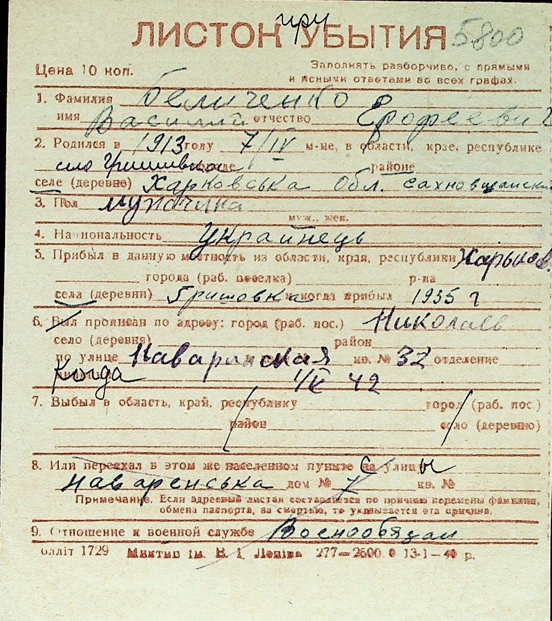 ◦ ◦ Перелік карток на осіб, які мешкали у м. Миколаїв у період окупації 1941–1944 років