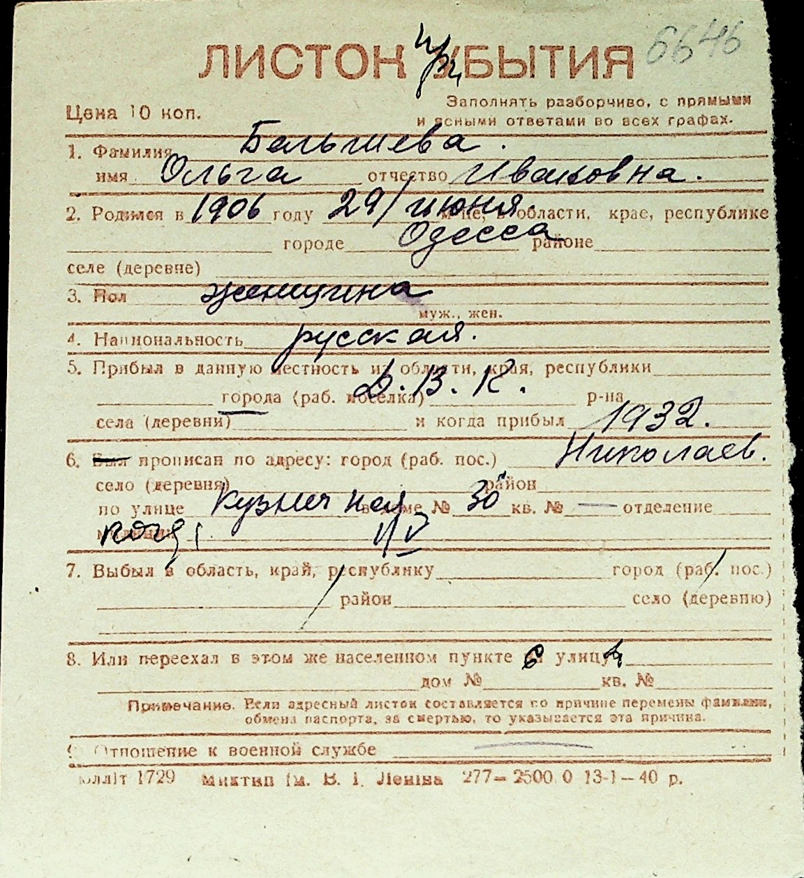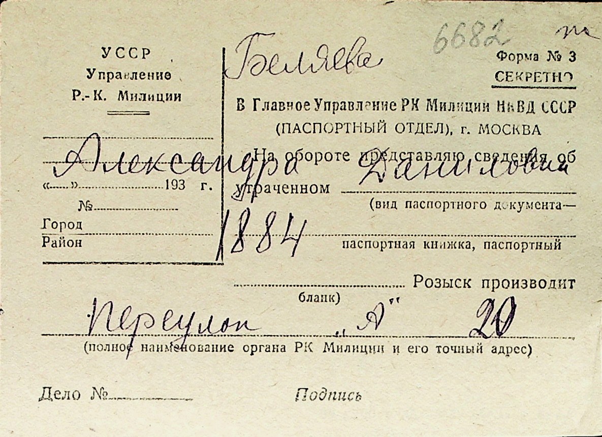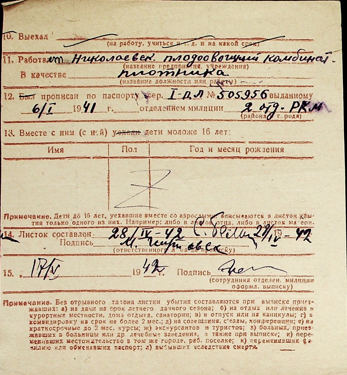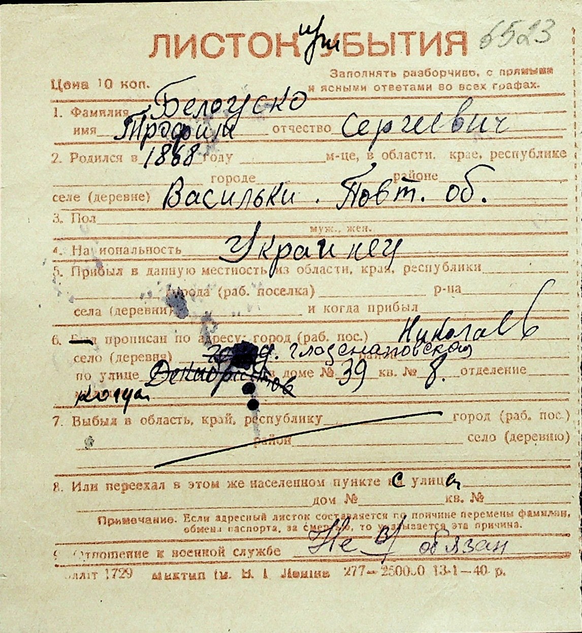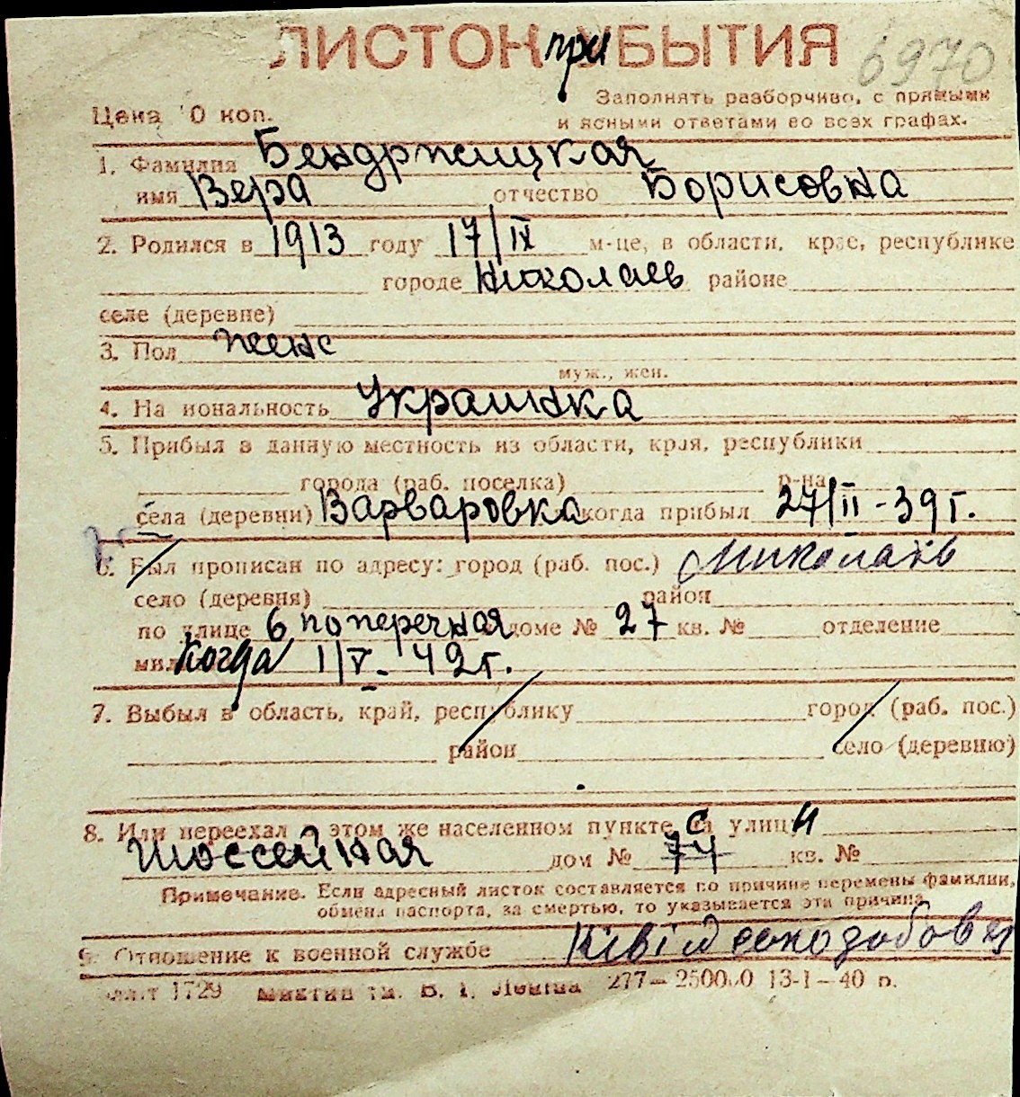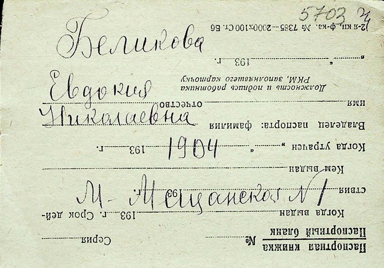 ◦ ◦ Перелік карток на осіб, які мешкали у м. Миколаїв у період окупації 1941–1944 років