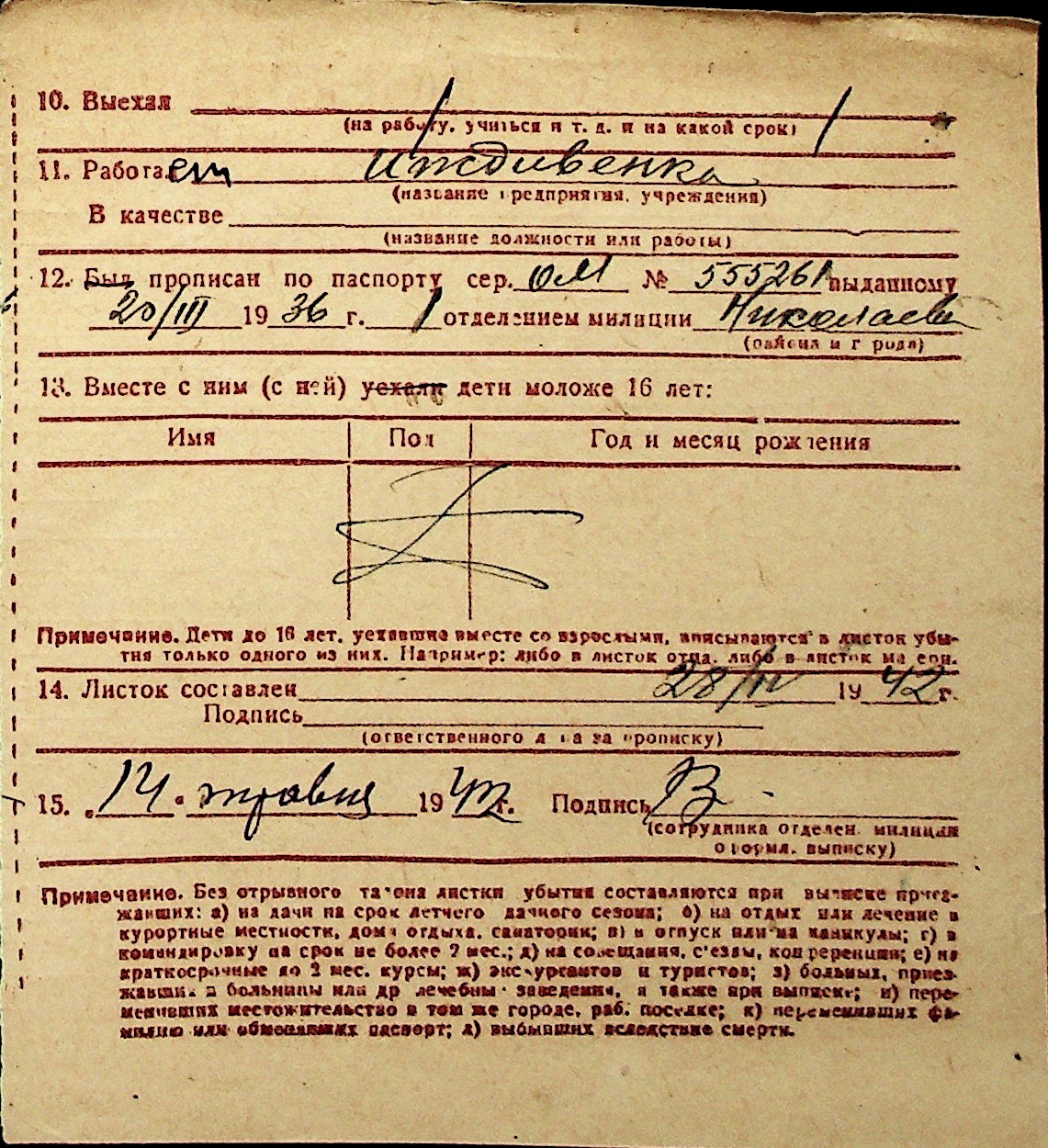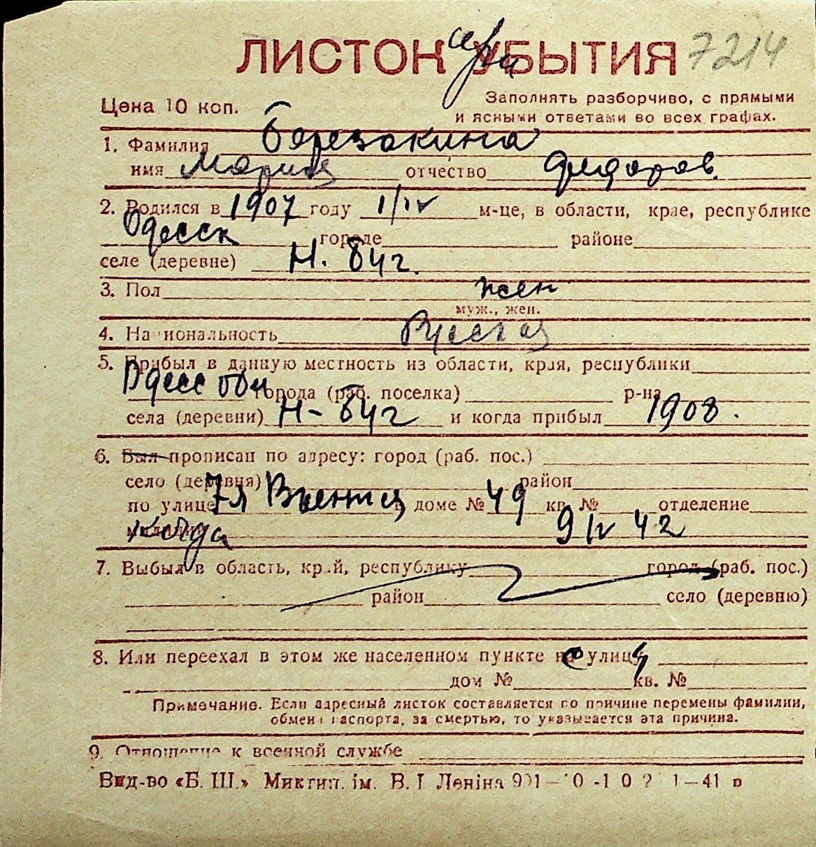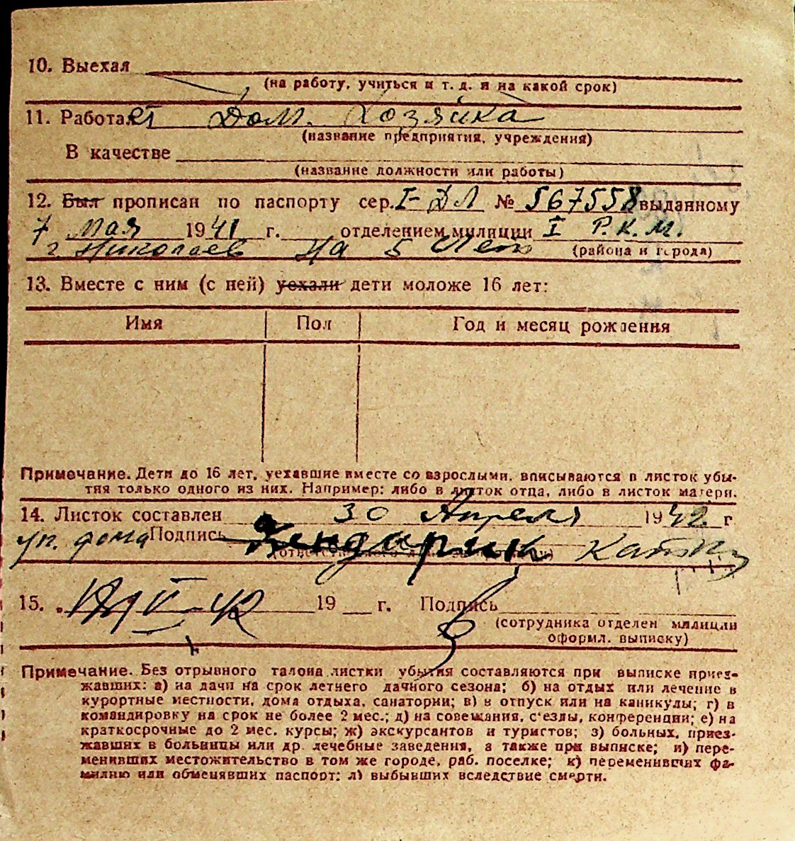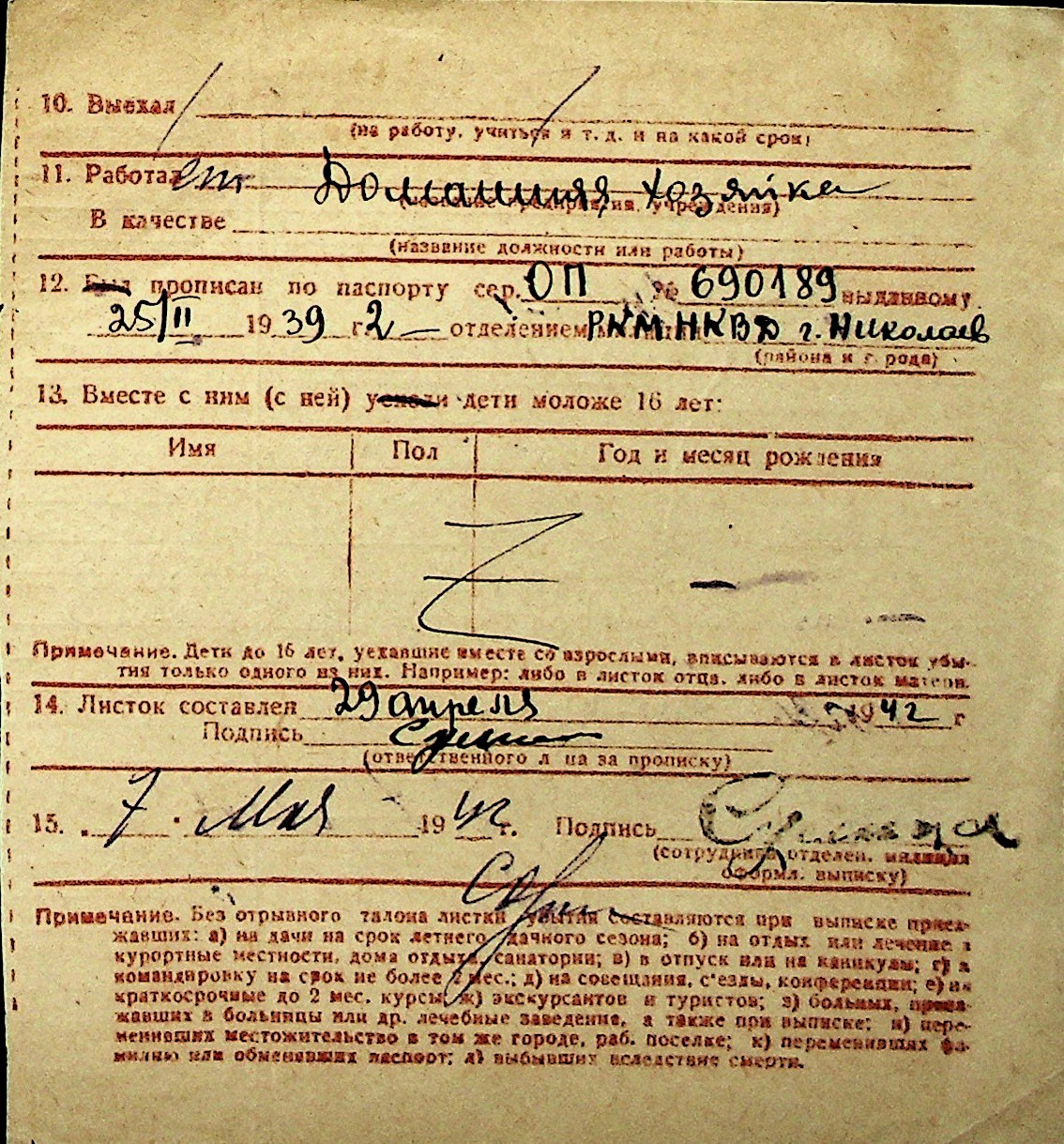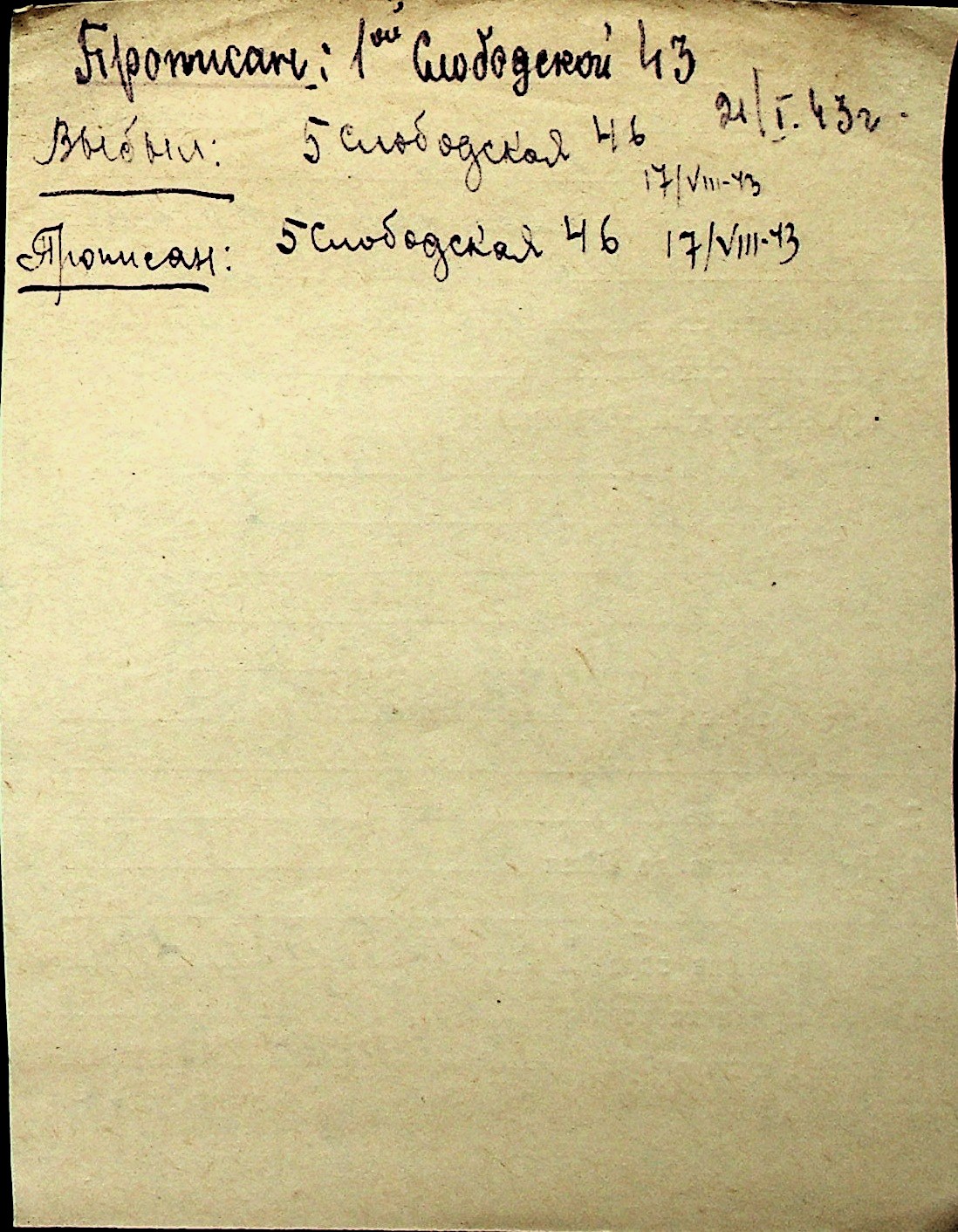 ◦ ◦ Перелік карток на осіб, які мешкали у м. Миколаїв у період окупації 1941–1944 років