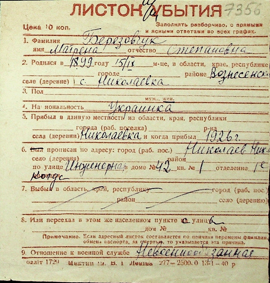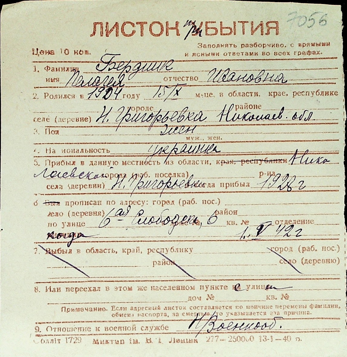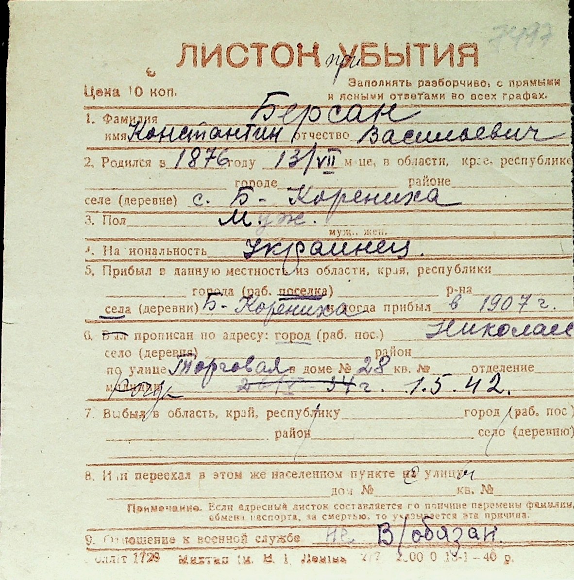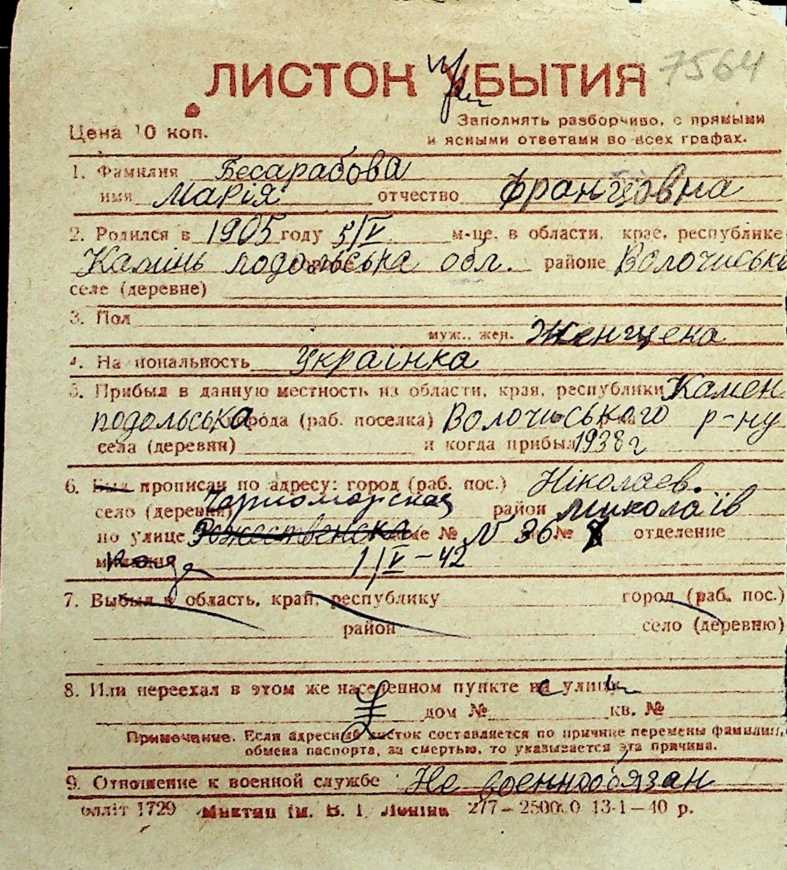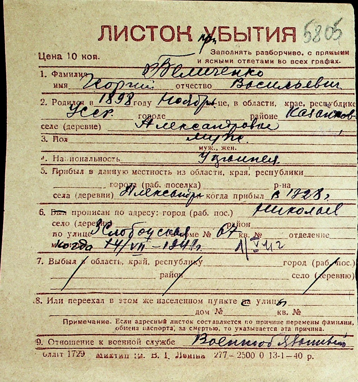◦ ◦ Перелік карток на осіб, які мешкали у м. Миколаїв у період окупації 1941–1944 років