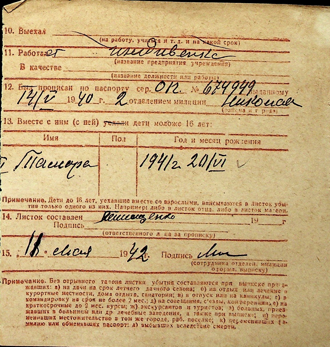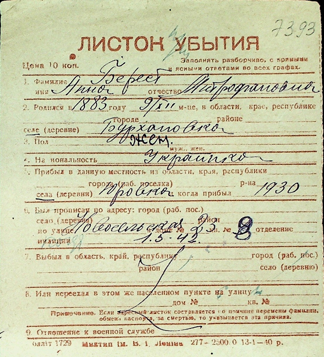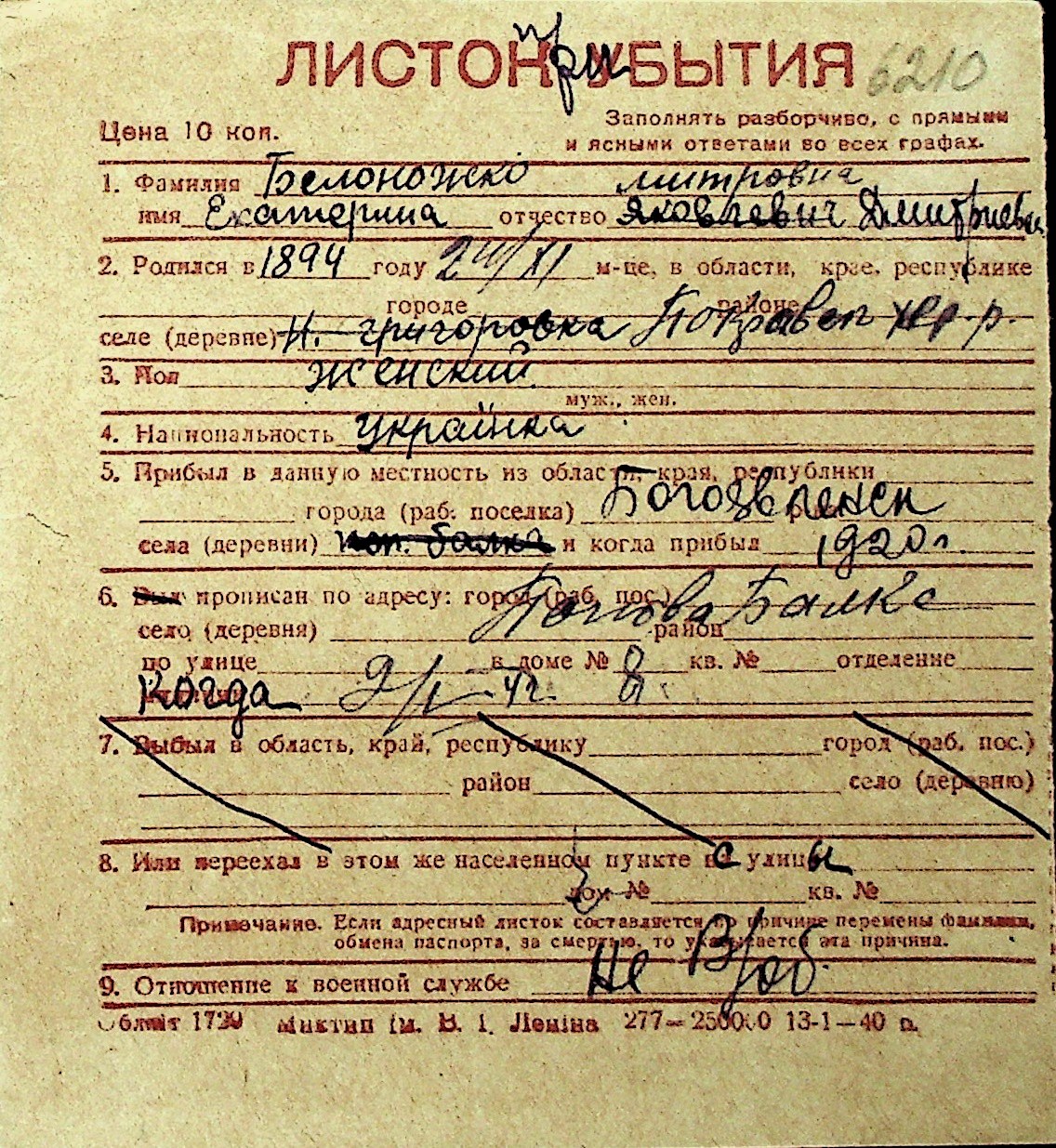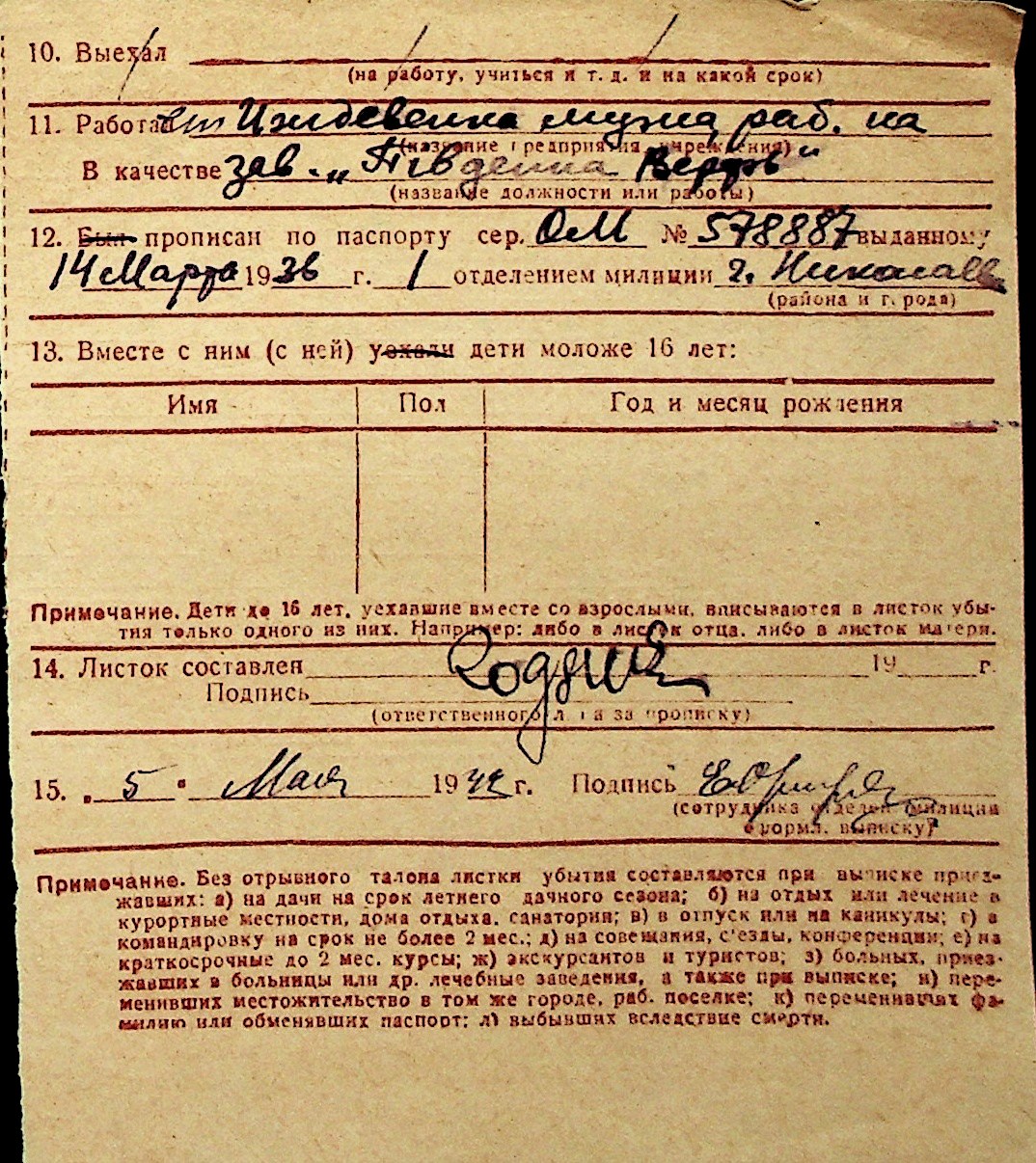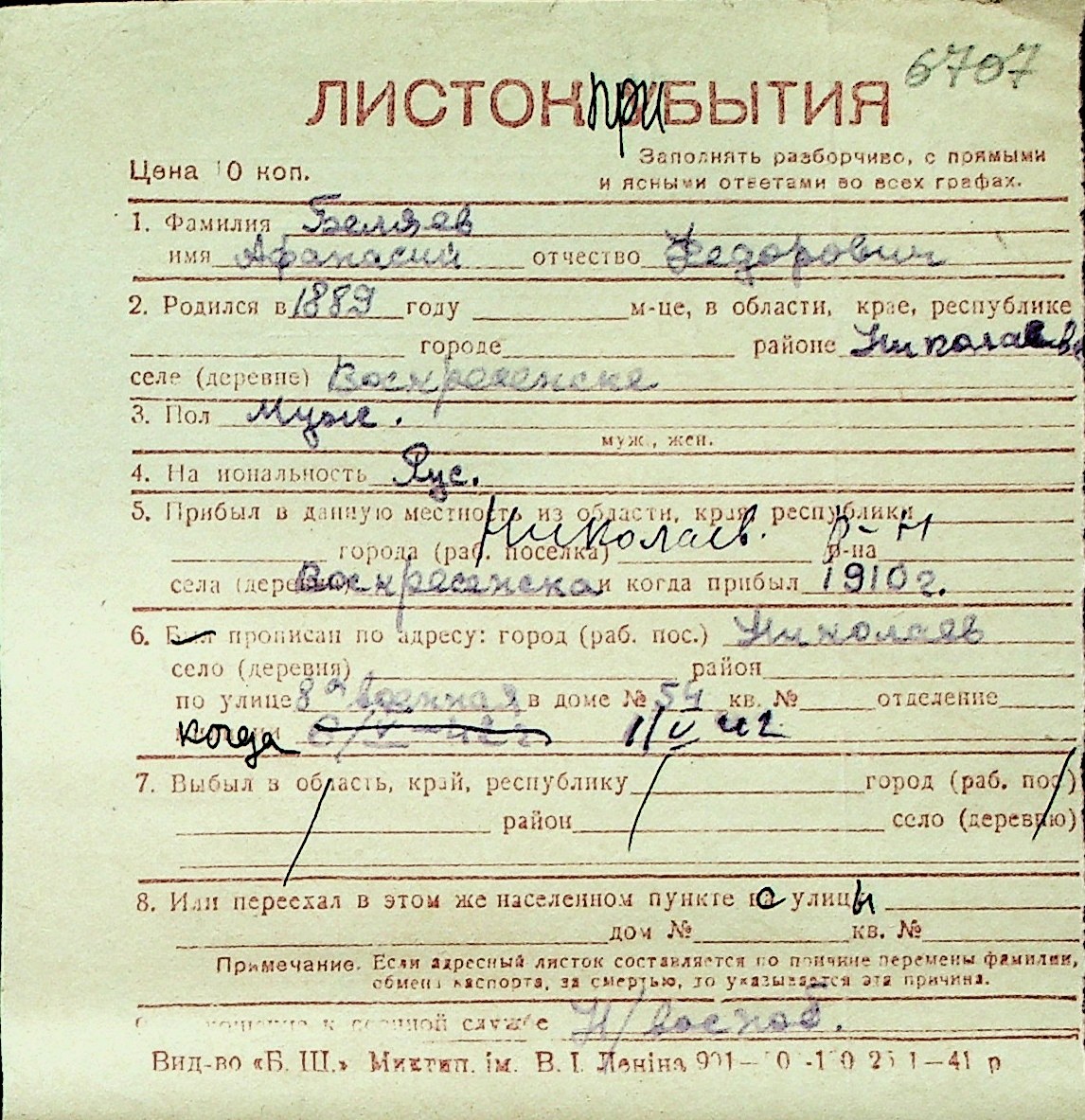 ◦ ◦ Перелік карток на осіб, які мешкали у м. Миколаїв у період окупації 1941–1944 років