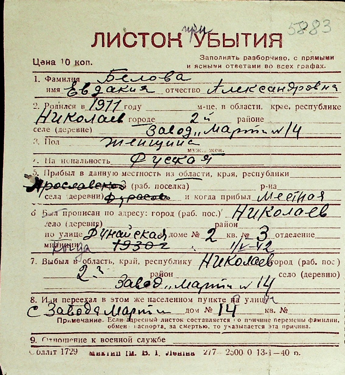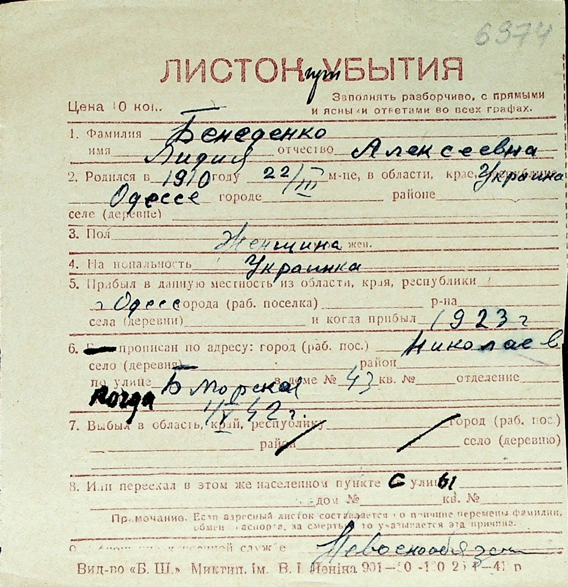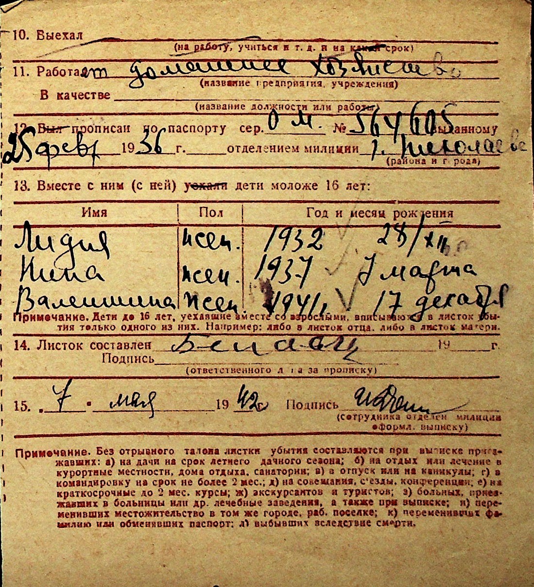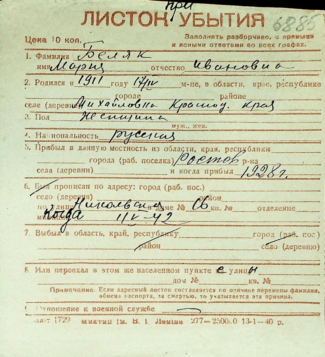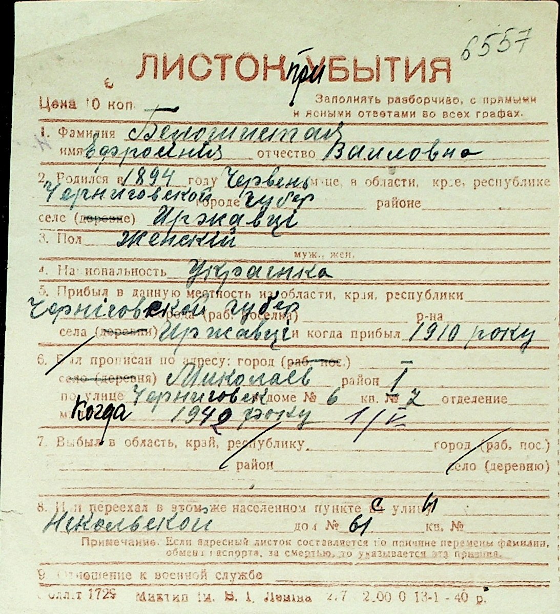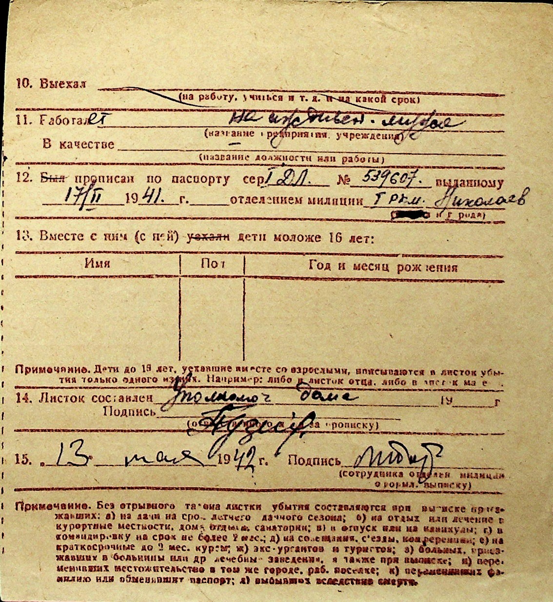 ◦ ◦ Перелік карток на осіб, які мешкали у м. Миколаїв у період окупації 1941–1944 років