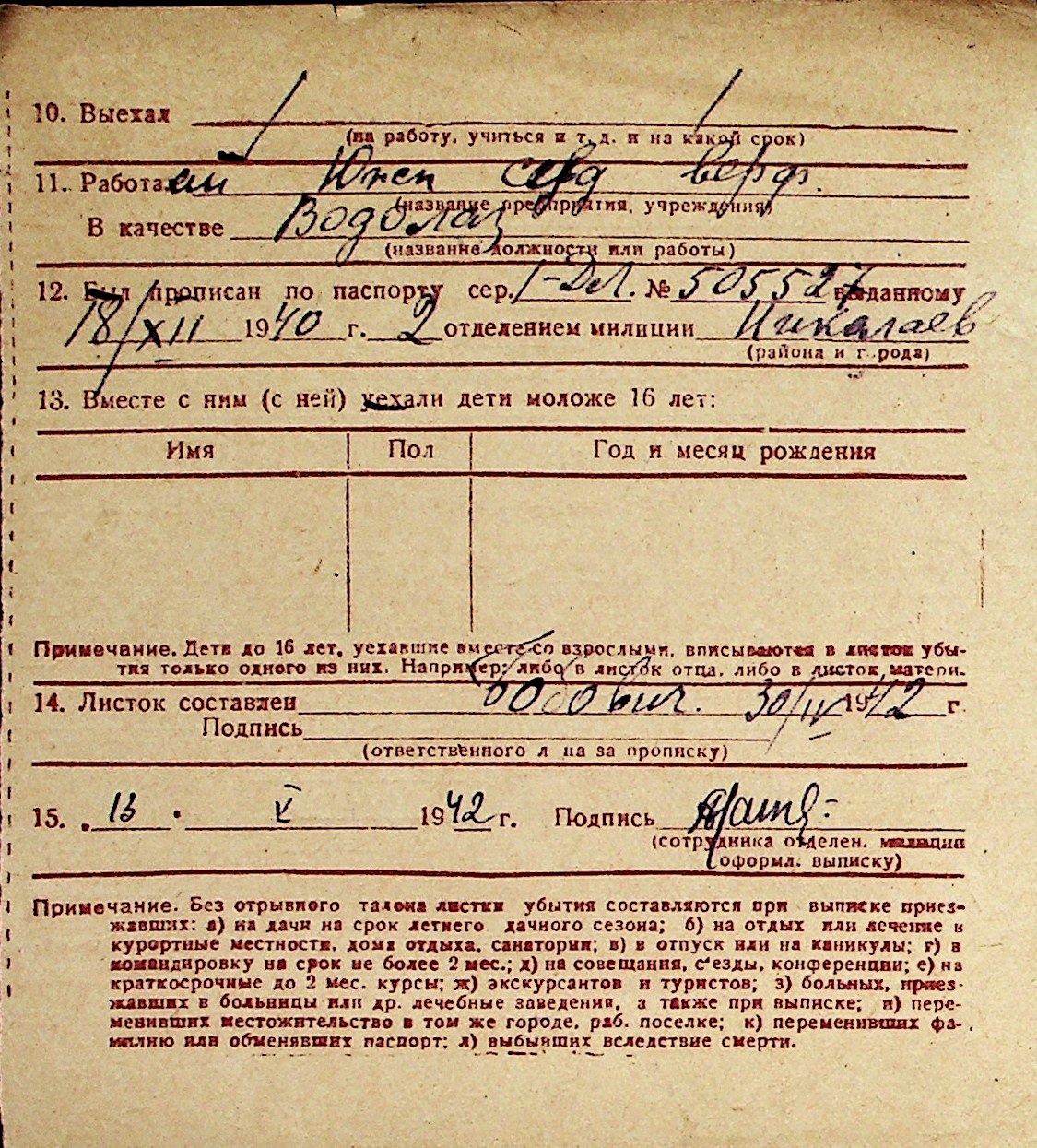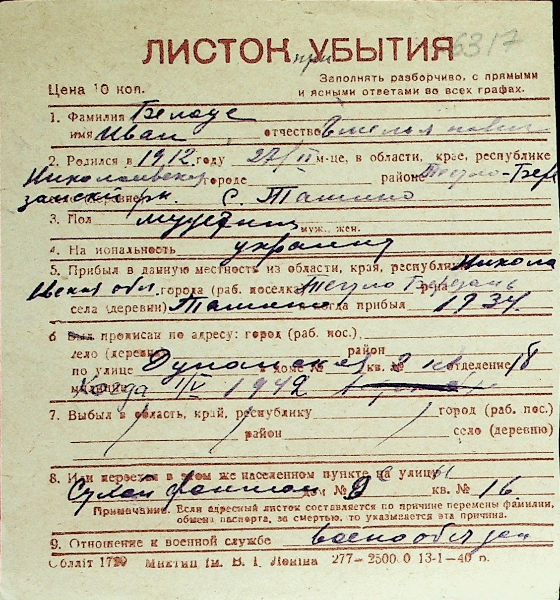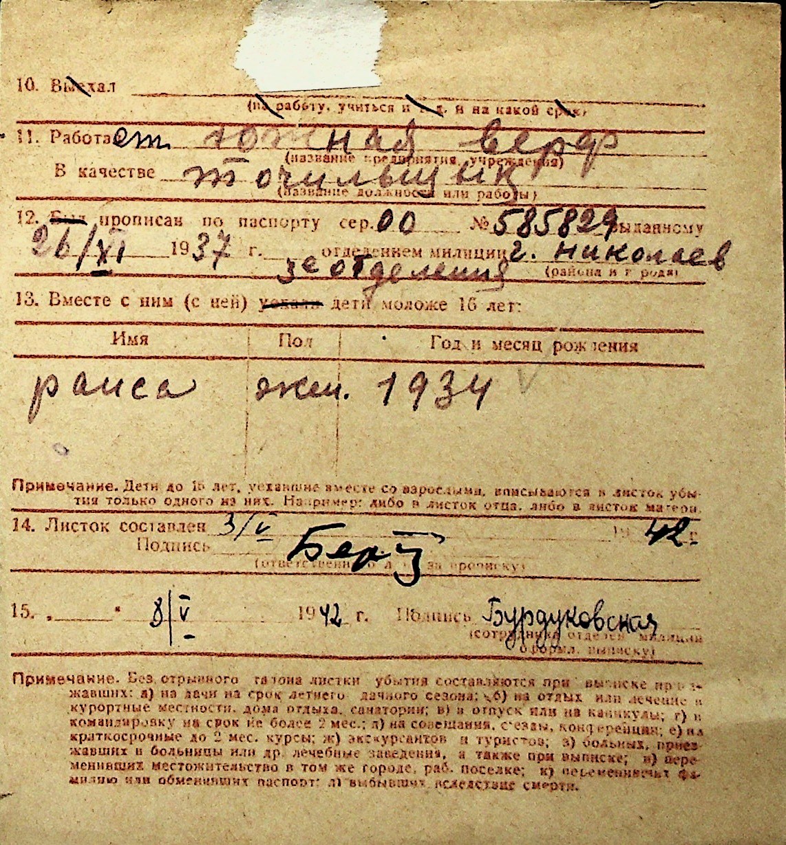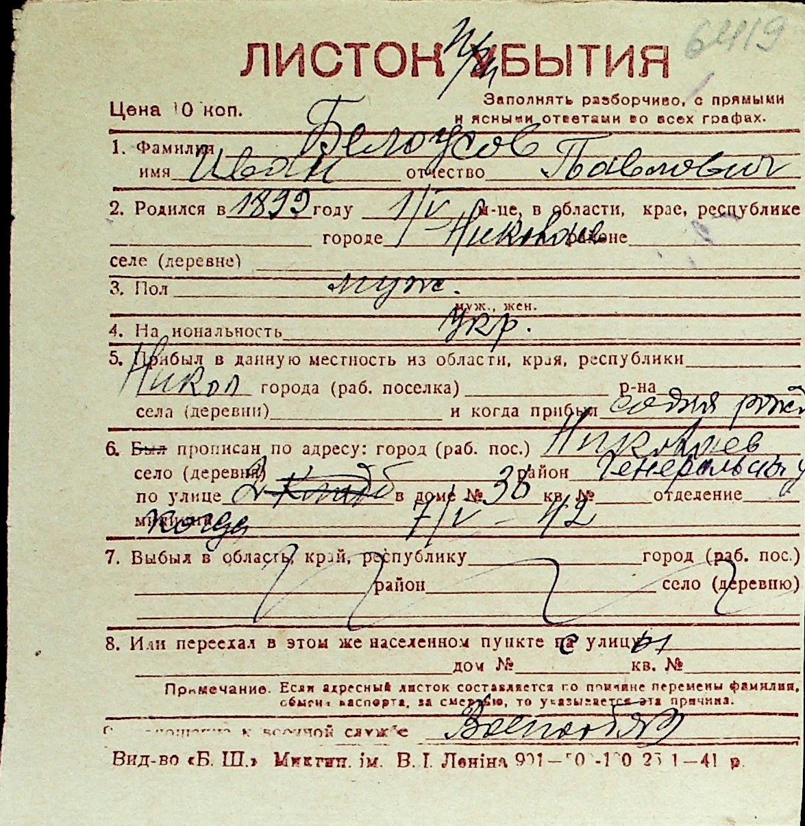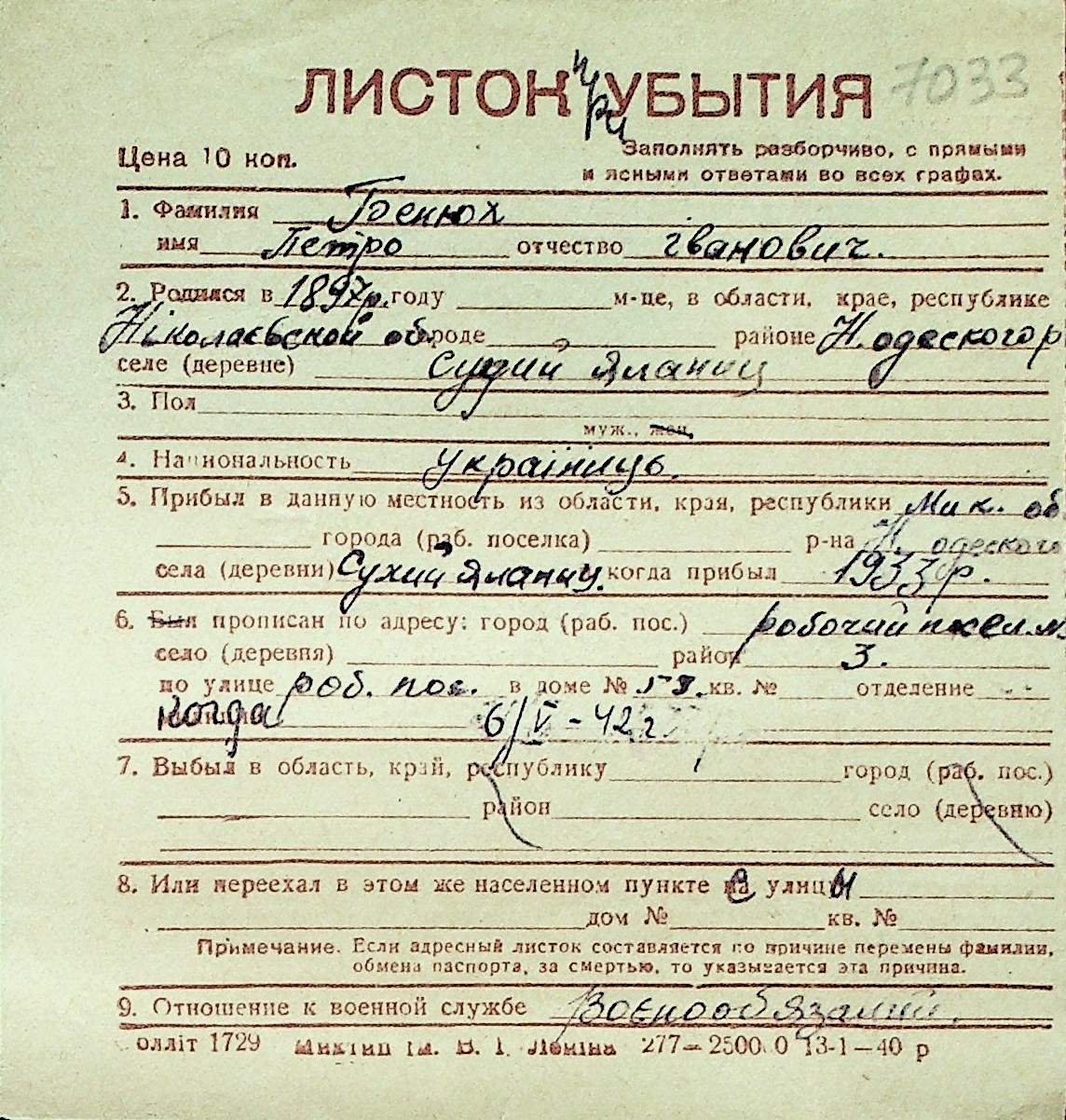 ◦ ◦ Перелік карток на осіб, які мешкали у м. Миколаїв у період окупації 1941–1944 років