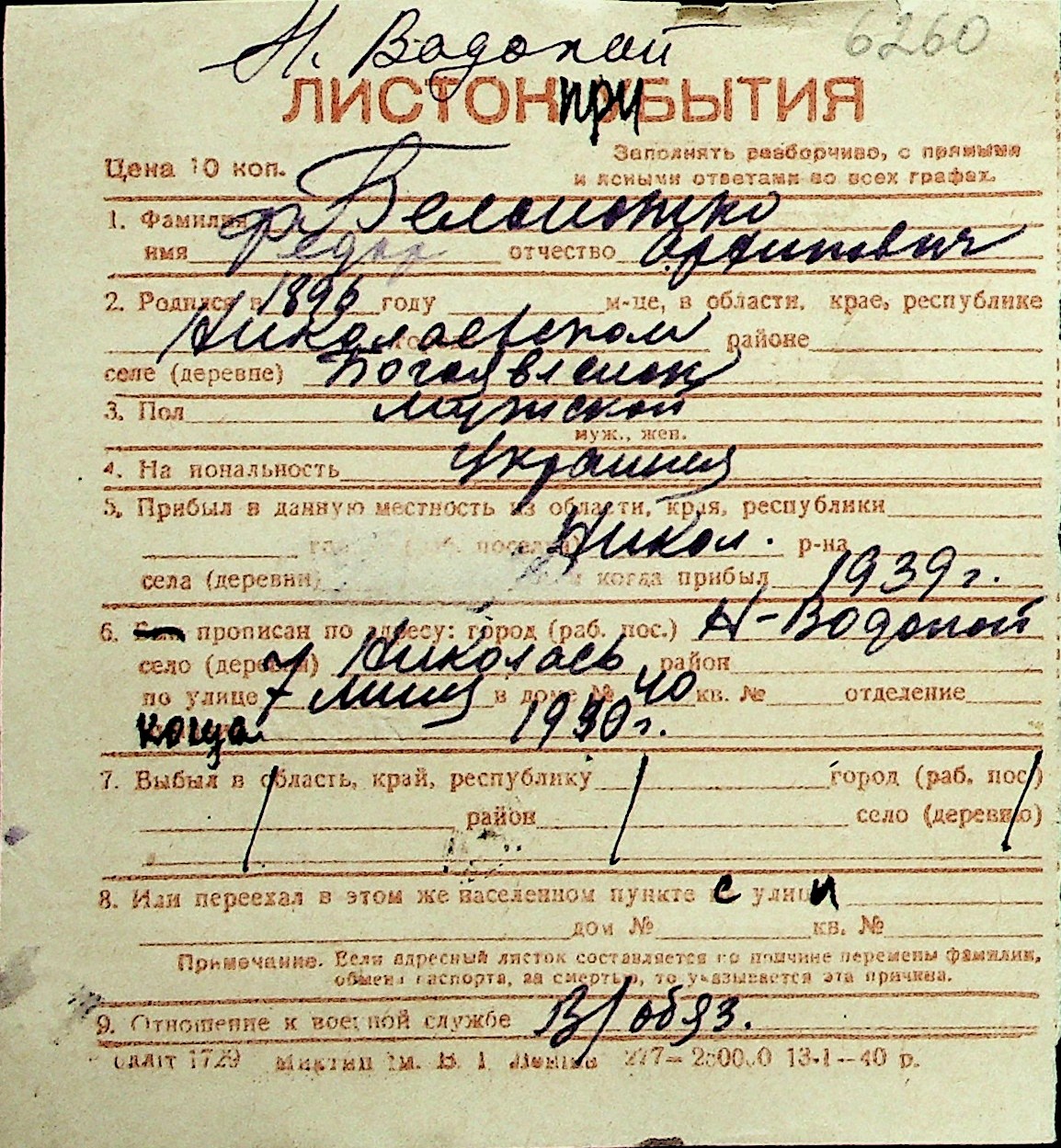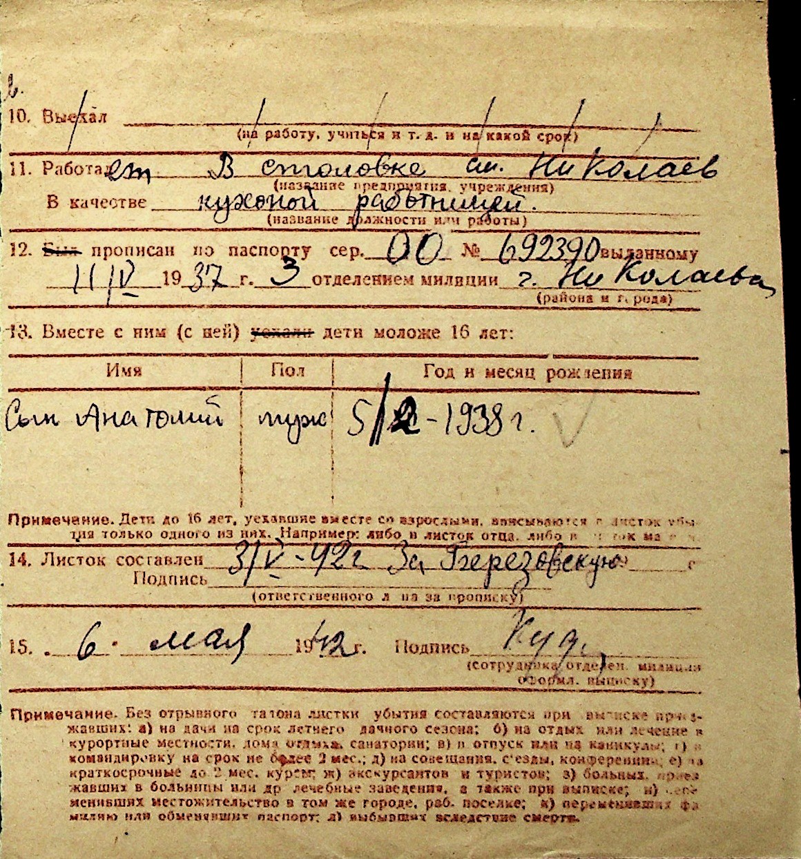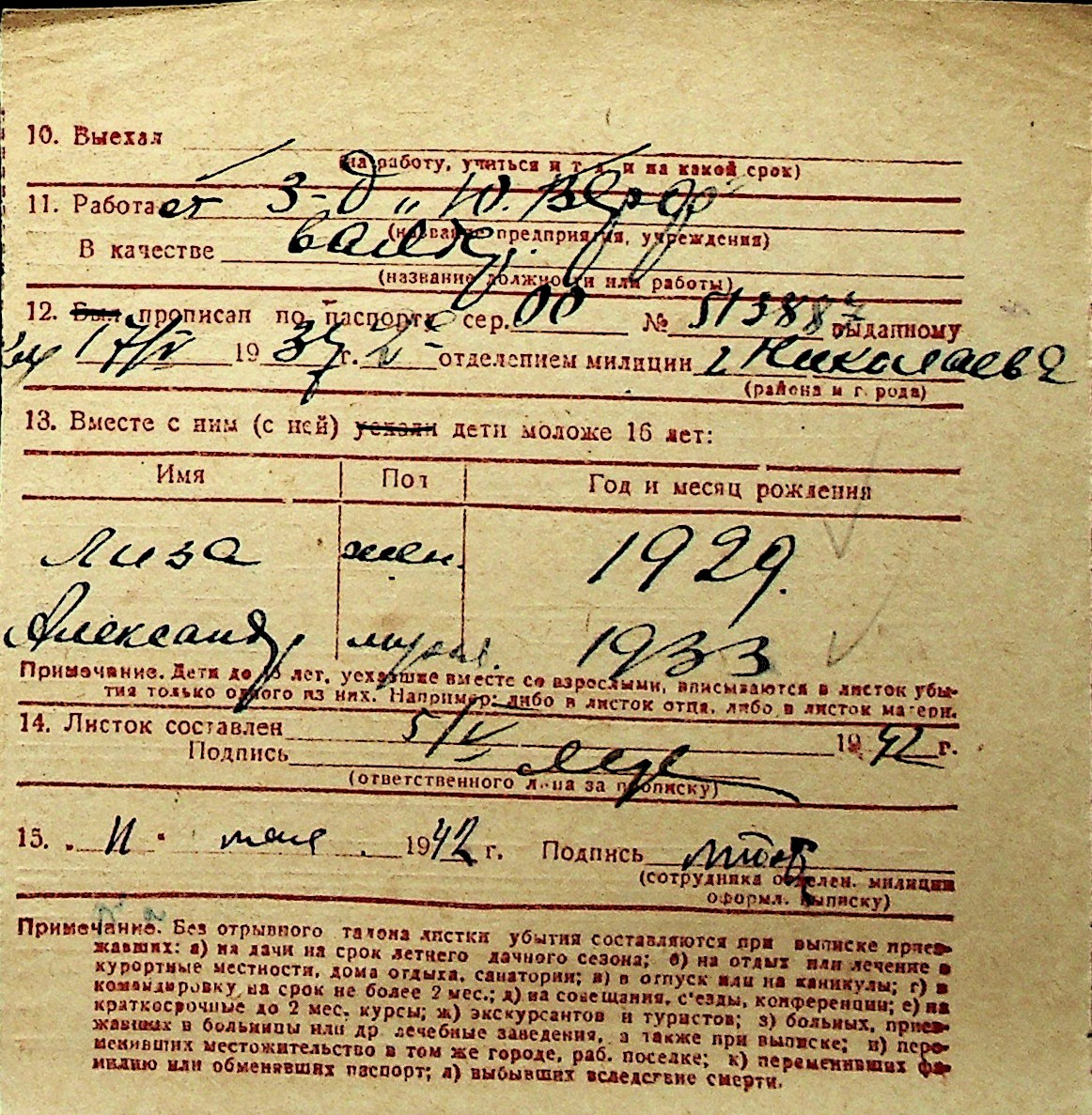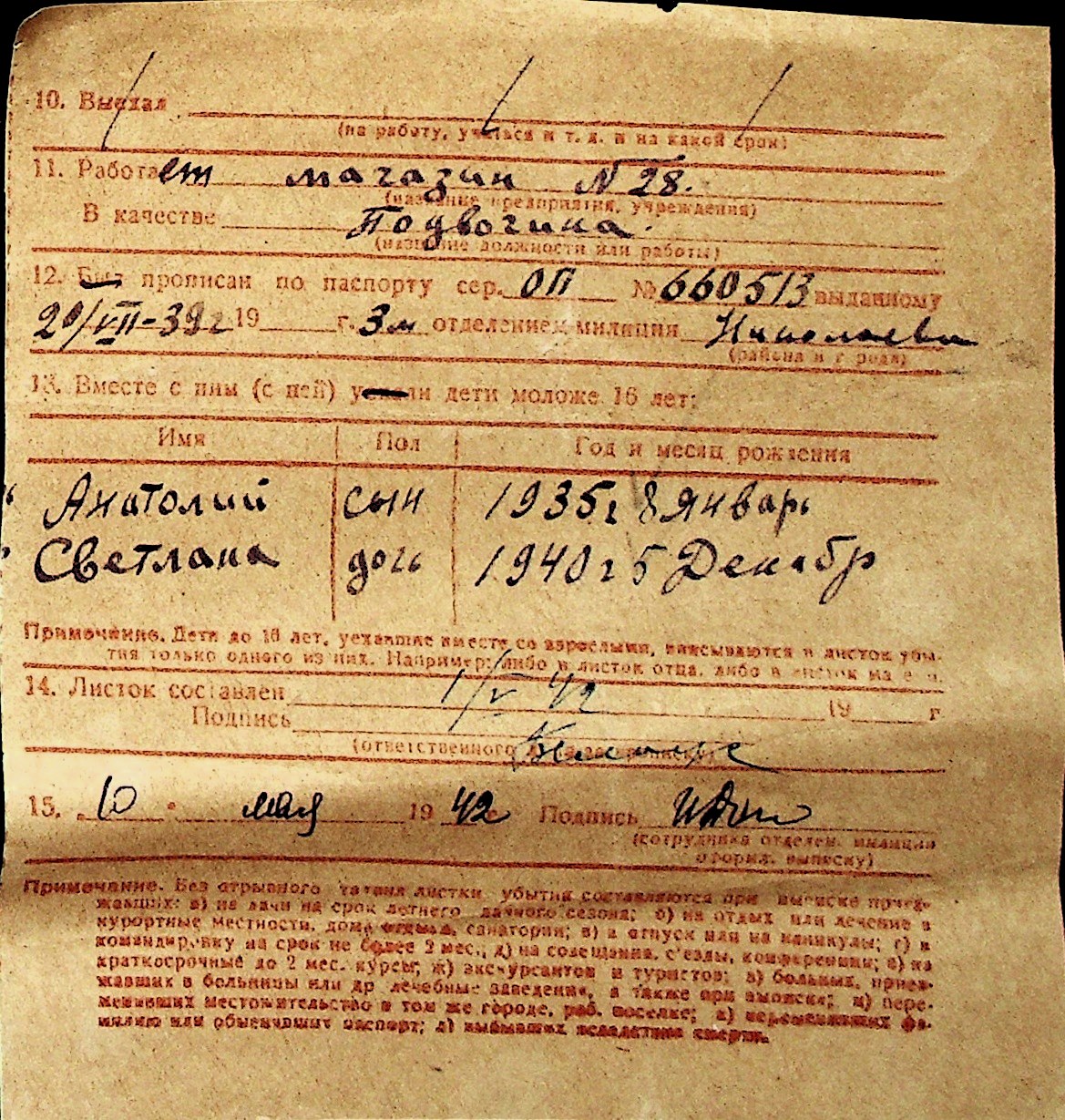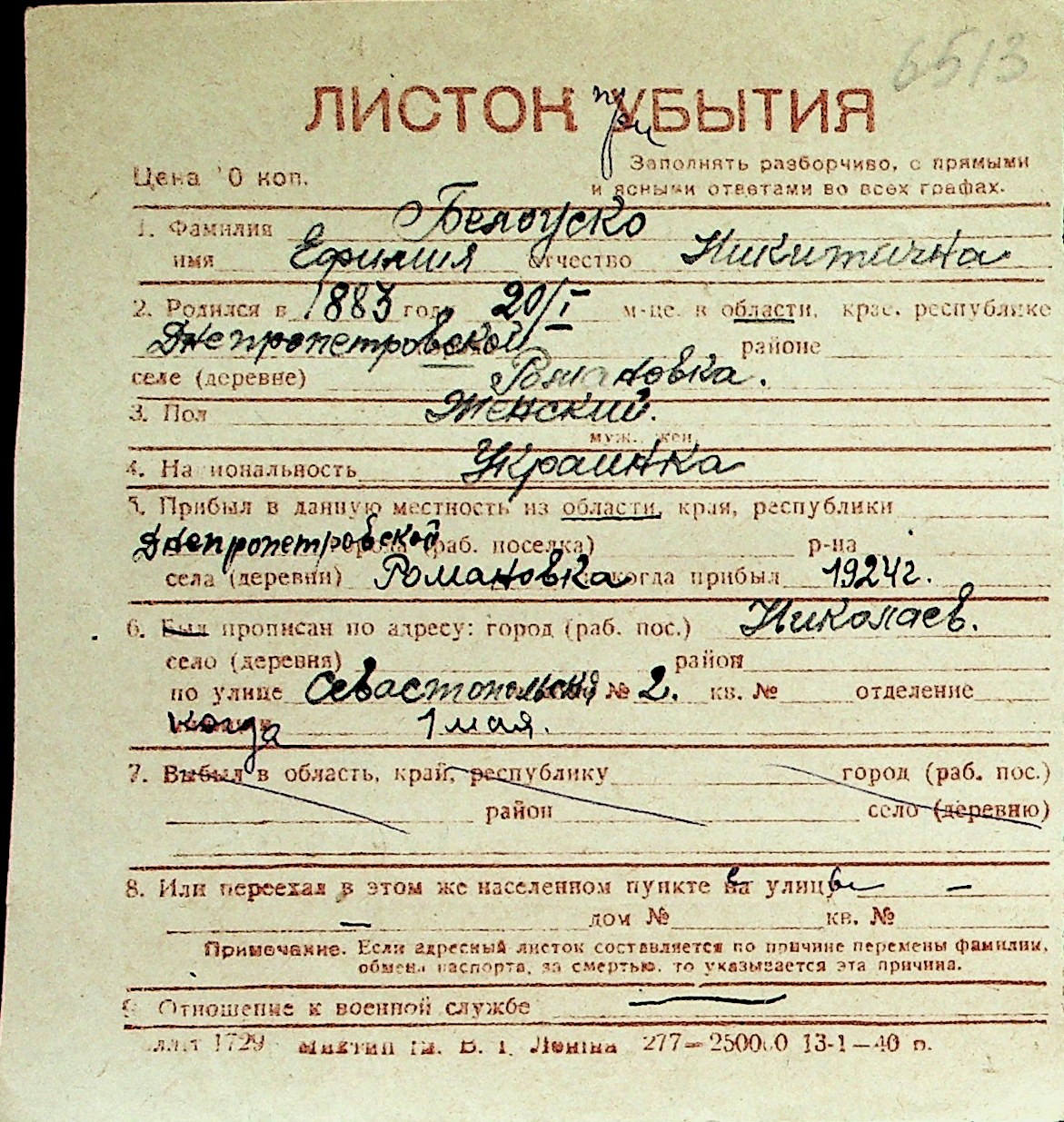 ◦ ◦ Перелік карток на осіб, які мешкали у м. Миколаїв у період окупації 1941–1944 років