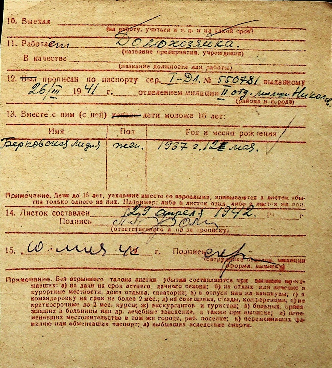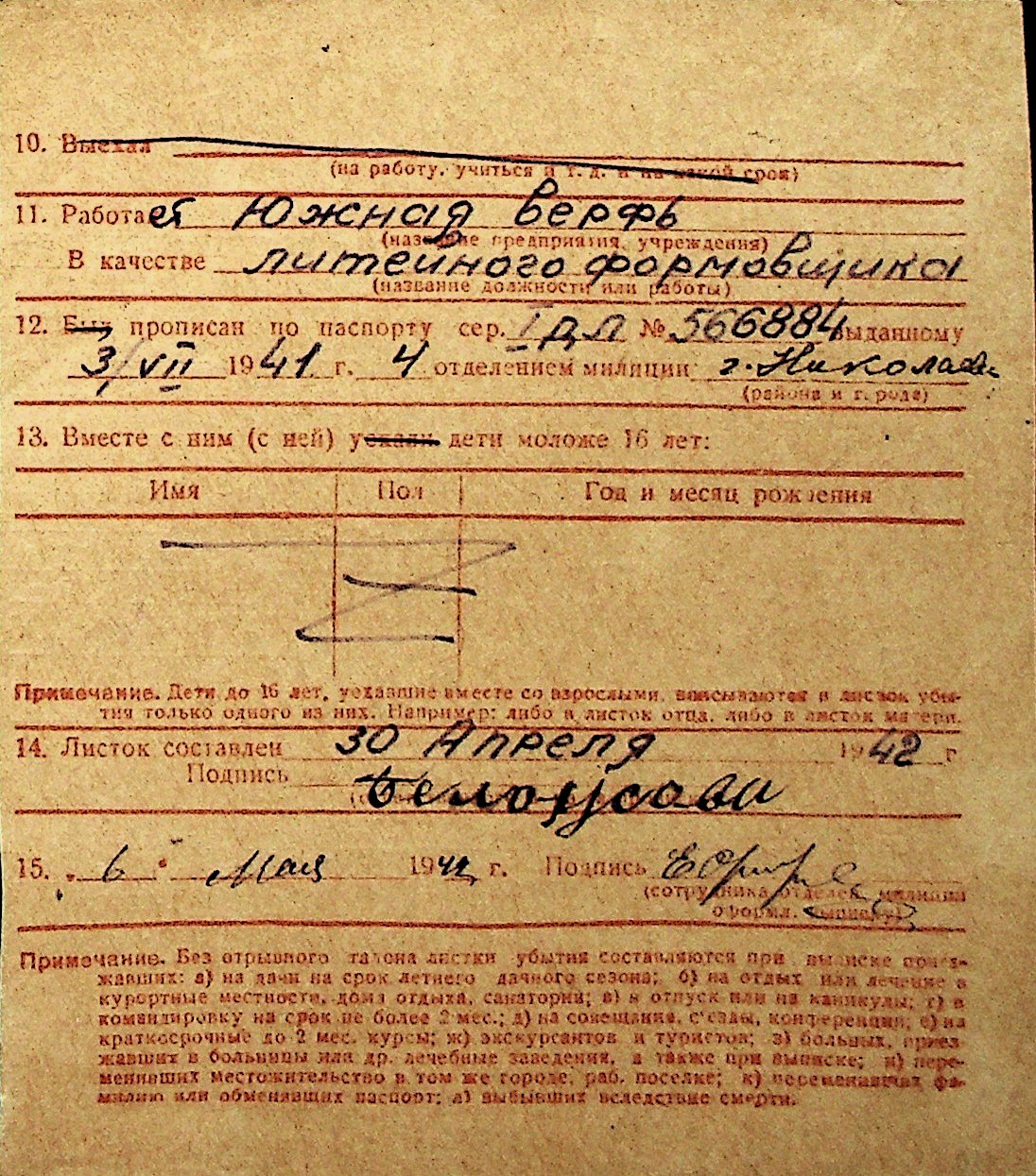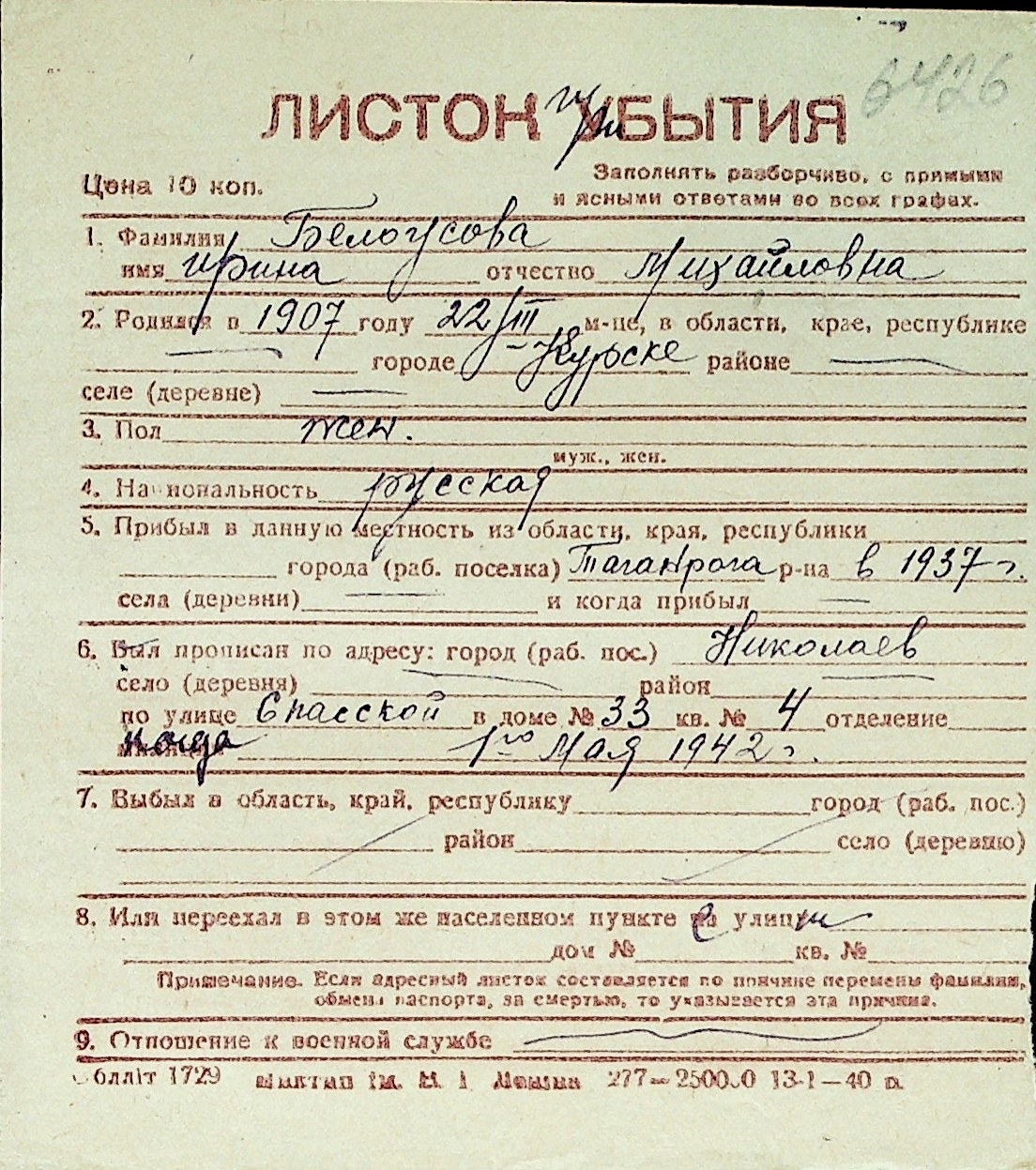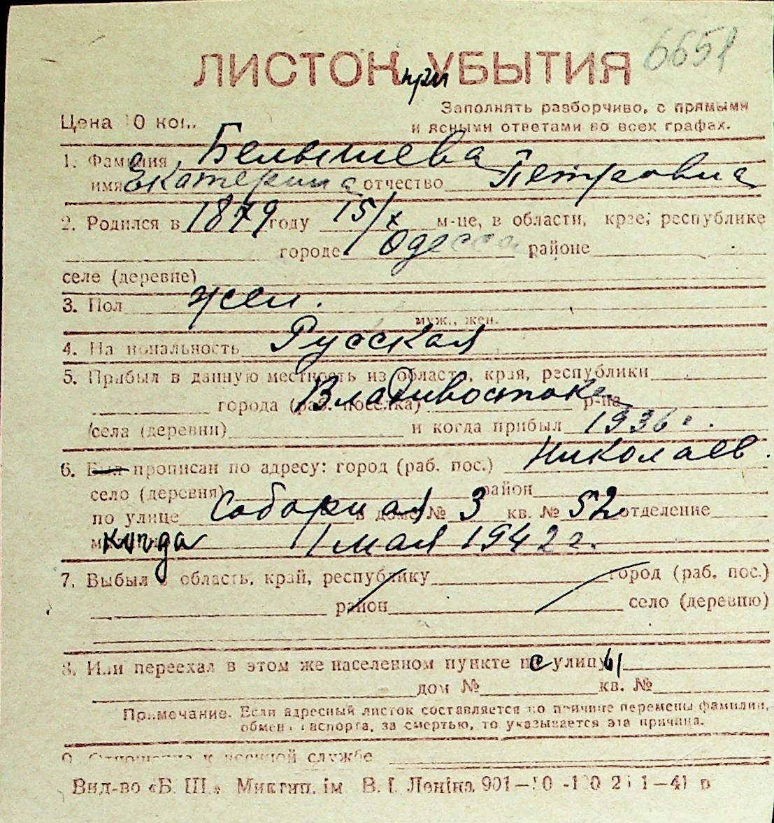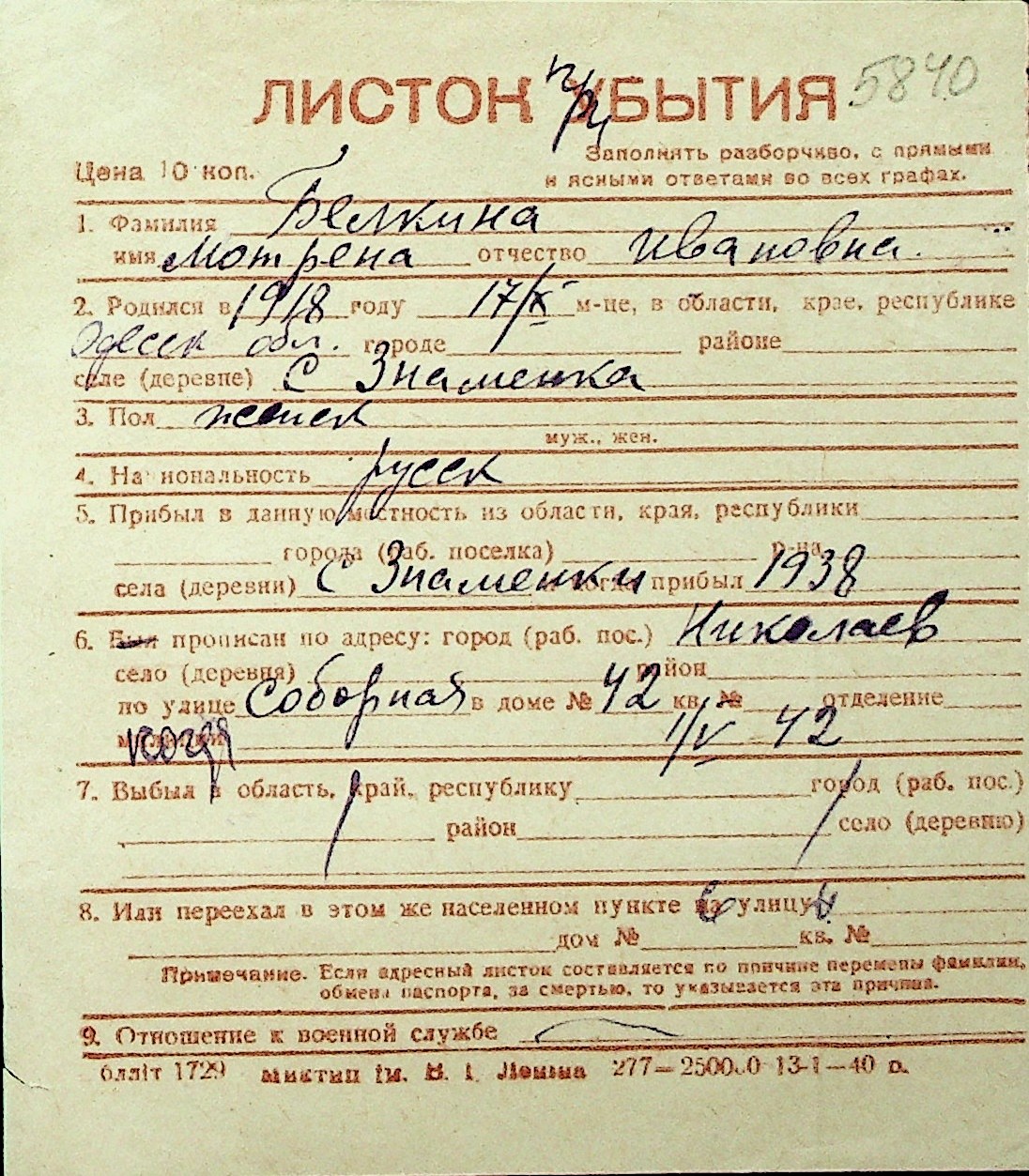 ◦ ◦ Перелік карток на осіб, які мешкали у м. Миколаїв у період окупації 1941–1944 років