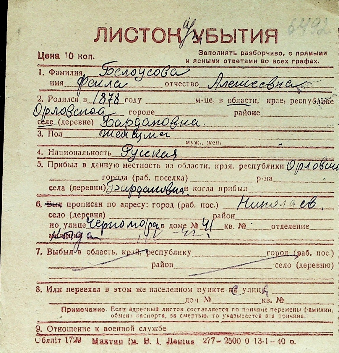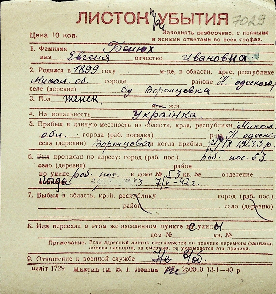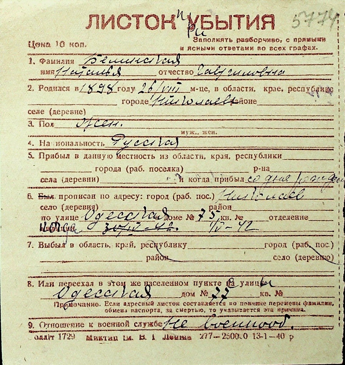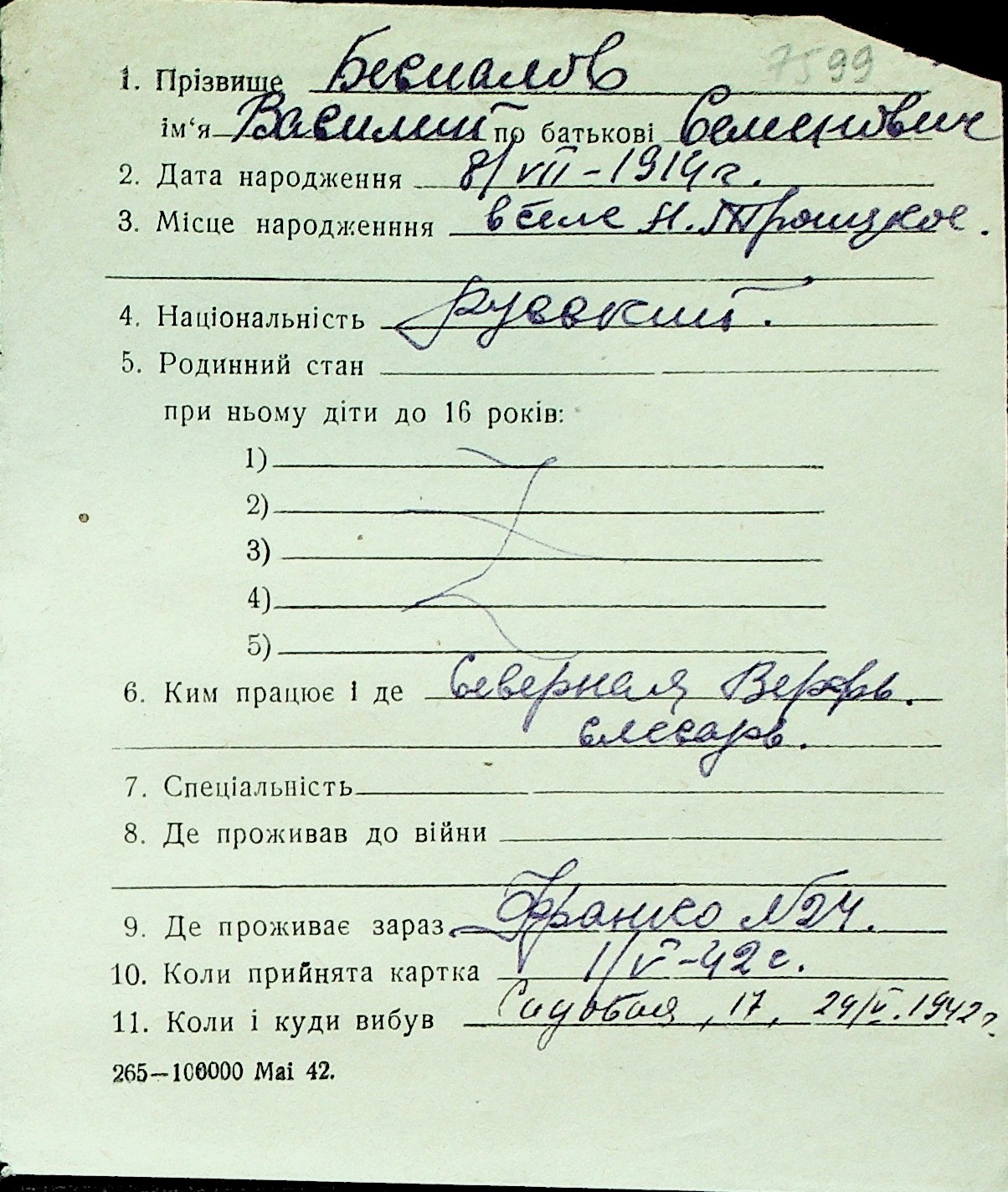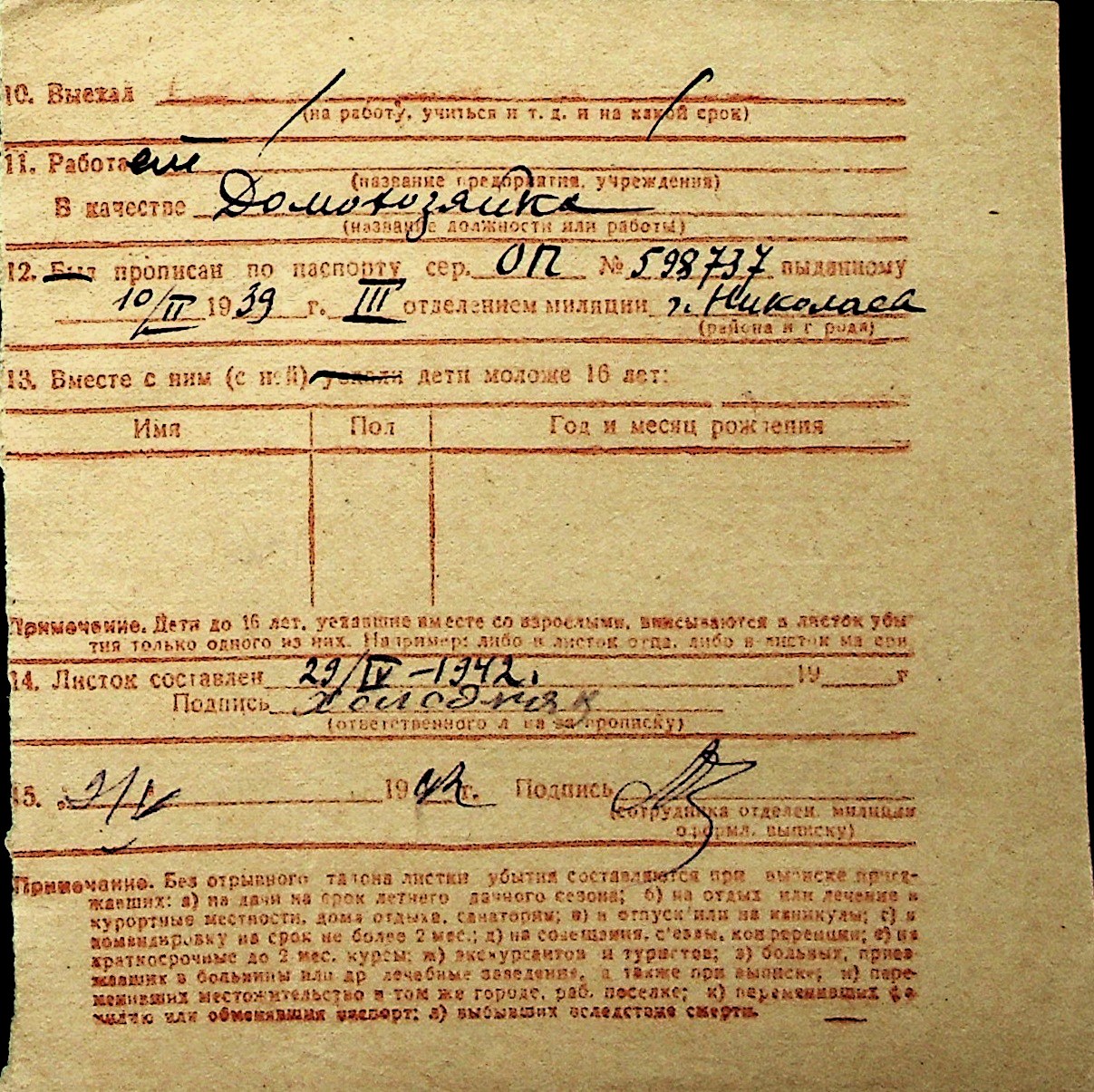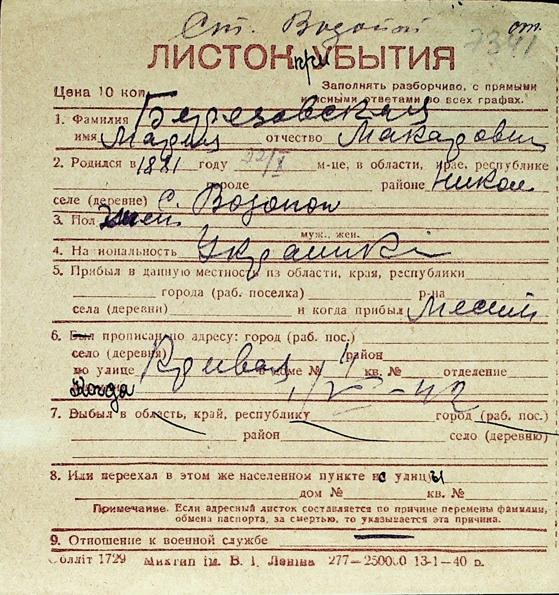 ◦ ◦ Перелік карток на осіб, які мешкали у м. Миколаїв у період окупації 1941–1944 років