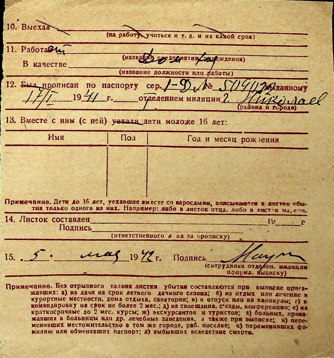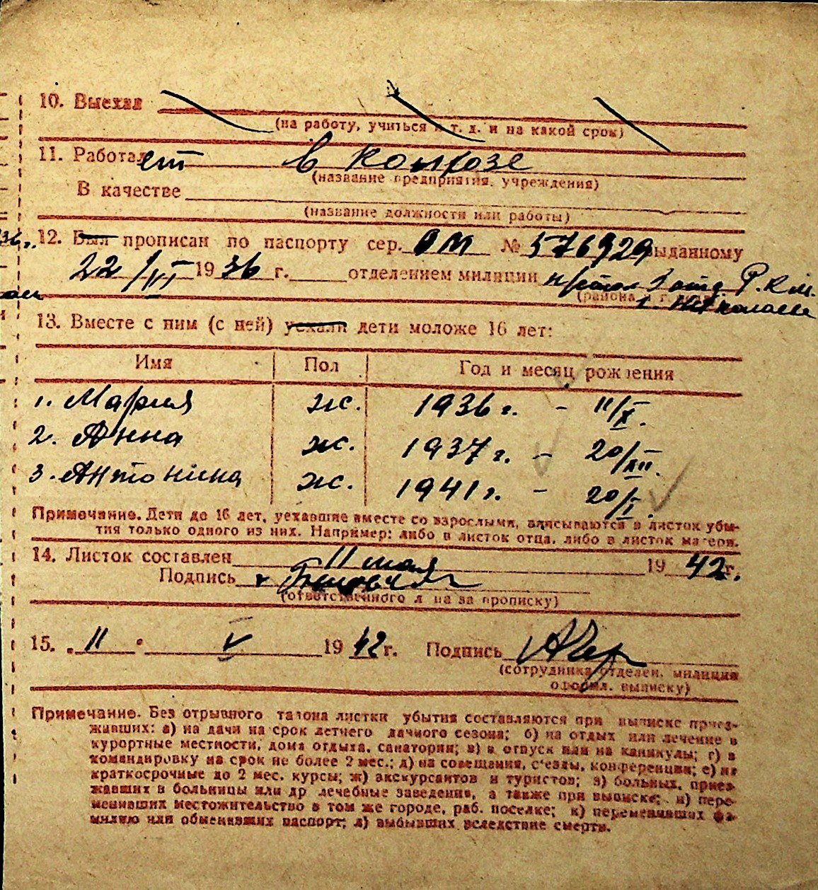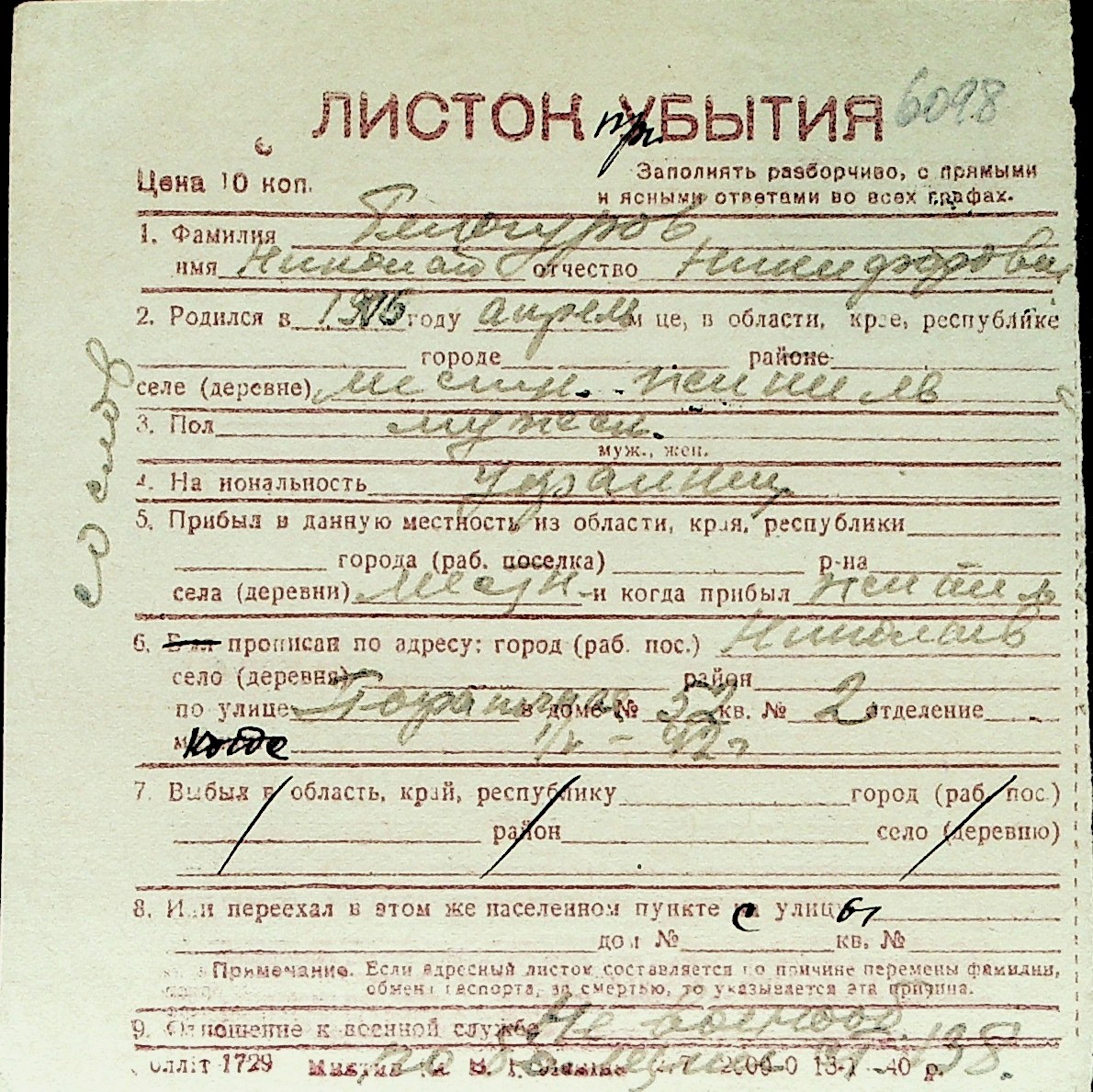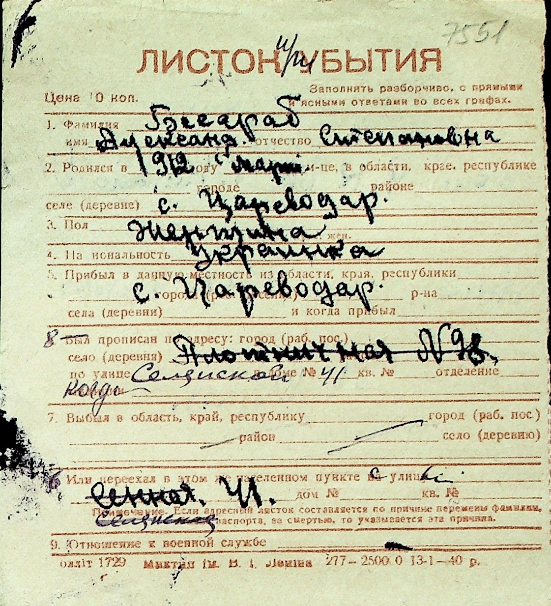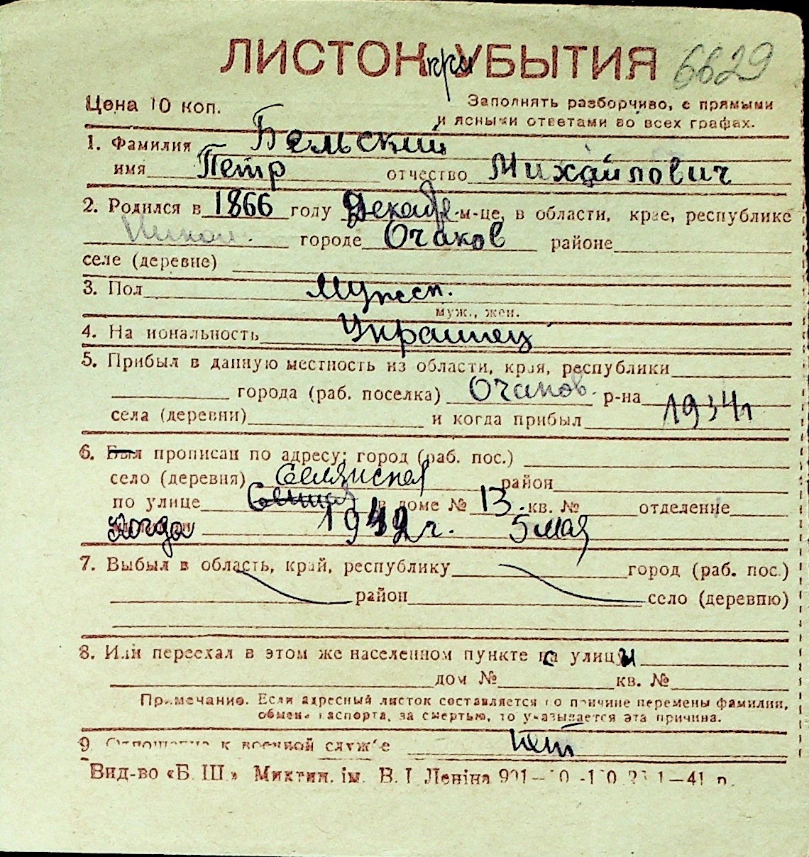 ◦ ◦ Перелік карток на осіб, які мешкали у м. Миколаїв у період окупації 1941–1944 років