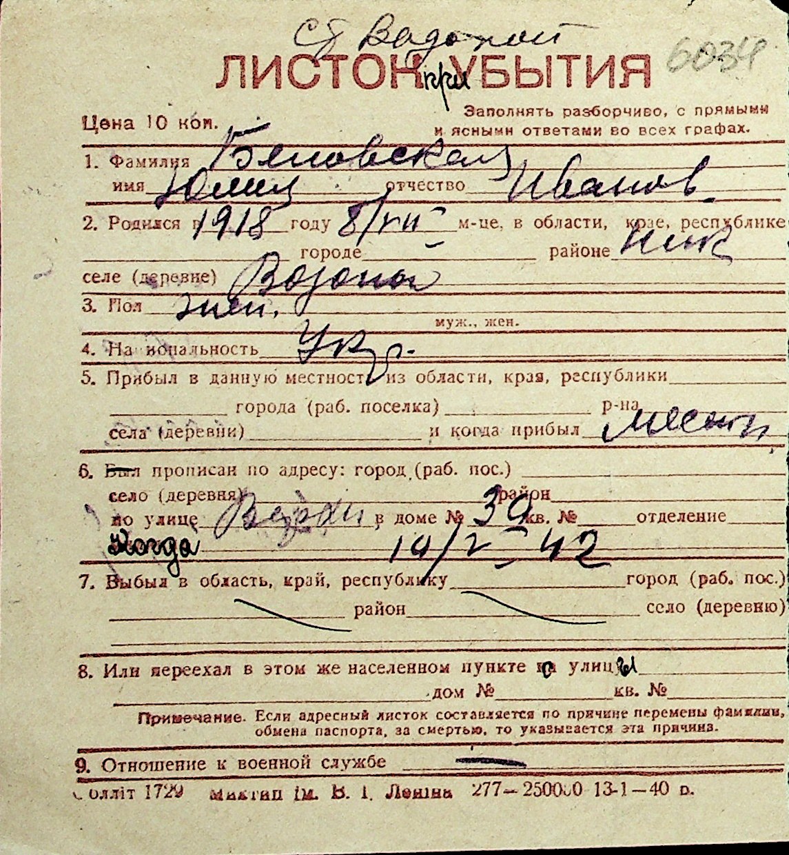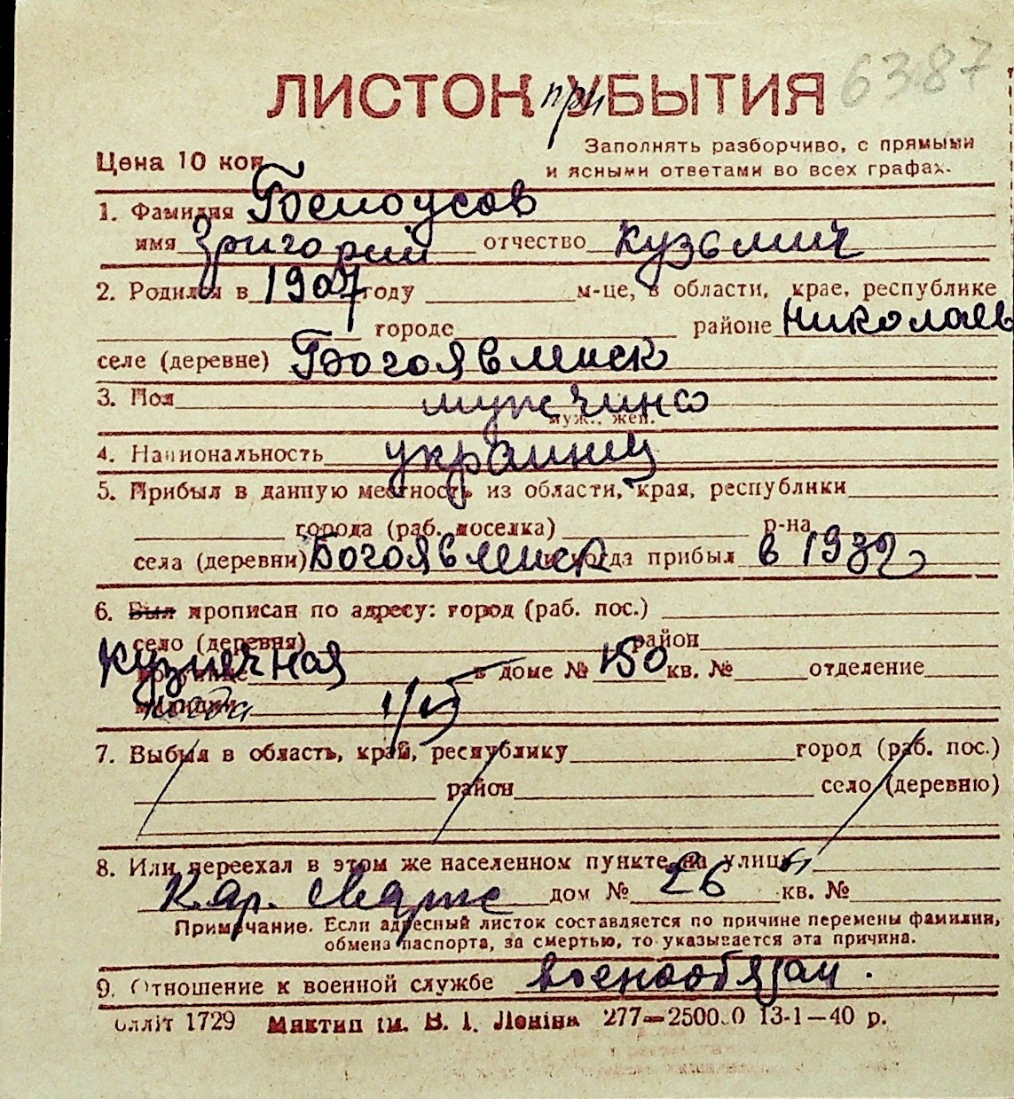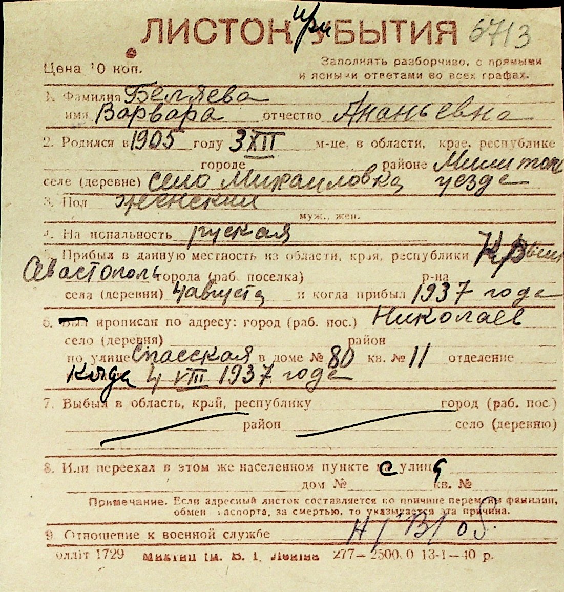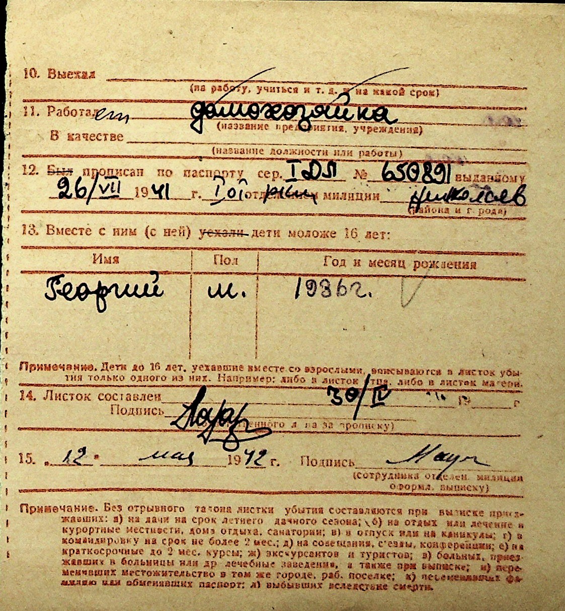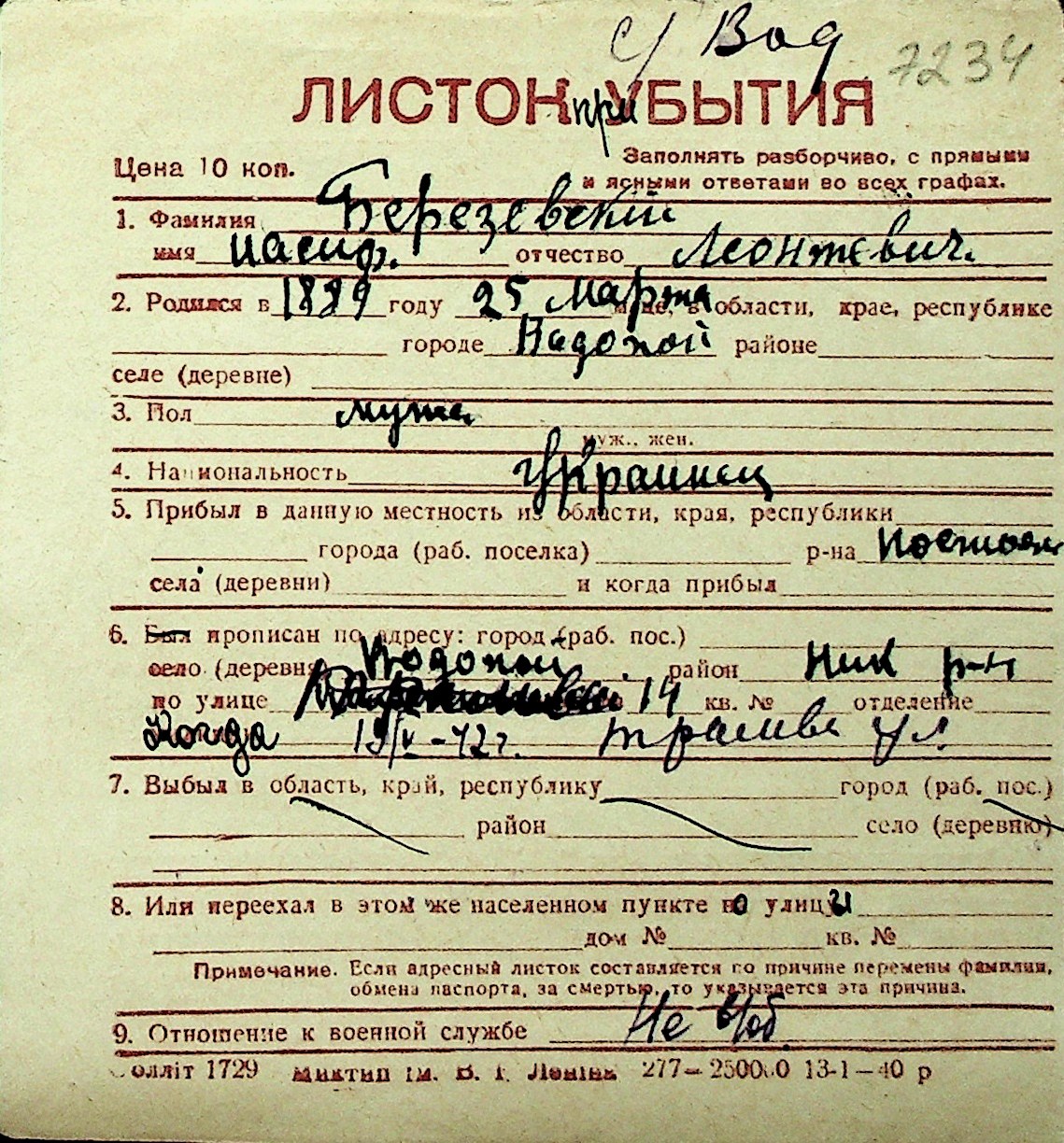 ◦ ◦ Перелік карток на осіб, які мешкали у м. Миколаїв у період окупації 1941–1944 років