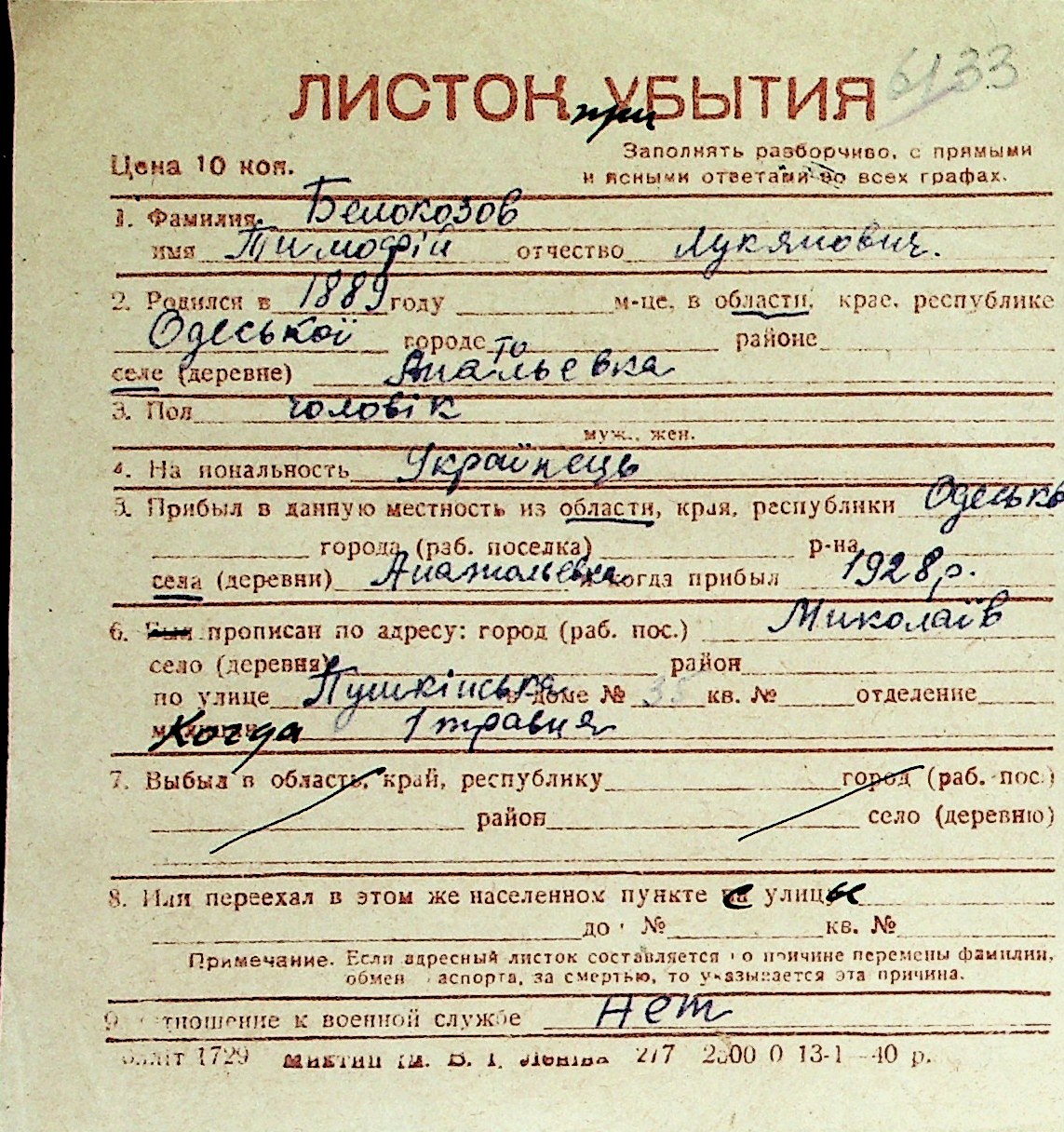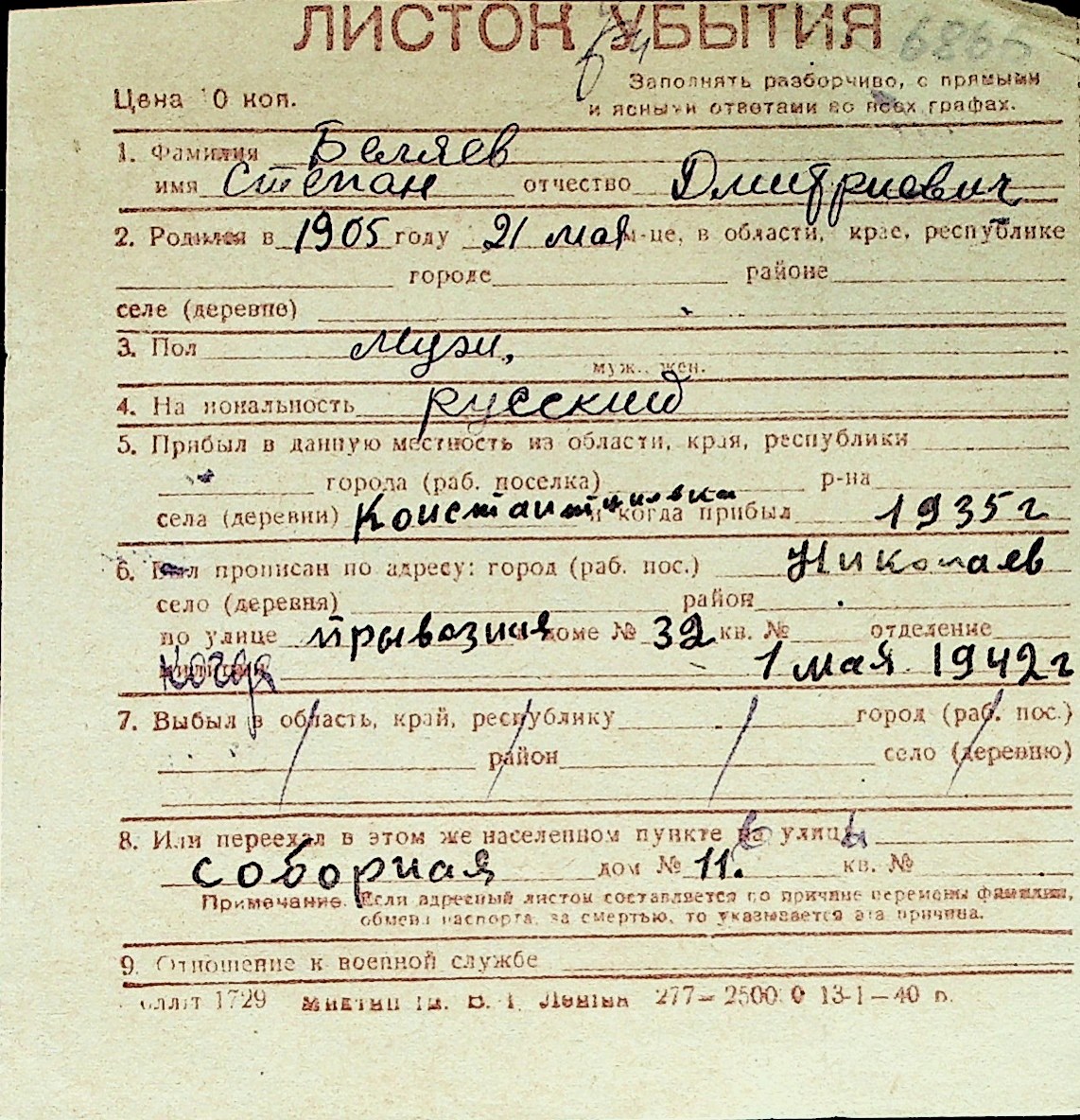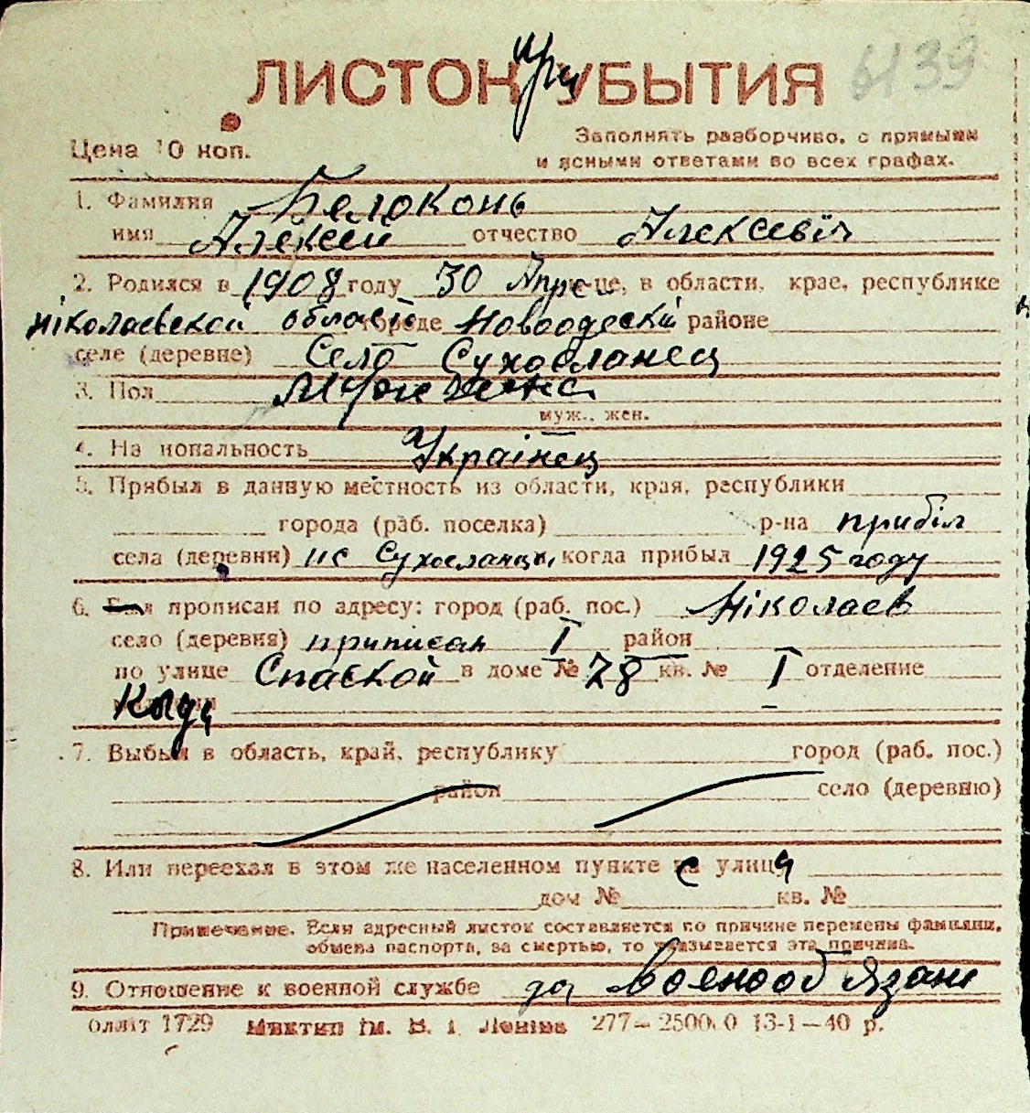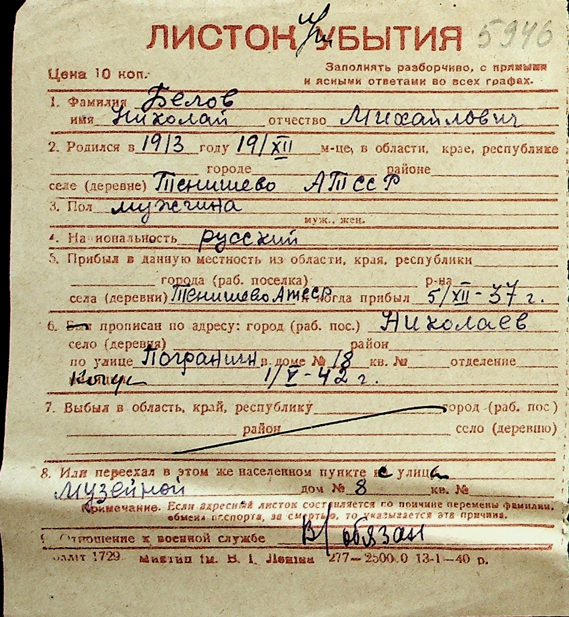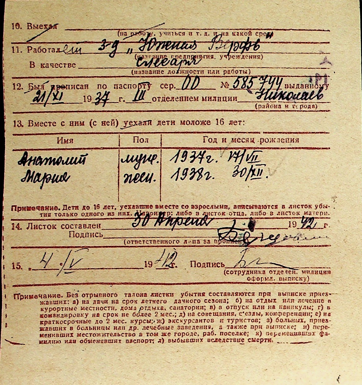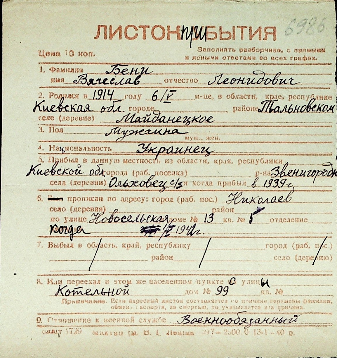 ◦ ◦ Перелік карток на осіб, які мешкали у м. Миколаїв у період окупації 1941–1944 років