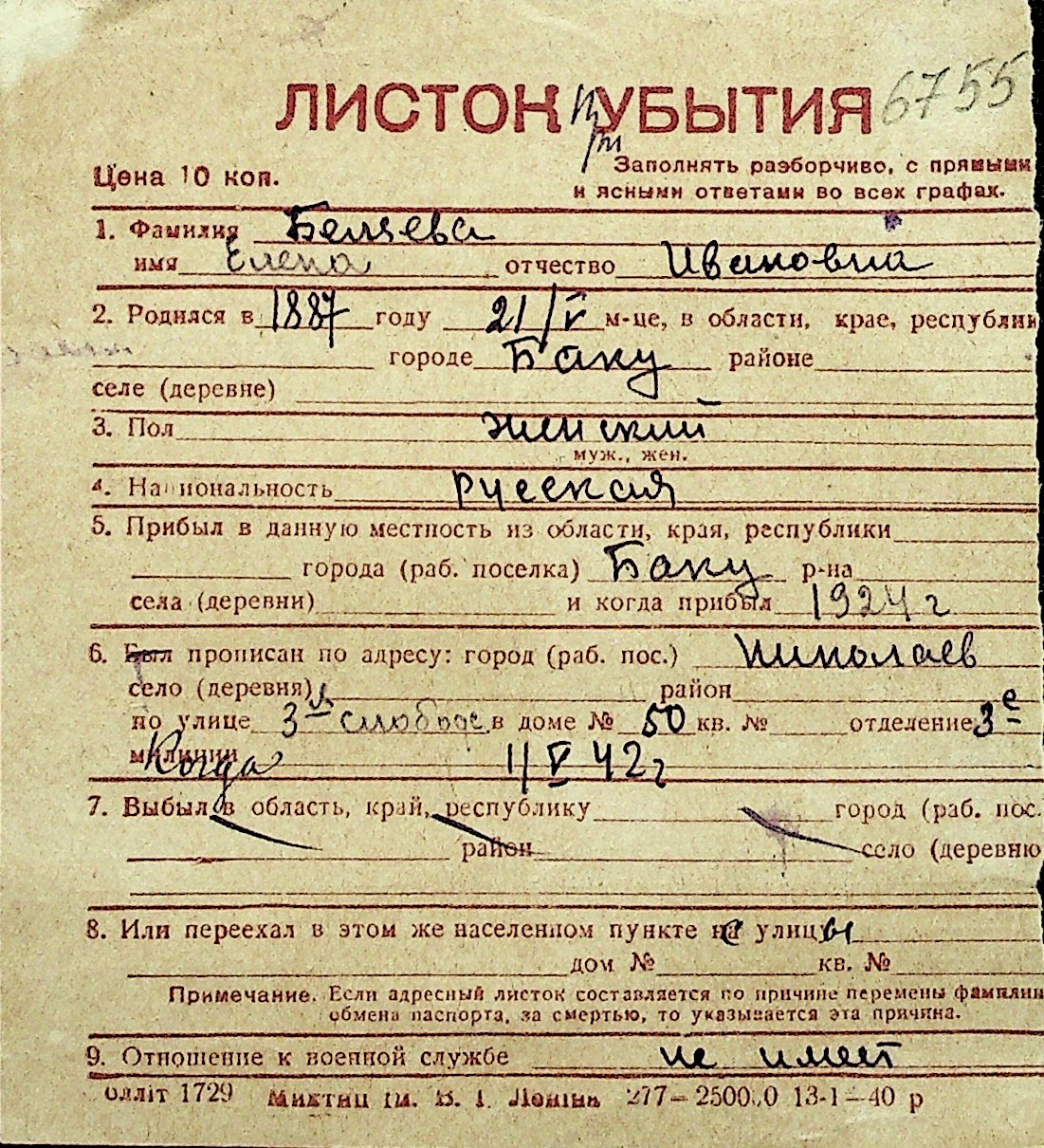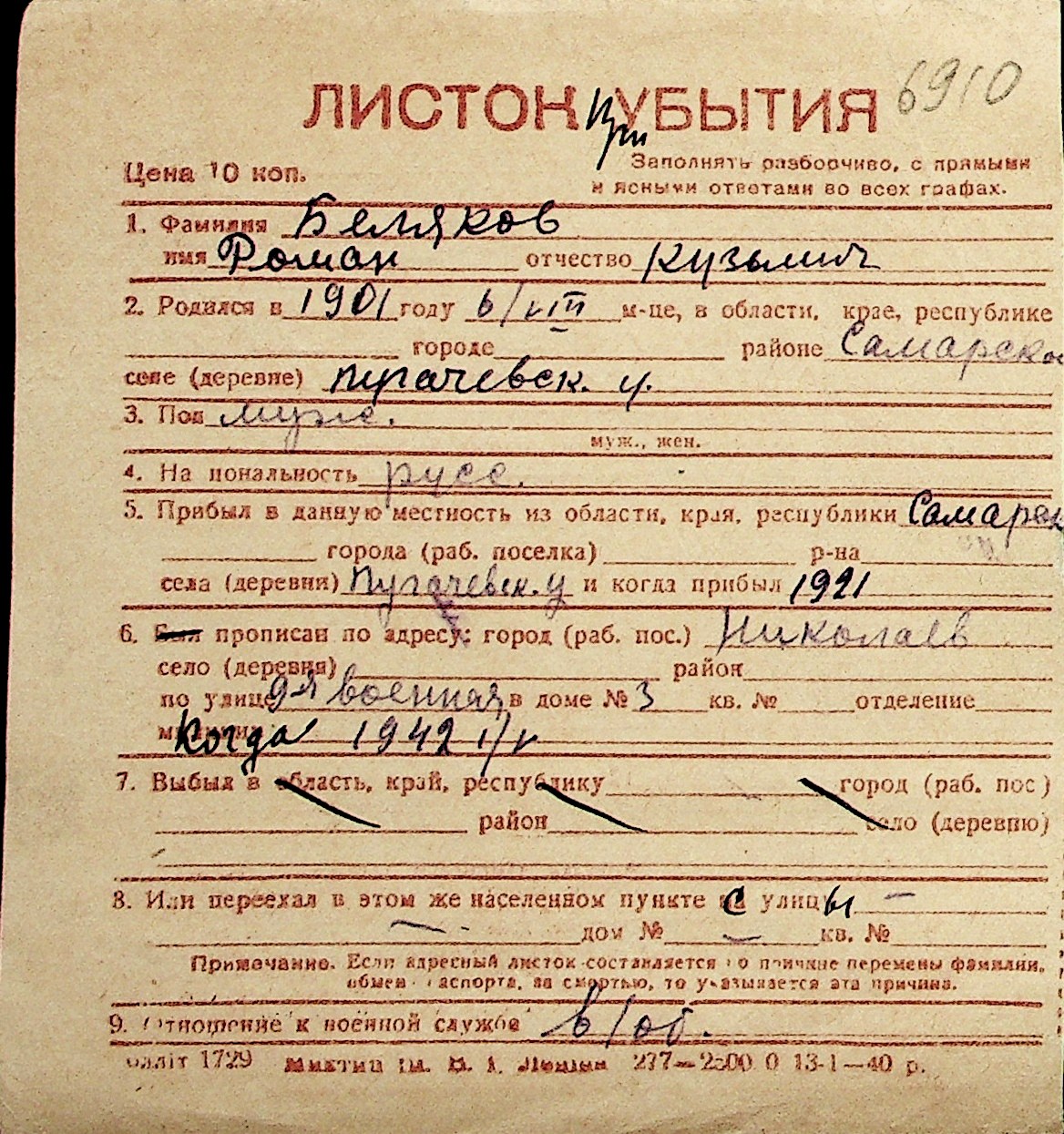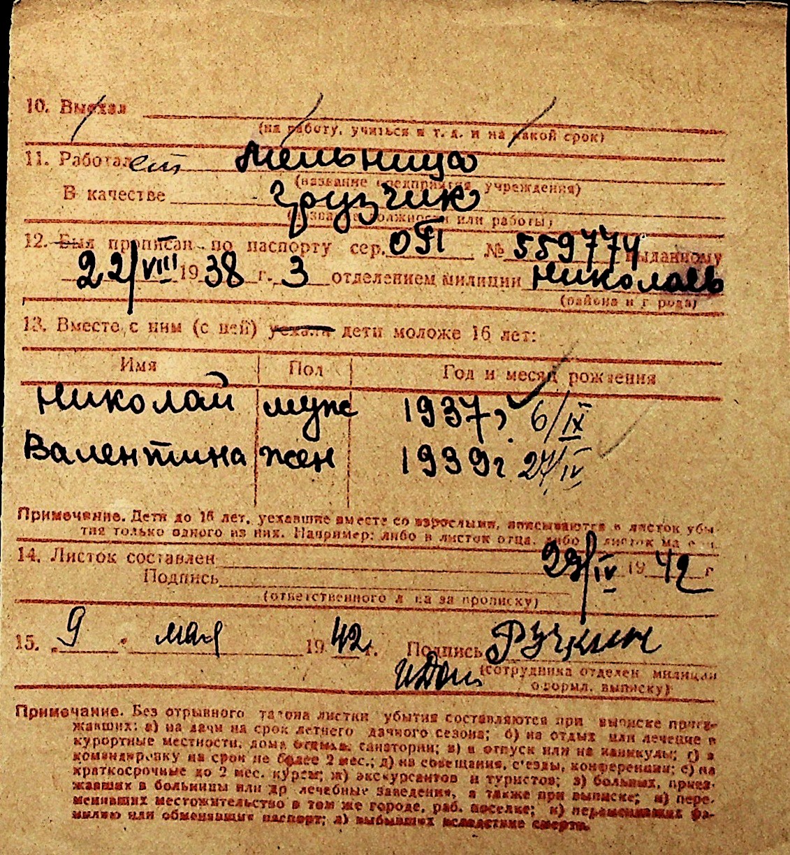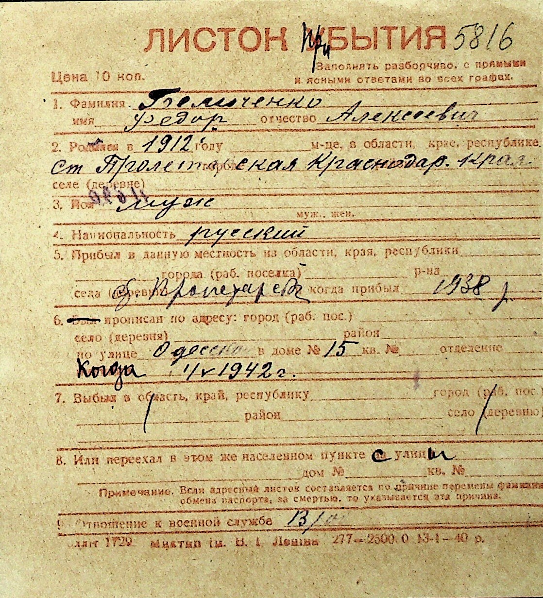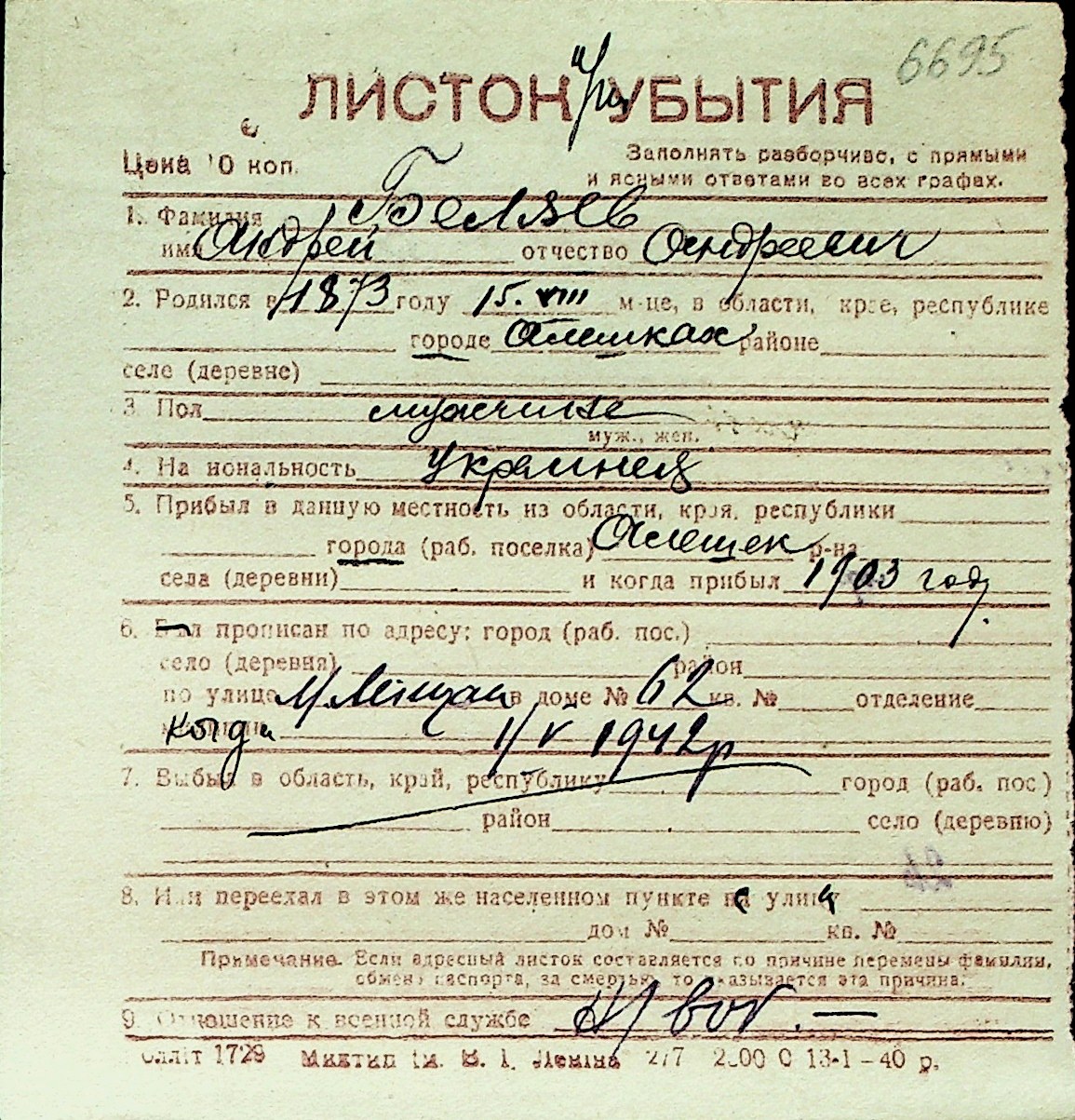 ◦ ◦ Перелік карток на осіб, які мешкали у м. Миколаїв у період окупації 1941–1944 років
