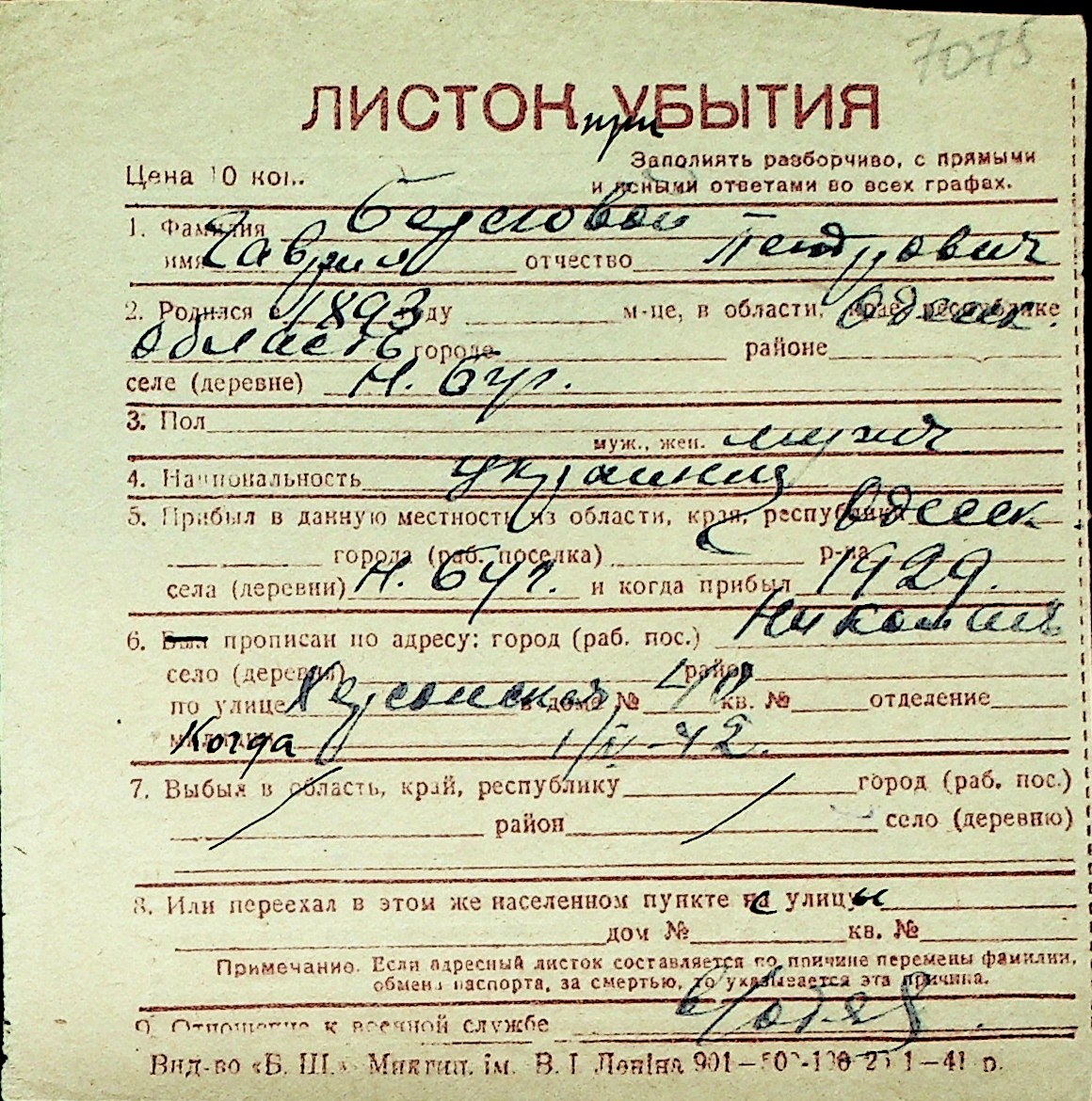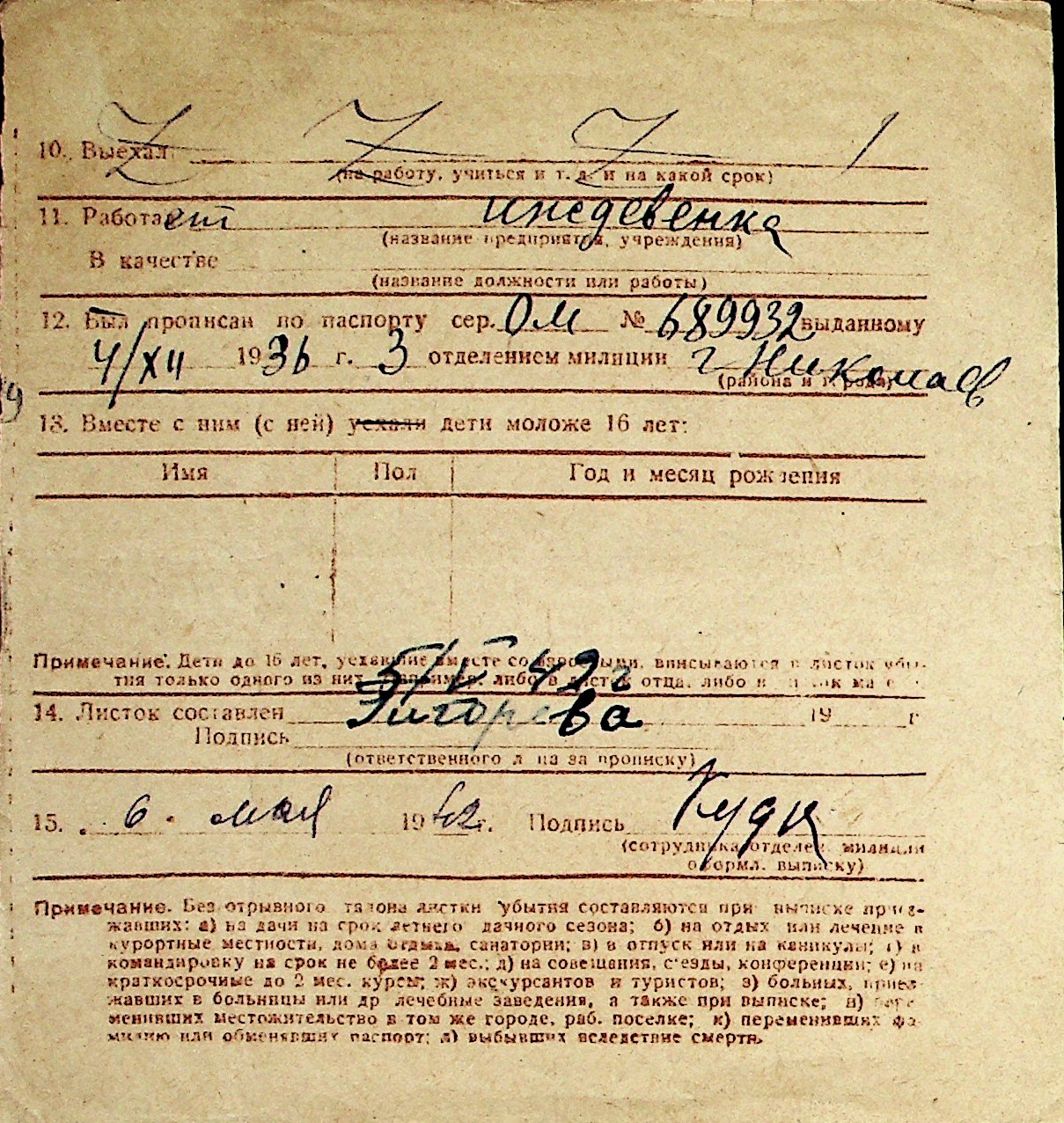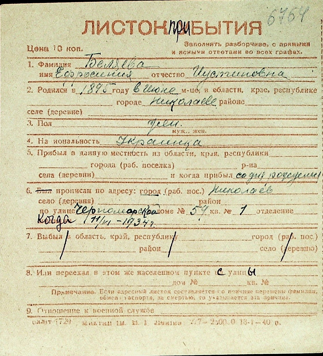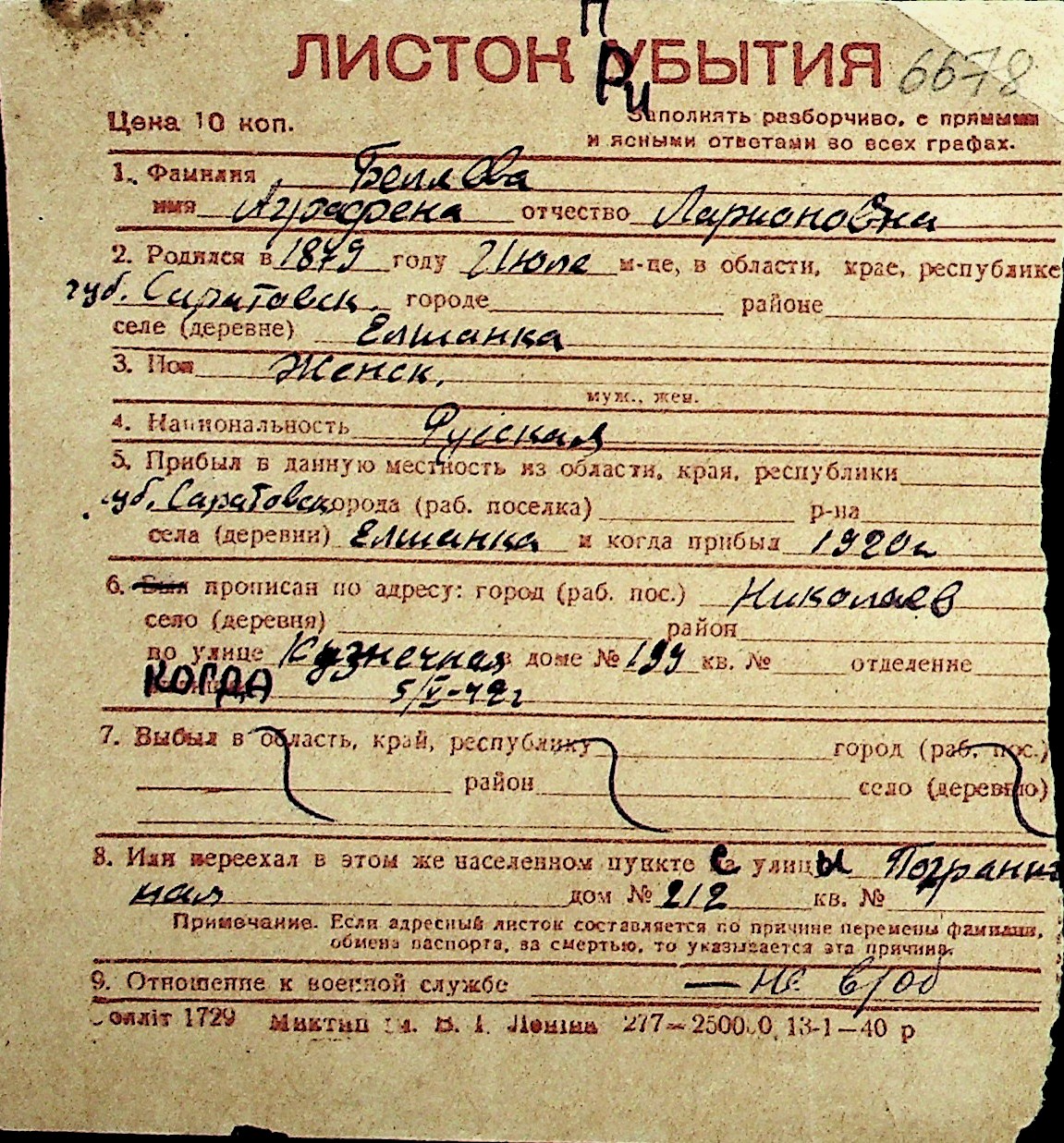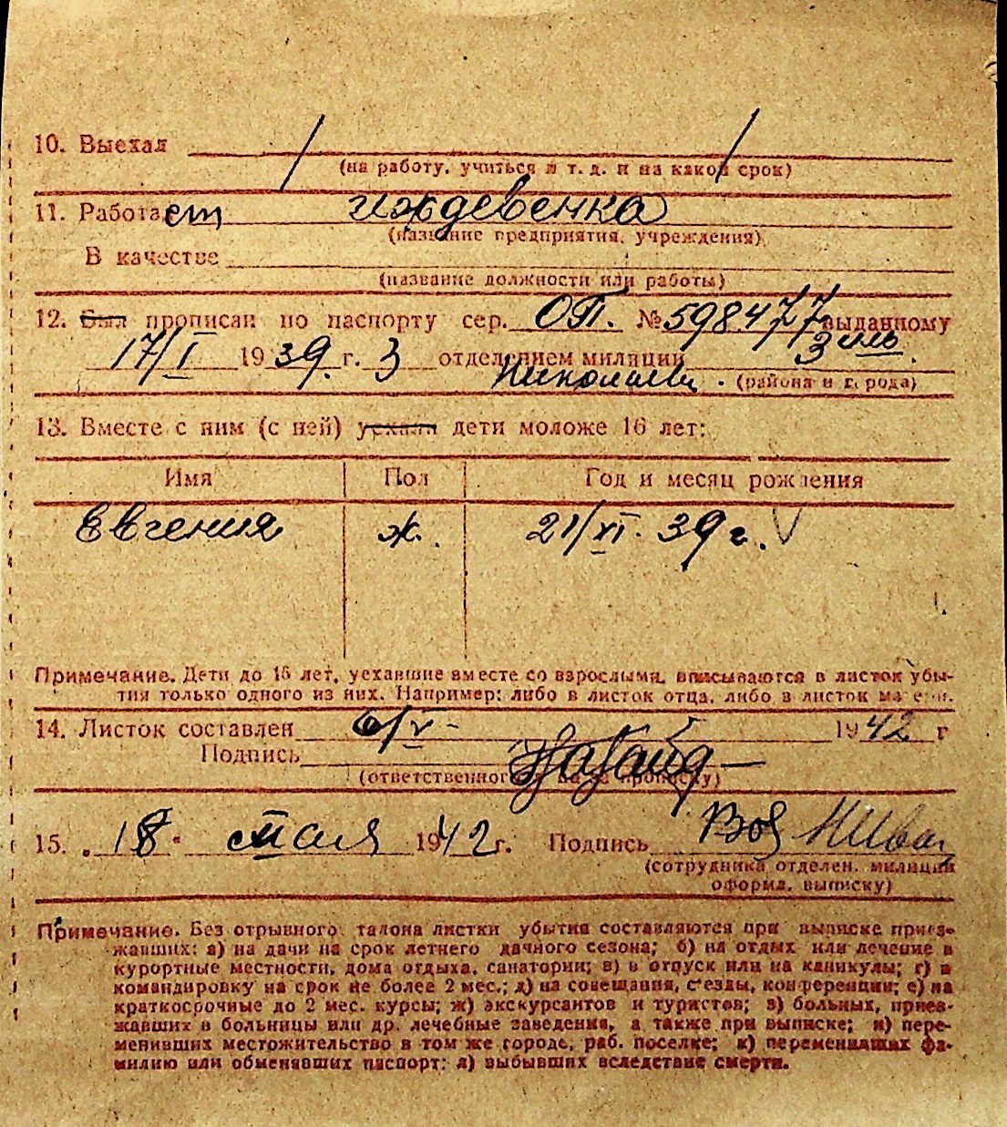 ◦ ◦ Перелік карток на осіб, які мешкали у м. Миколаїв у період окупації 1941–1944 років