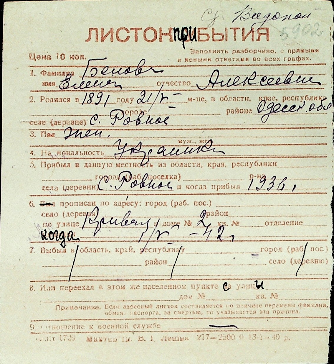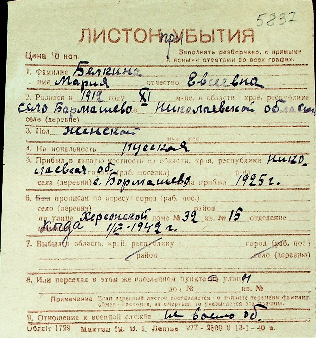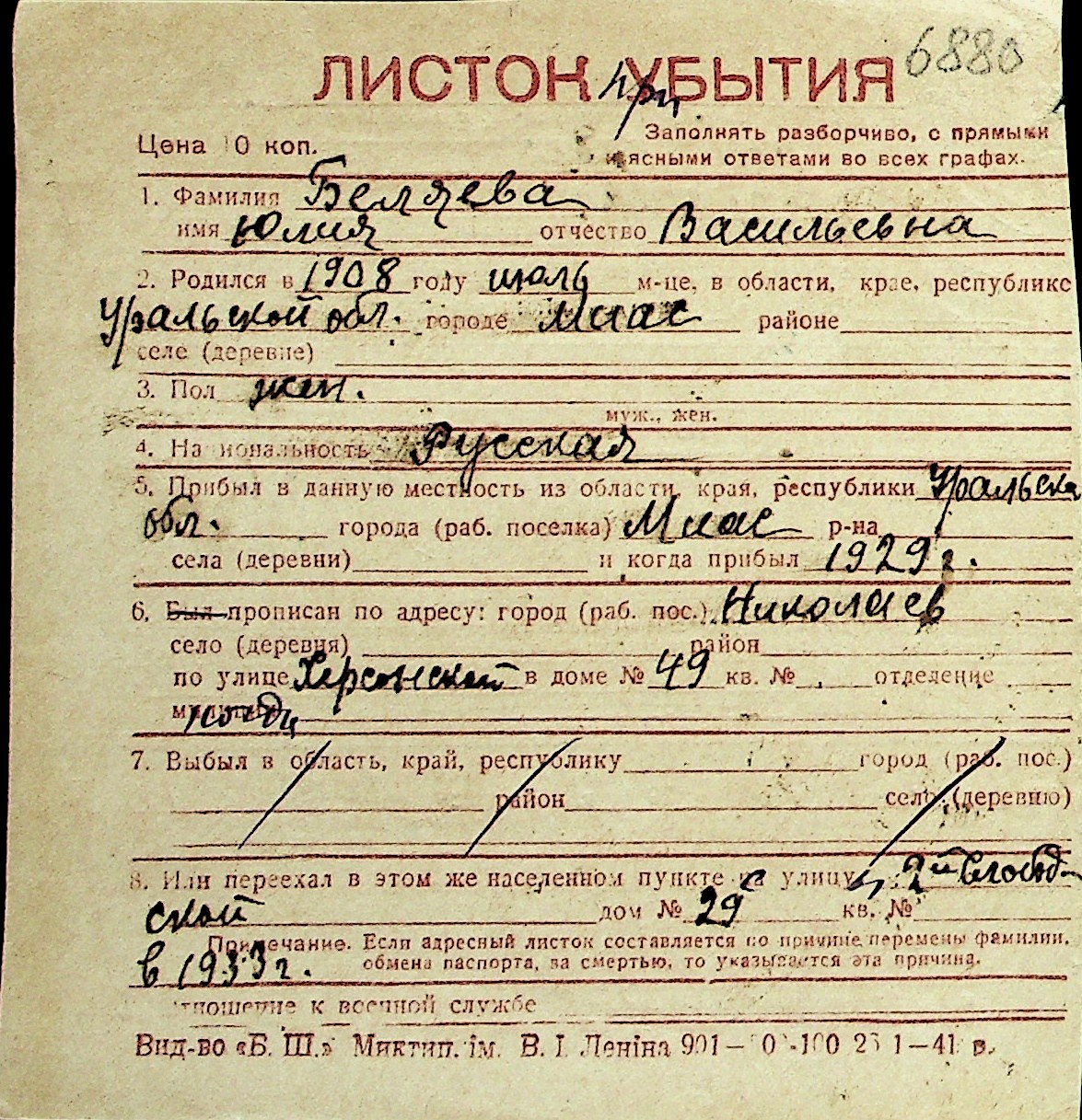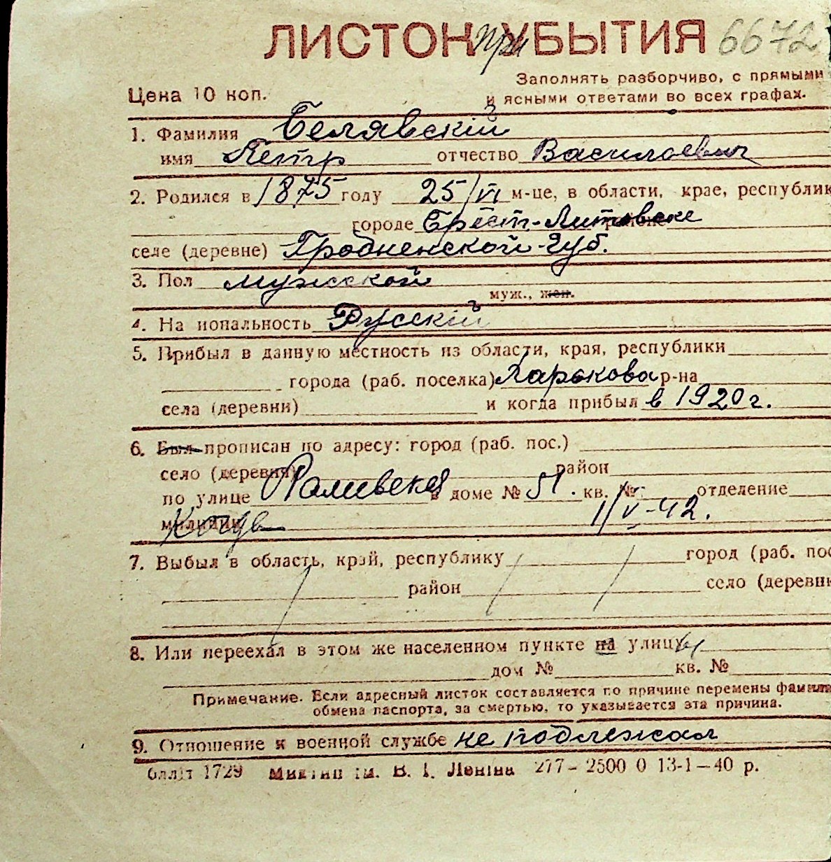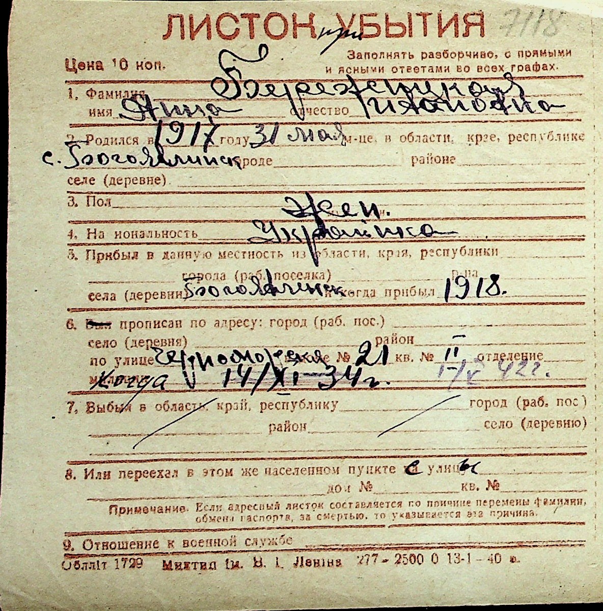 ◦ ◦ Перелік карток на осіб, які мешкали у м. Миколаїв у період окупації 1941–1944 років