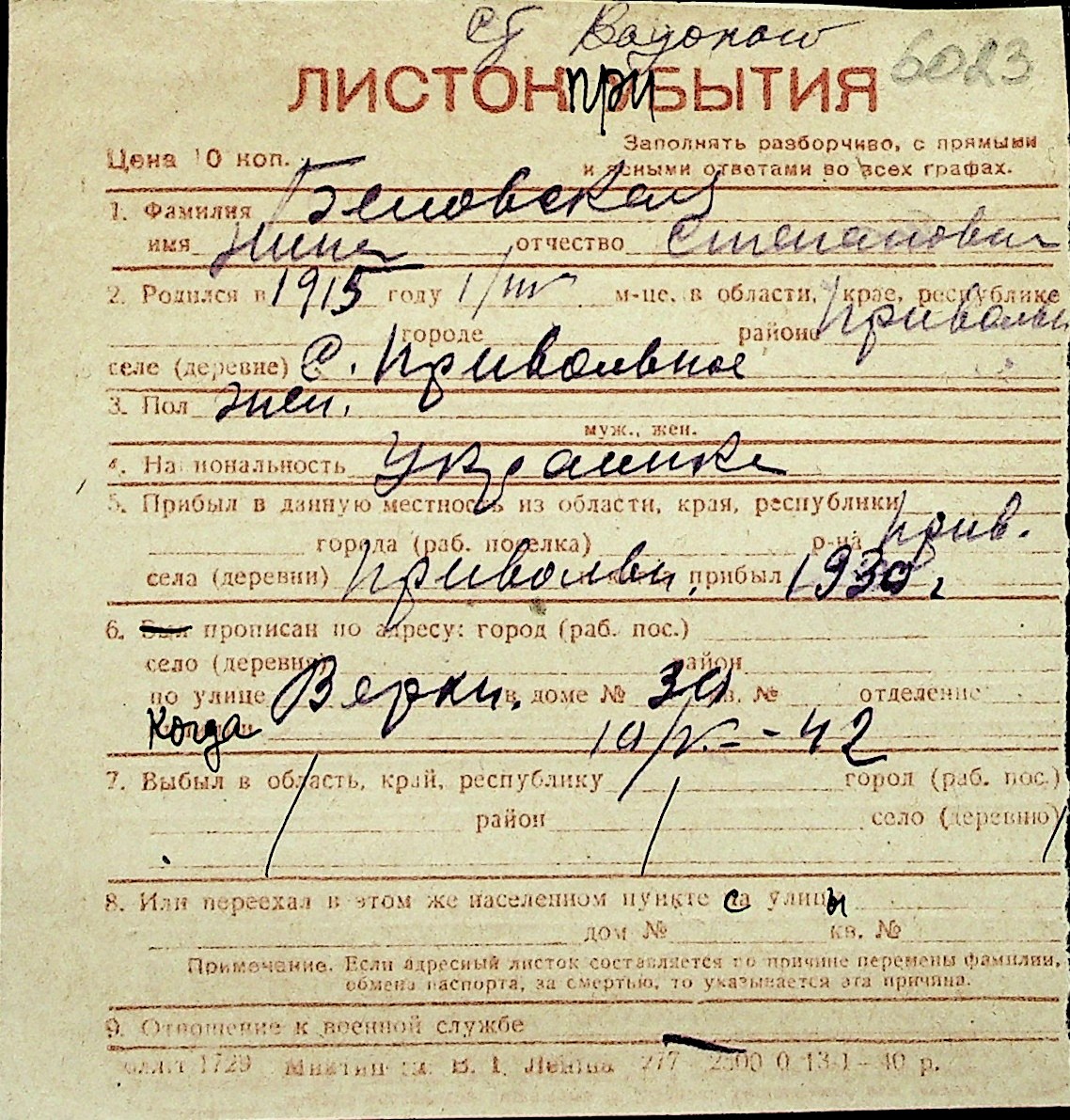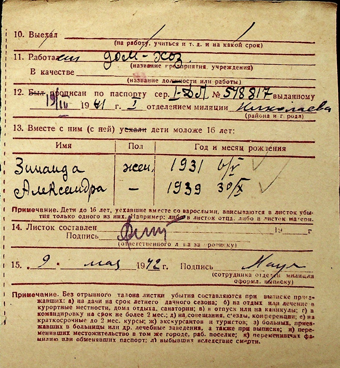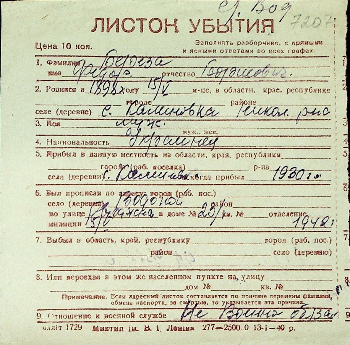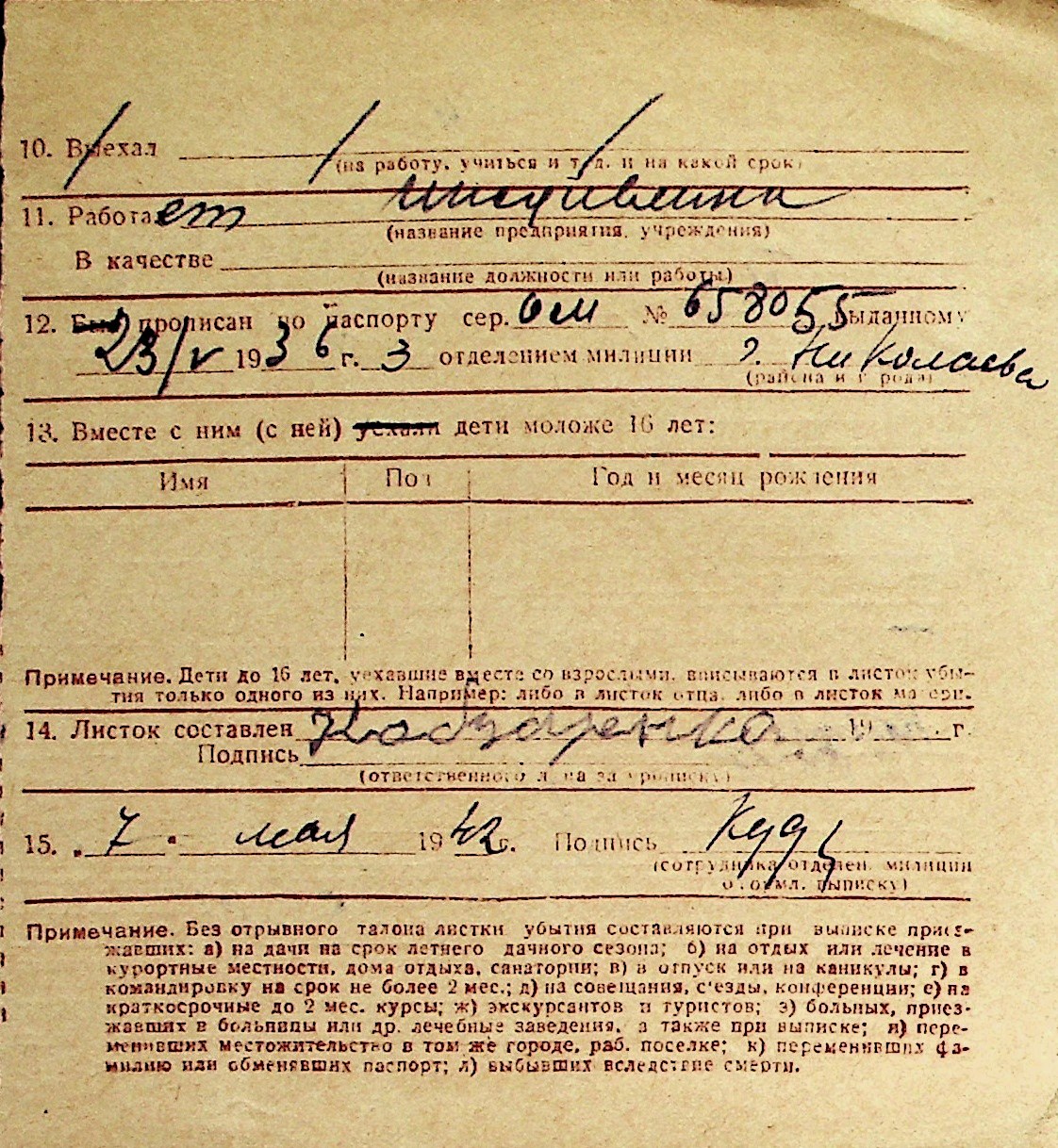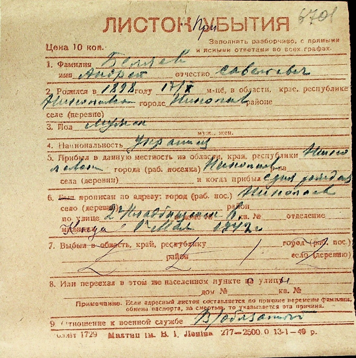 ◦ ◦ Перелік карток на осіб, які мешкали у м. Миколаїв у період окупації 1941–1944 років
