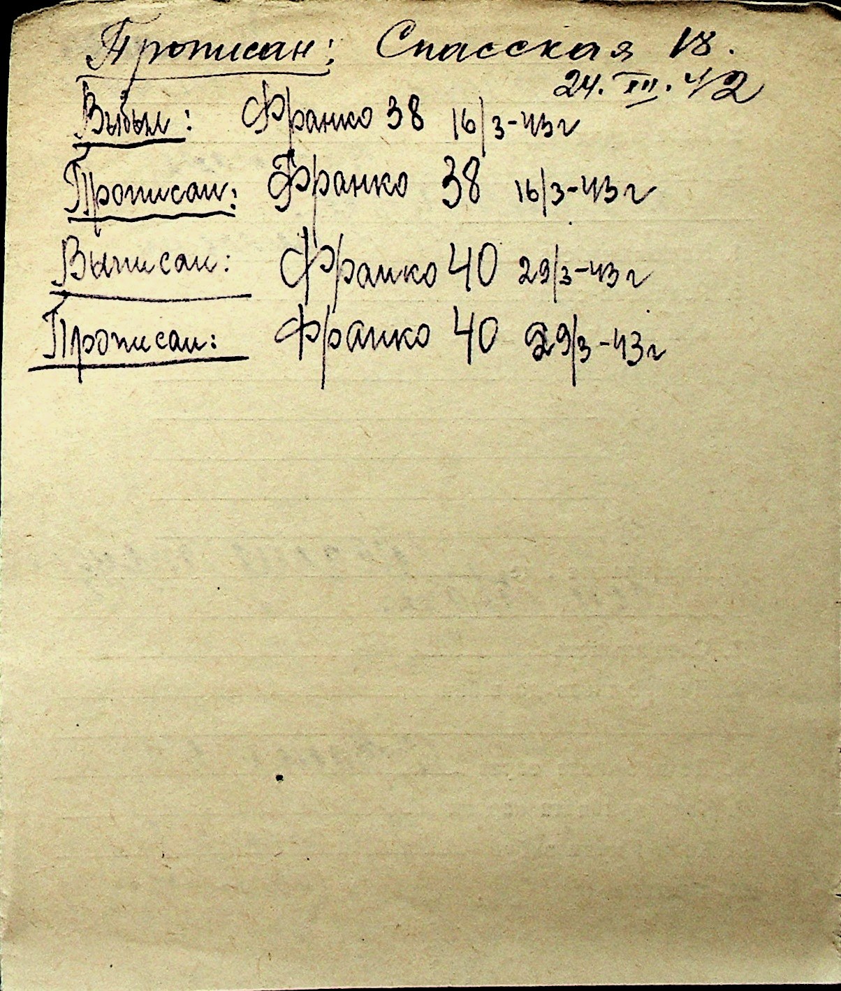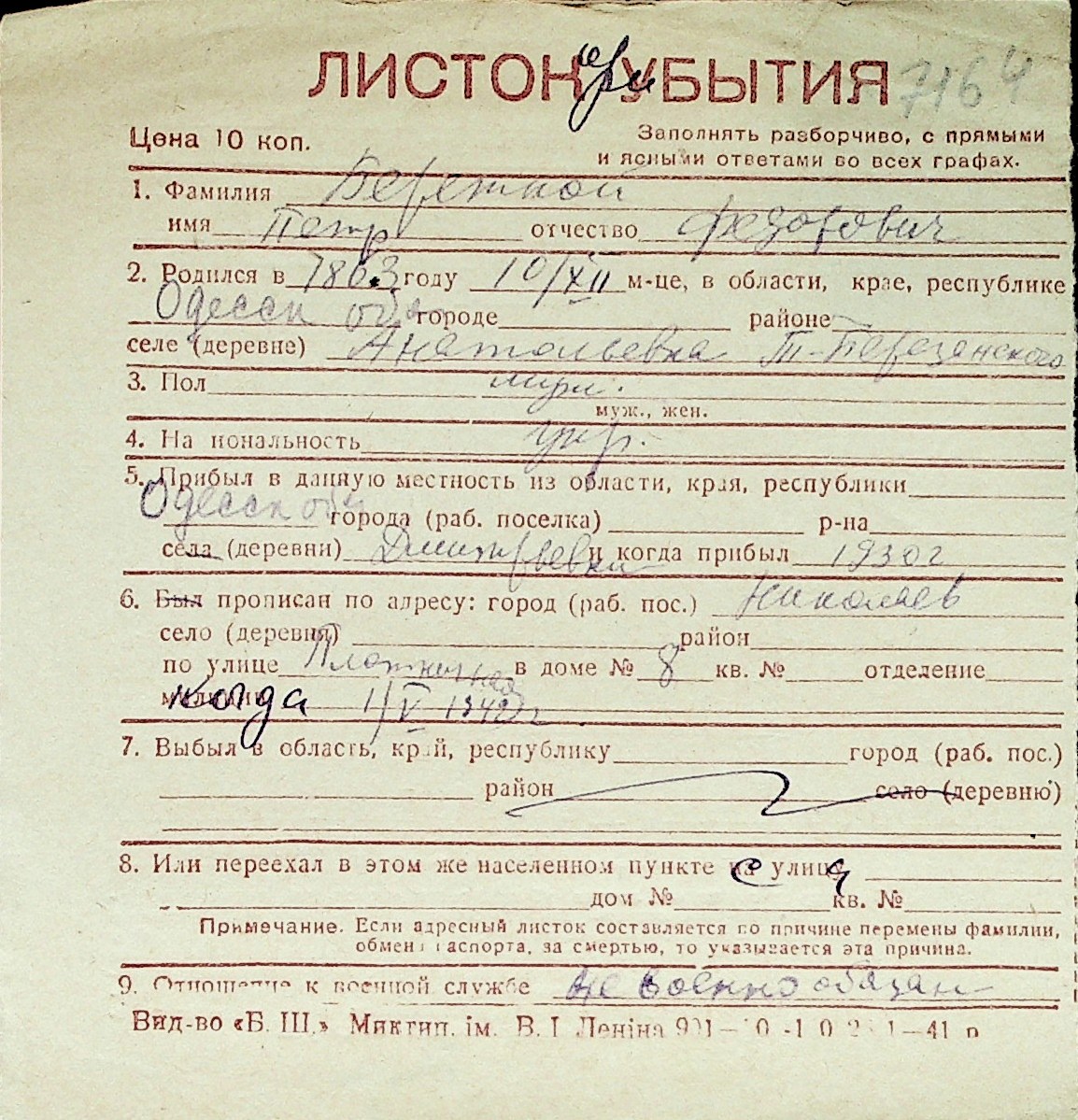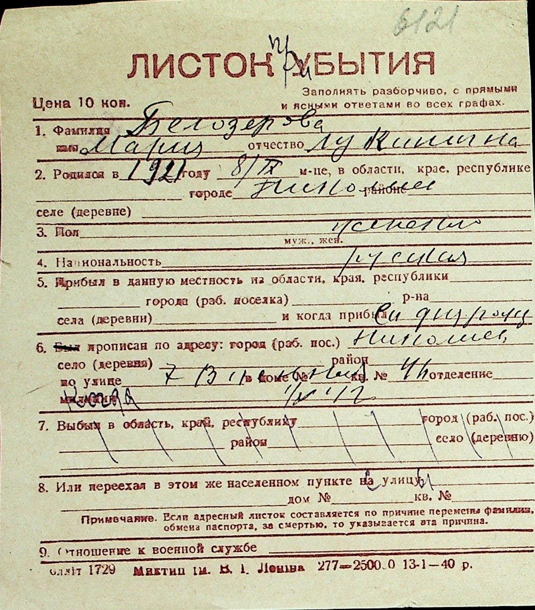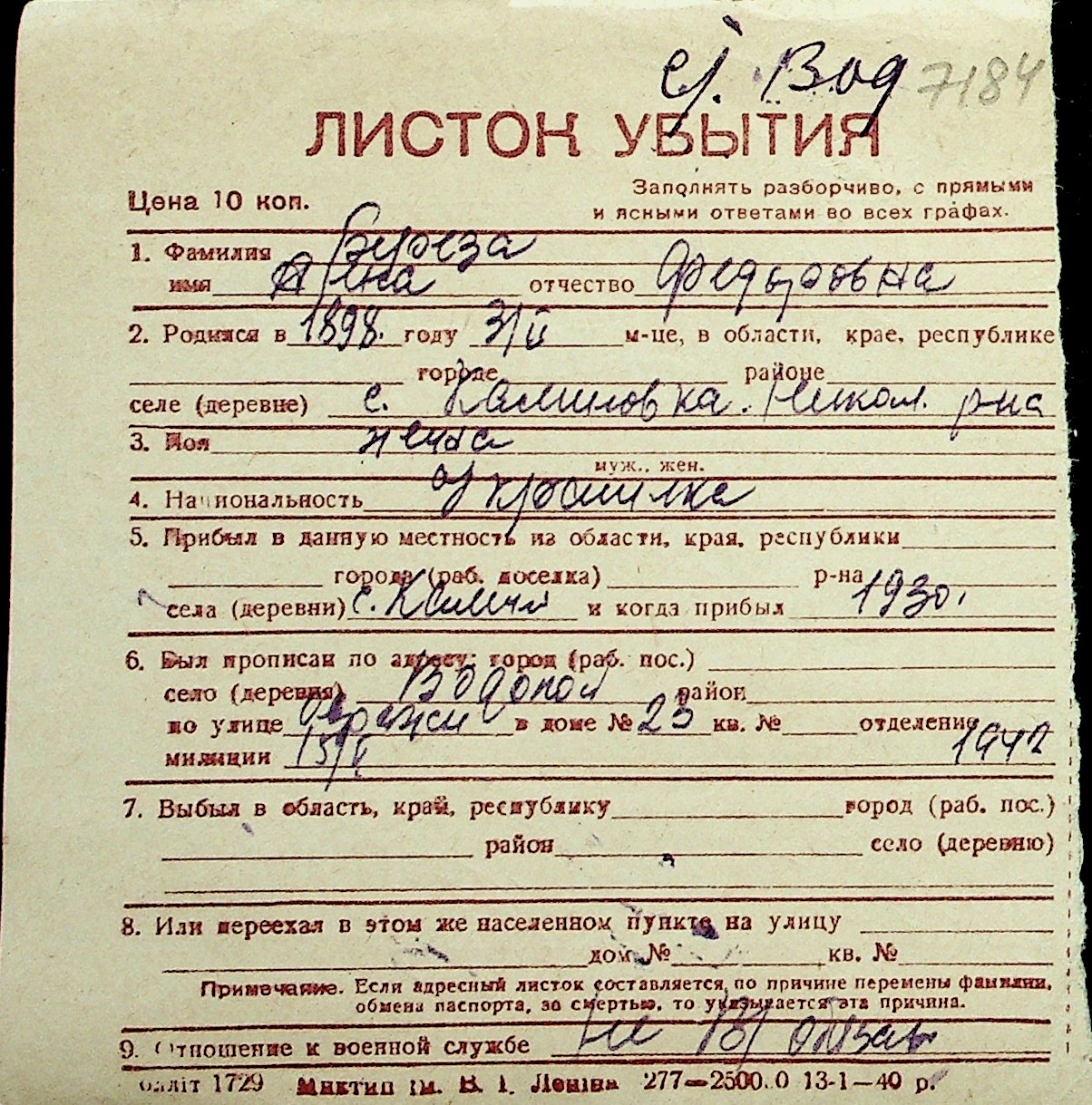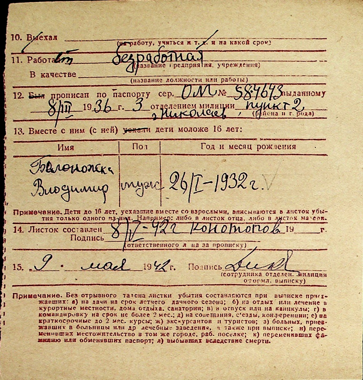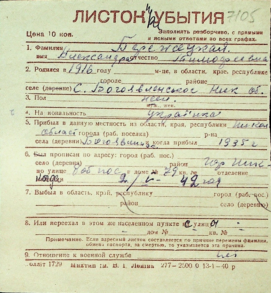◦ ◦ Перелік карток на осіб, які мешкали у м. Миколаїв у період окупації 1941–1944 років