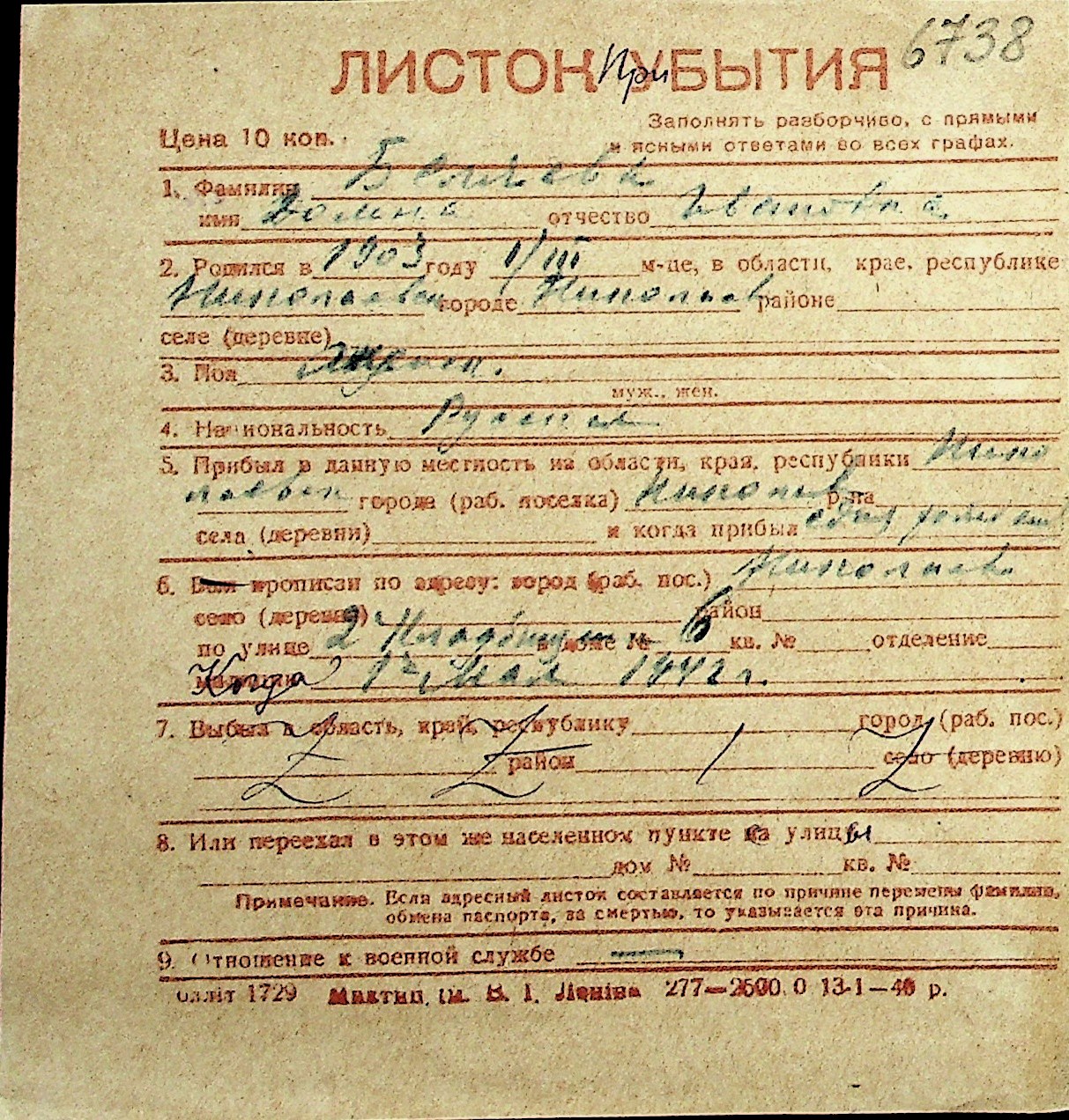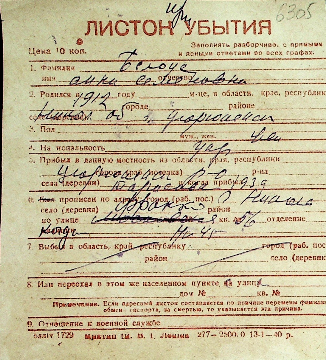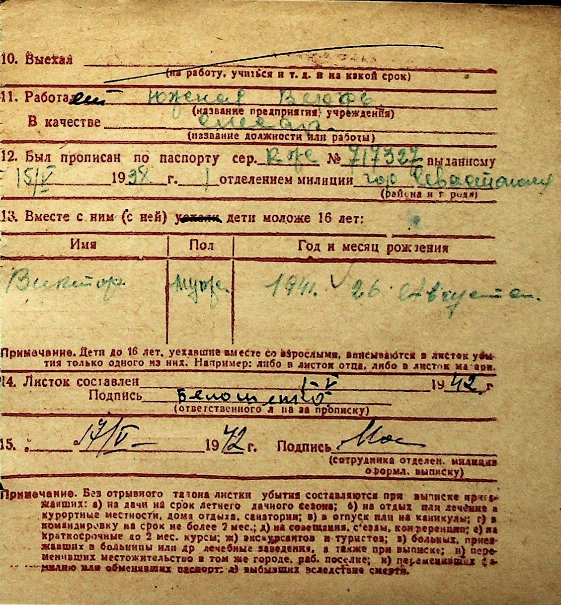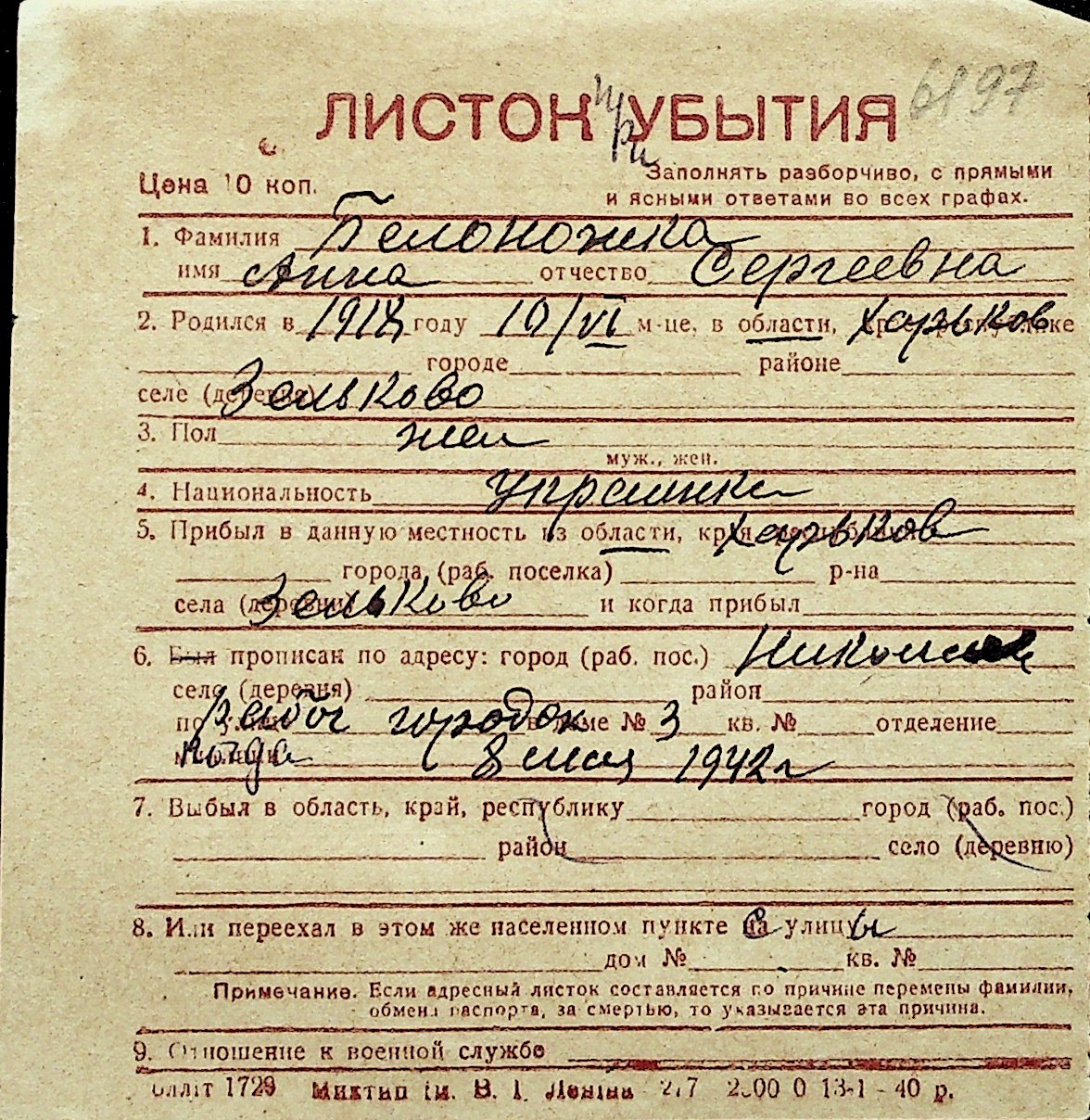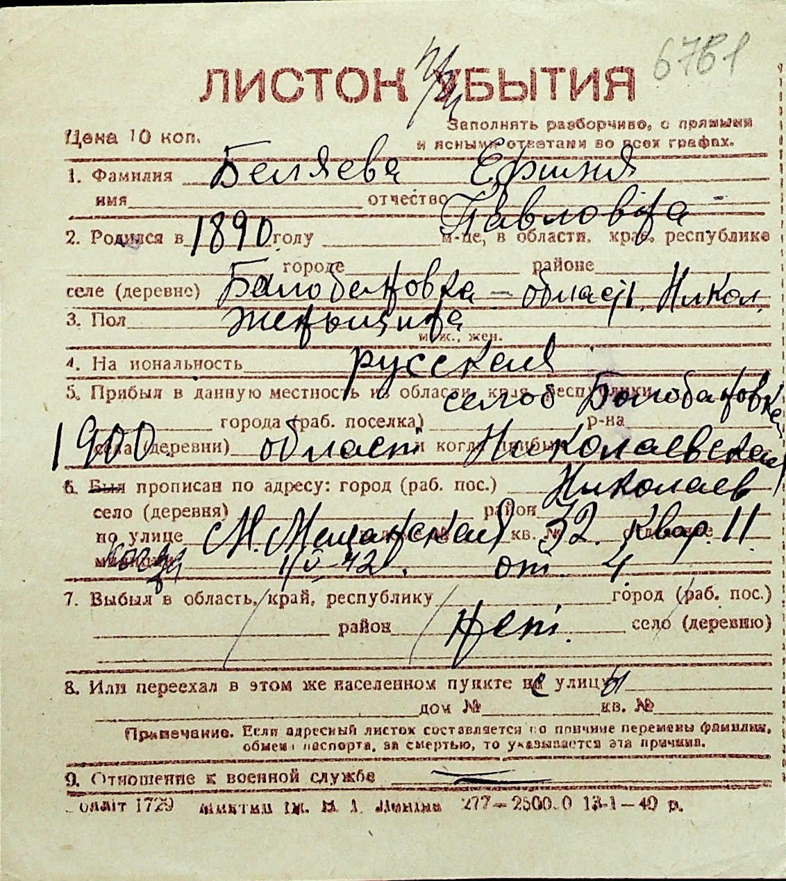◦ ◦ Перелік карток на осіб, які мешкали у м. Миколаїв у період окупації 1941–1944 років