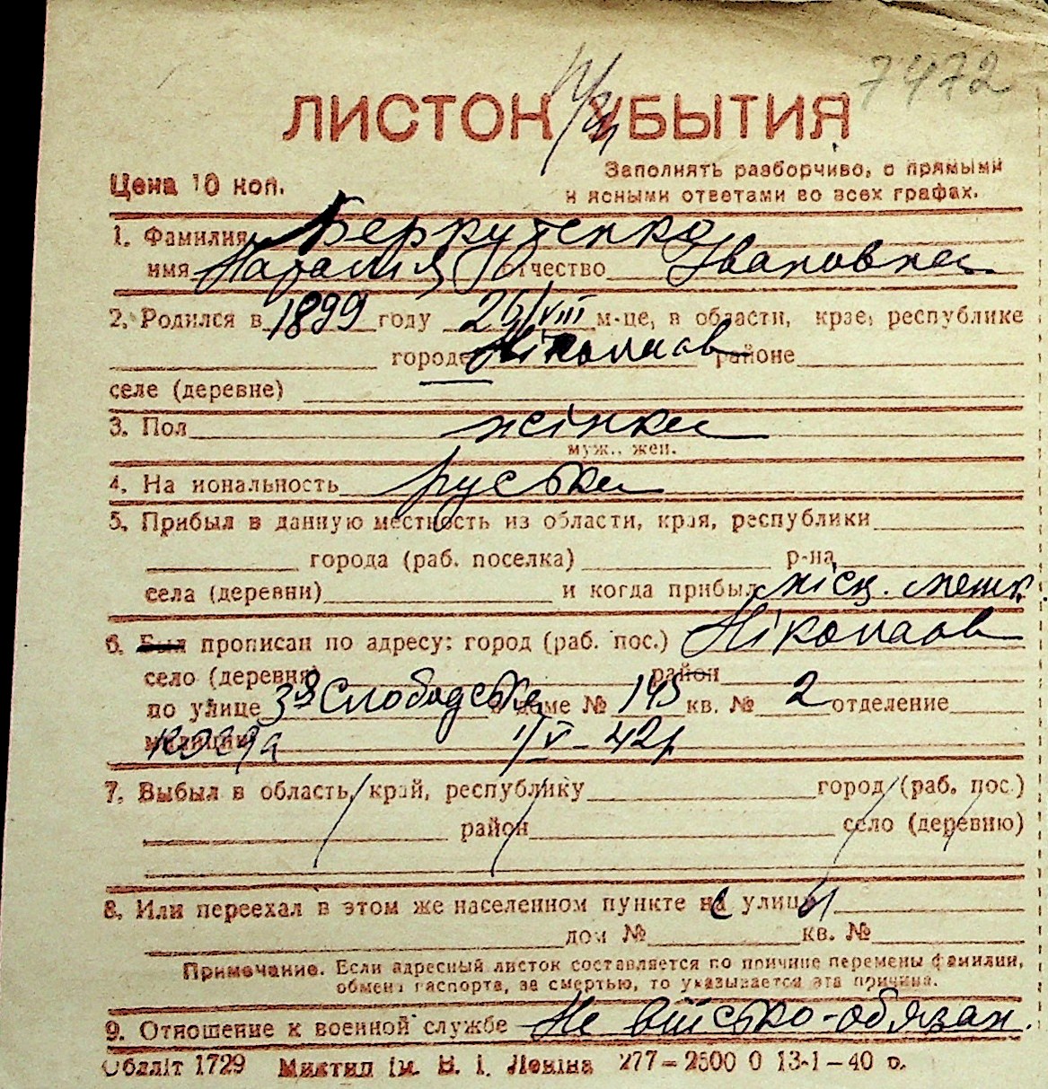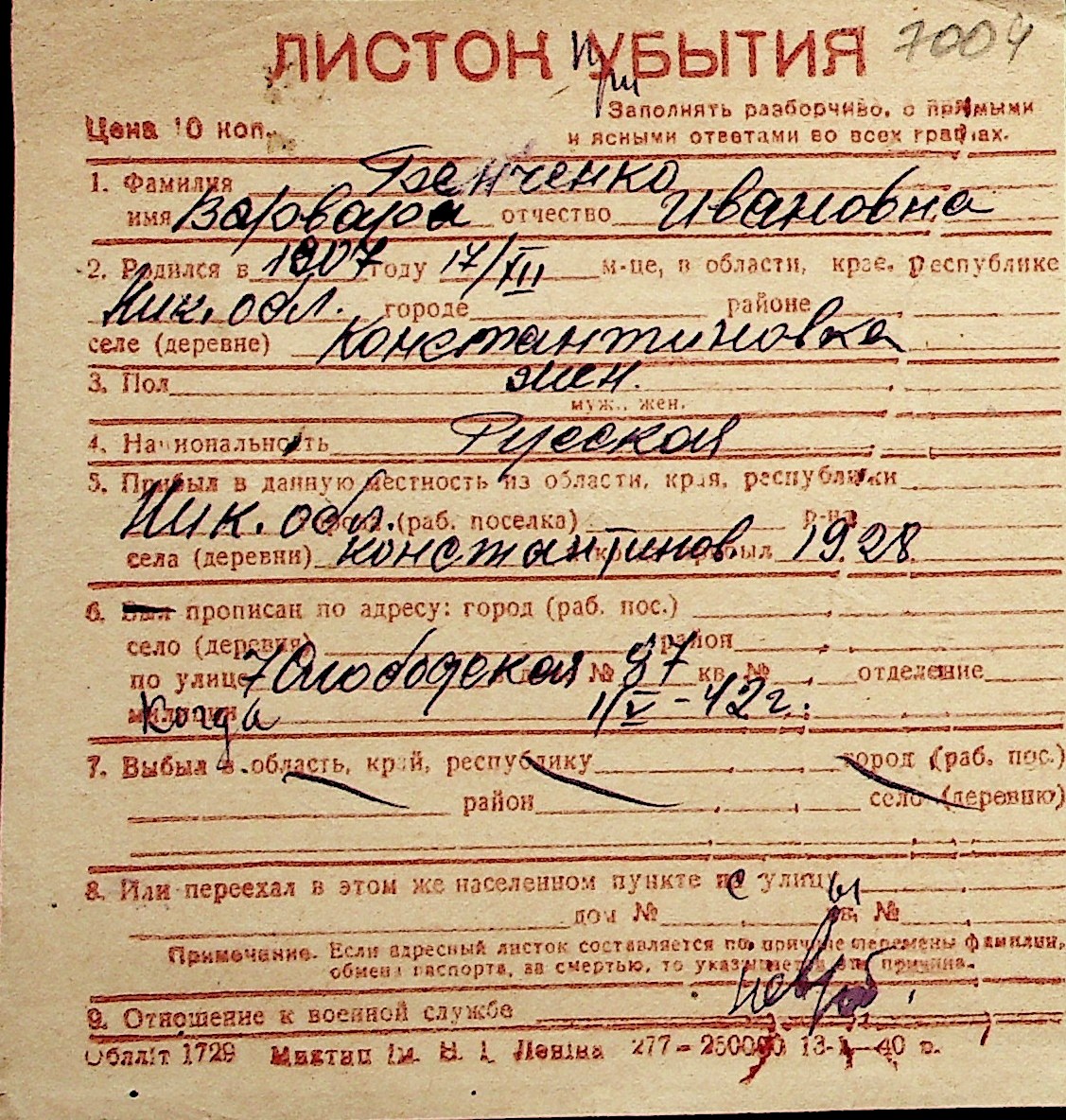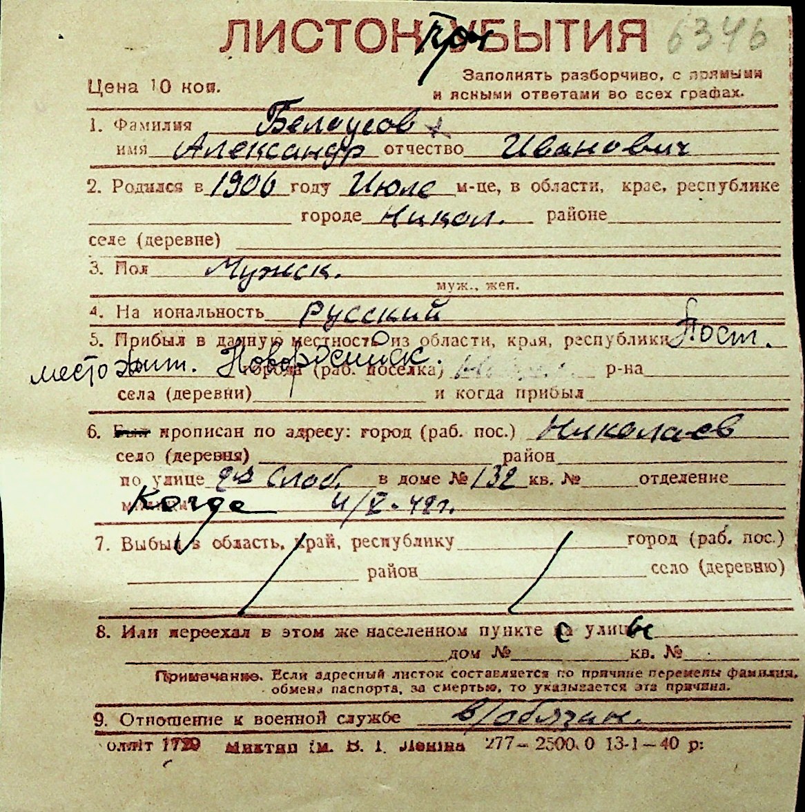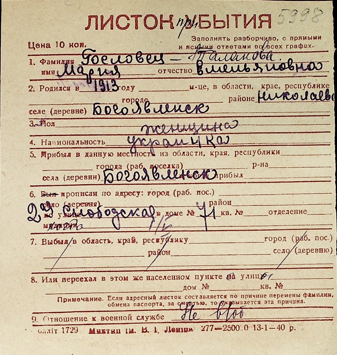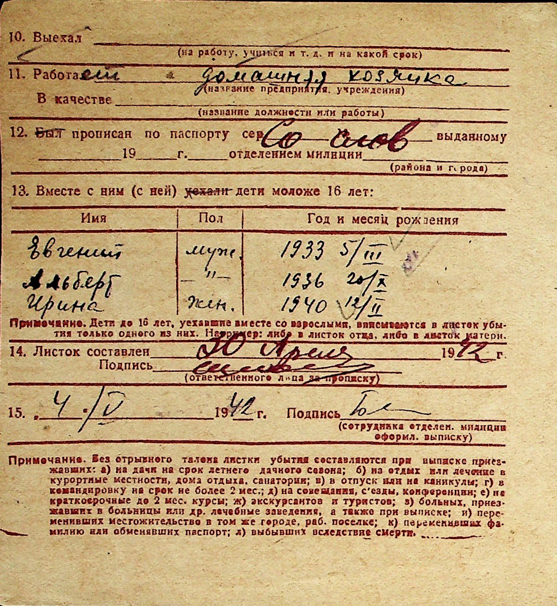 ◦ ◦ Перелік карток на осіб, які мешкали у м. Миколаїв у період окупації 1941–1944 років