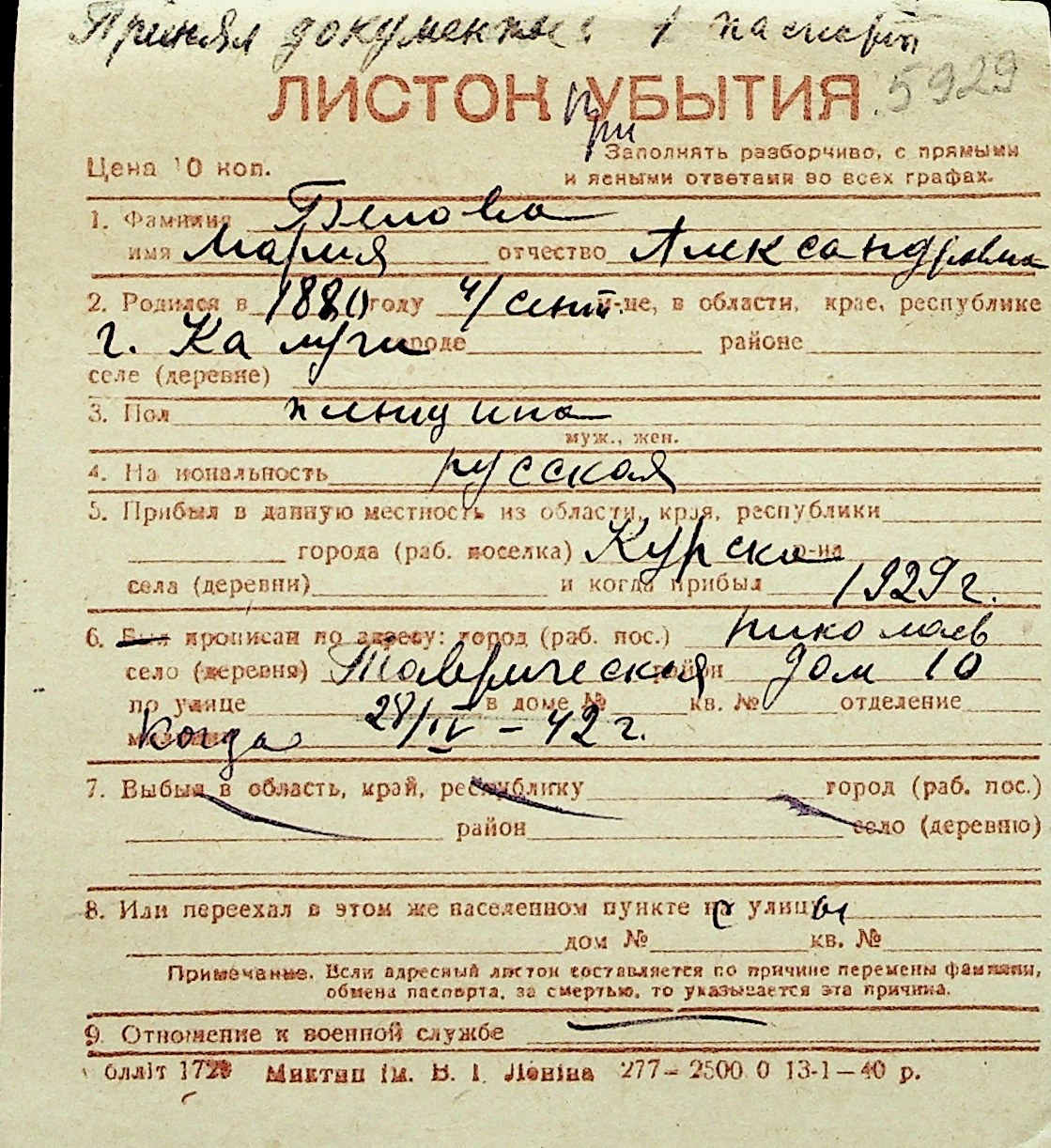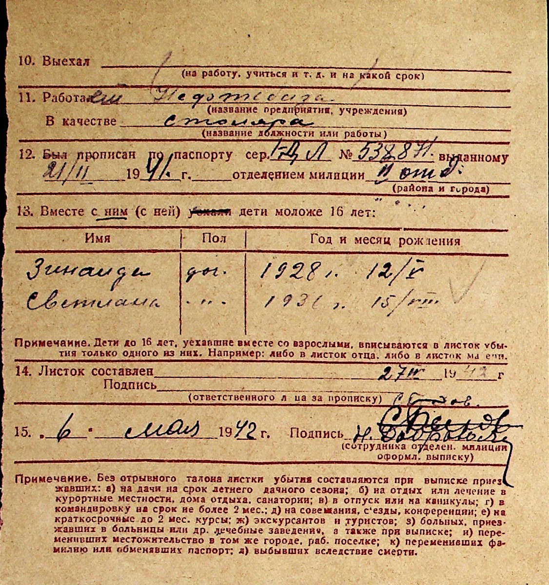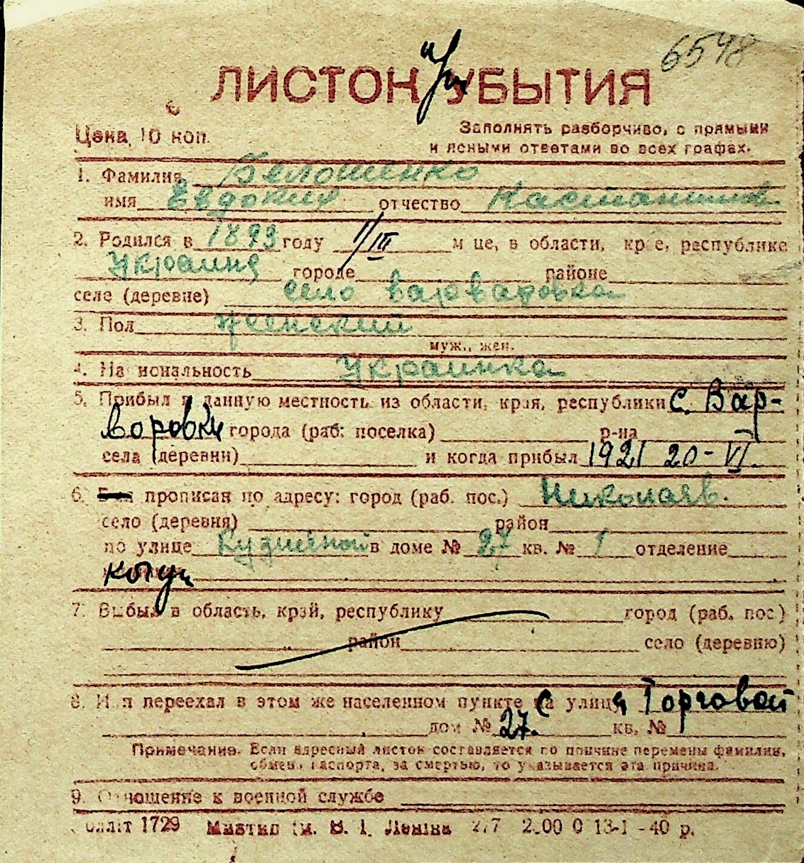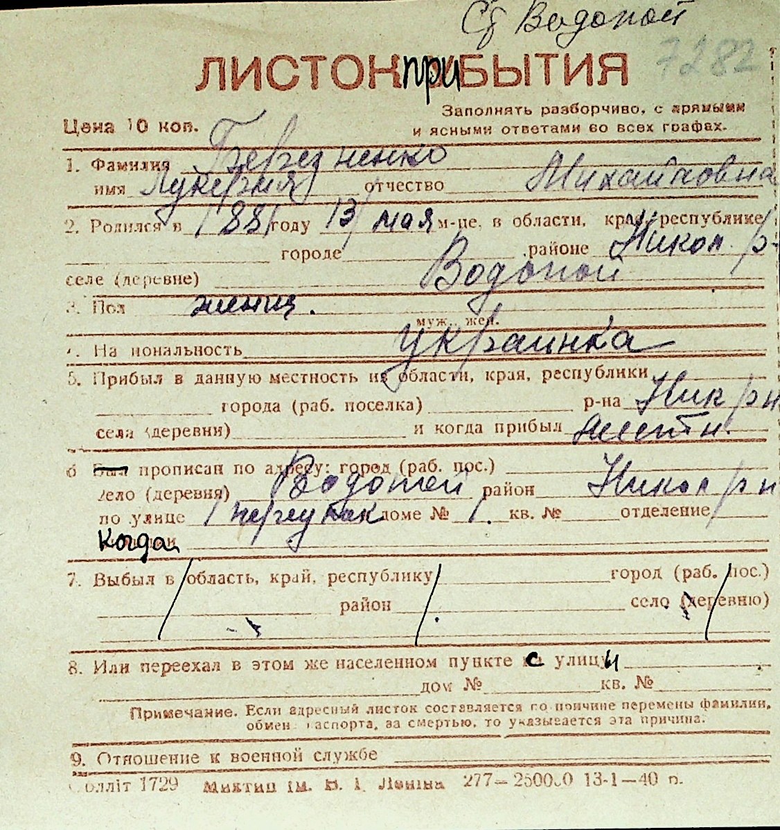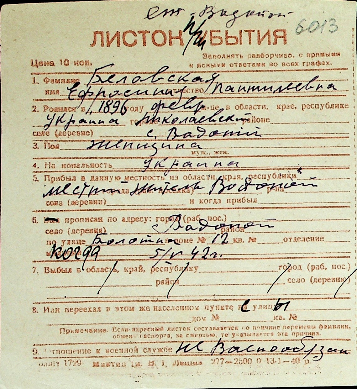 ◦ ◦ Перелік карток на осіб, які мешкали у м. Миколаїв у період окупації 1941–1944 років