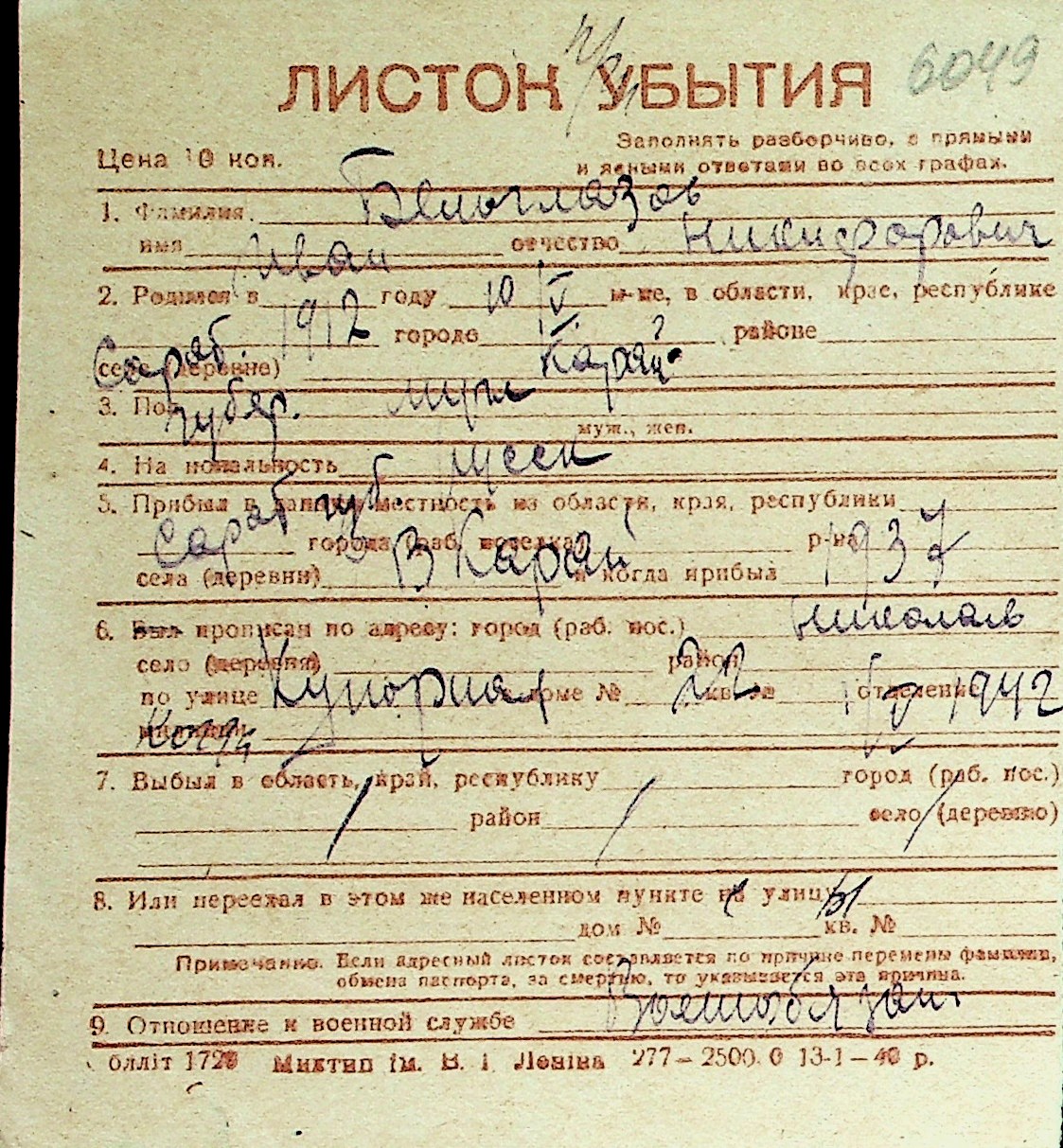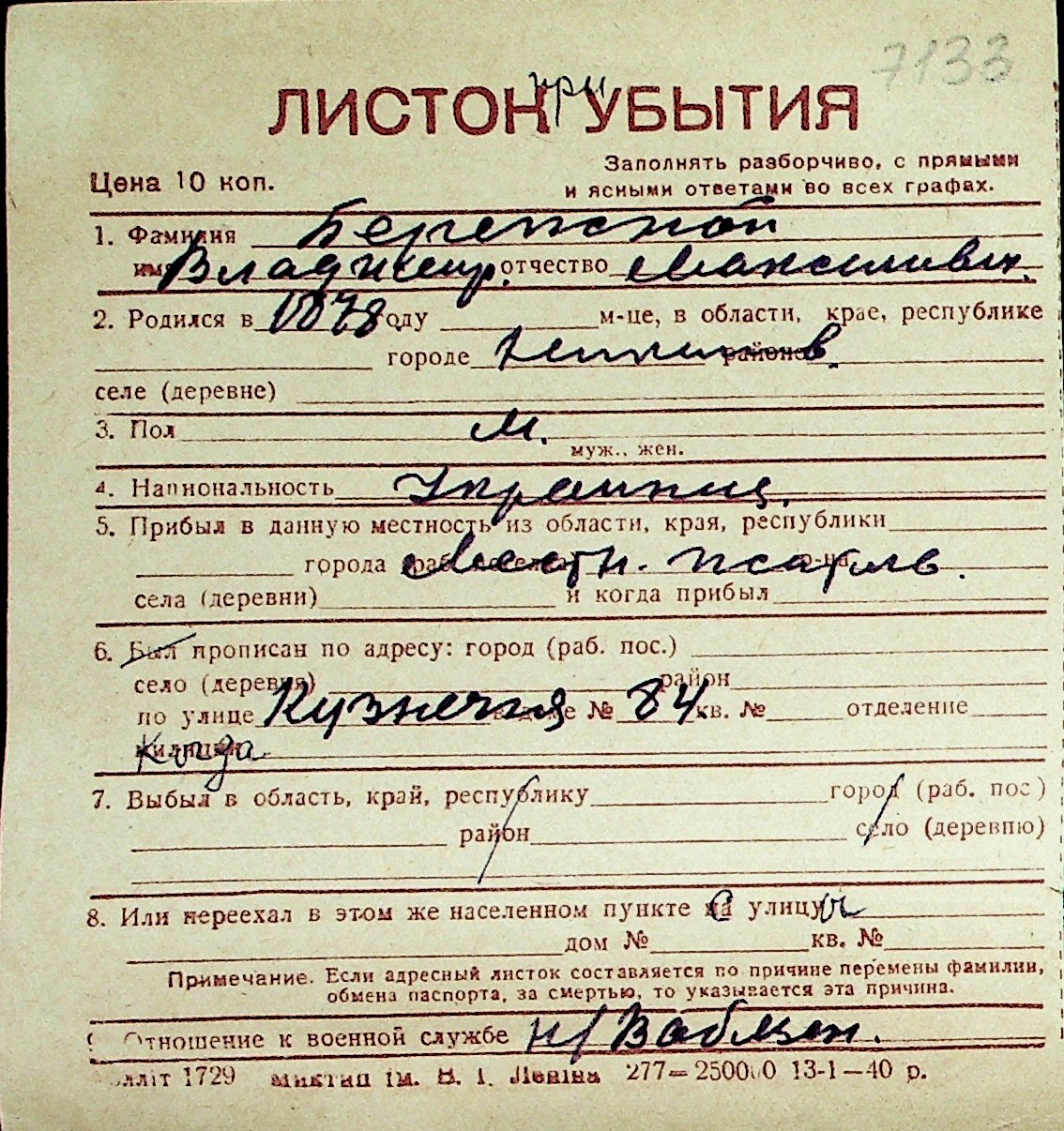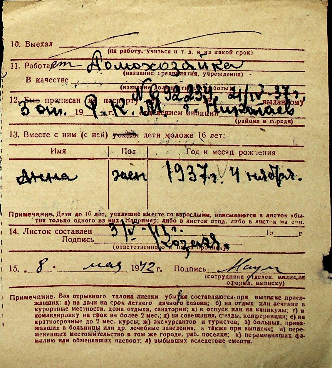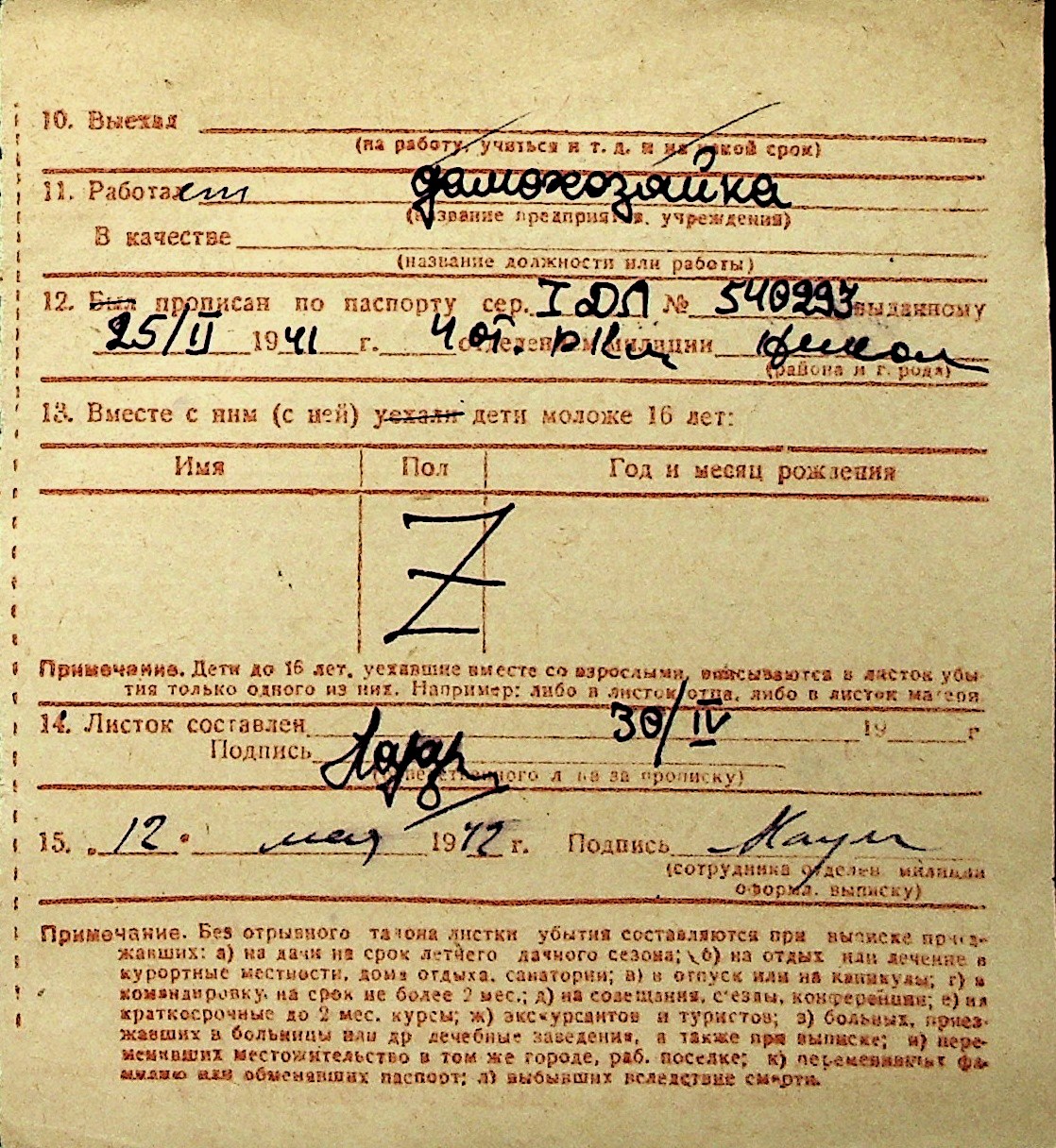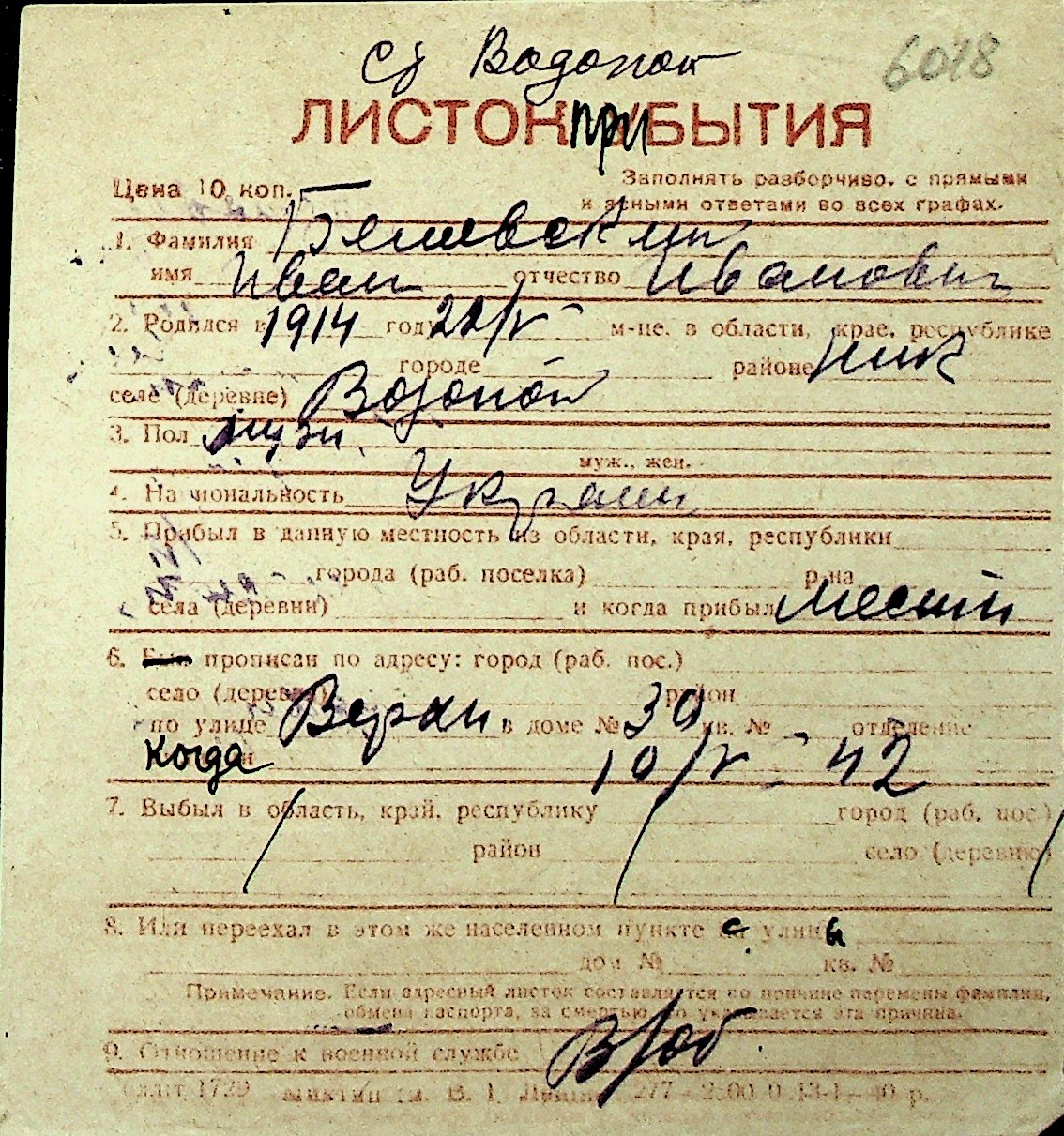 ◦ ◦ Перелік карток на осіб, які мешкали у м. Миколаїв у період окупації 1941–1944 років