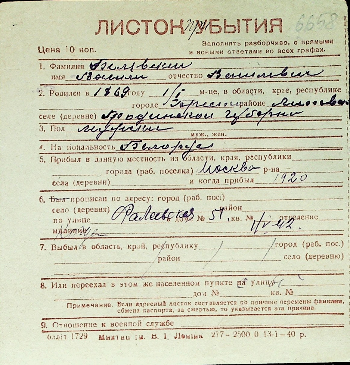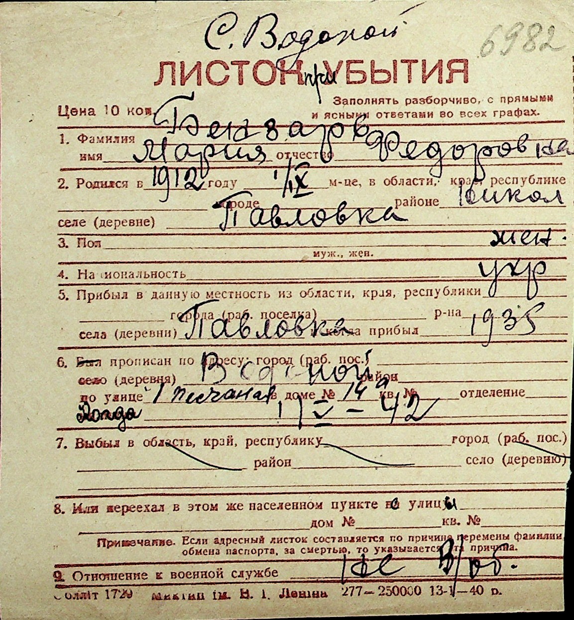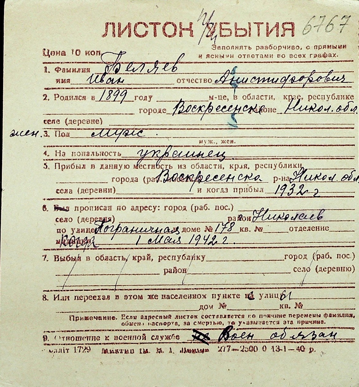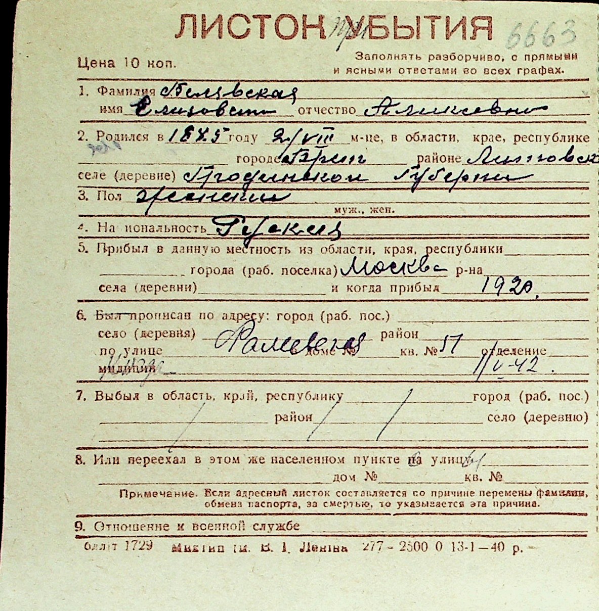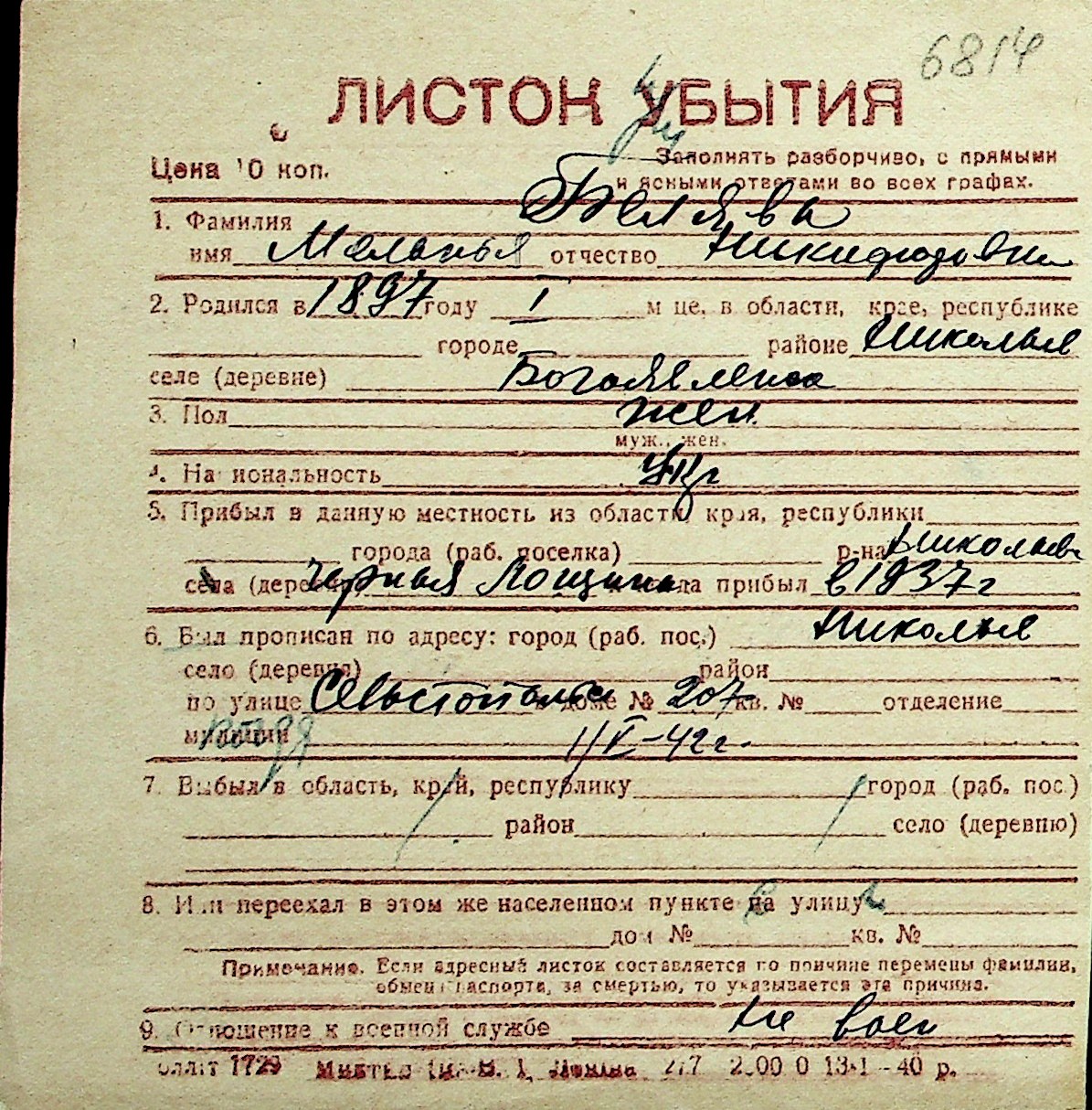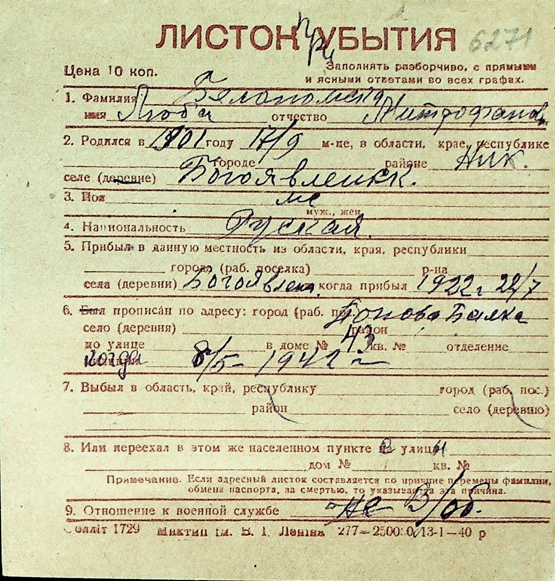 ◦ ◦ Перелік карток на осіб, які мешкали у м. Миколаїв у період окупації 1941–1944 років