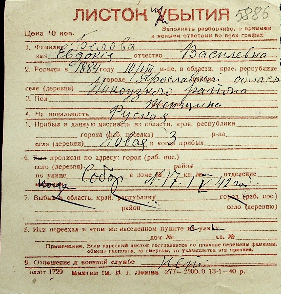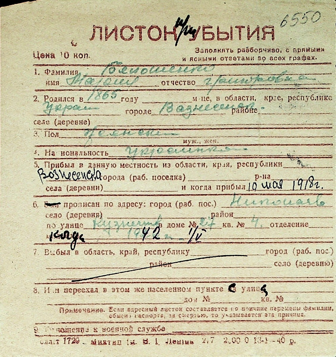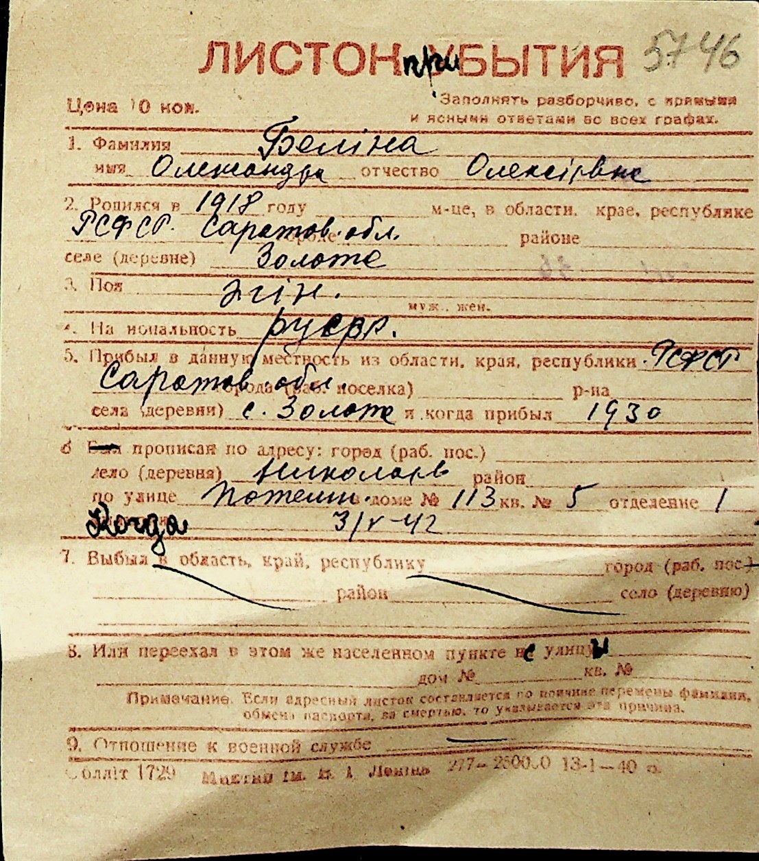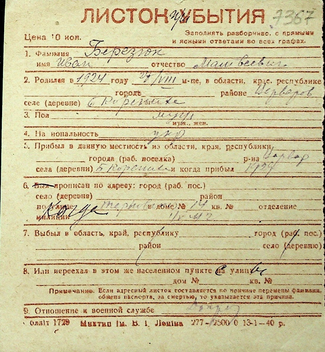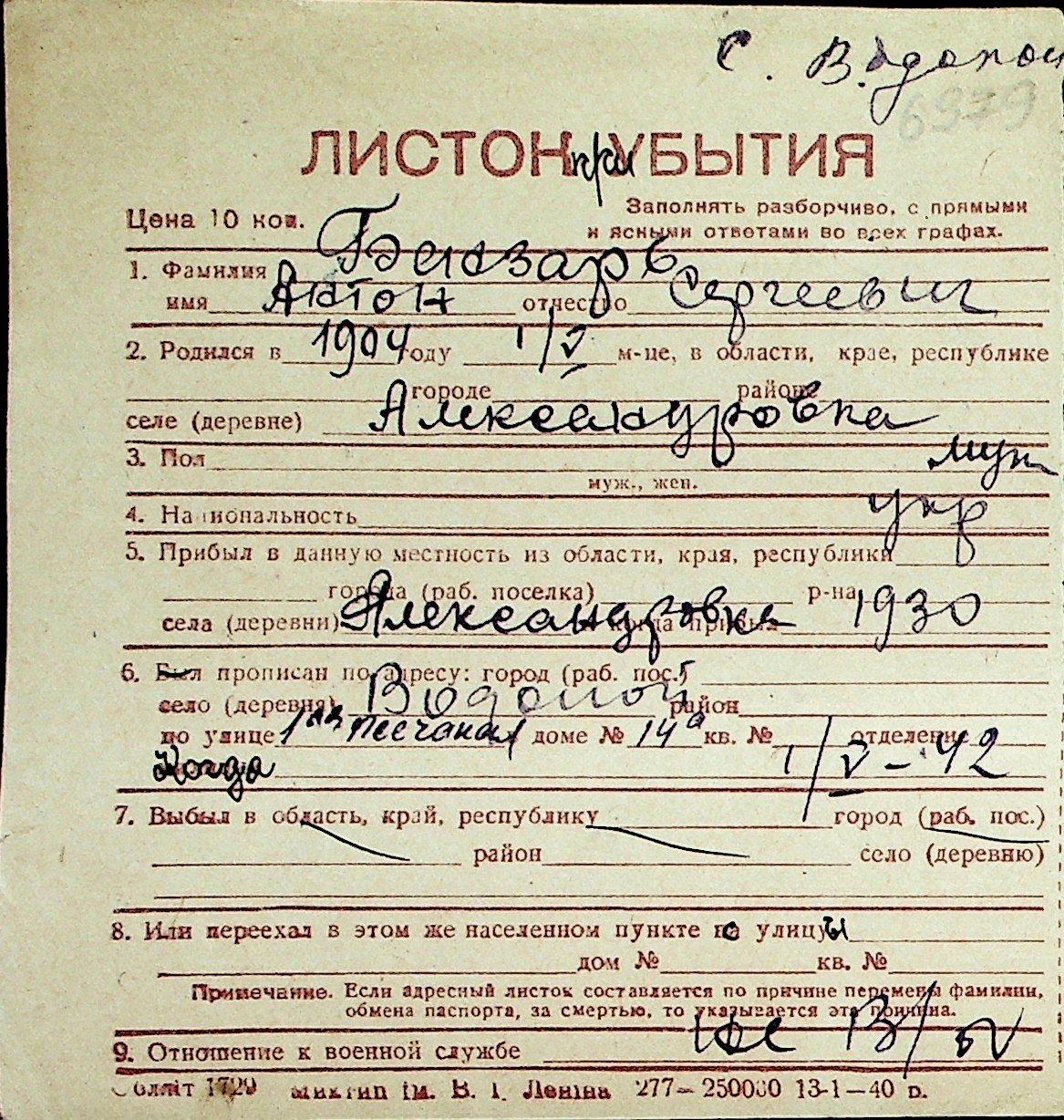 ◦ ◦ Перелік карток на осіб, які мешкали у м. Миколаїв у період окупації 1941–1944 років