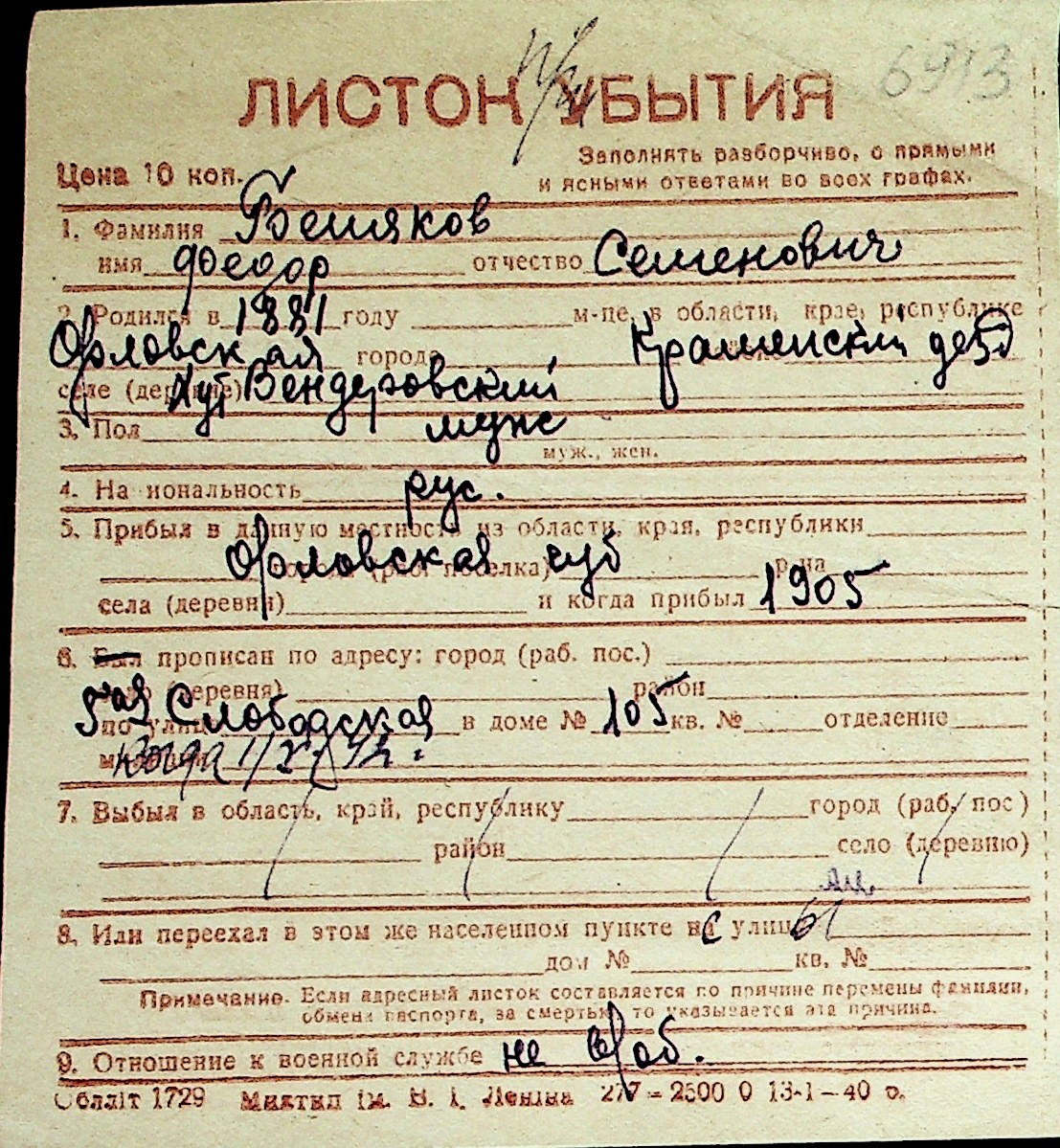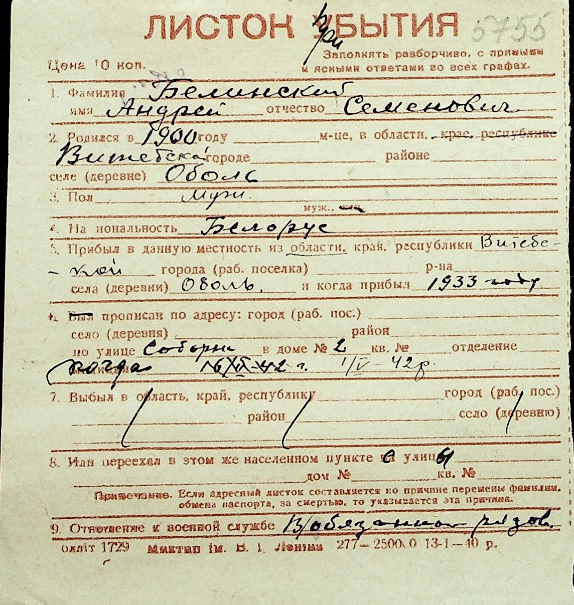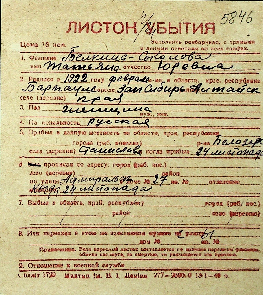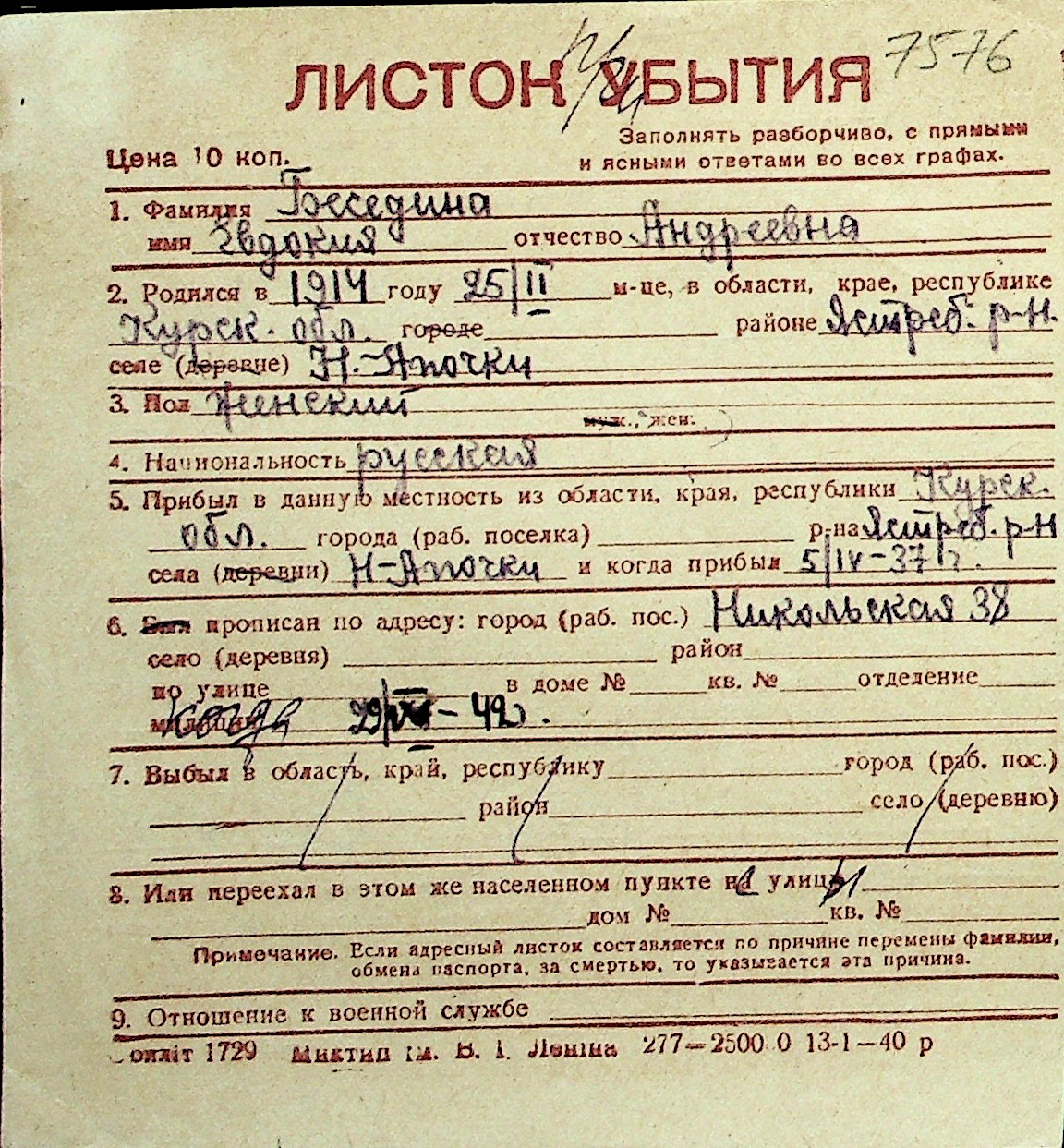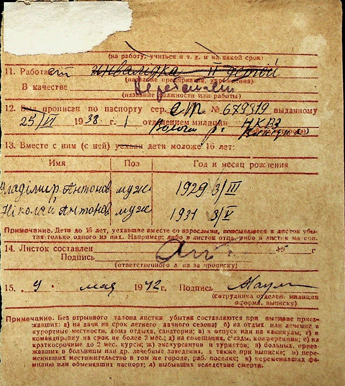 ◦ ◦ Перелік карток на осіб, які мешкали у м. Миколаїв у період окупації 1941–1944 років