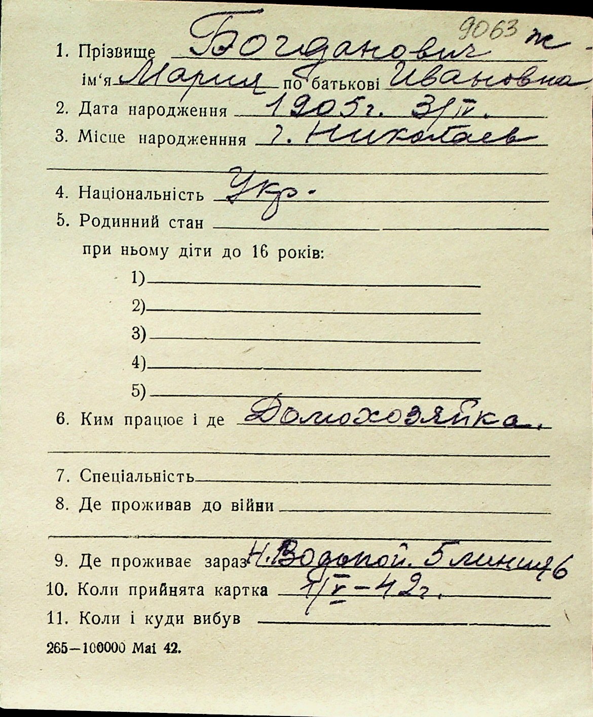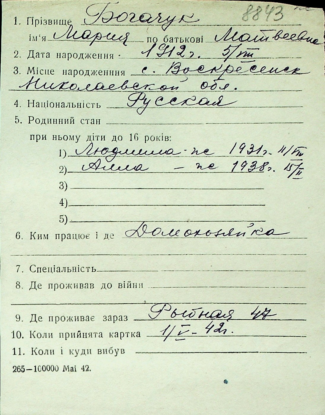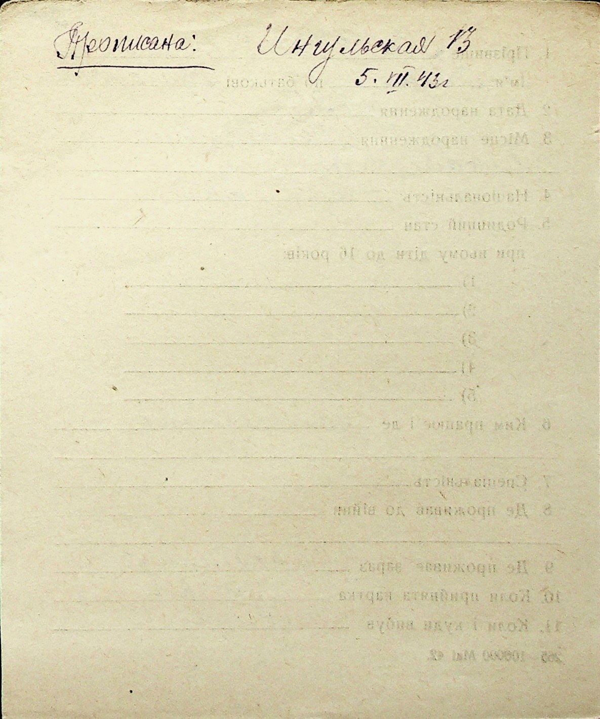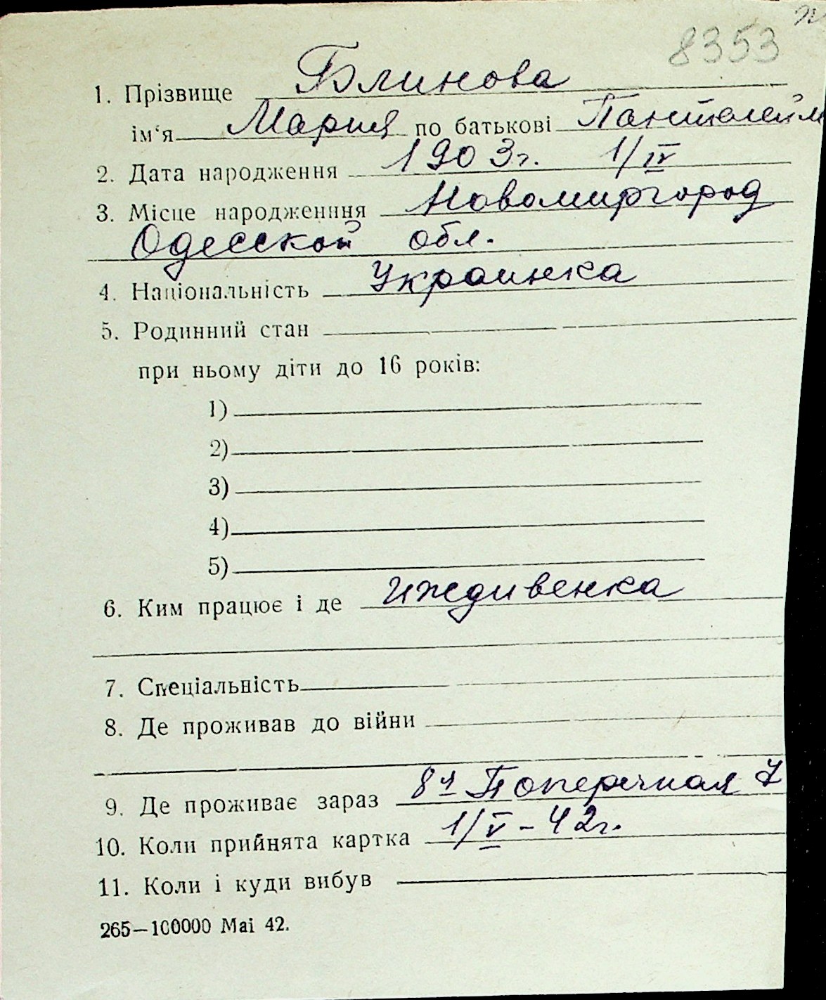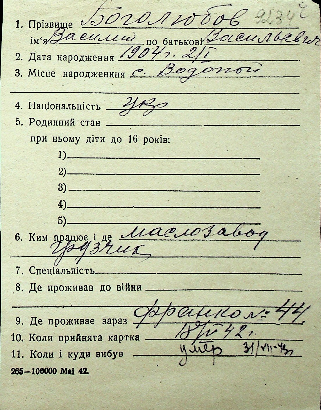 ◦ ◦ Перелік карток на осіб, які мешкали у м. Миколаїв у період окупації 1941–1944 років
