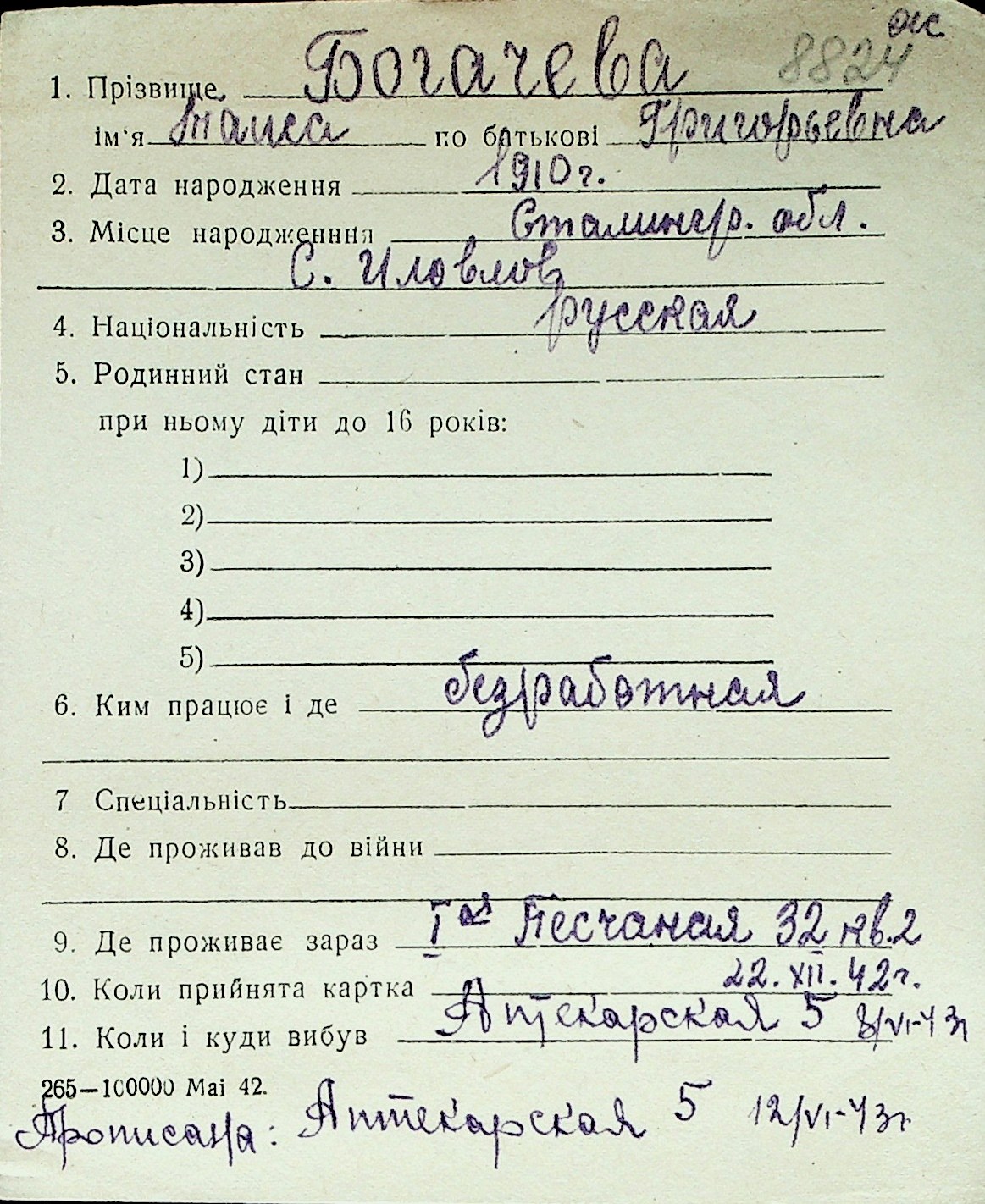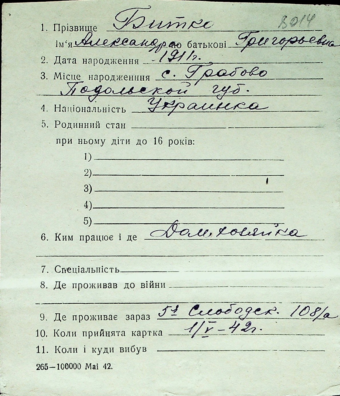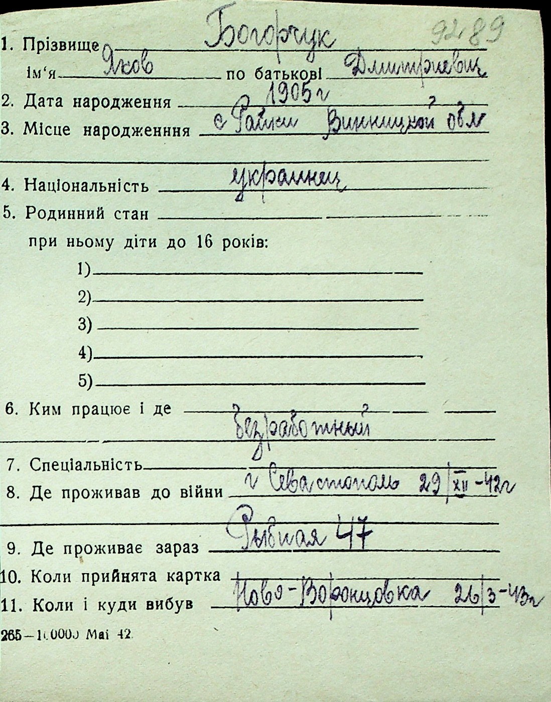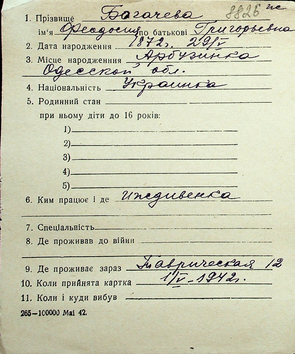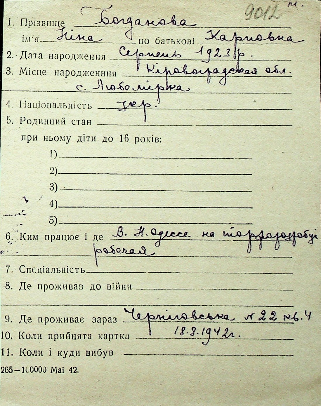 ◦ ◦ Перелік карток на осіб, які мешкали у м. Миколаїв у період окупації 1941–1944 років