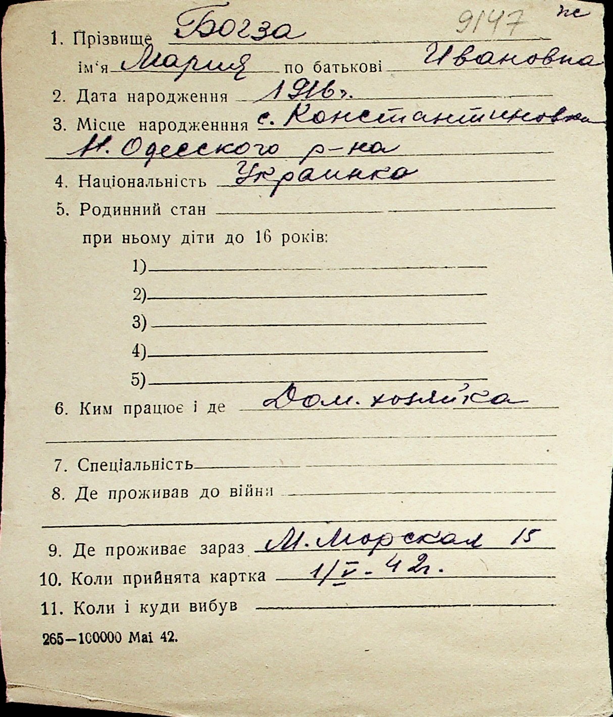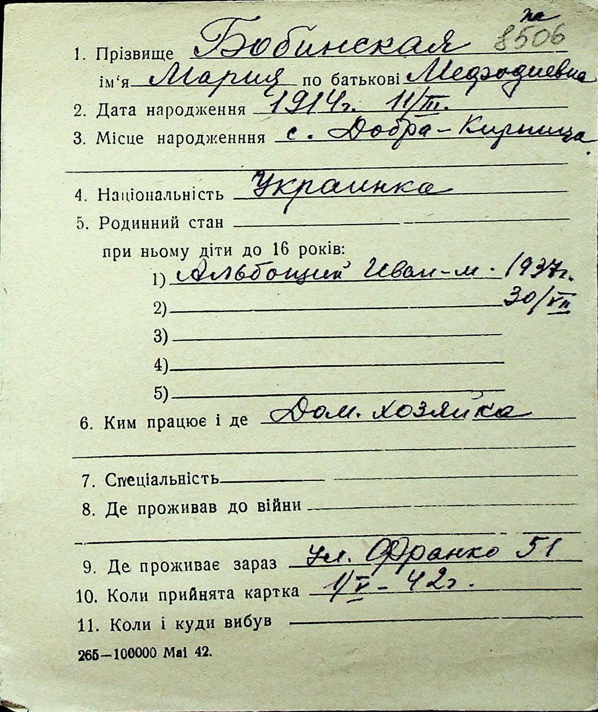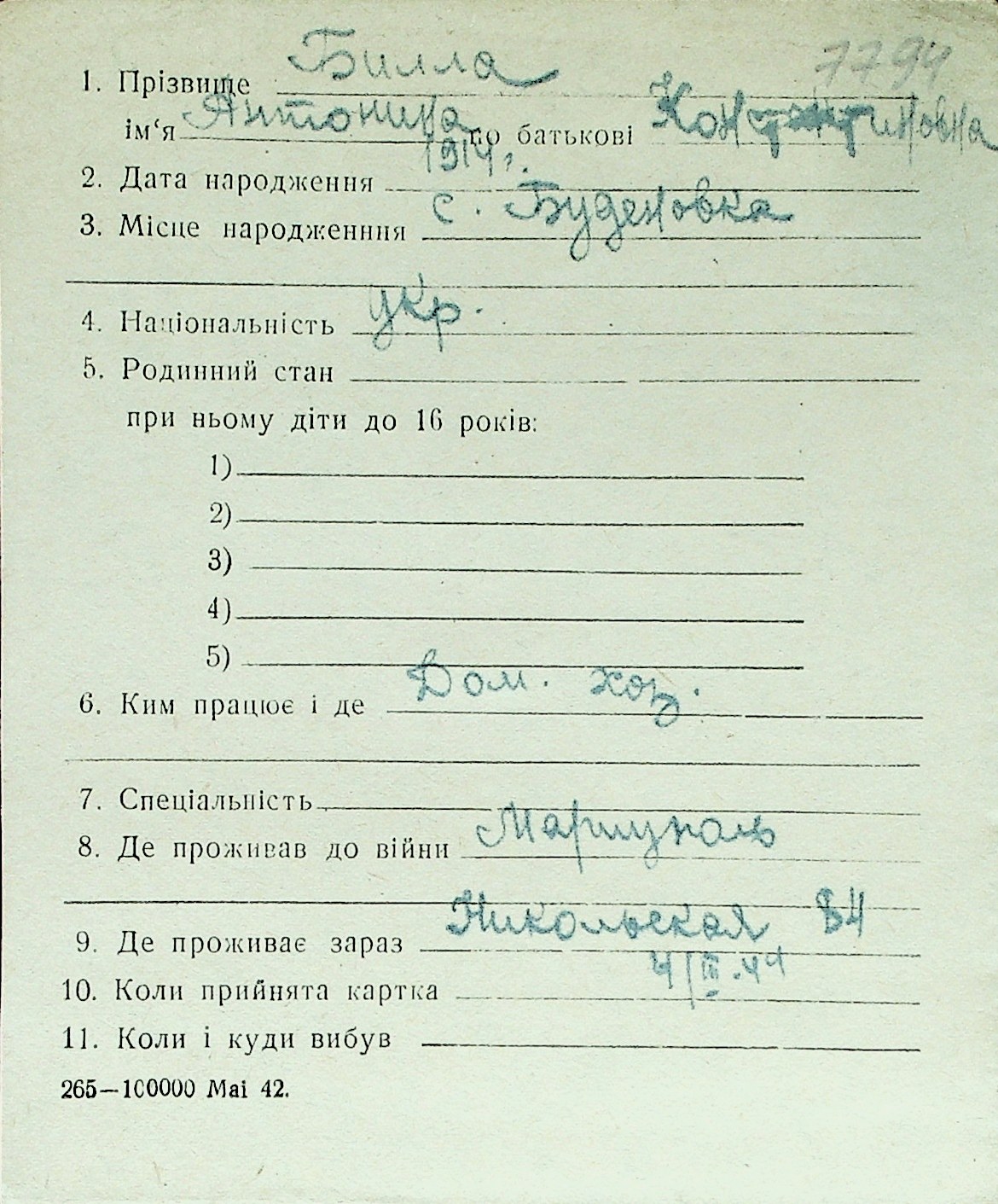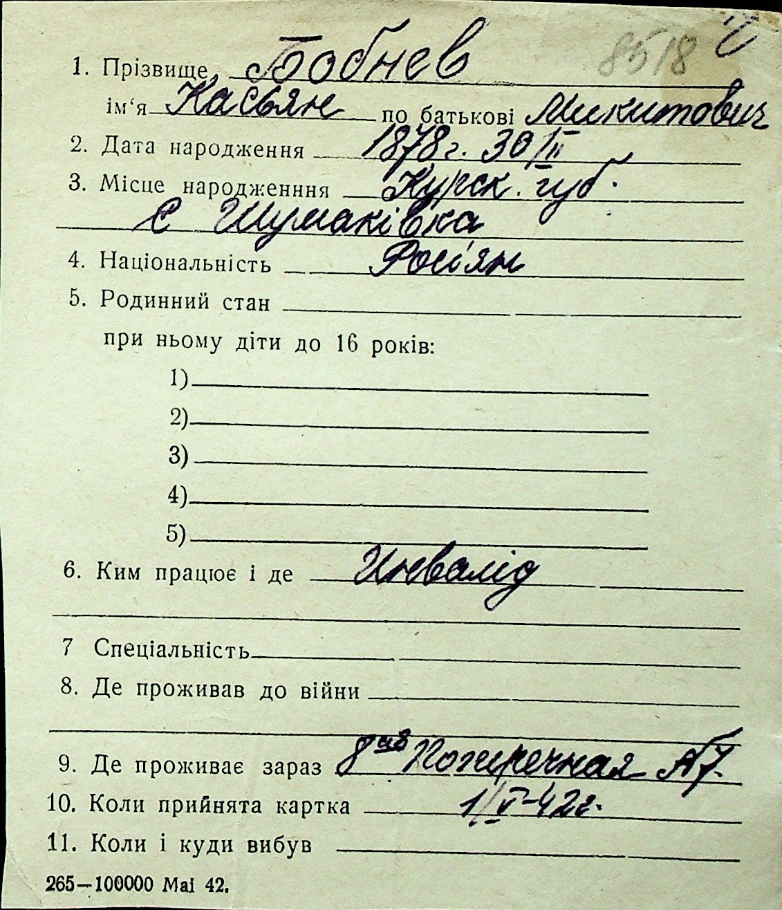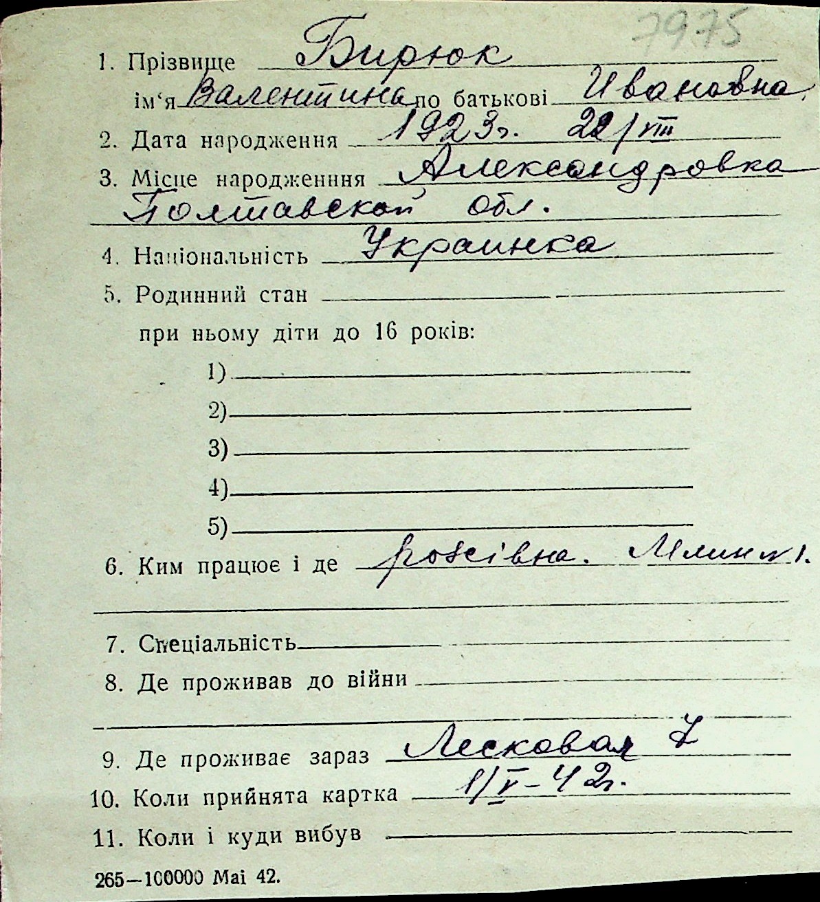 ◦ ◦ Перелік карток на осіб, які мешкали у м. Миколаїв у період окупації 1941–1944 років